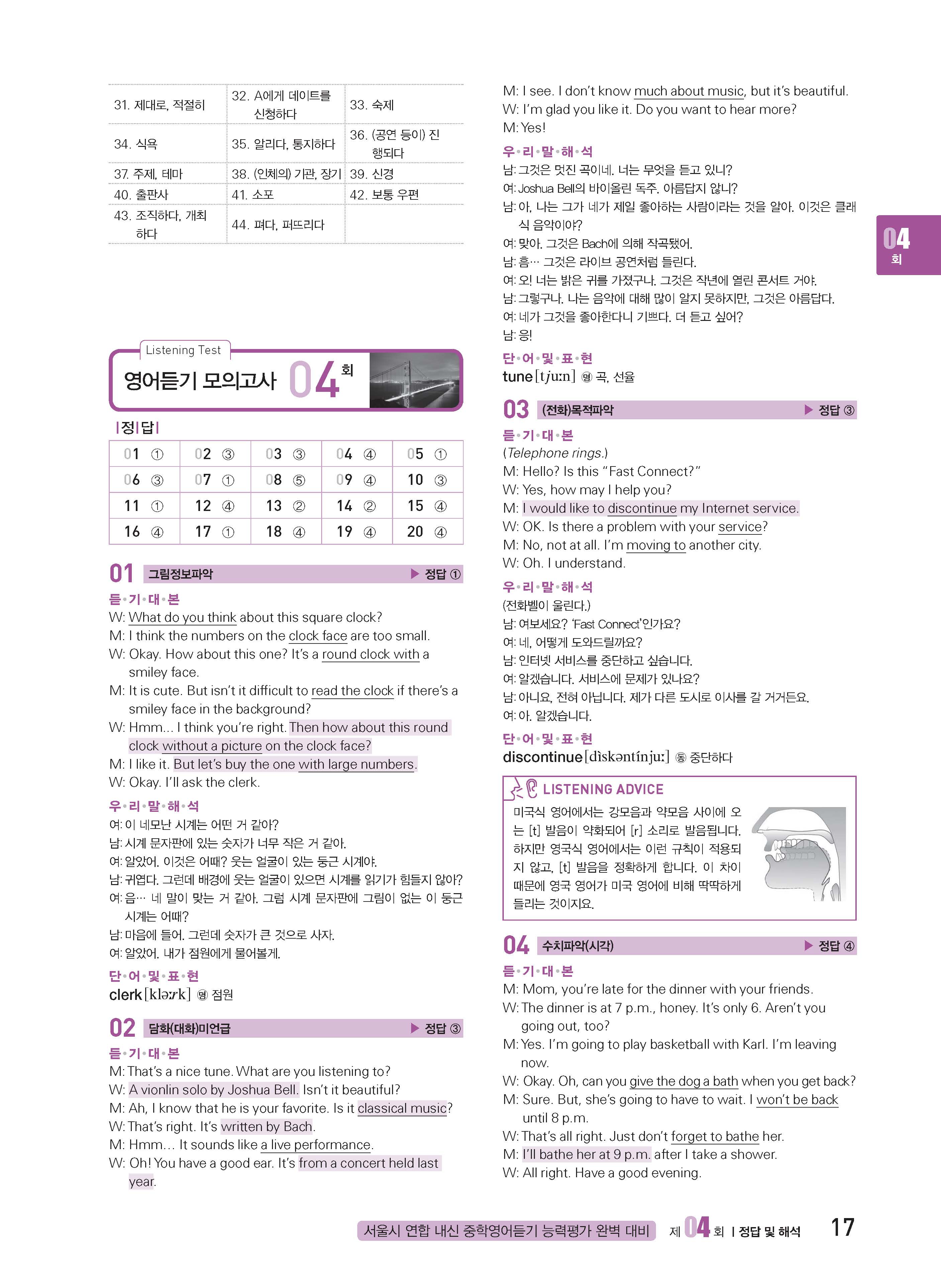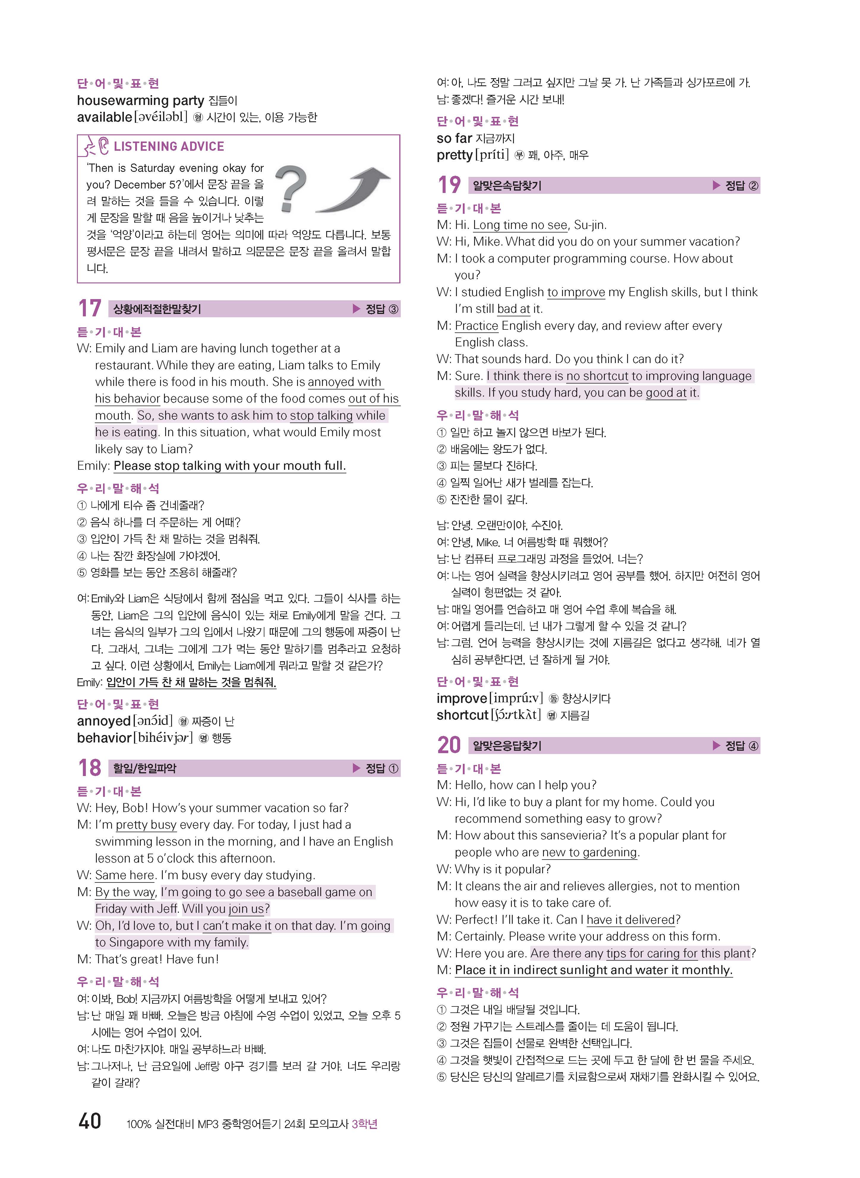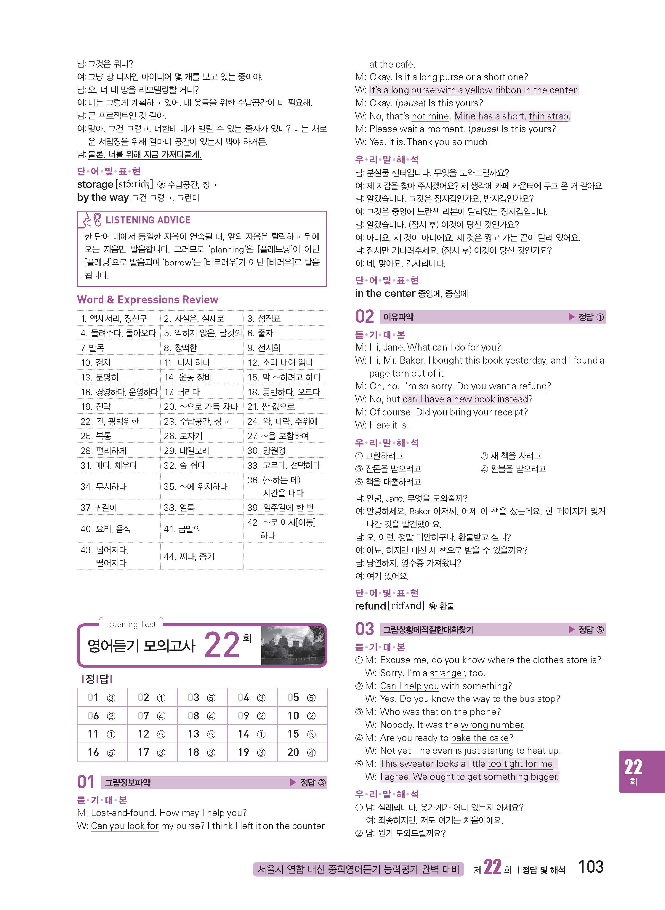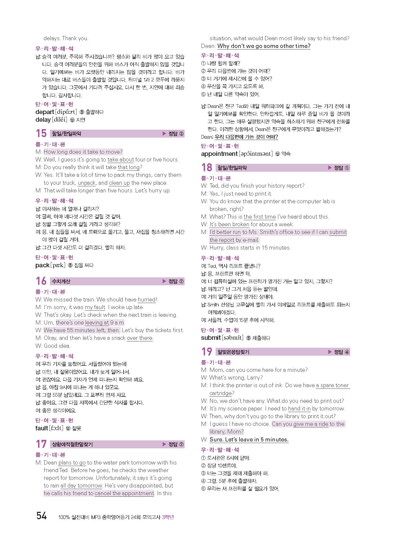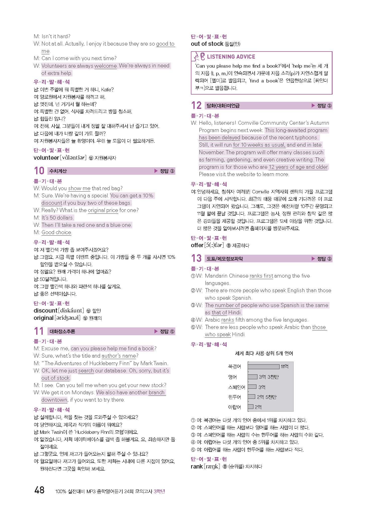 2021 100% 실전대비 MP3 중학영어듣기 24회 모의고사 3학년 답지 사진답지 빠른답지 모바일최적화
