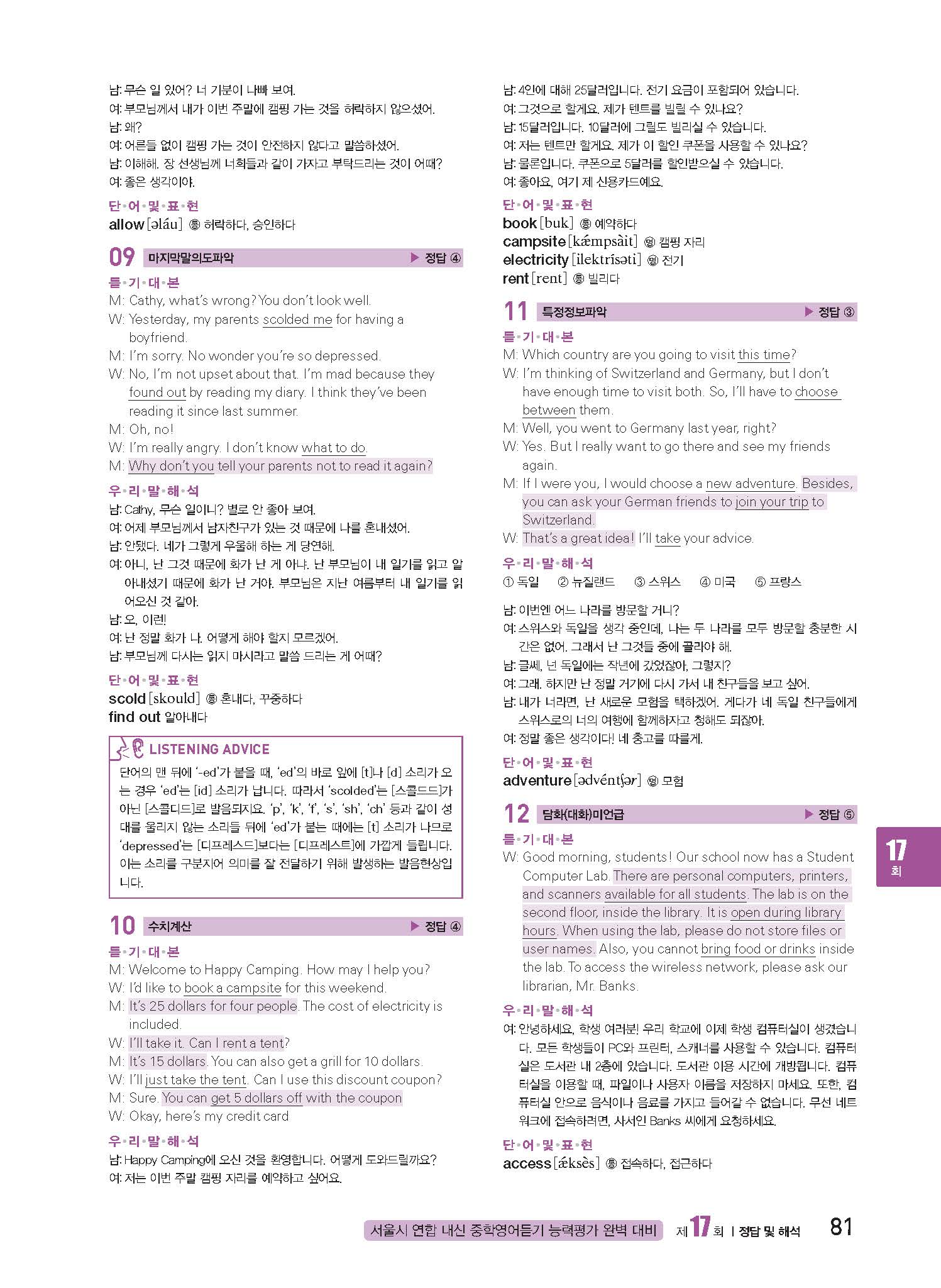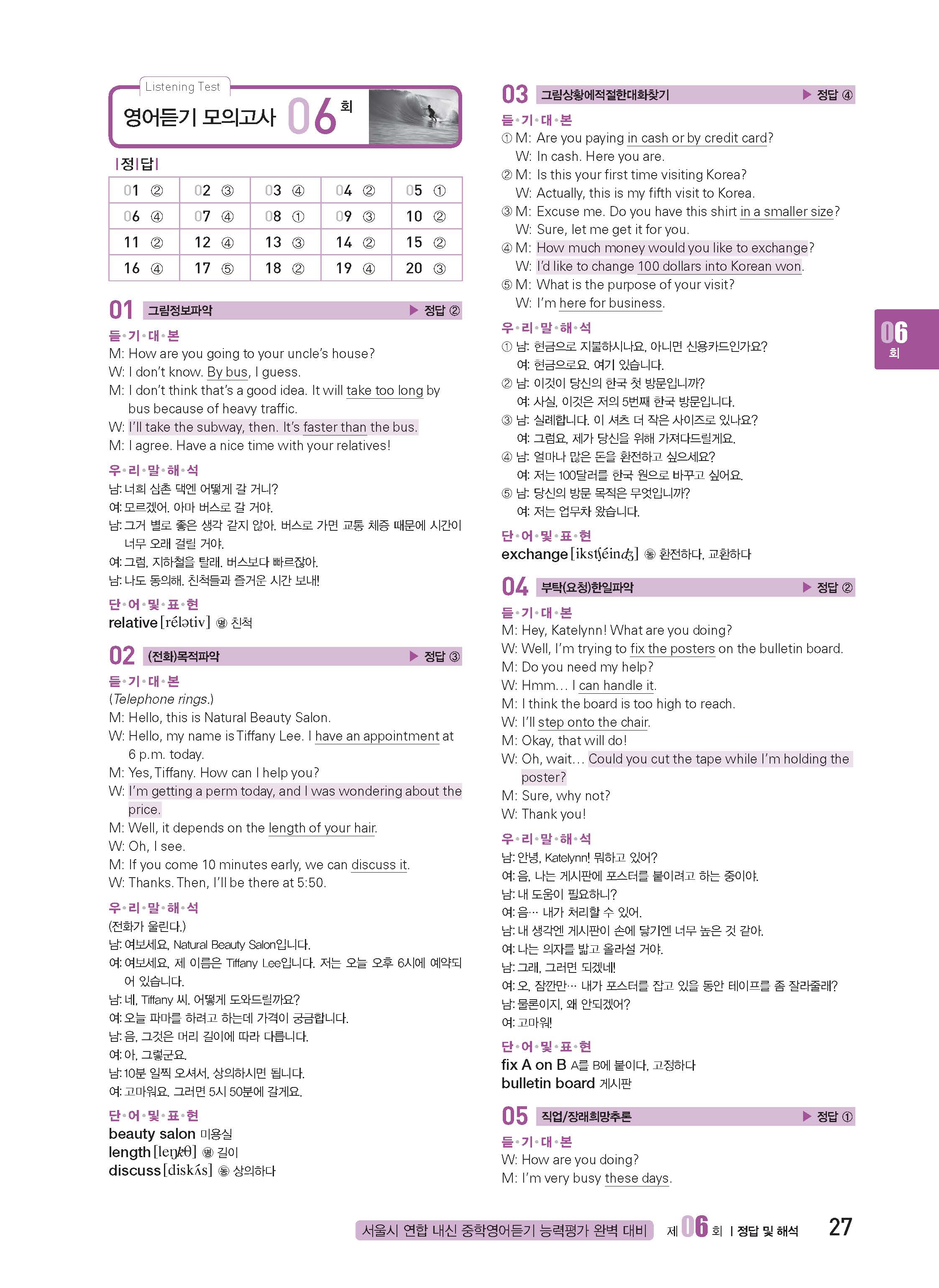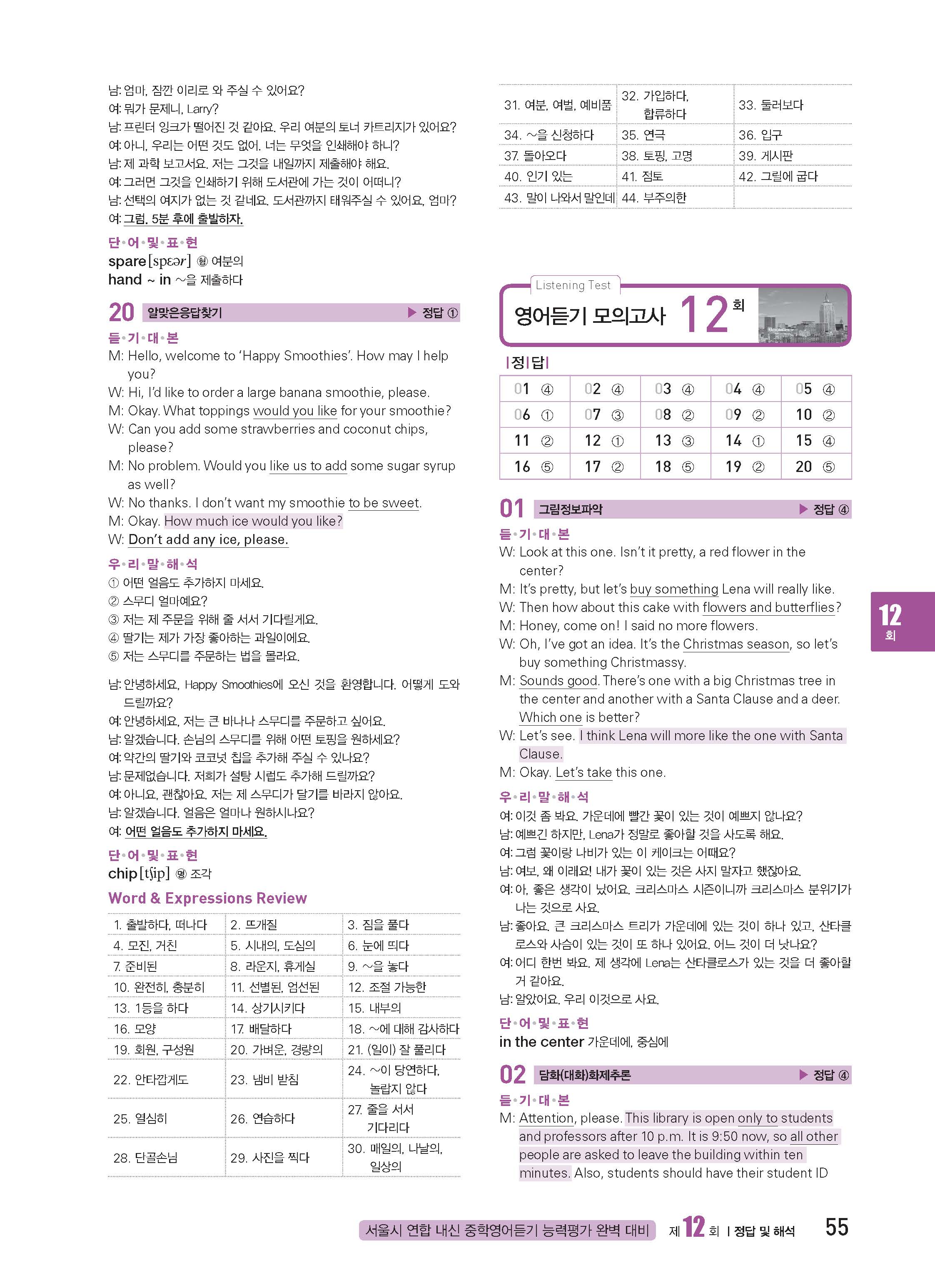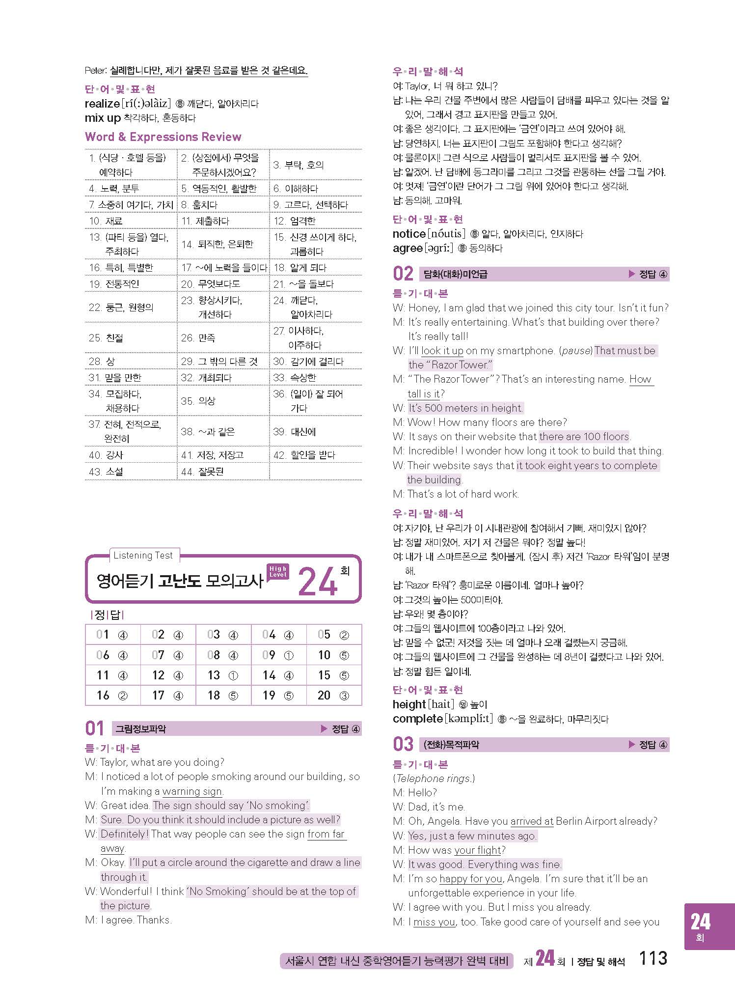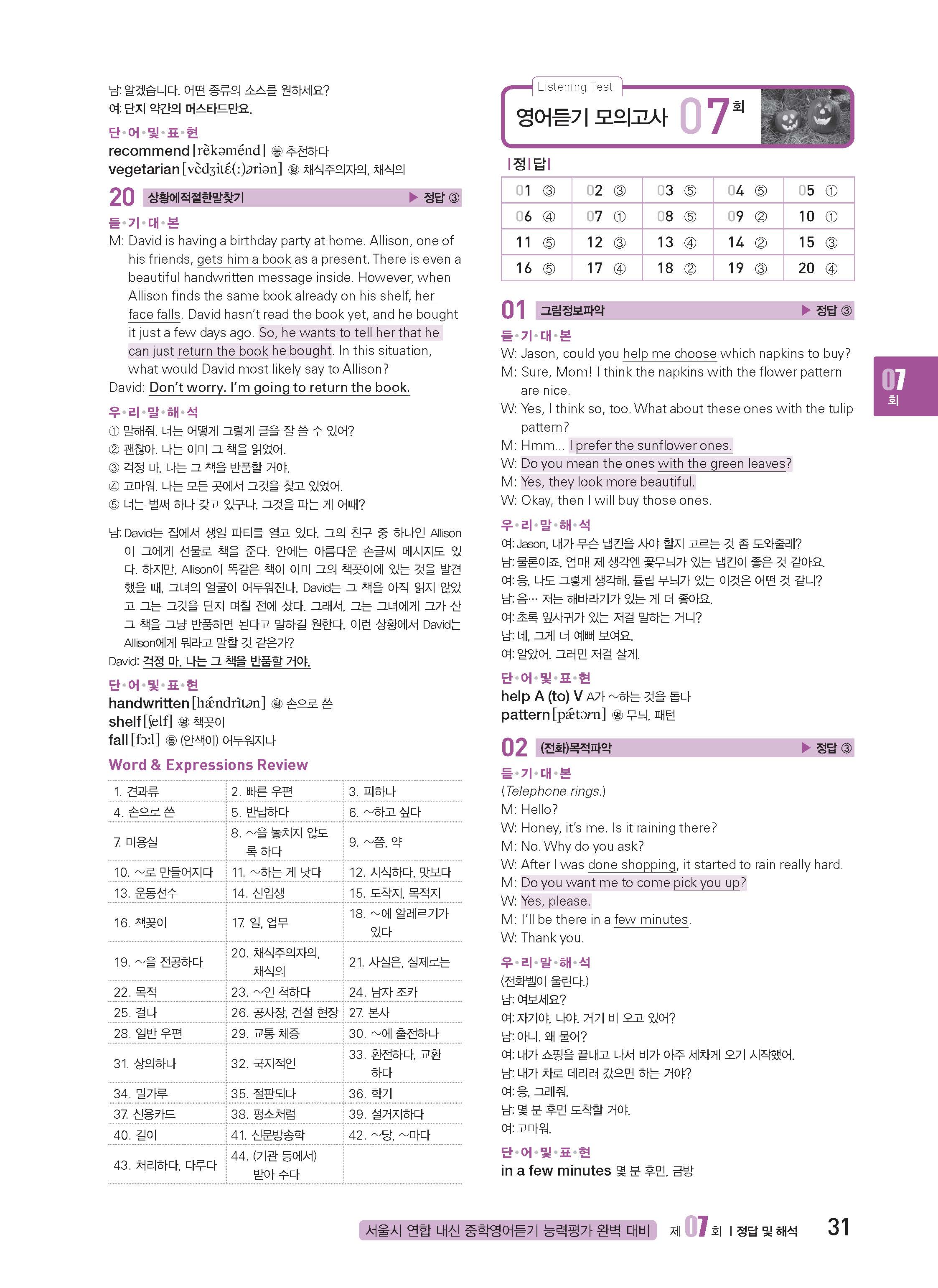 2021 100% 실전대비 MP3 중학영어듣기 24회 모의고사 3학년 답지 사진답지 빠른답지 모바일최적화
