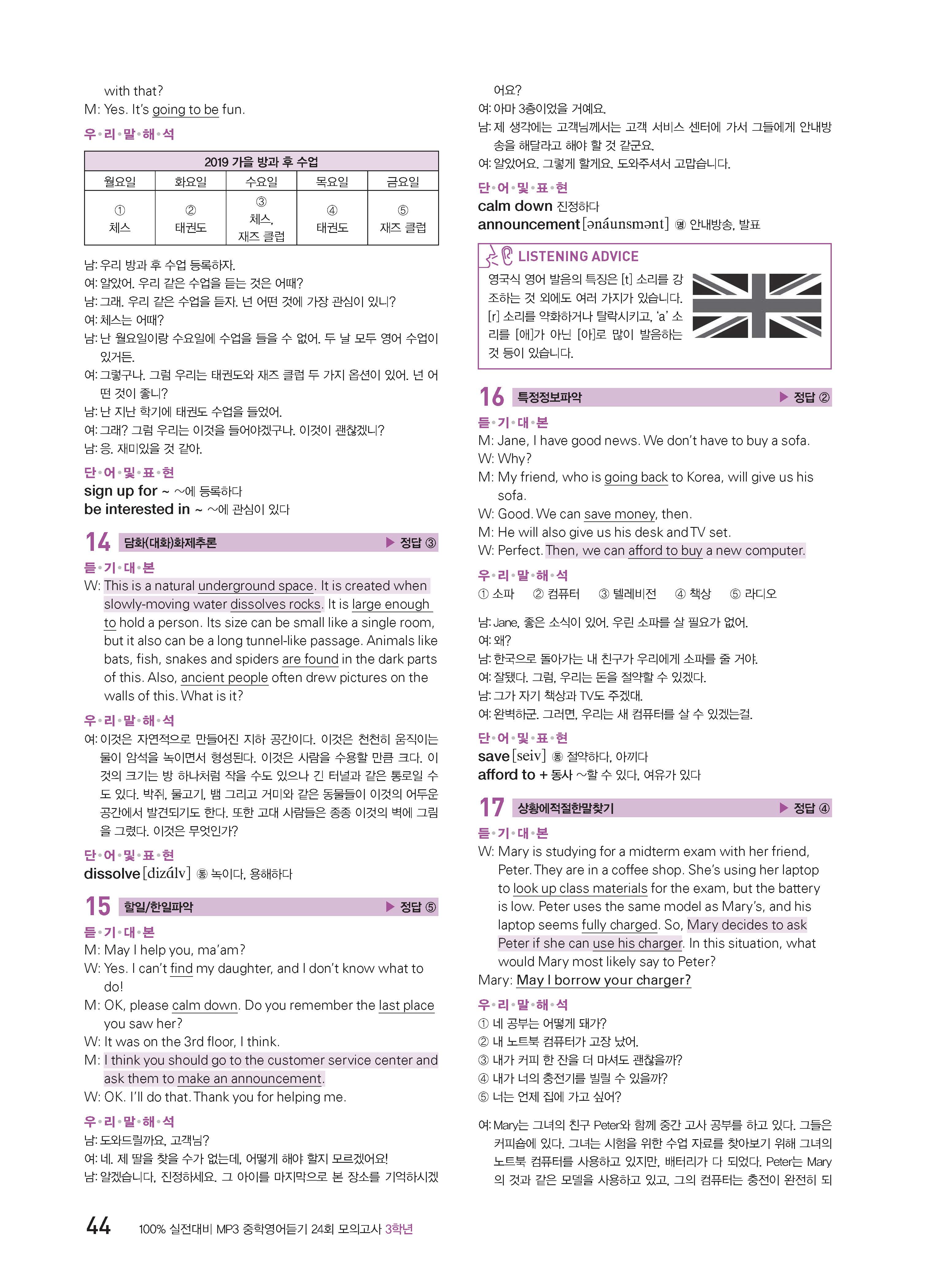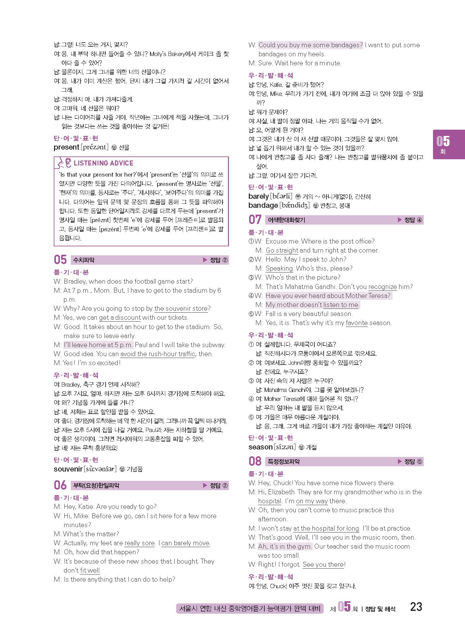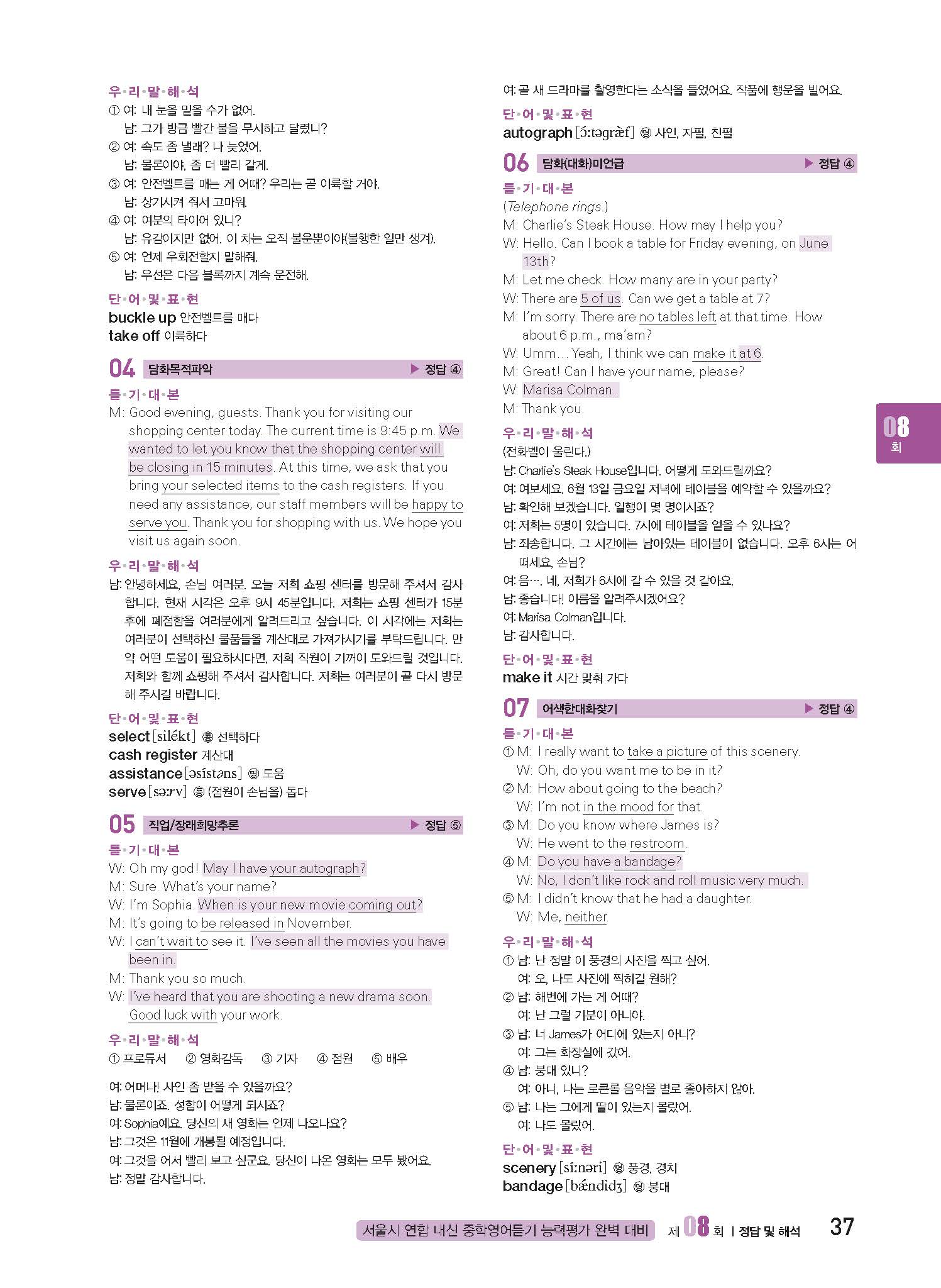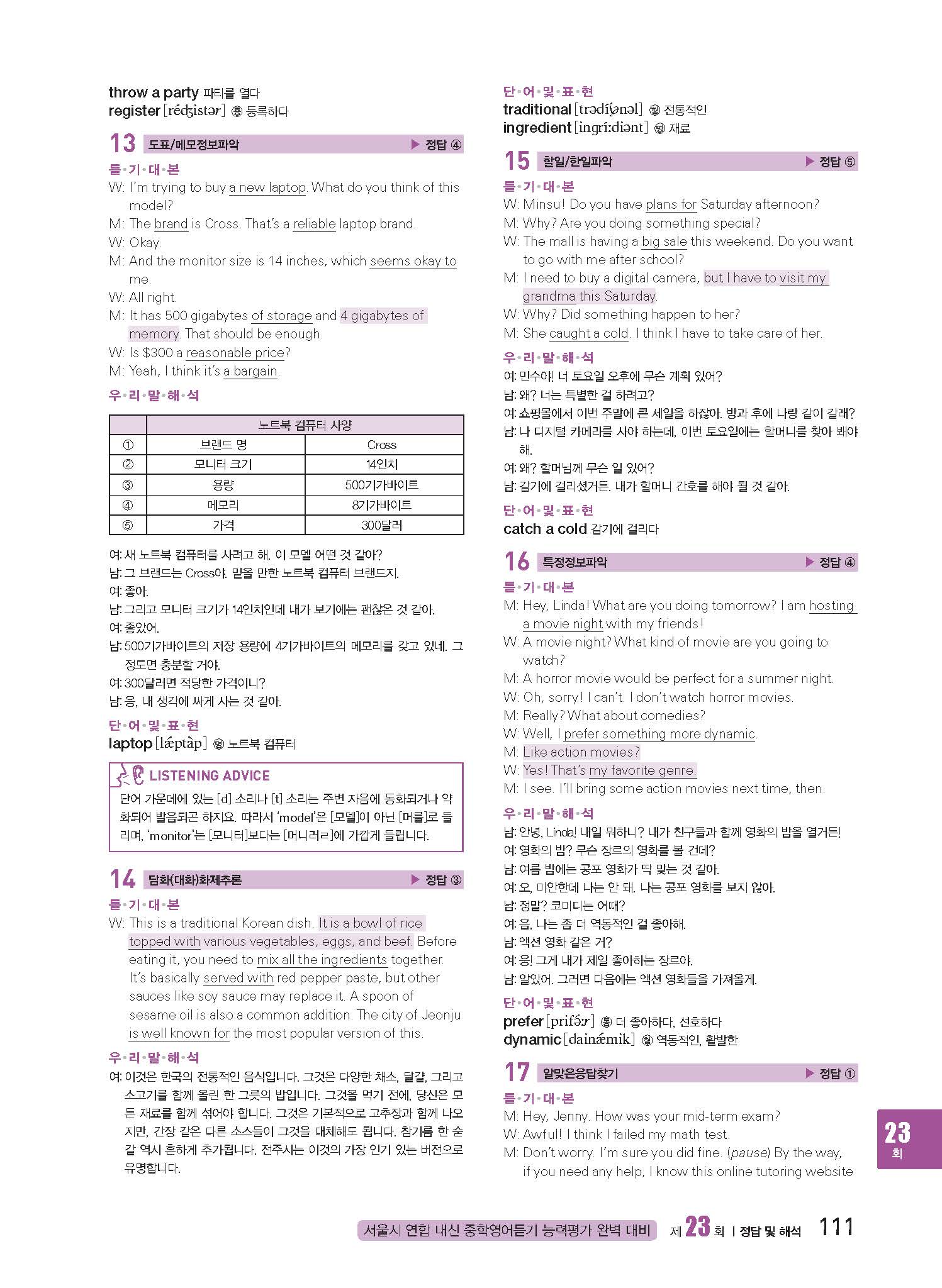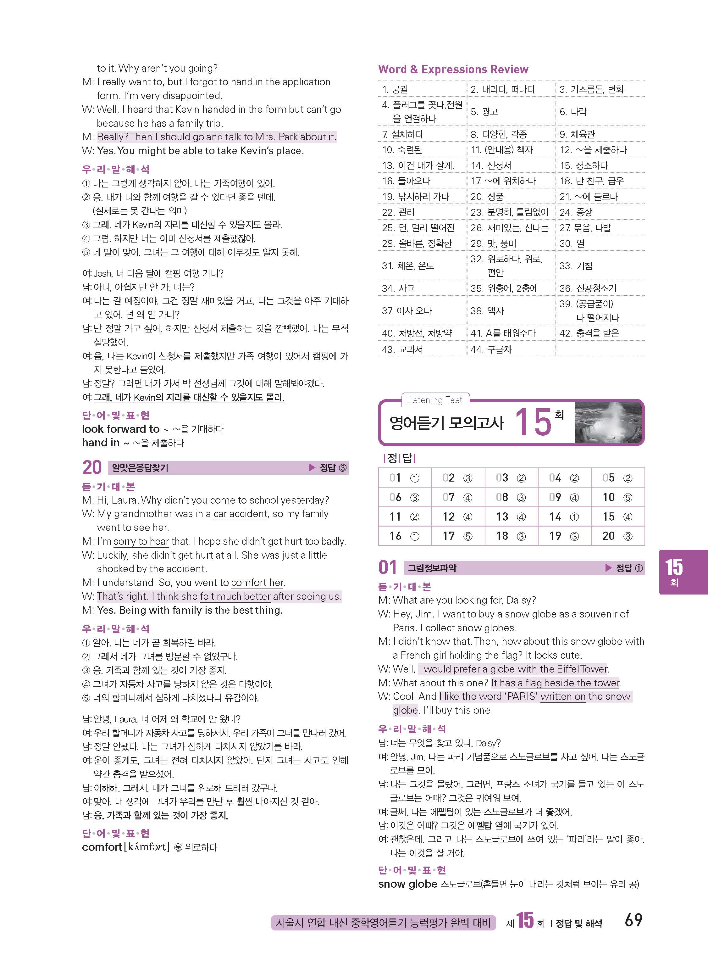 2021 100% 실전대비 MP3 중학영어듣기 24회 모의고사 3학년 답지 사진답지 빠른답지 모바일최적화
