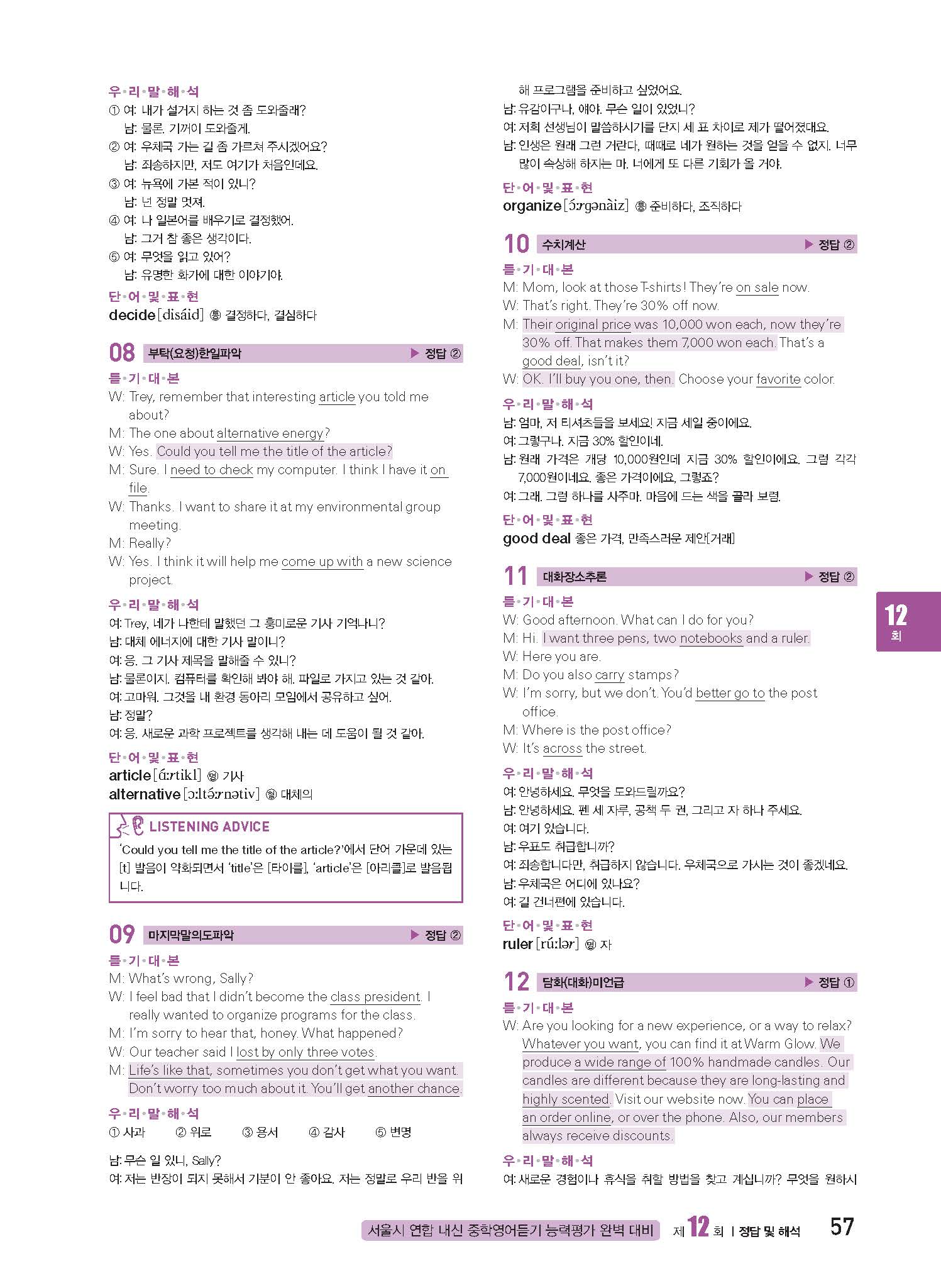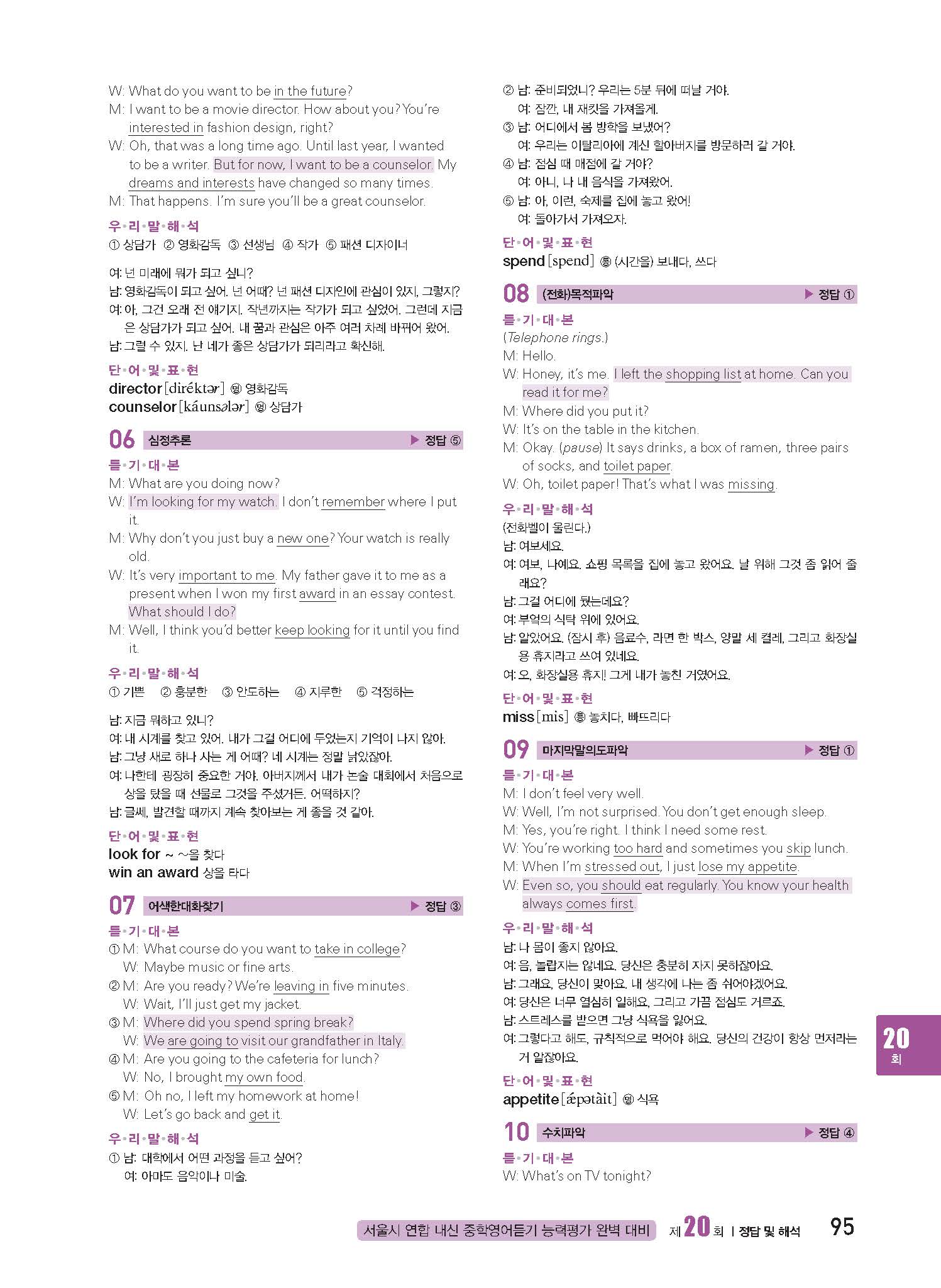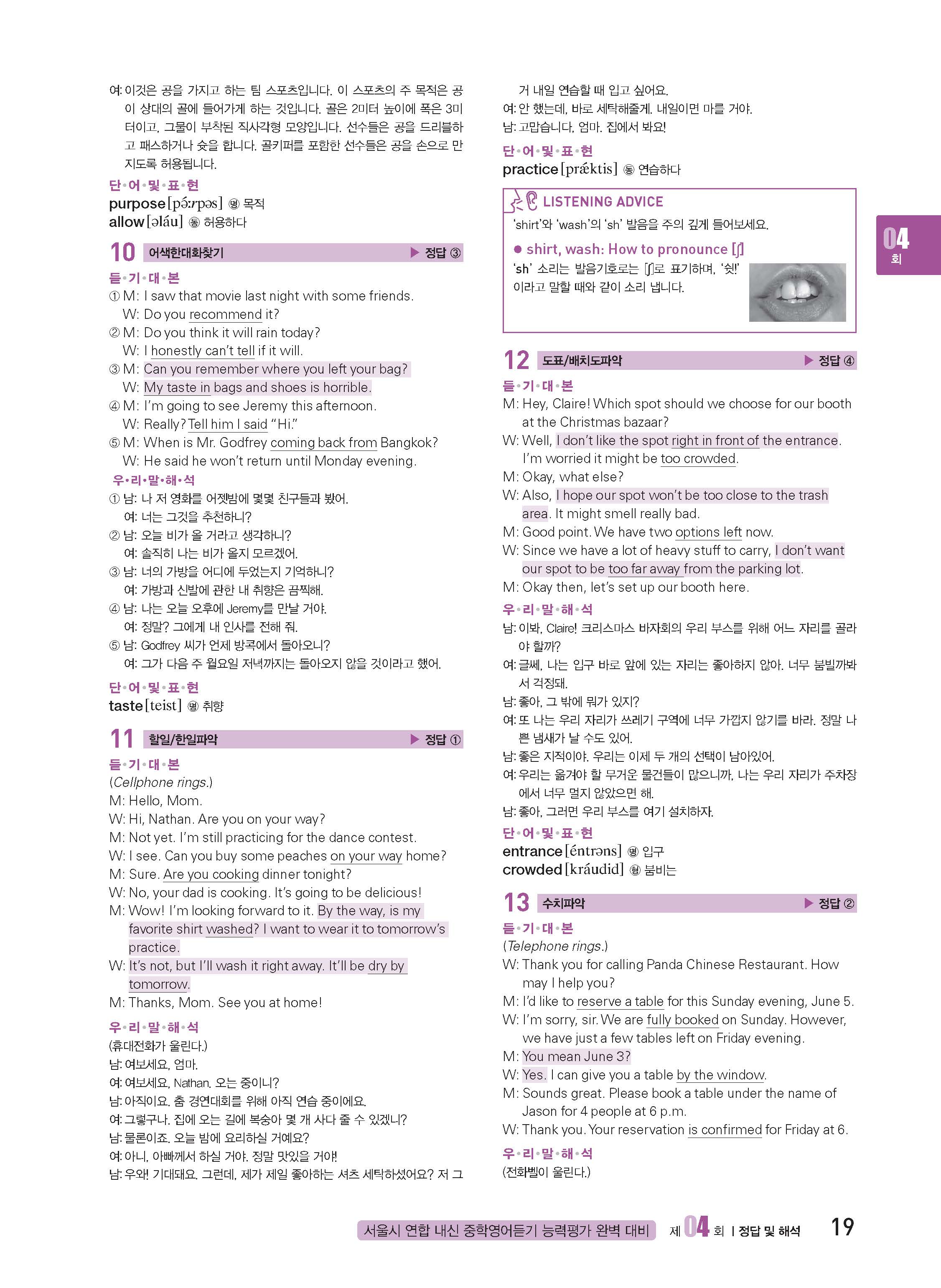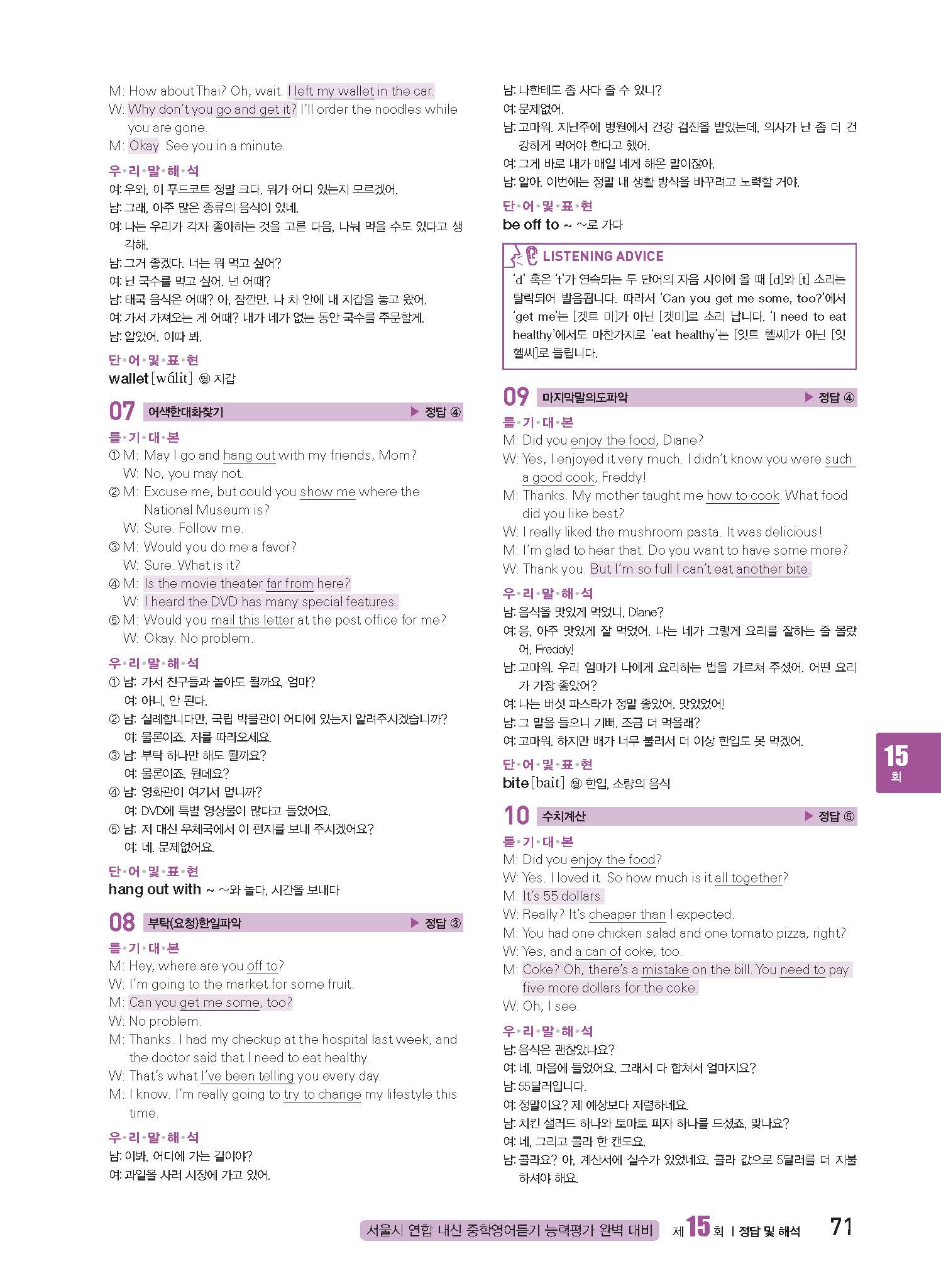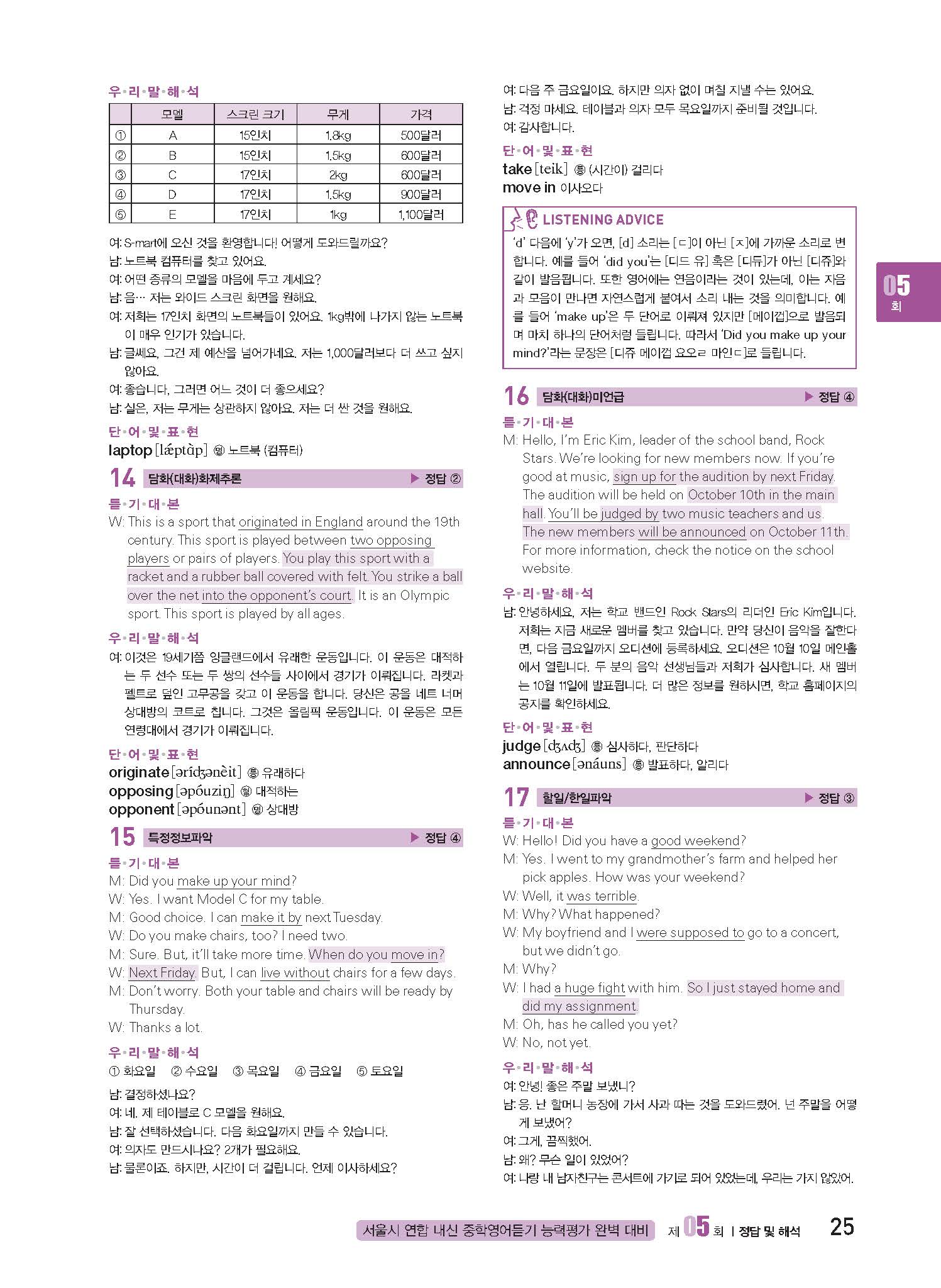 2021 100% 실전대비 MP3 중학영어듣기 24회 모의고사 3학년 답지 사진답지 빠른답지 모바일최적화