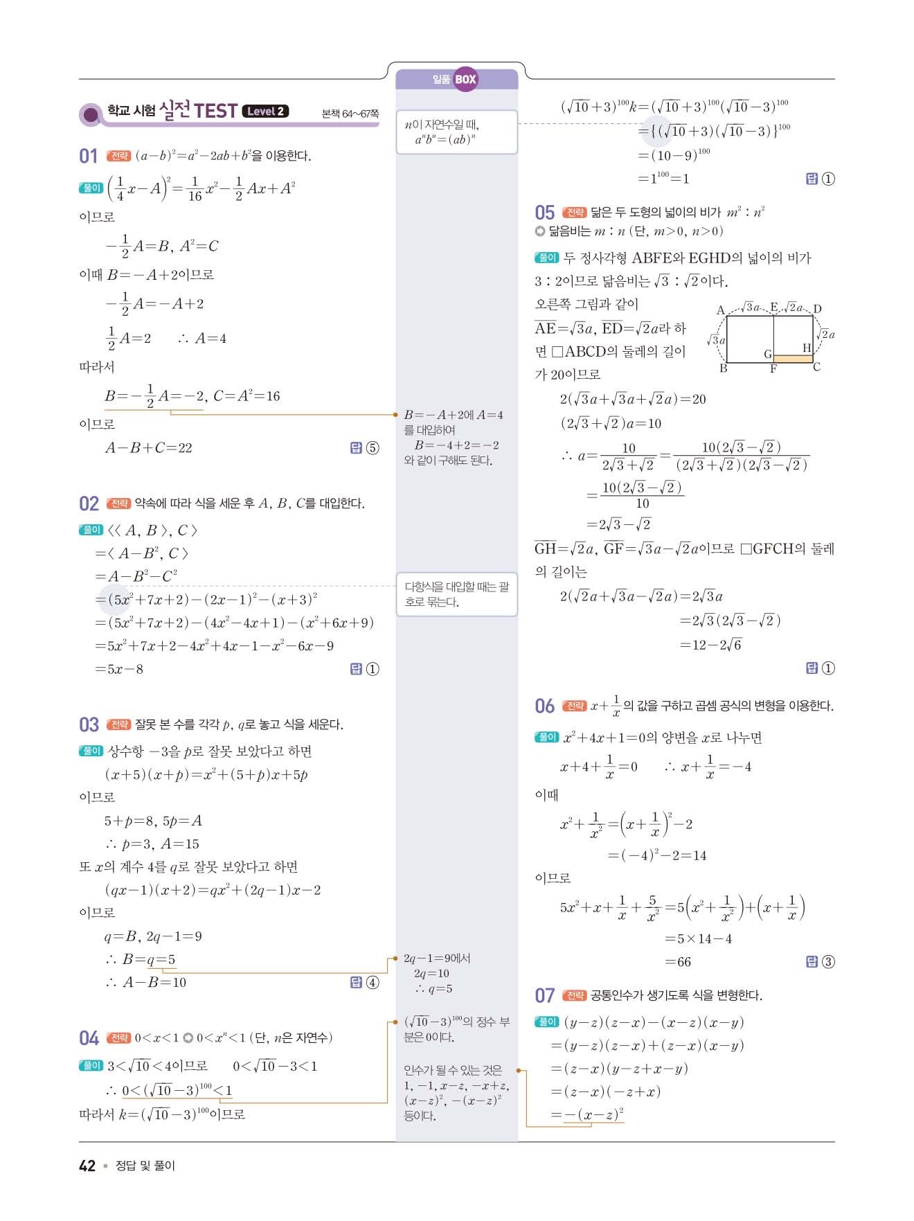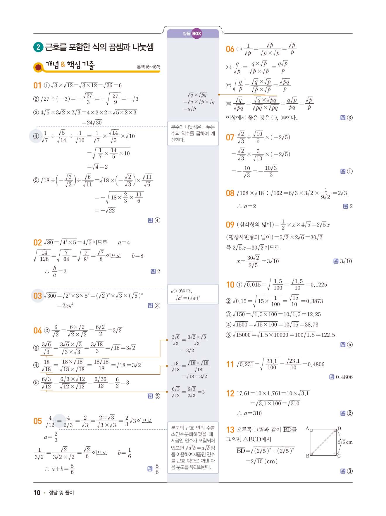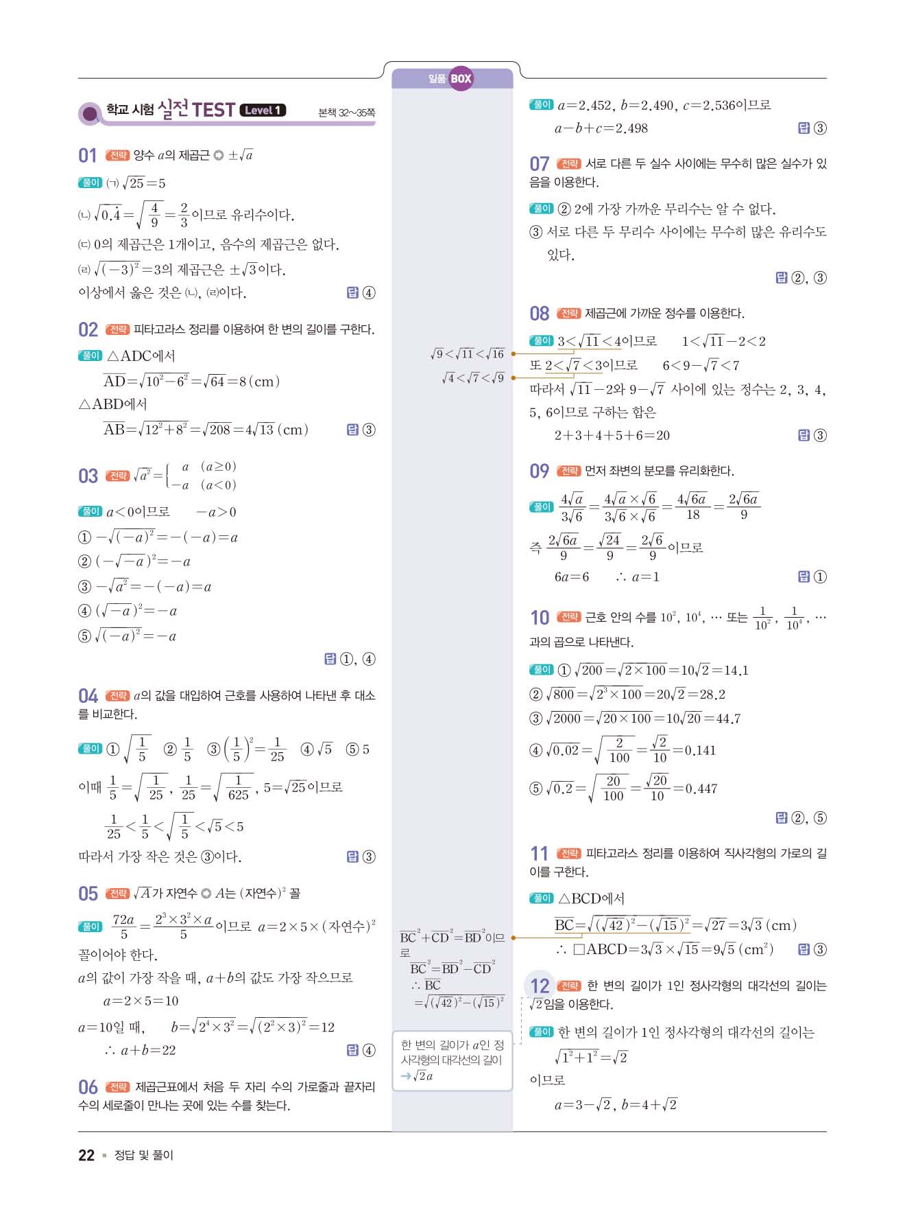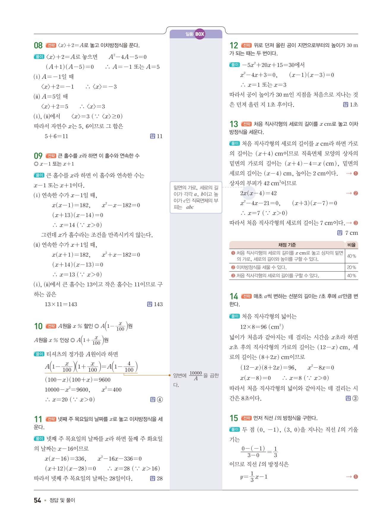 | 천재교육 이준열 중3 수학교과서 답지 | |