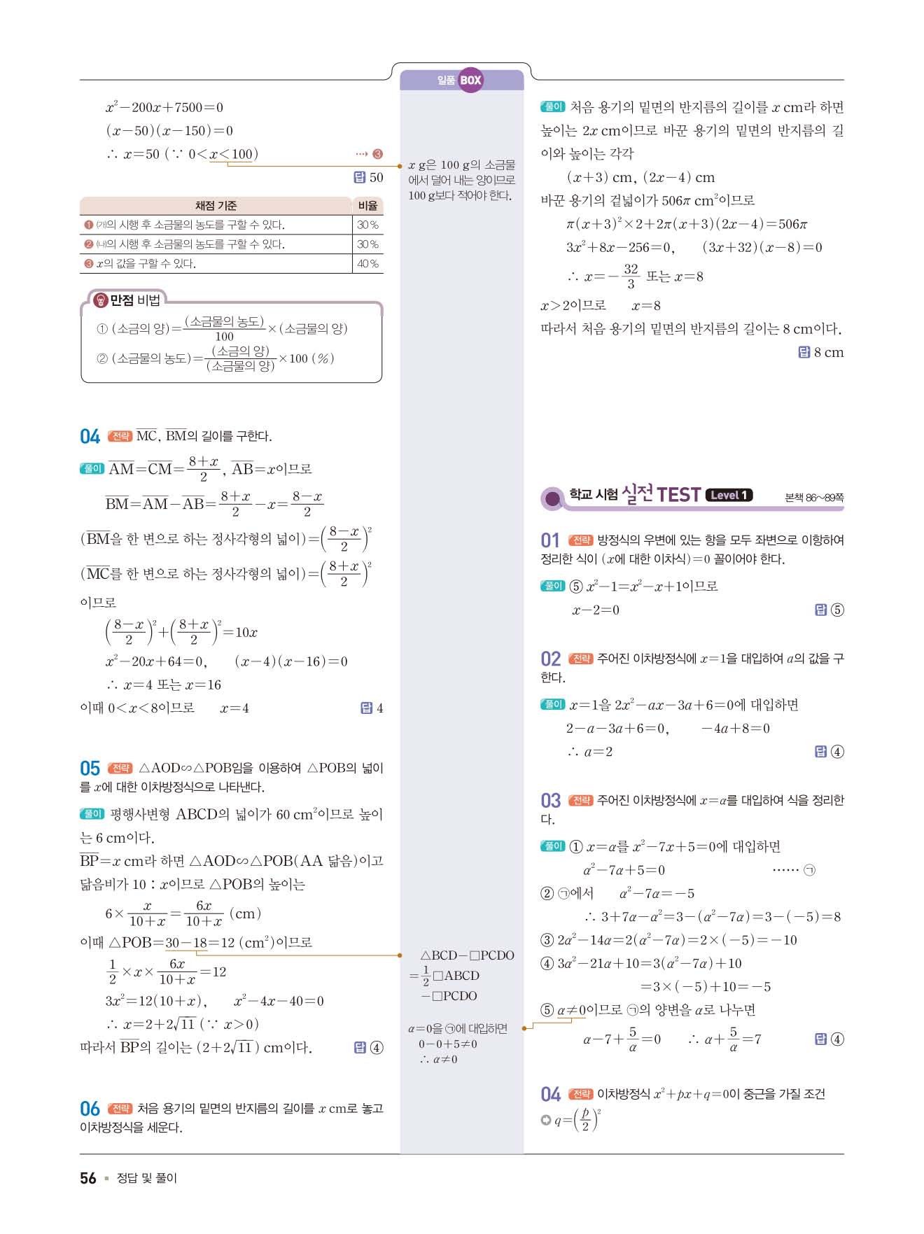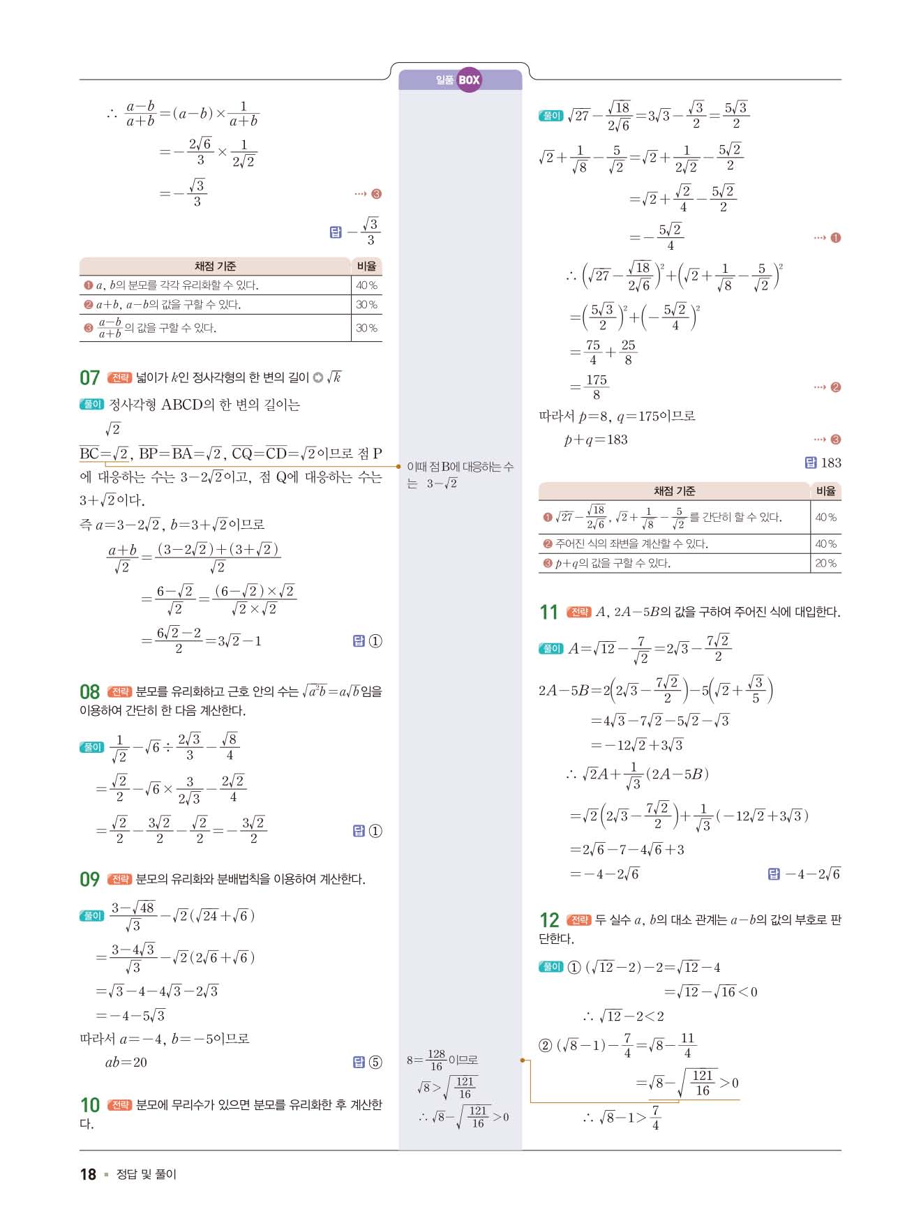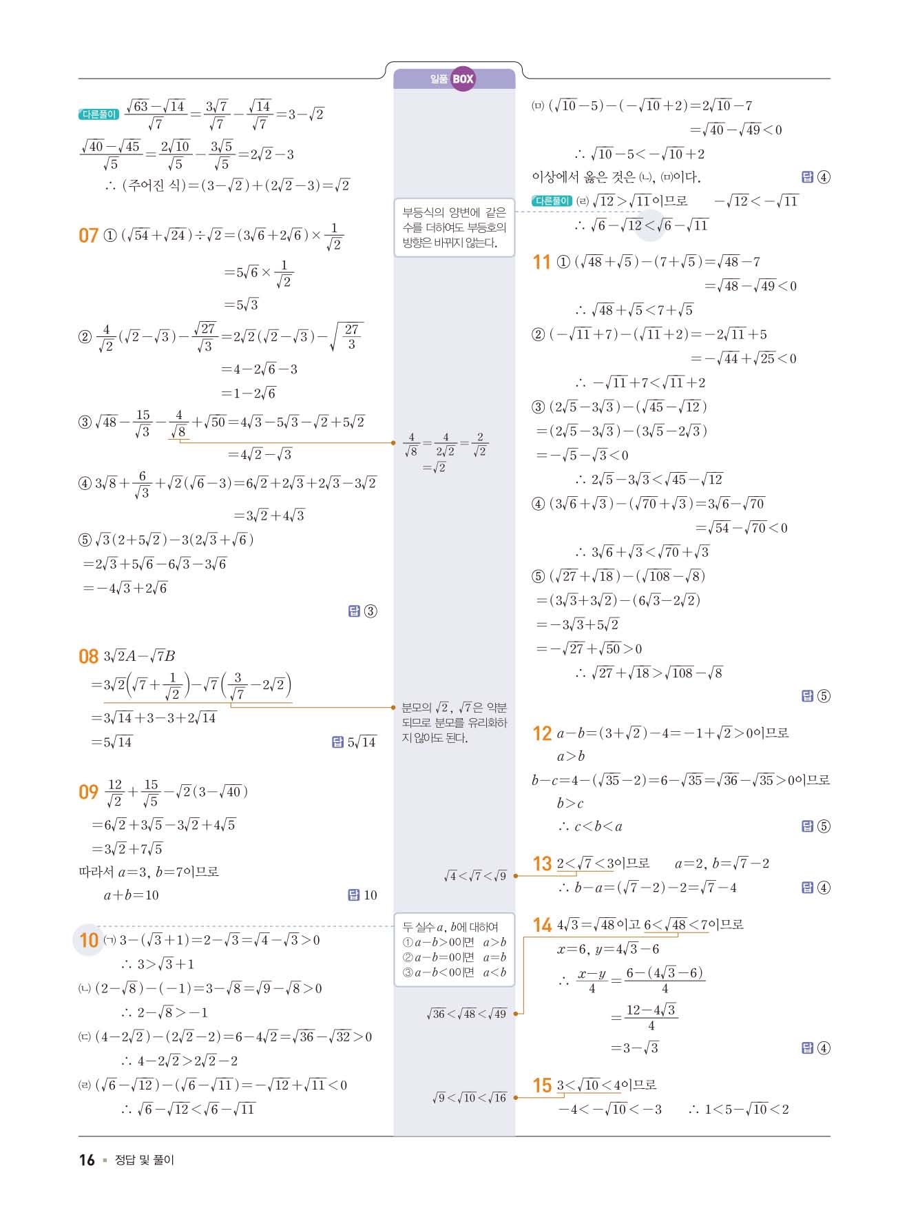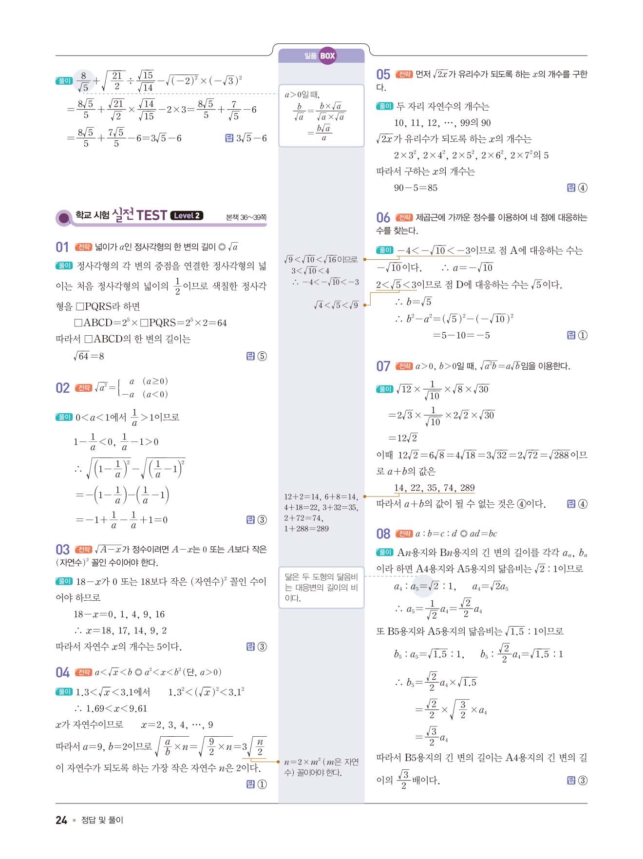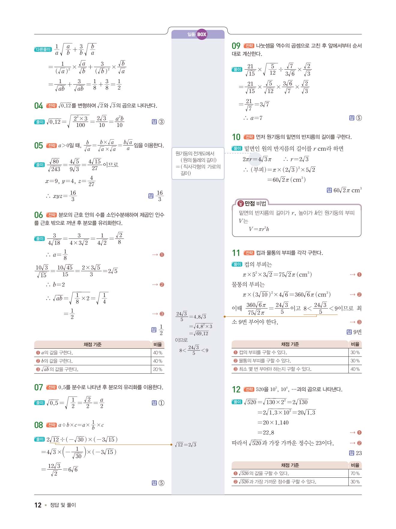 | 천재교육 이준열 중3 수학교과서 답지 | |