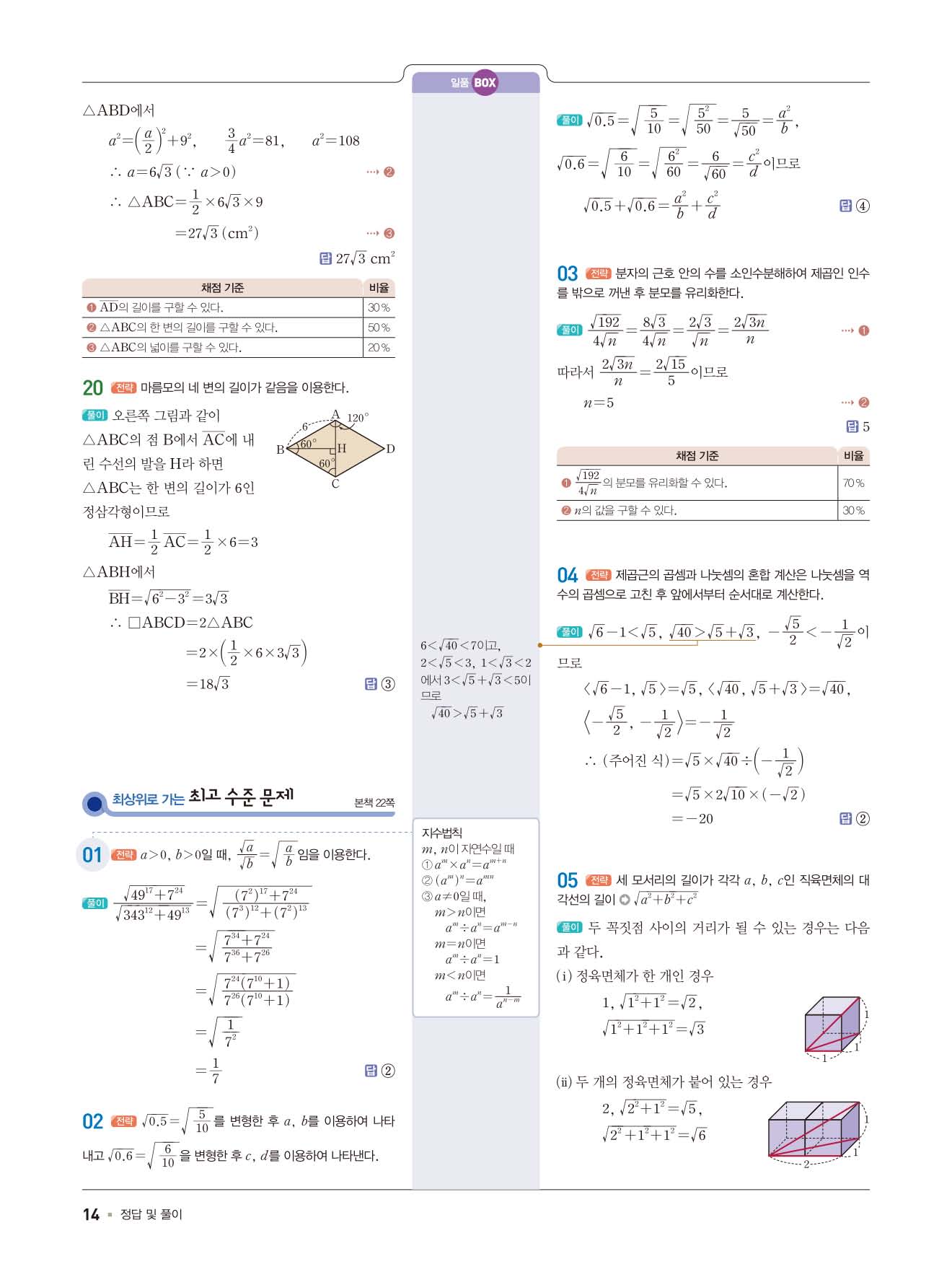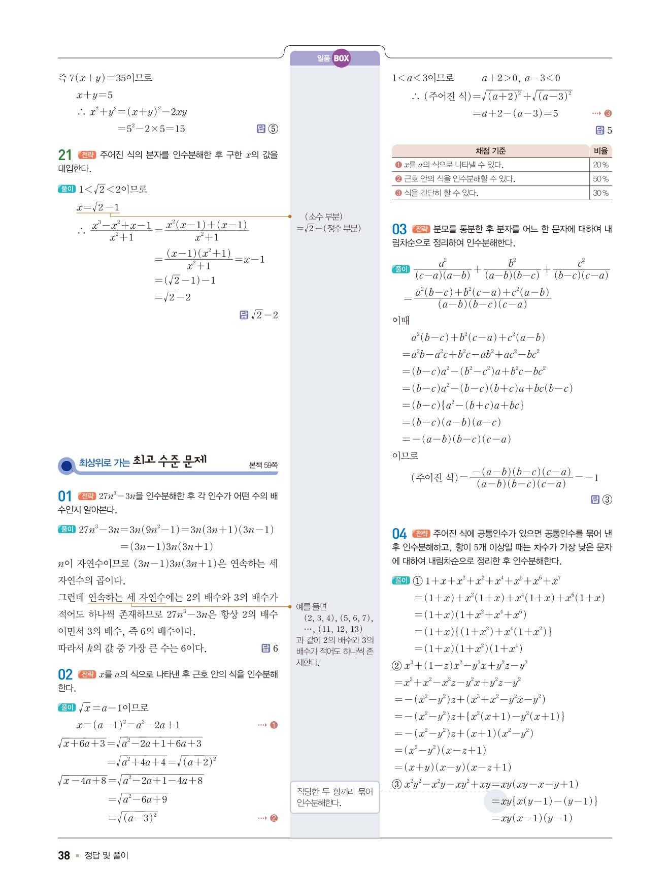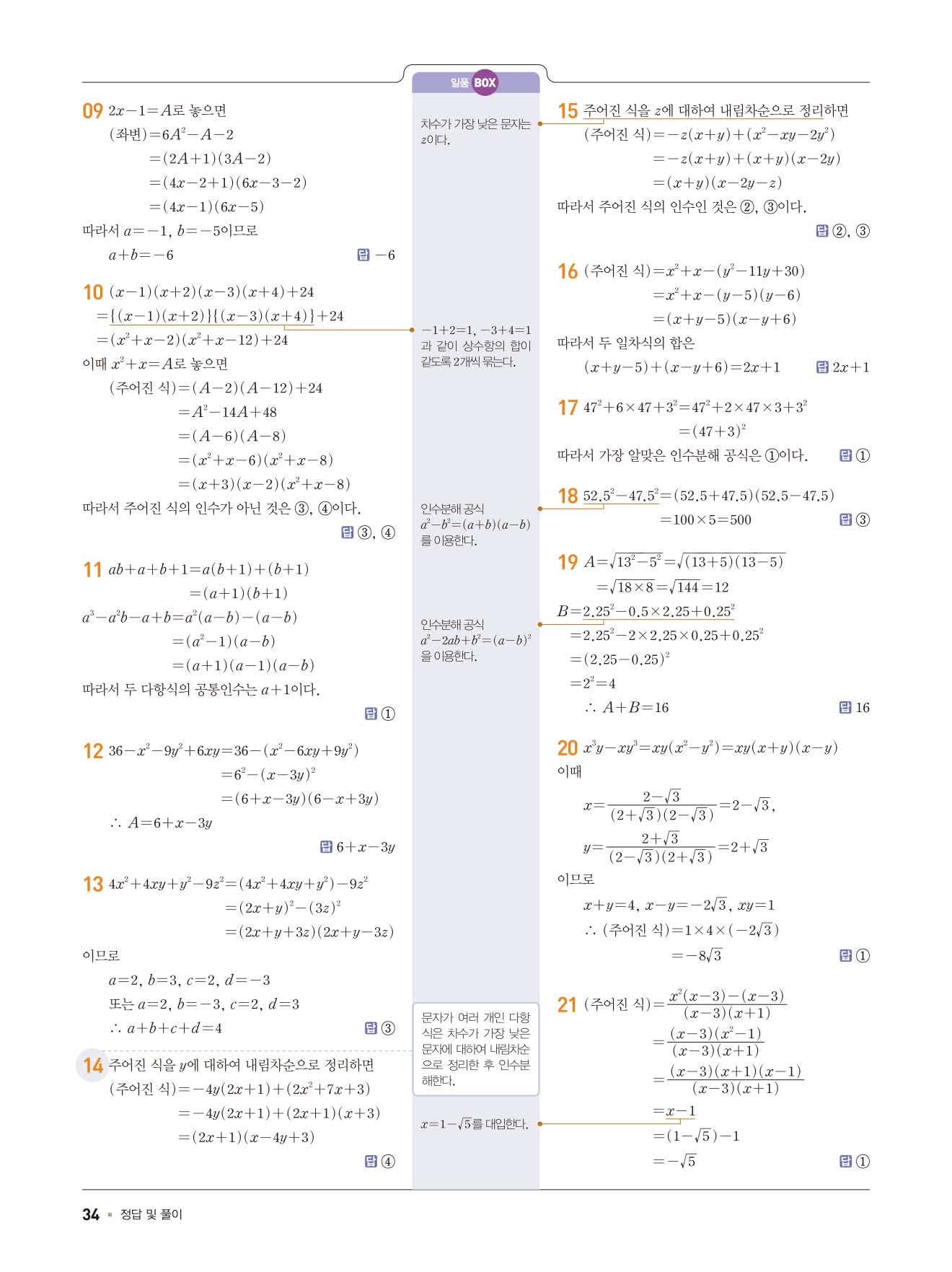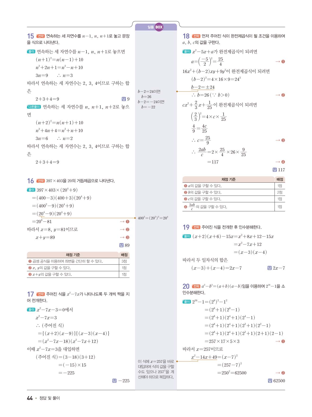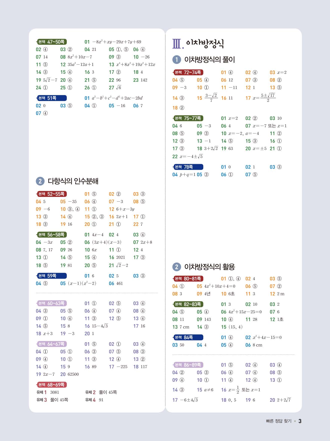 일품중등수학 중3상 3-1 답지 사진답지 빠른답지 모바일최적화