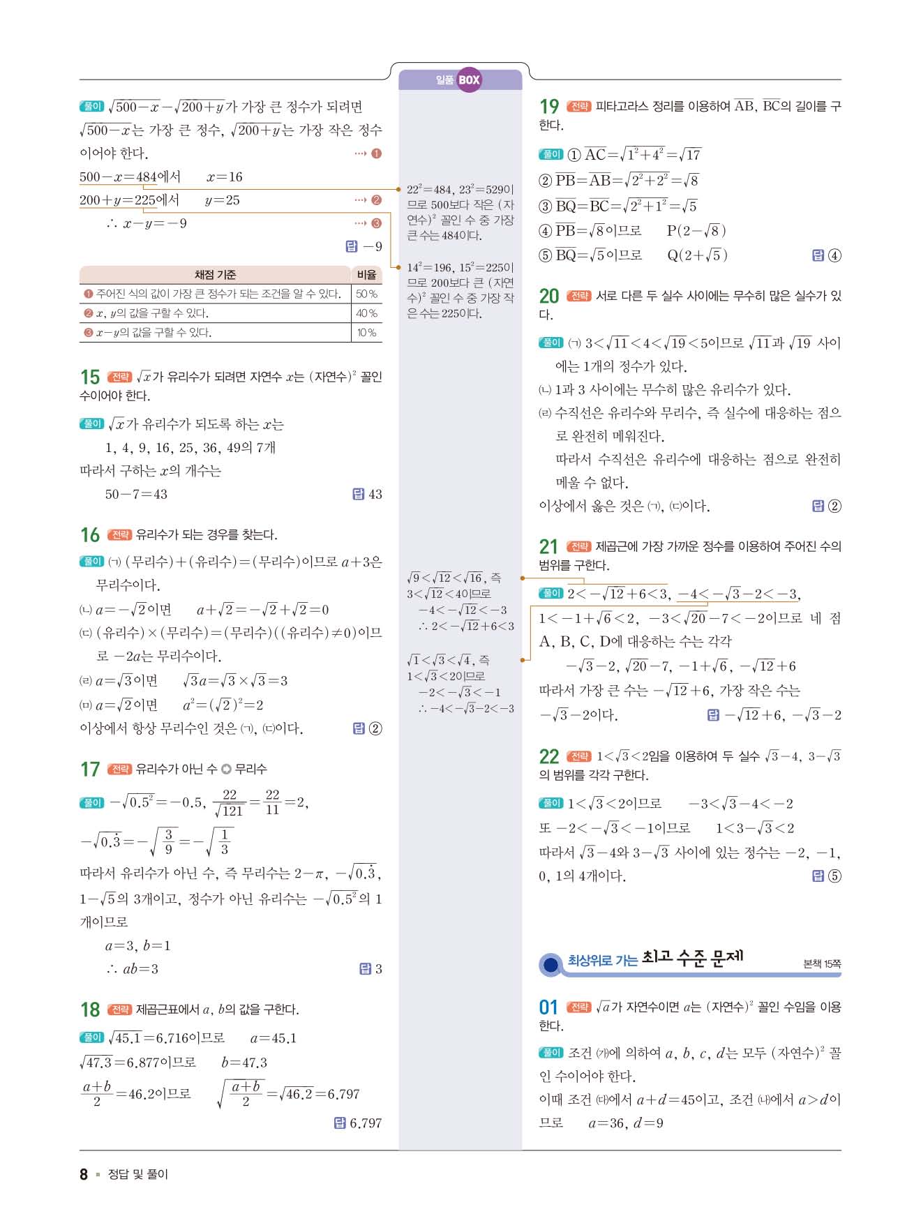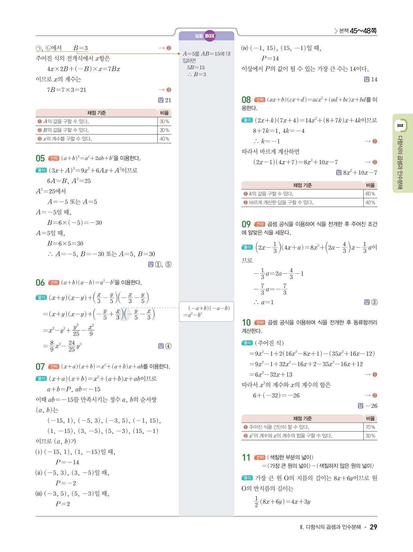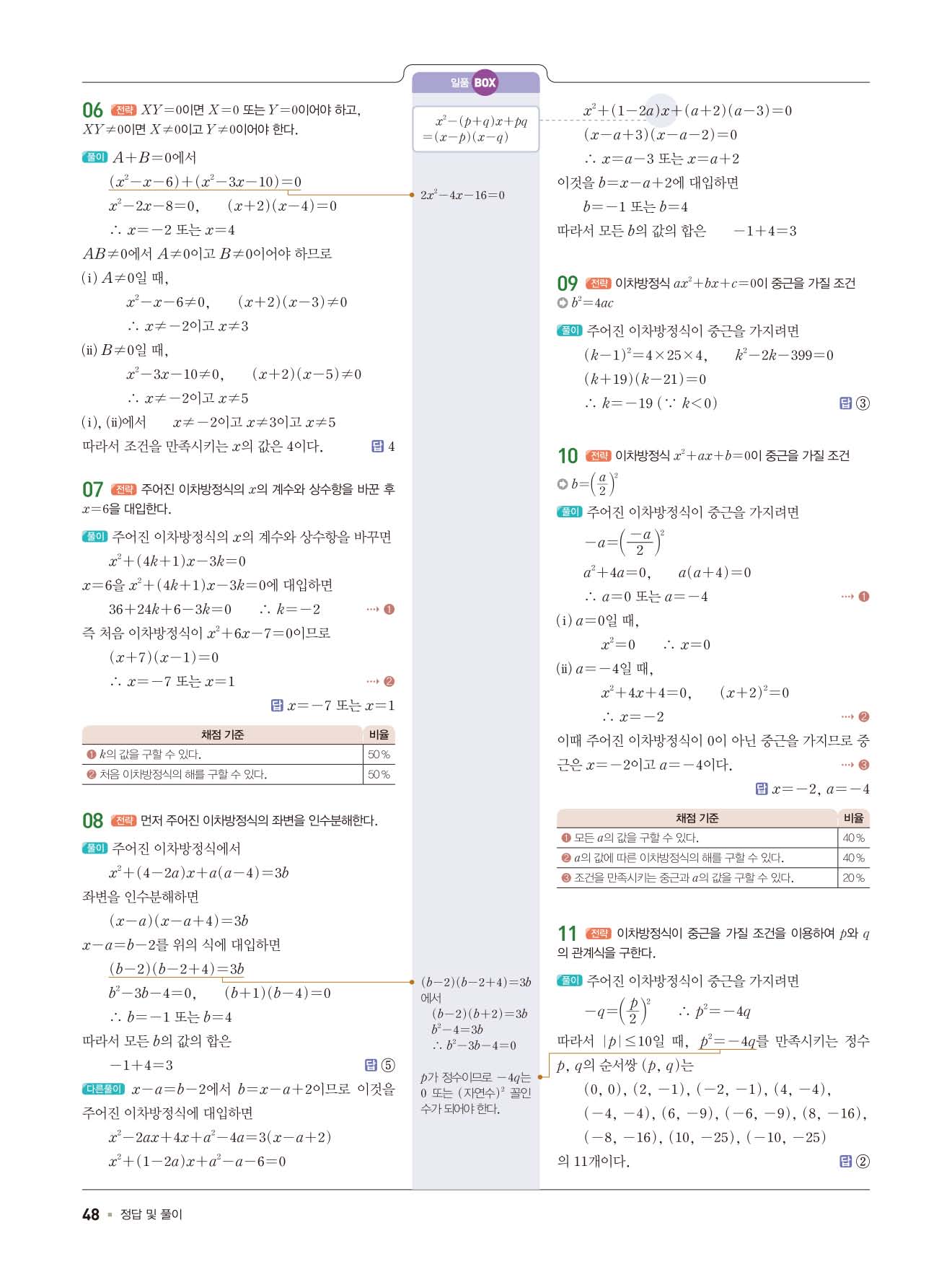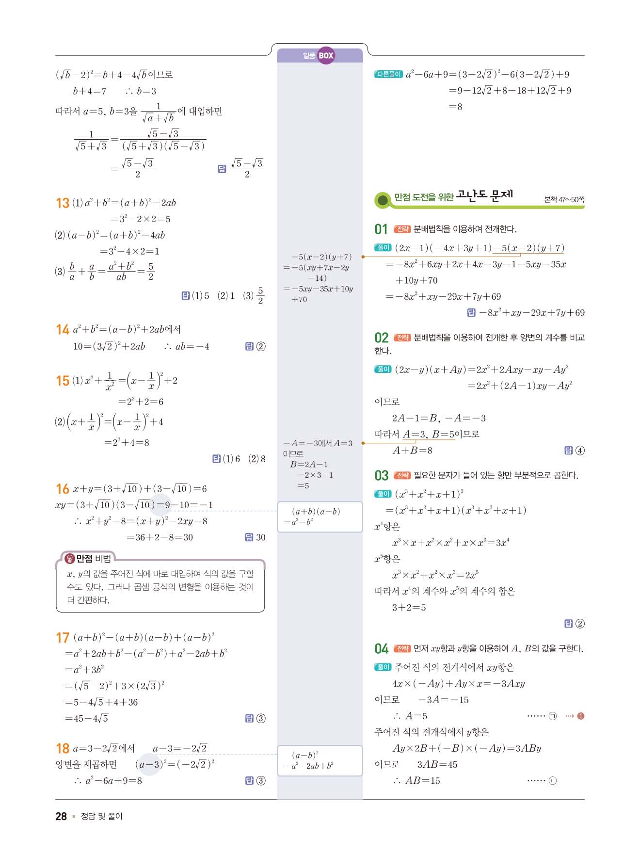 일품중등수학 중3상 3-1 답지 사진답지 빠른답지 모바일최적화