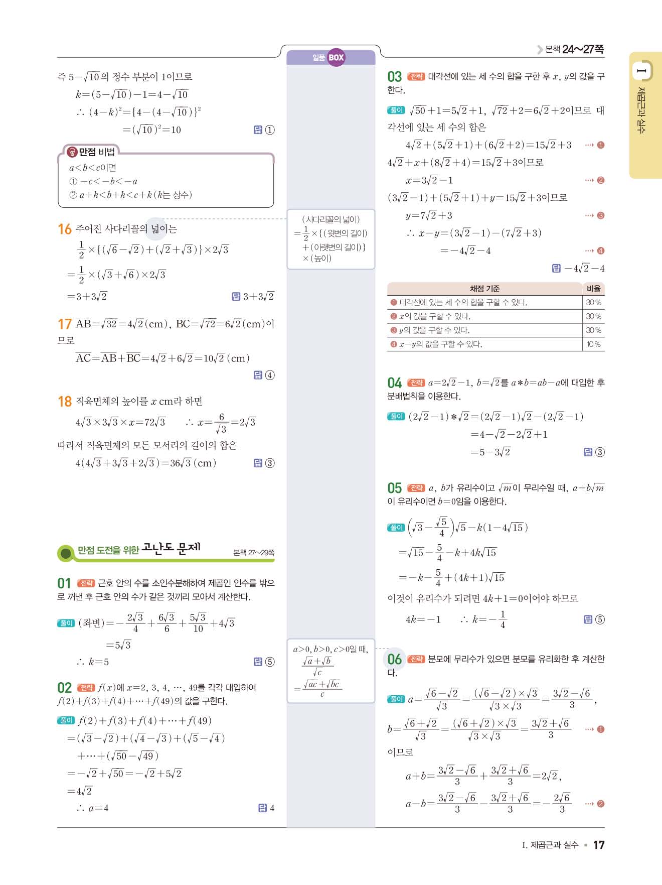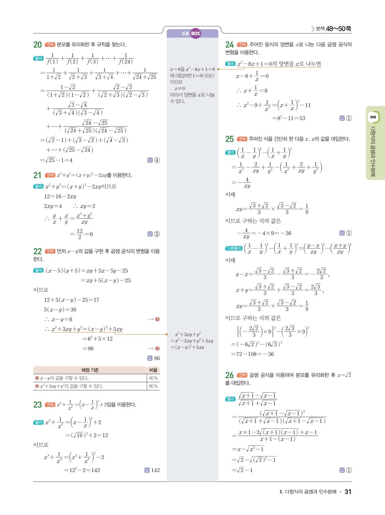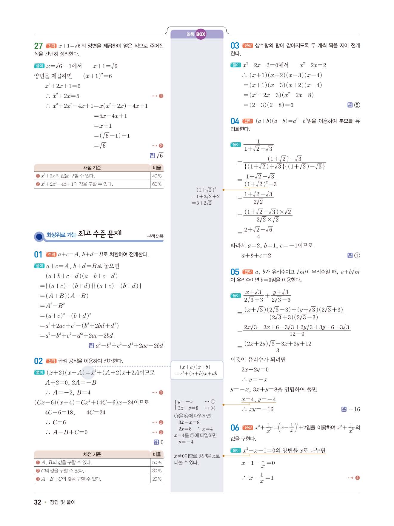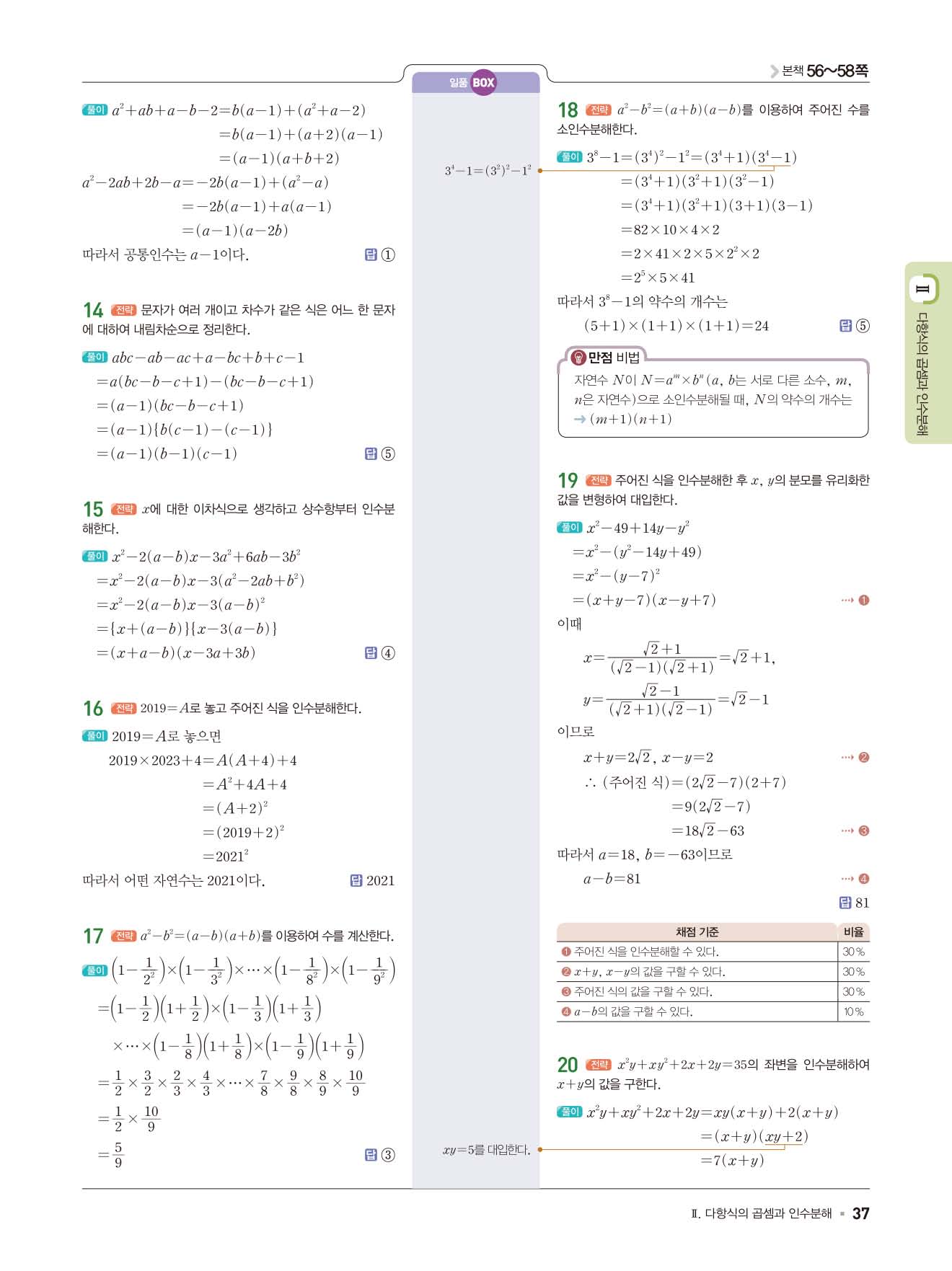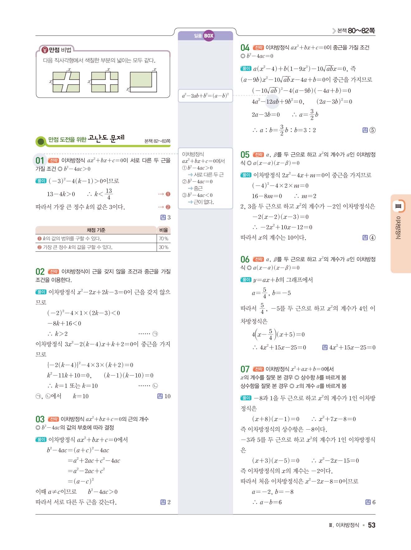 일품중등수학 중3상 3-1 답지 사진답지 빠른답지 모바일최적화