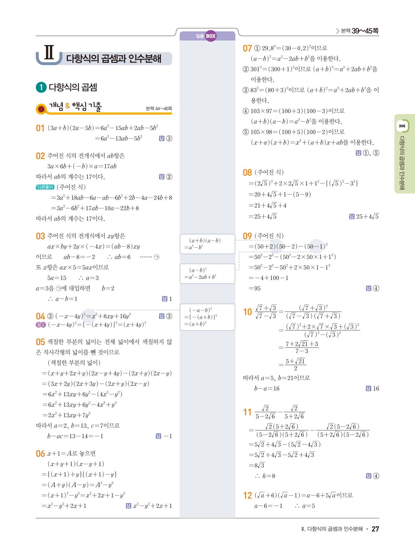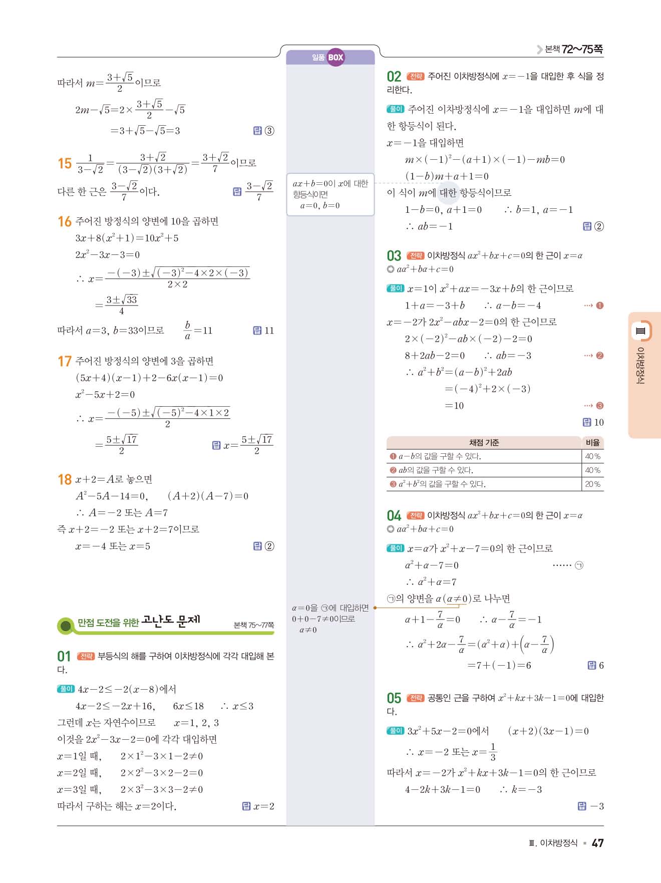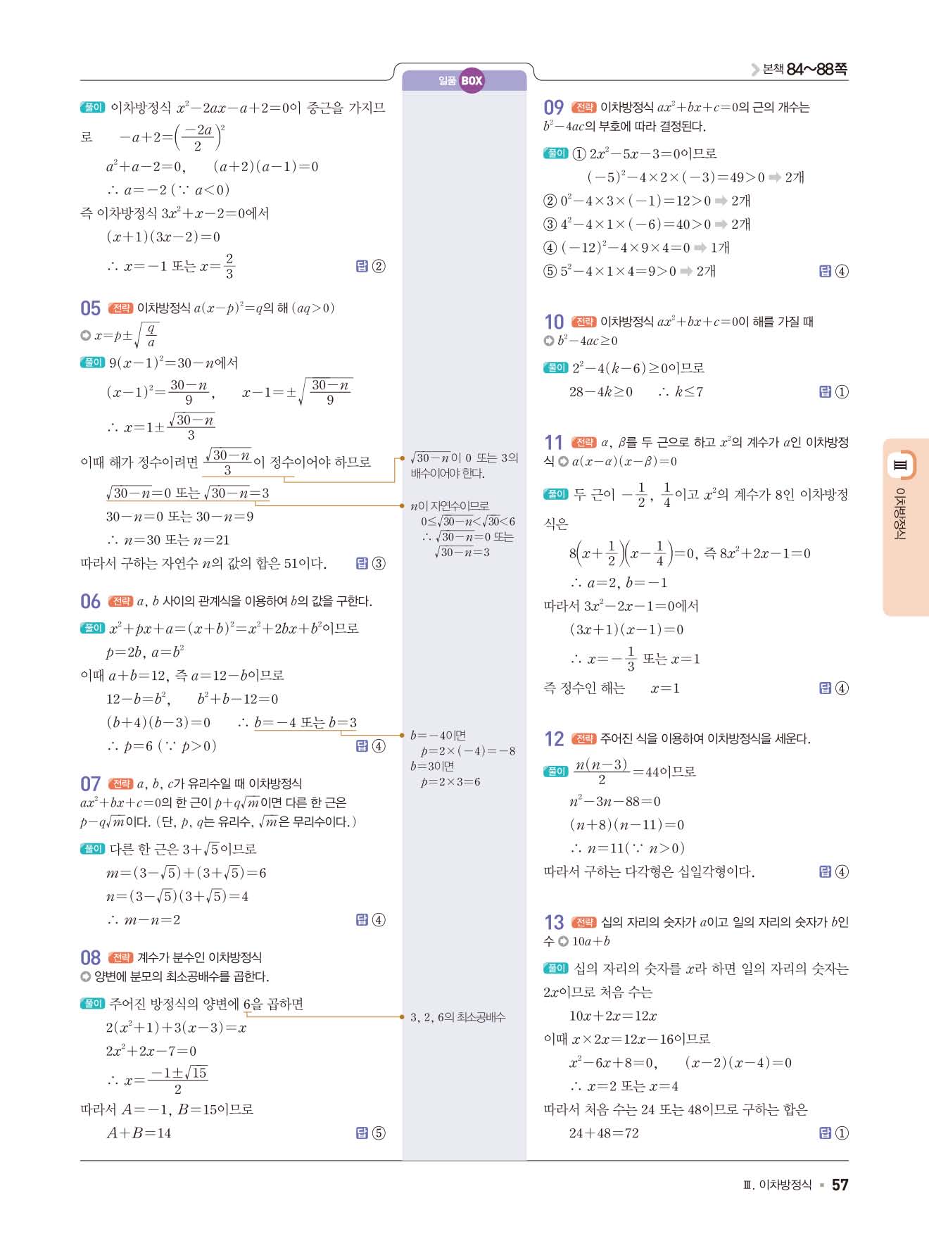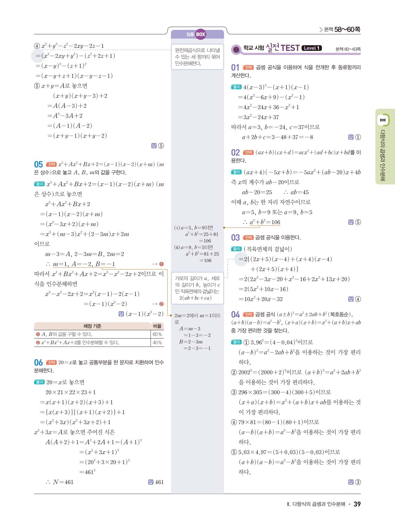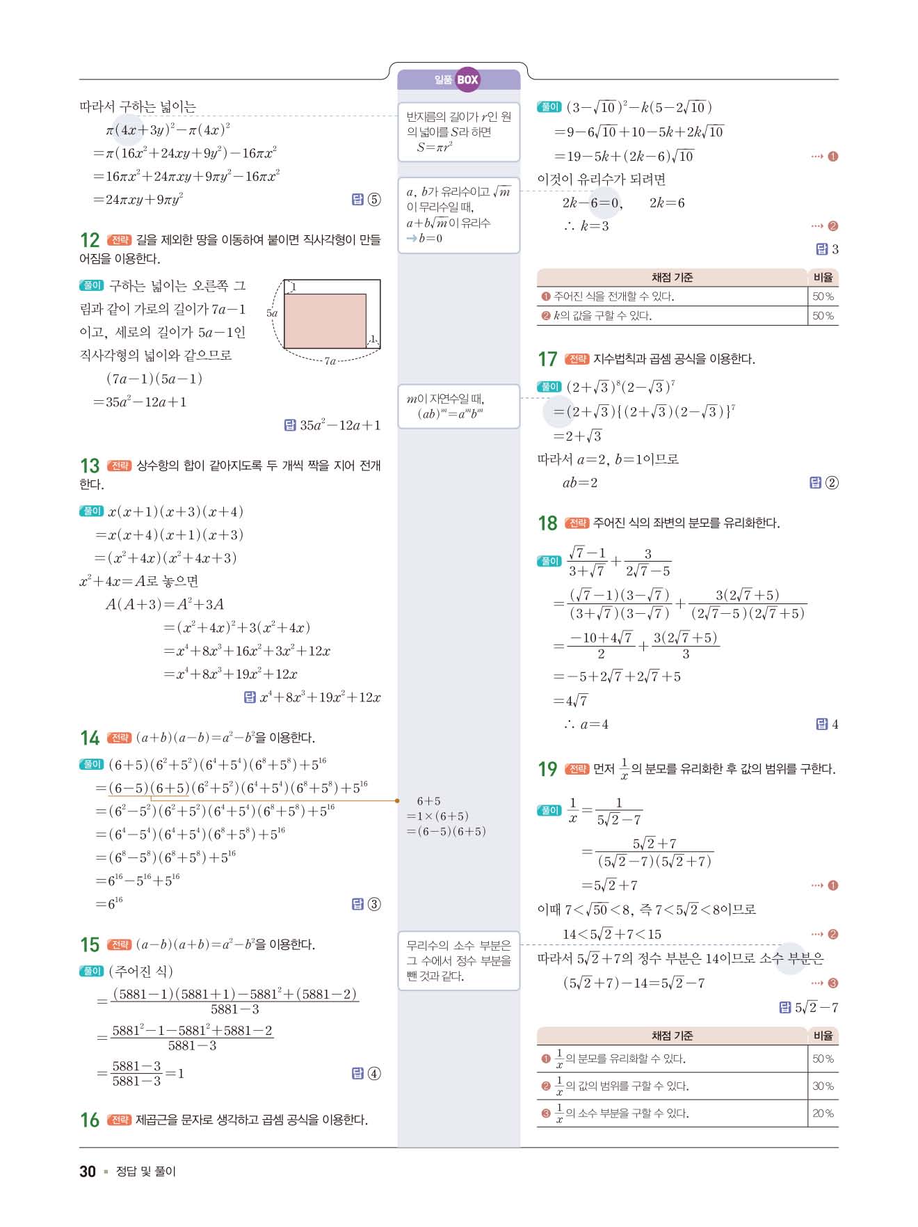 일품중등수학 중3상 3-1 답지 사진답지 빠른답지 모바일최적화