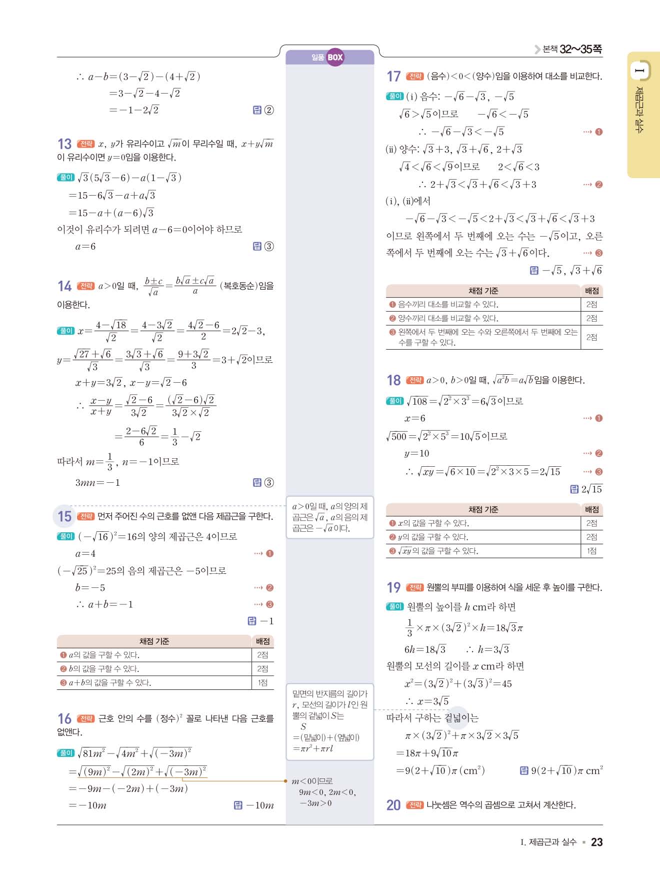 | 천재교육 류희찬 중3 수학교과서 답지 | |