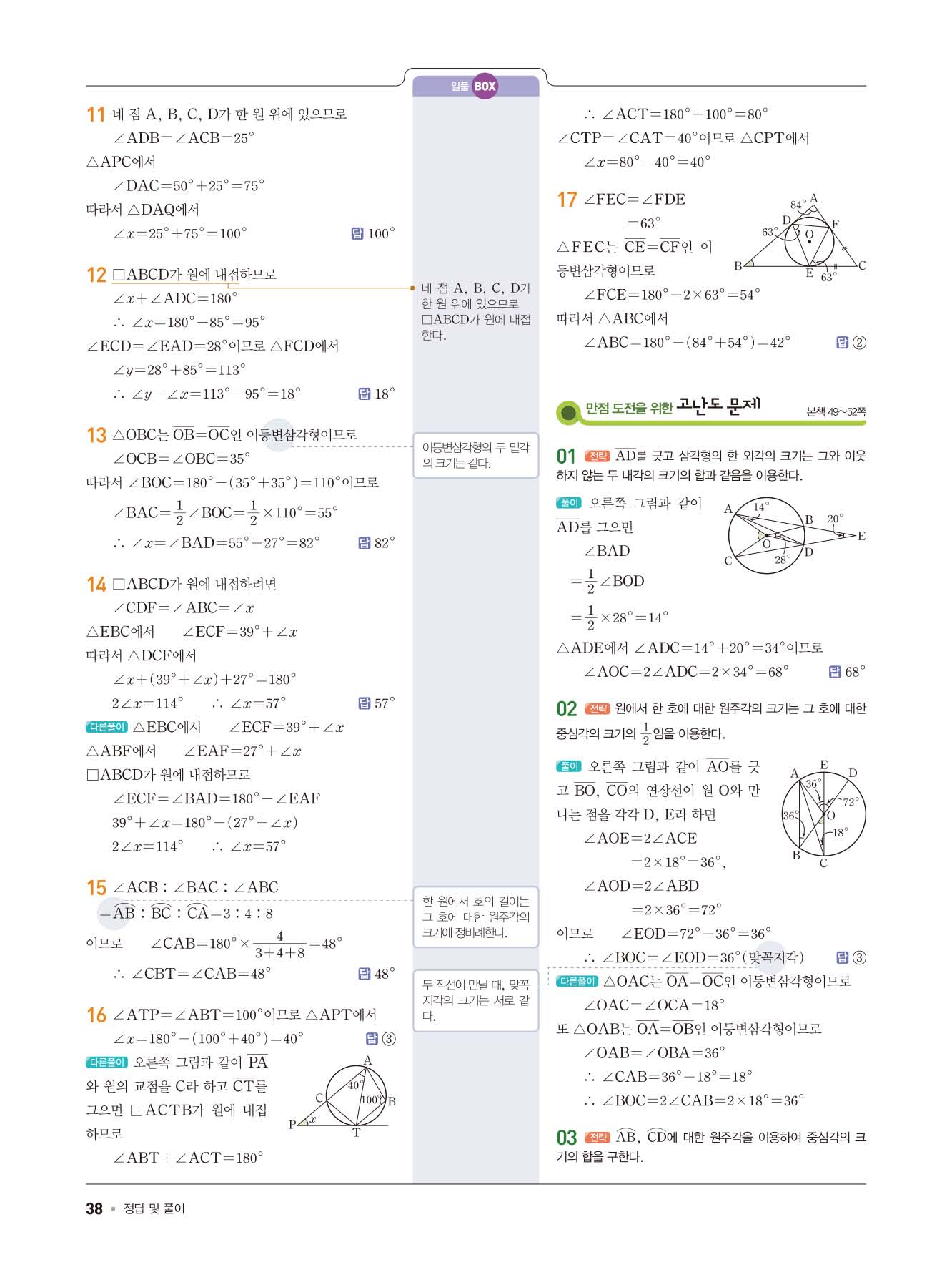일품중등수학 중3하 3-2 답지 사진답지 빠른답지 모바일최적화