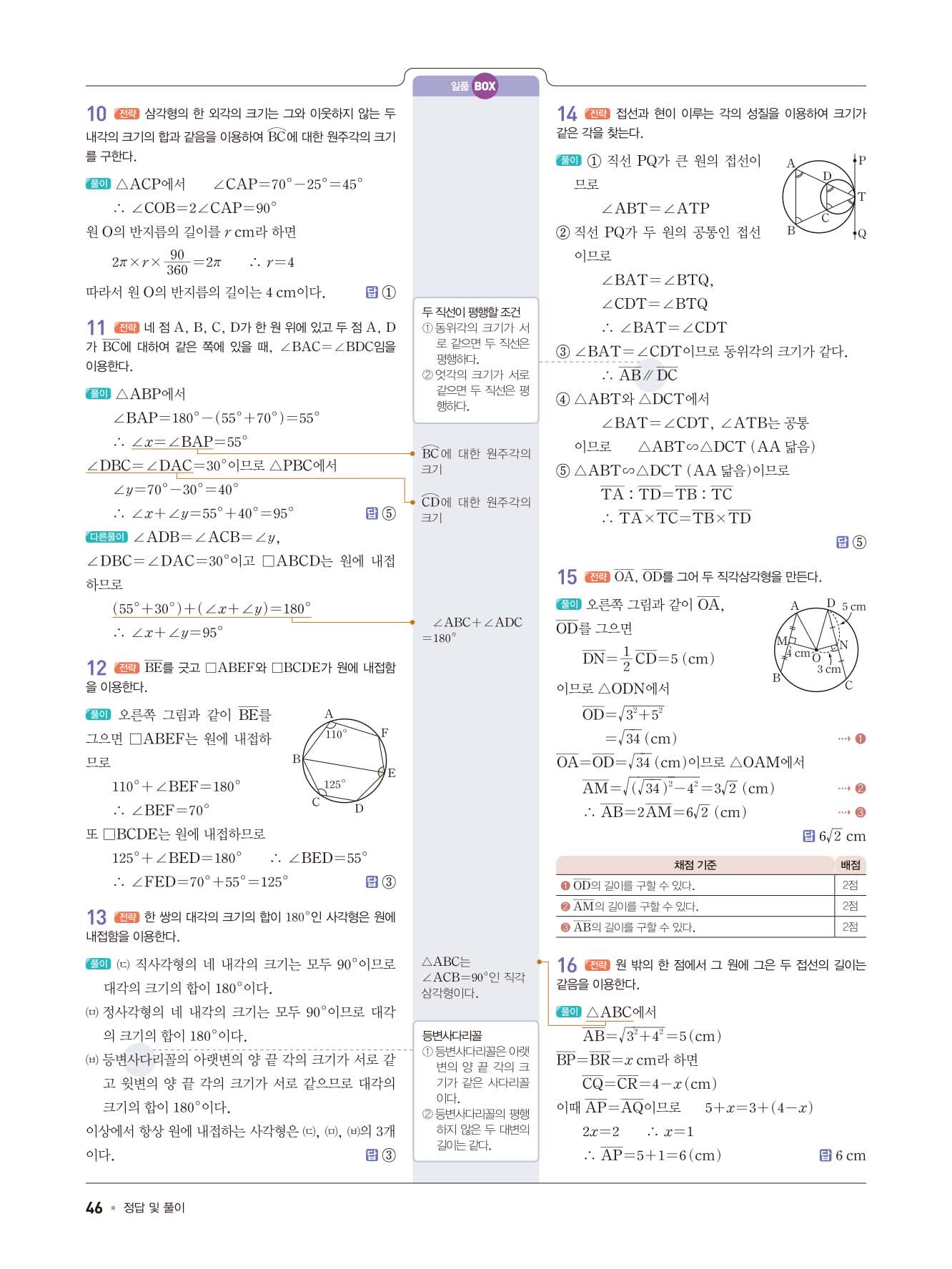 | 천재교육 류희찬 중3 수학교과서 답지 | |