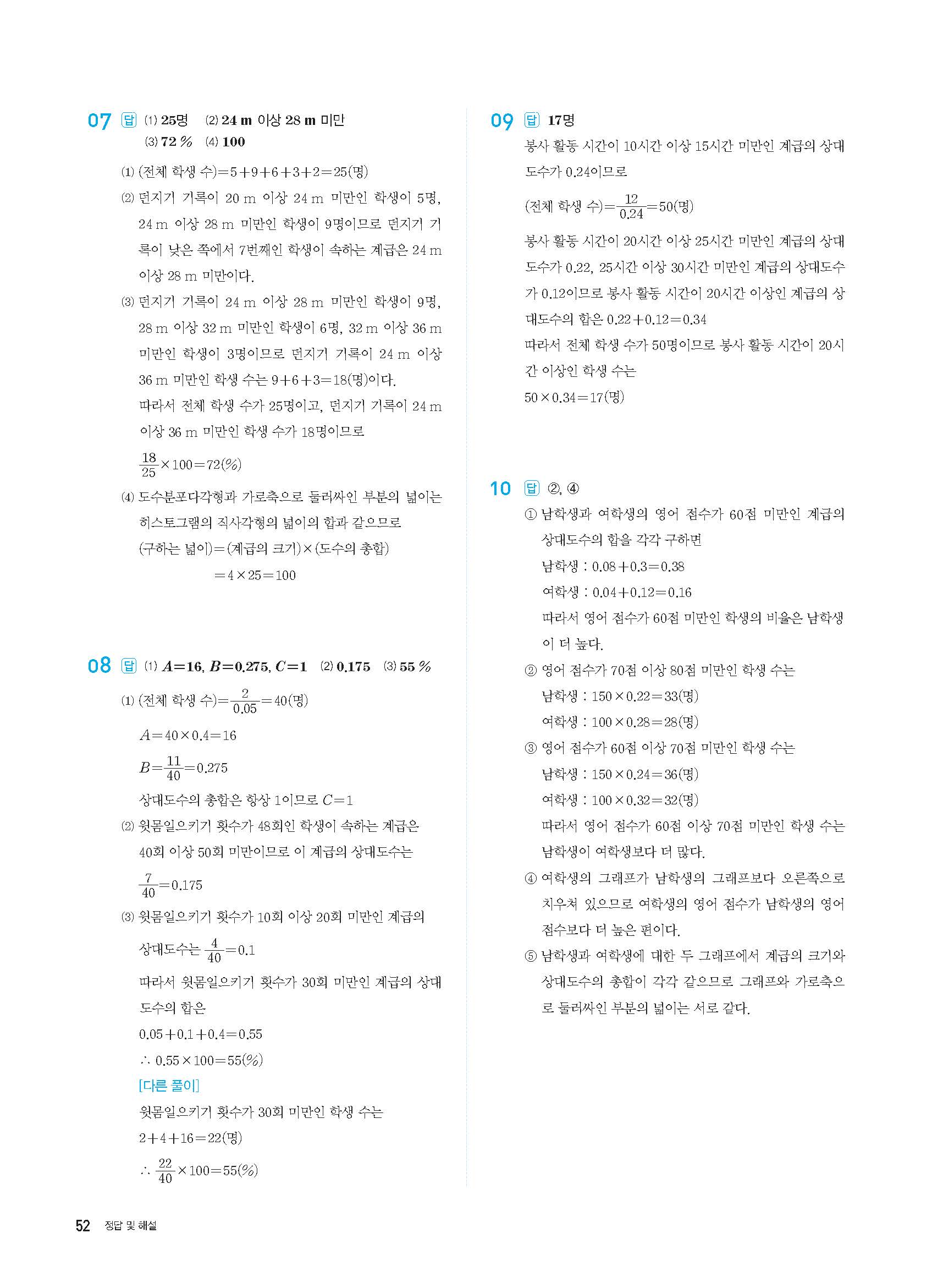 수력충전 중1하 1-2 답지 사진답지 빠른답지 모바일최적화