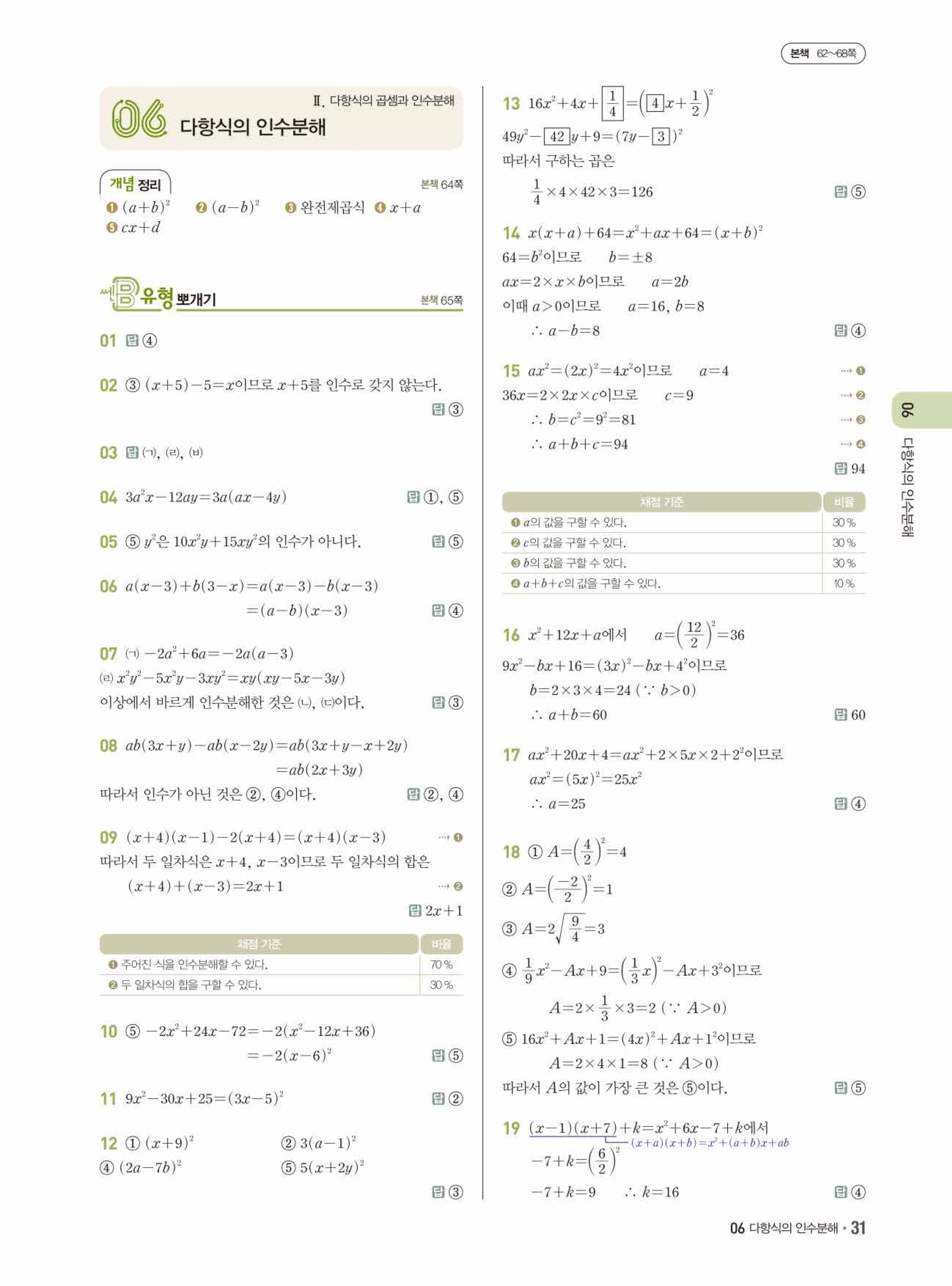 쎈의 B단계와 1:1 닮은 꼴 문제로 구성하여 학교 시험에 출제되는 모든 유형을 빠짐없이 학습할 수 있습니다. 유형별로 「해결 전략-대표 문제-유제」로 구성하여 충분한 연습이 가능하게 하였고, 이를 통해 문제 해결력을 집중적으로 기를 수 있습니다.