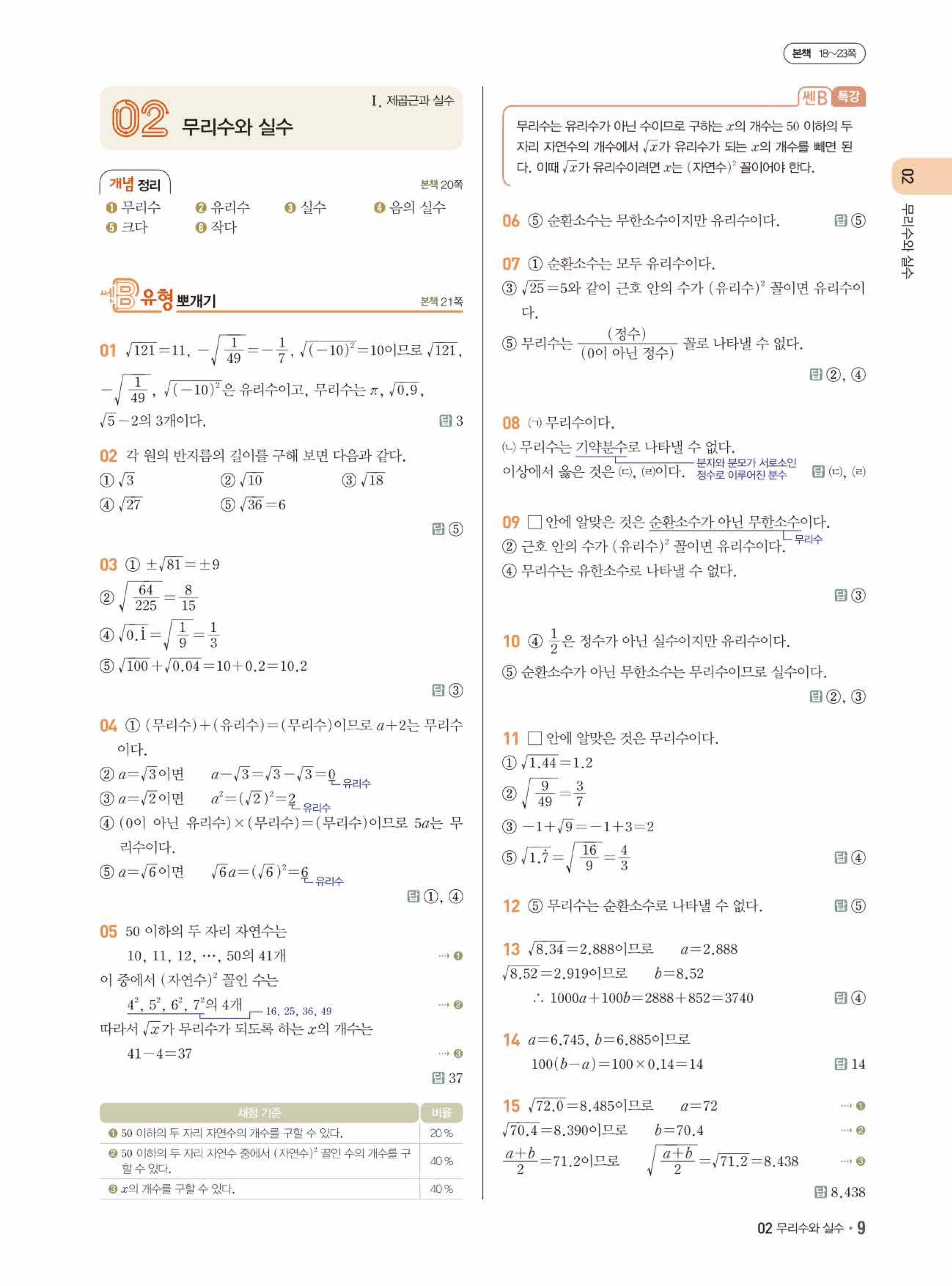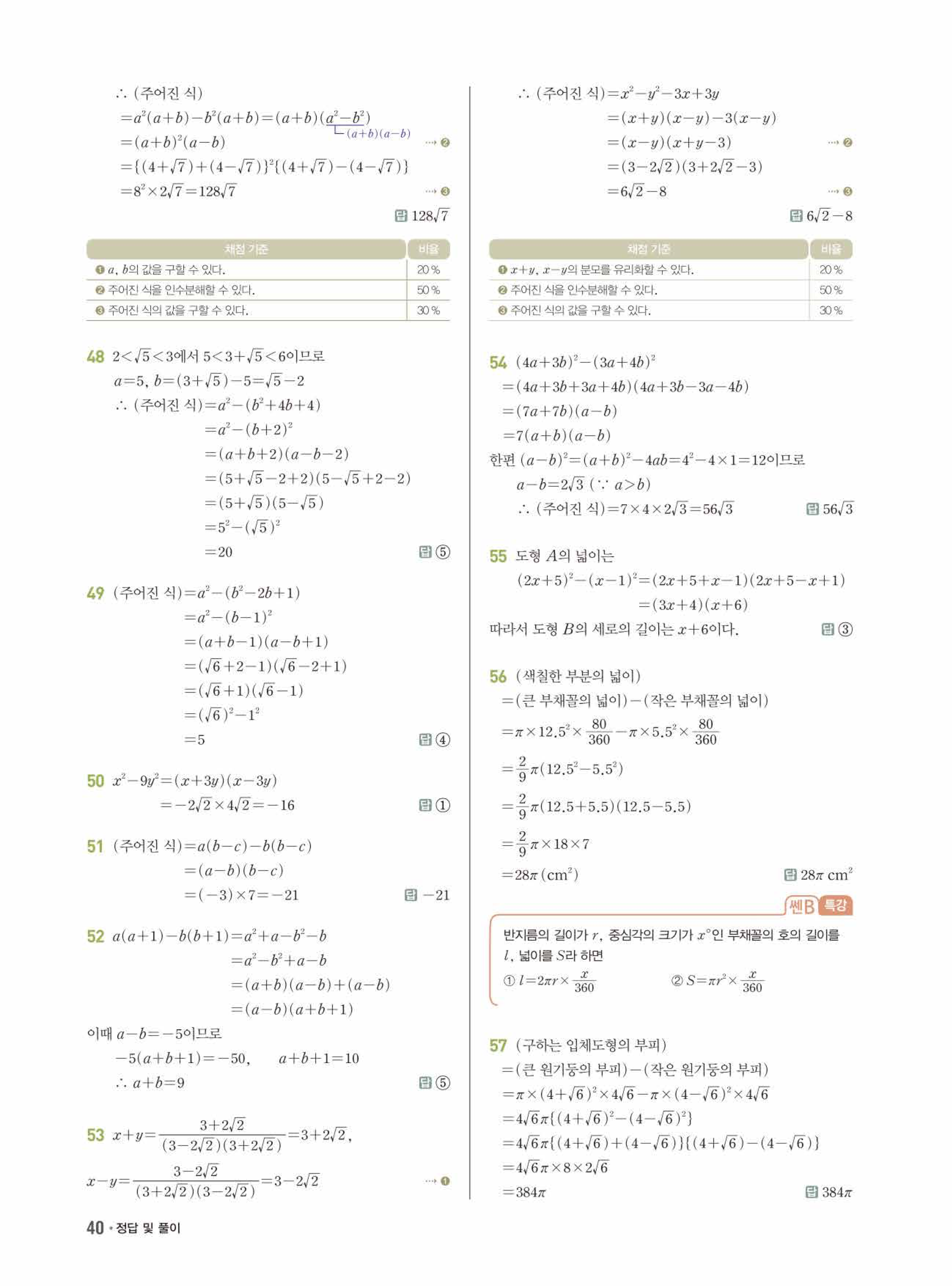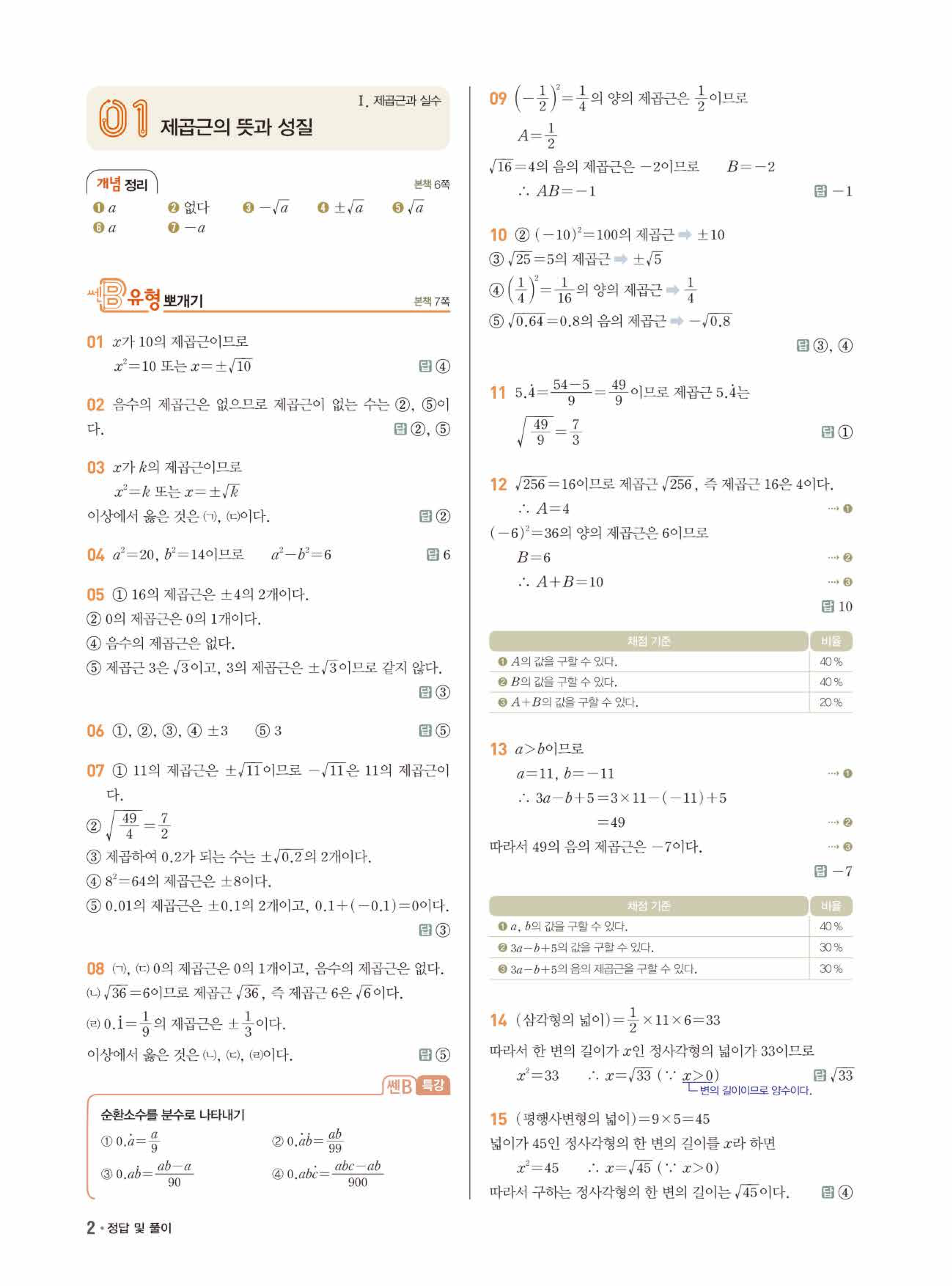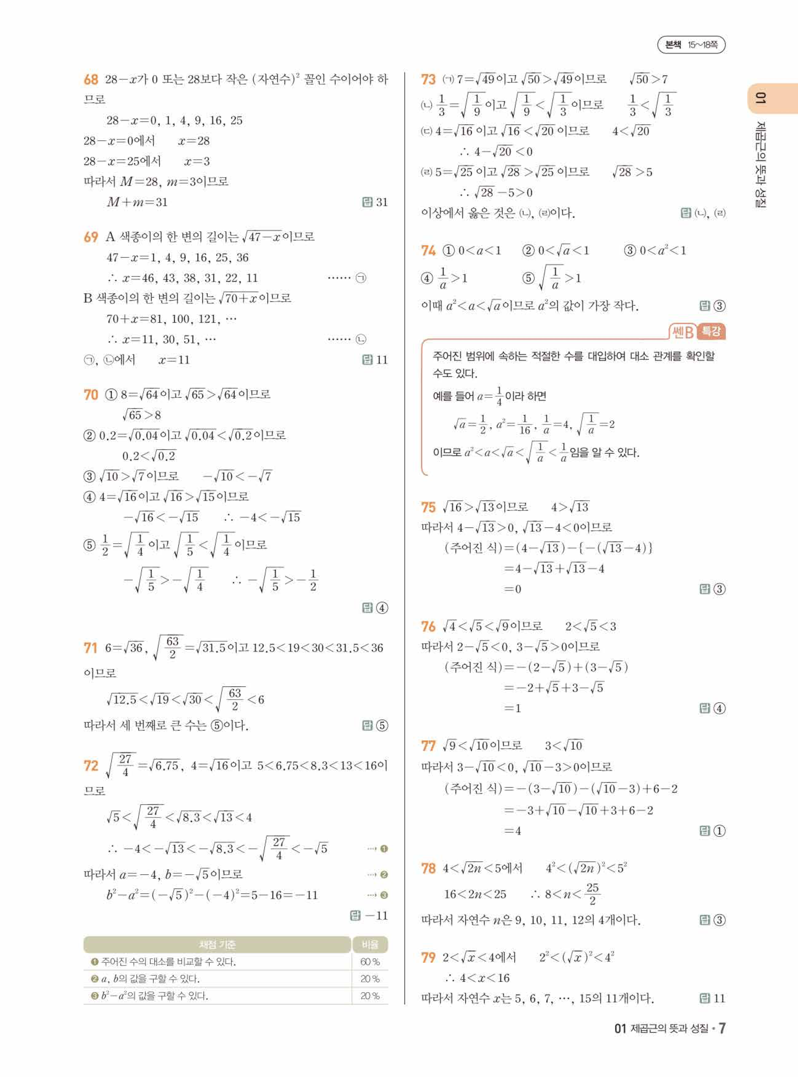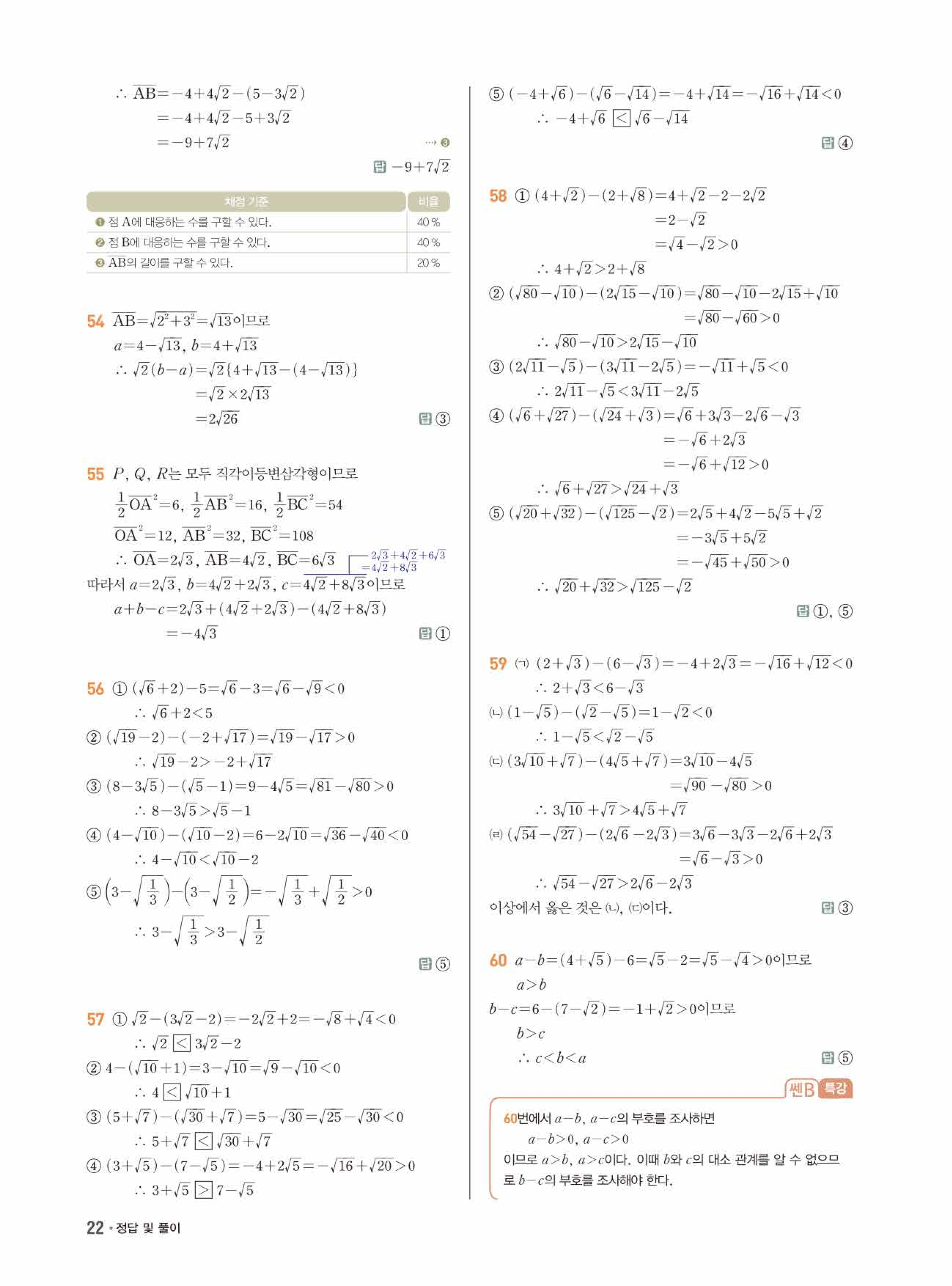 2022 쎈B 중등수학 3-1 답지 해설 다운없이 바로보는 사진답지 모바일최적화
