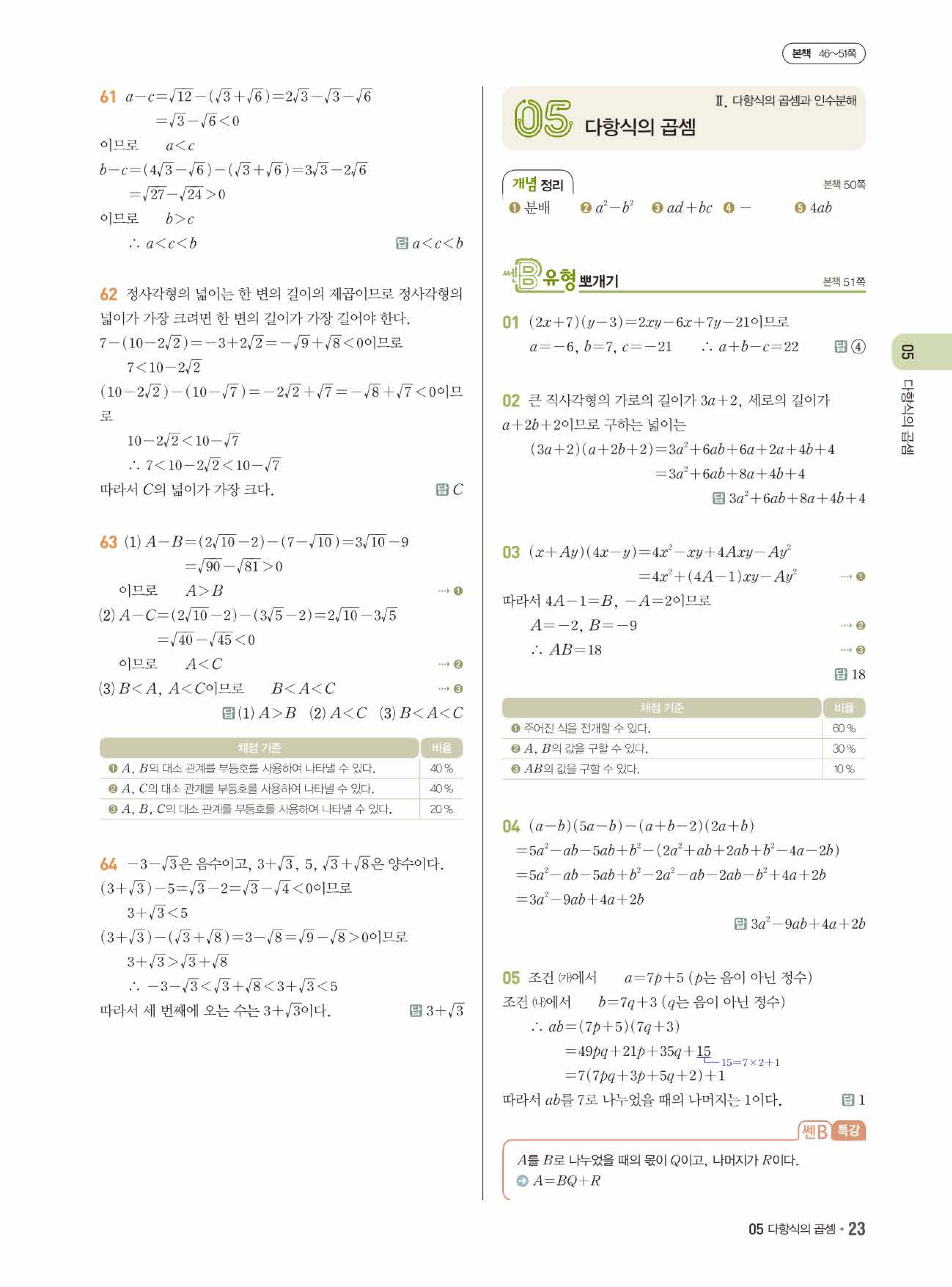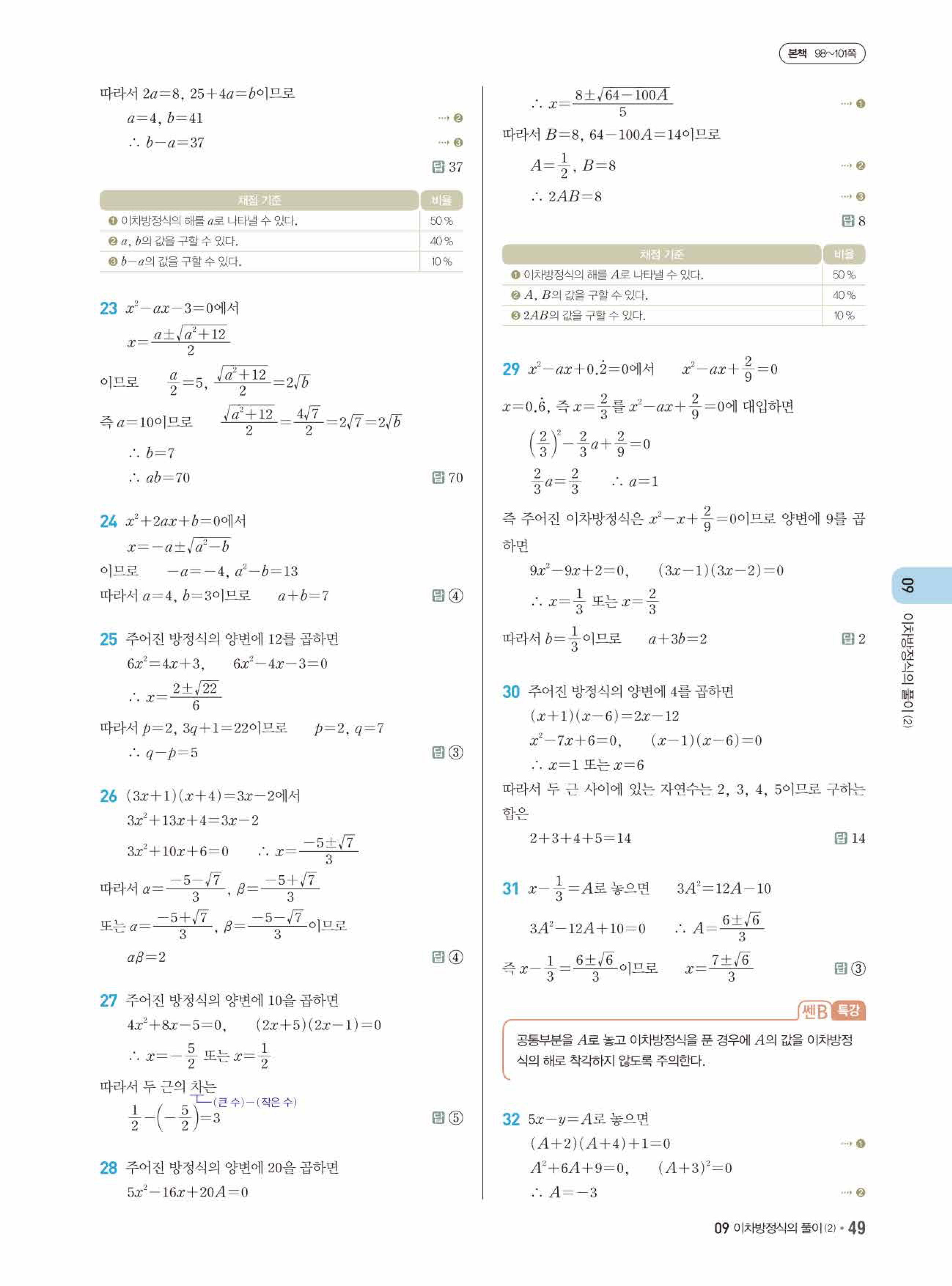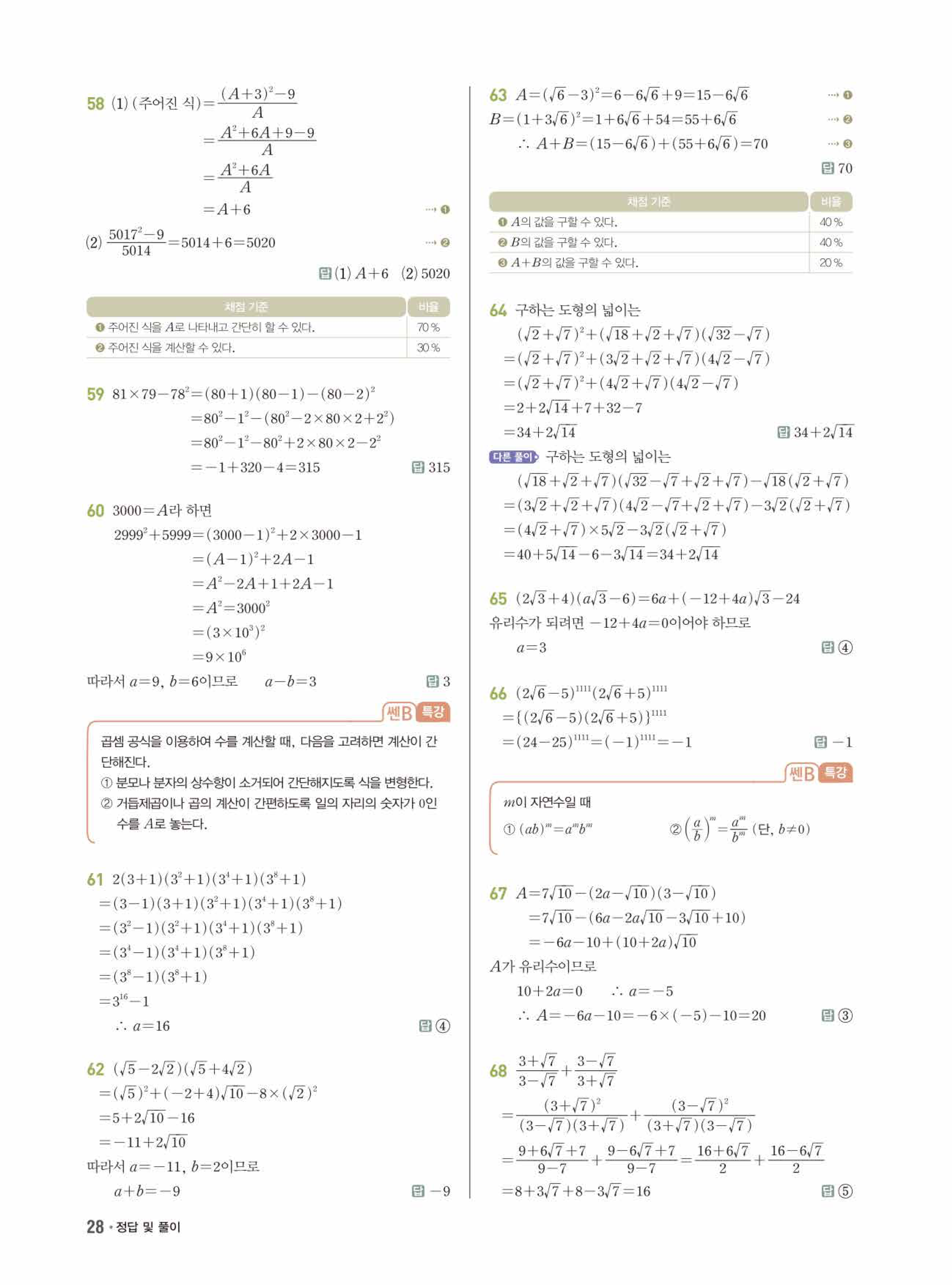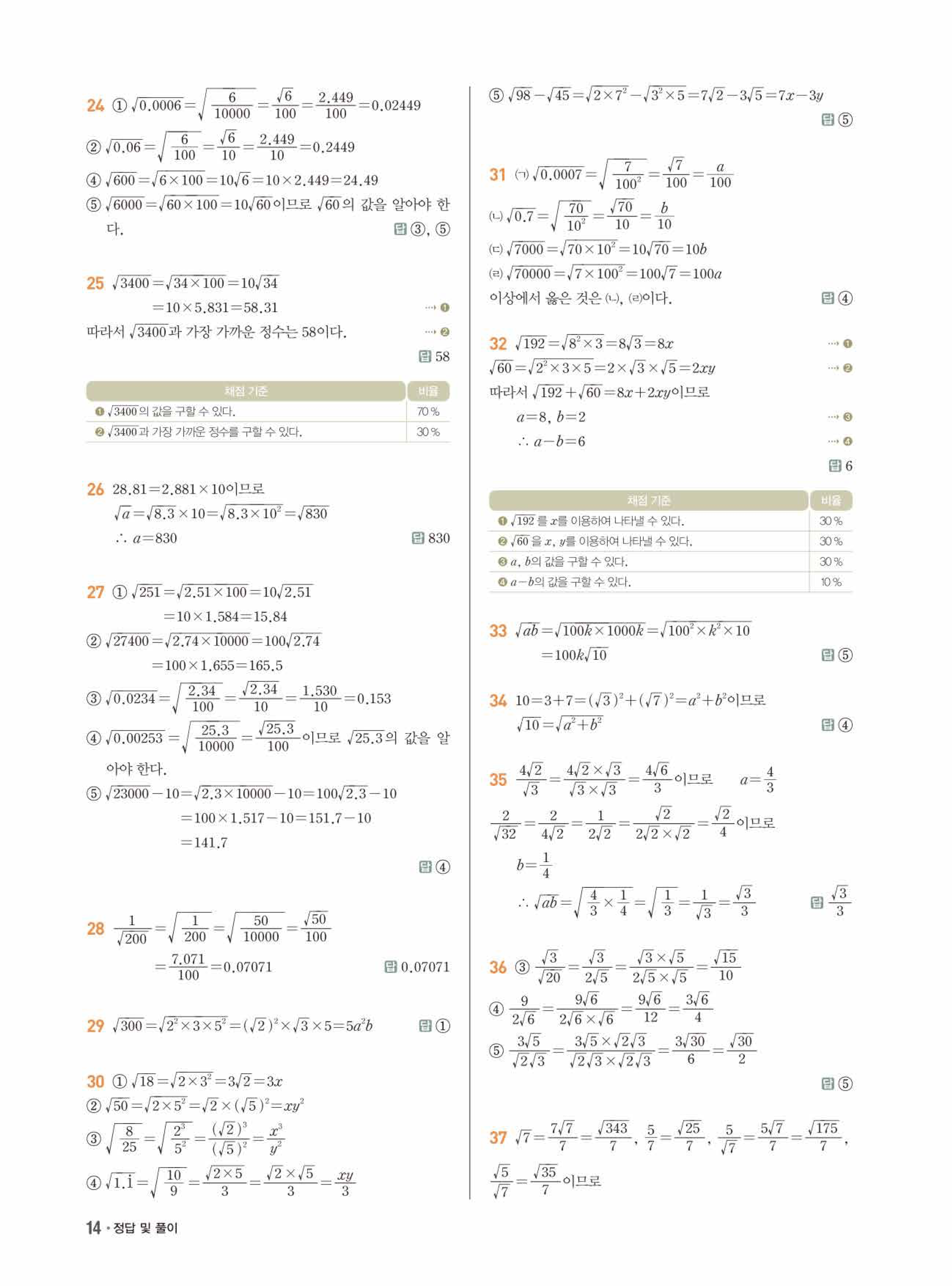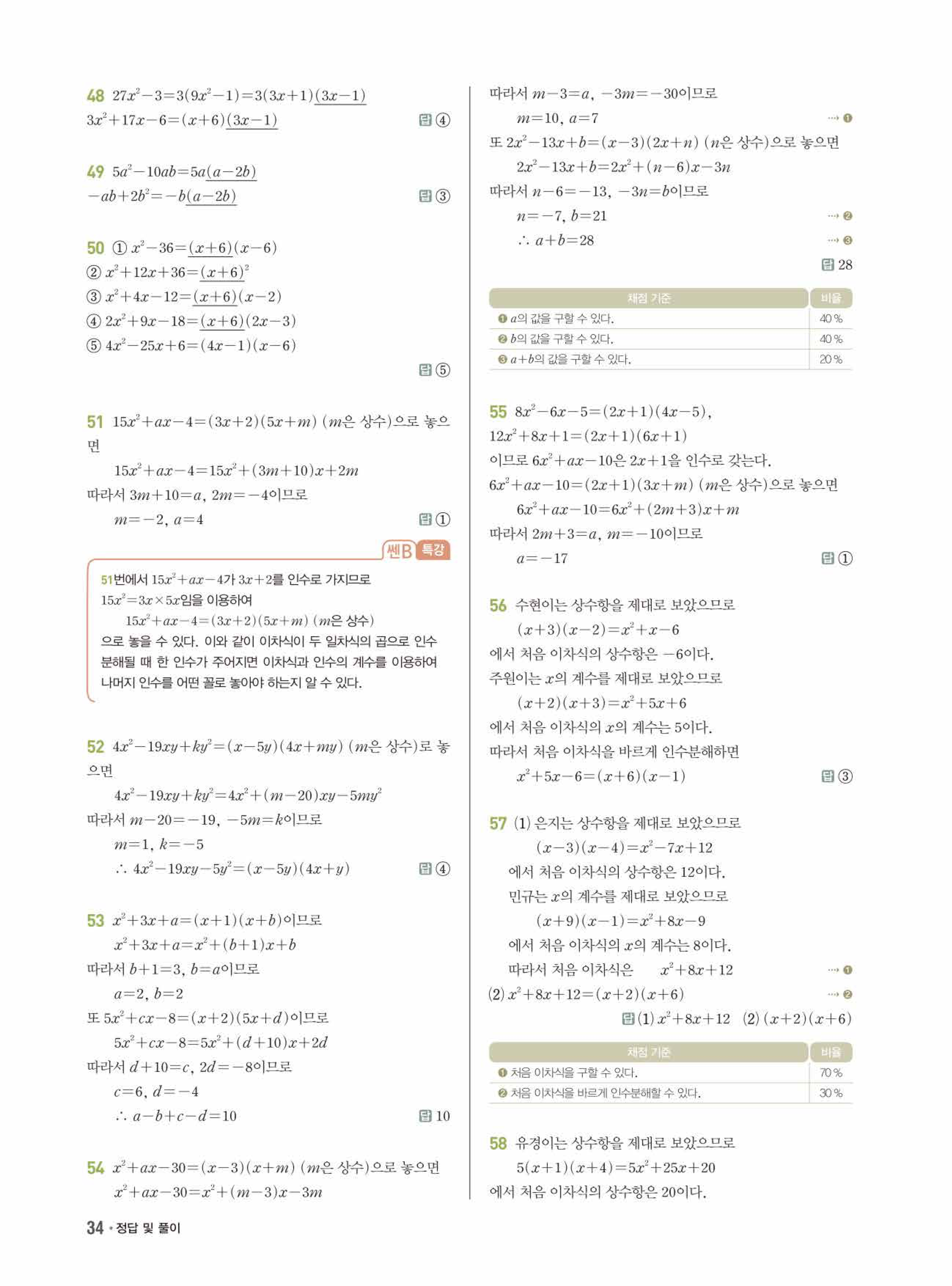 2022 쎈B 중등수학 3-1 답지 해설 다운없이 바로보는 사진답지 모바일최적화