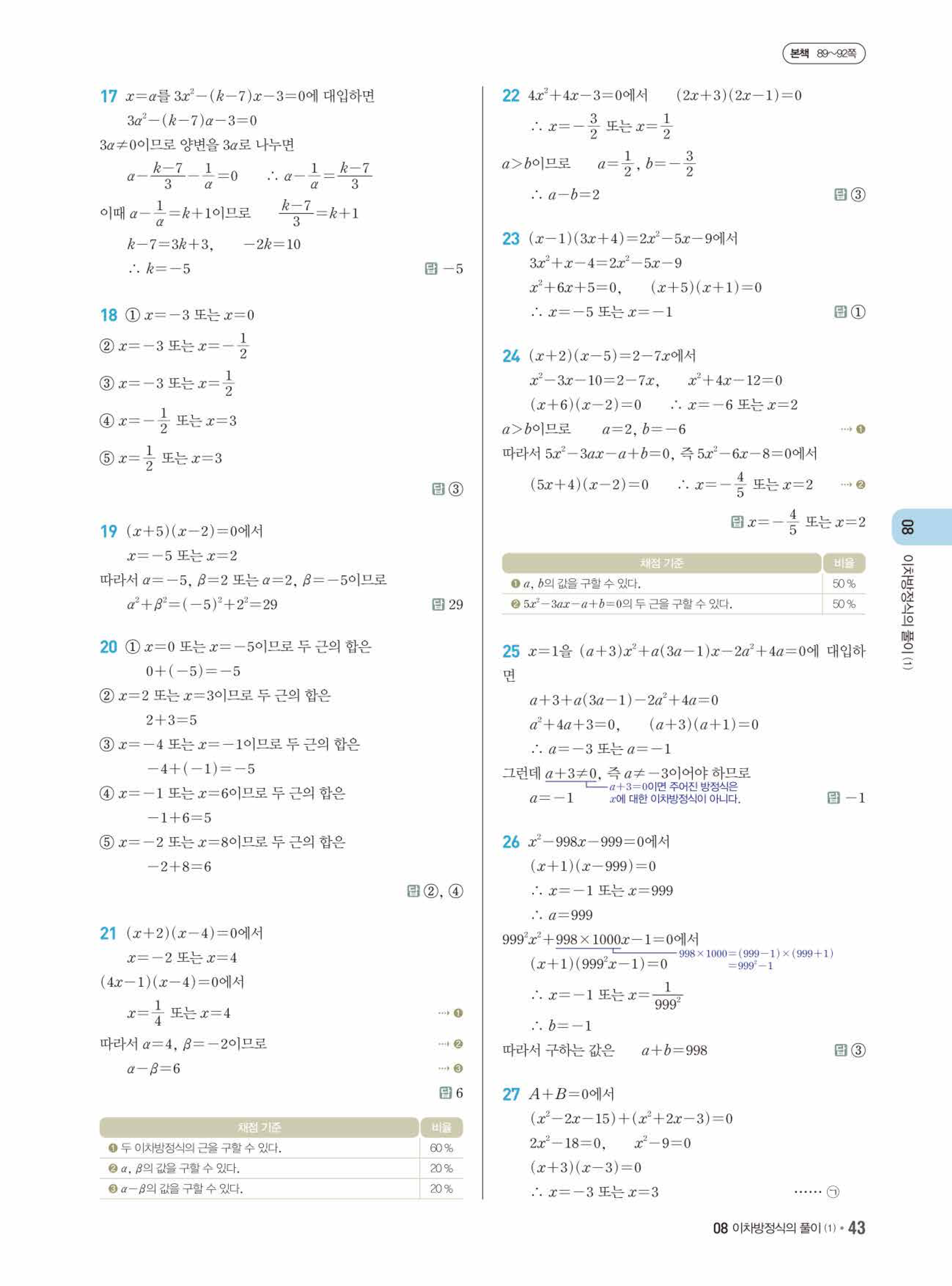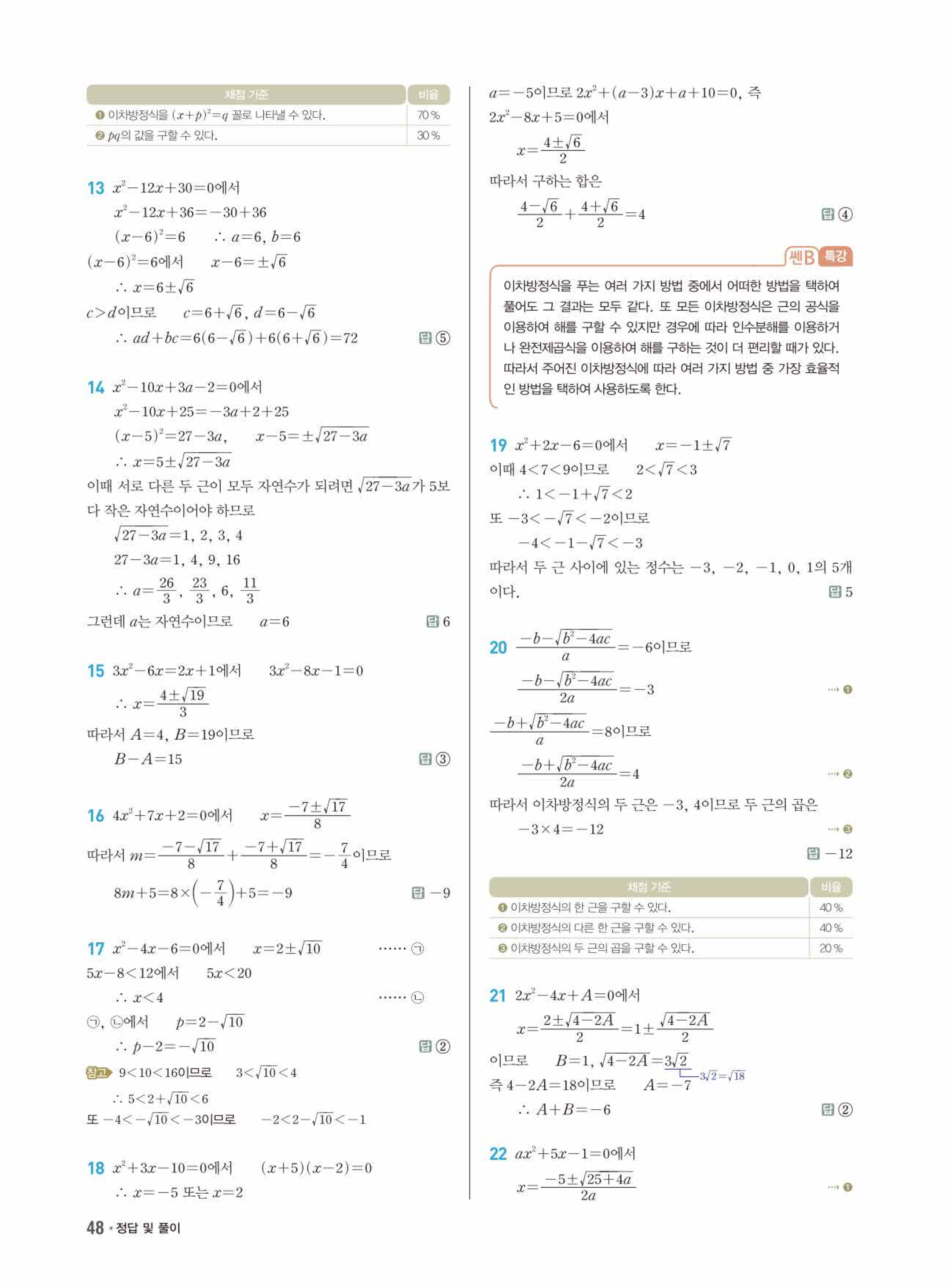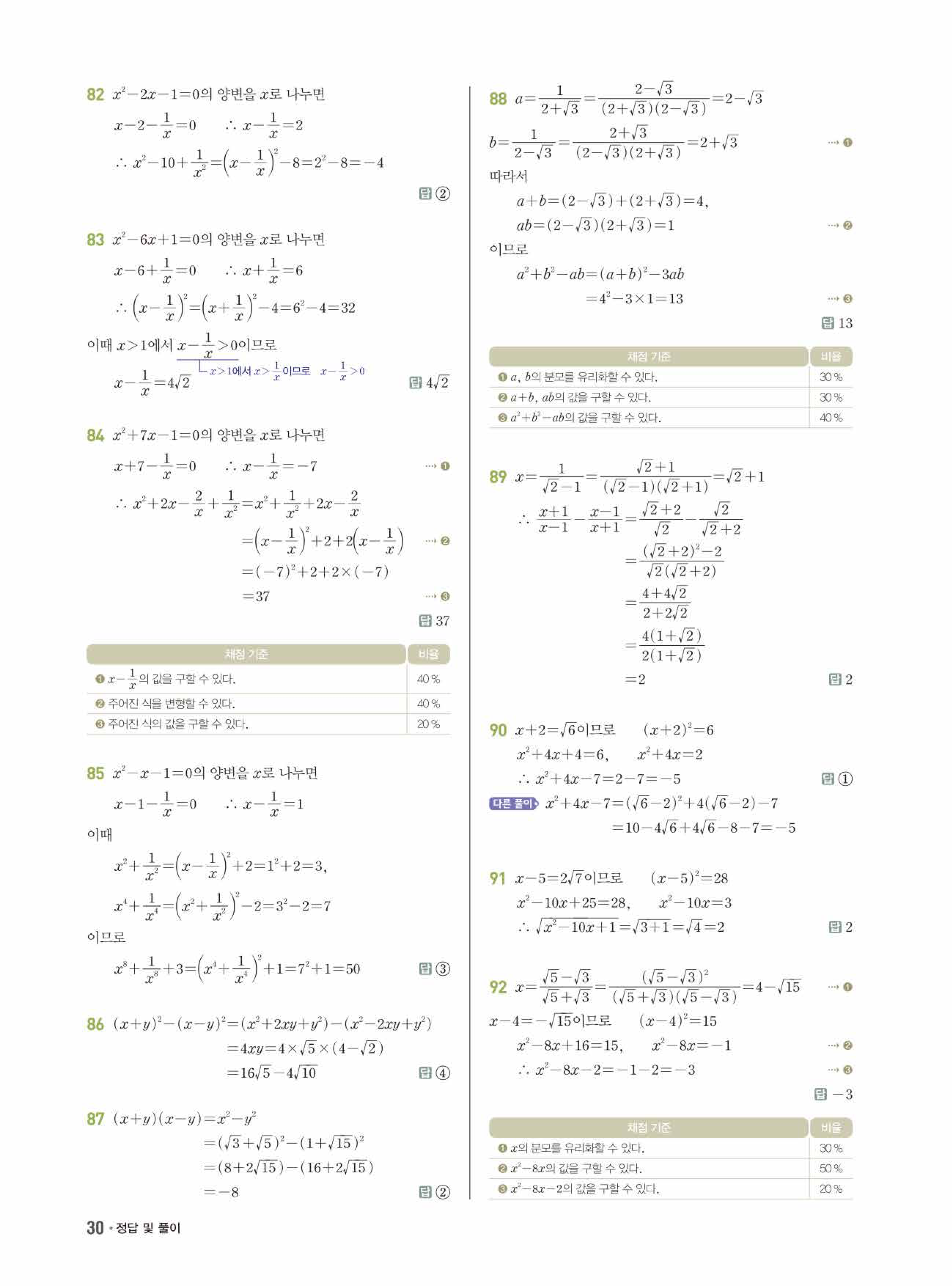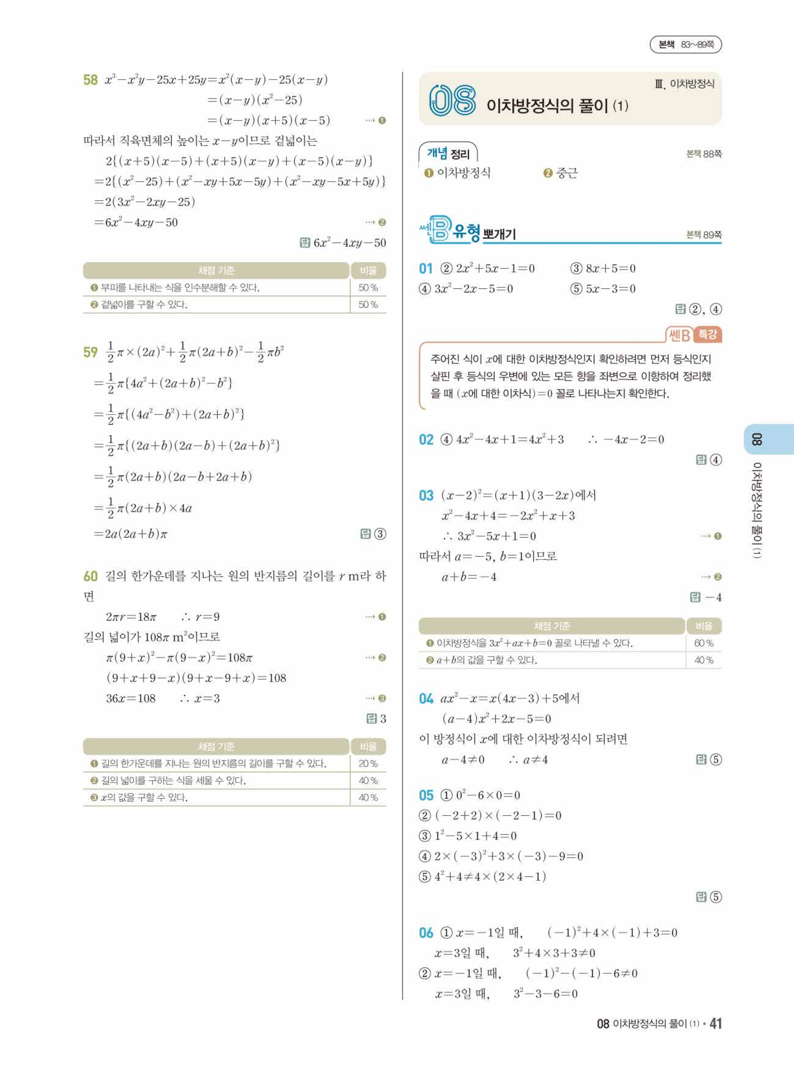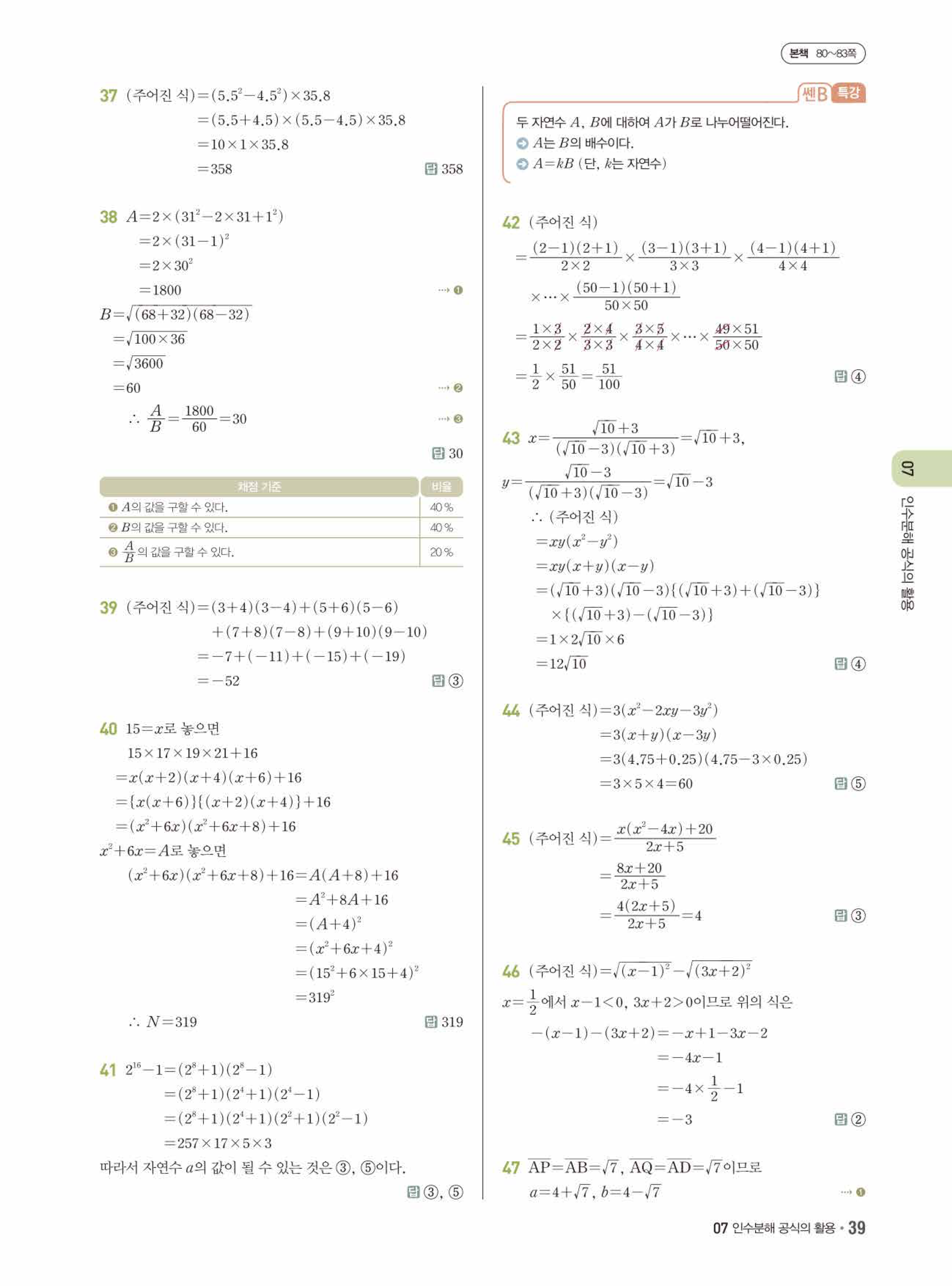 2022 쎈B 중등수학 3-1 답지 해설 다운없이 바로보는 사진답지 모바일최적화