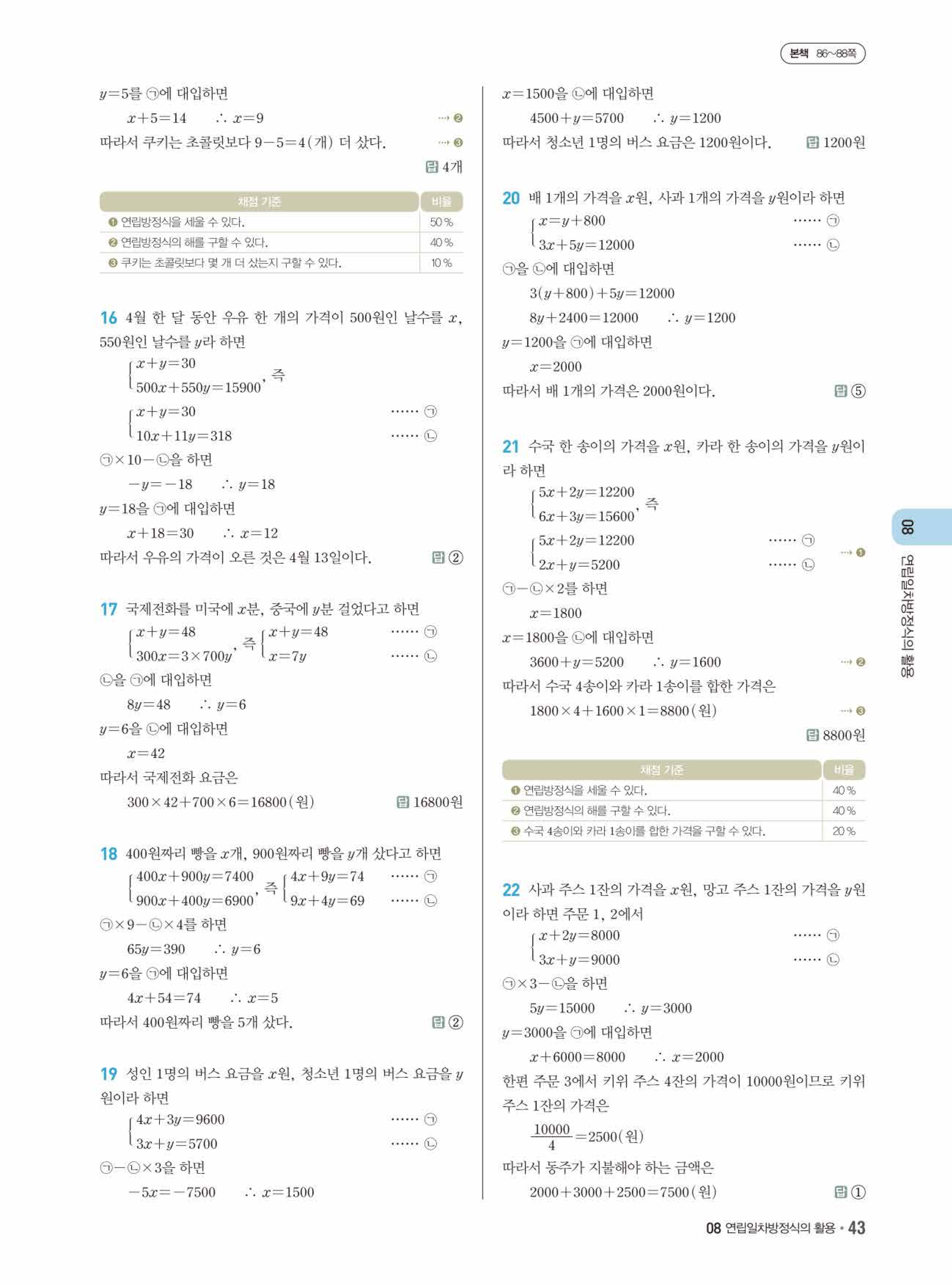 08 연립일차방정식의 활용