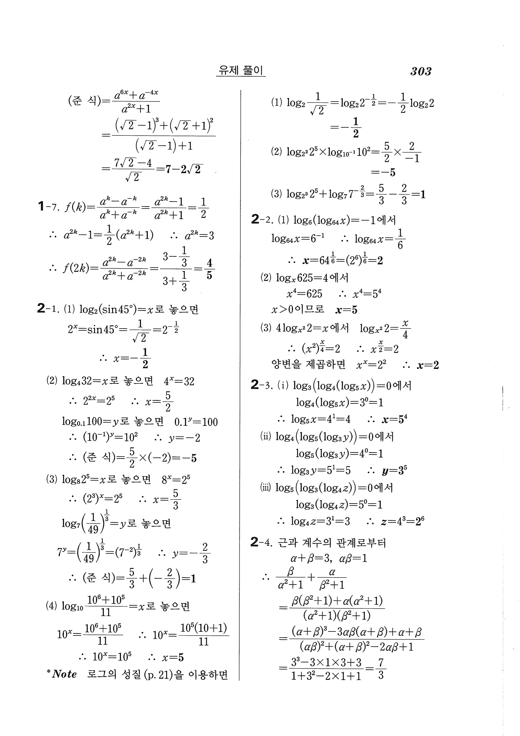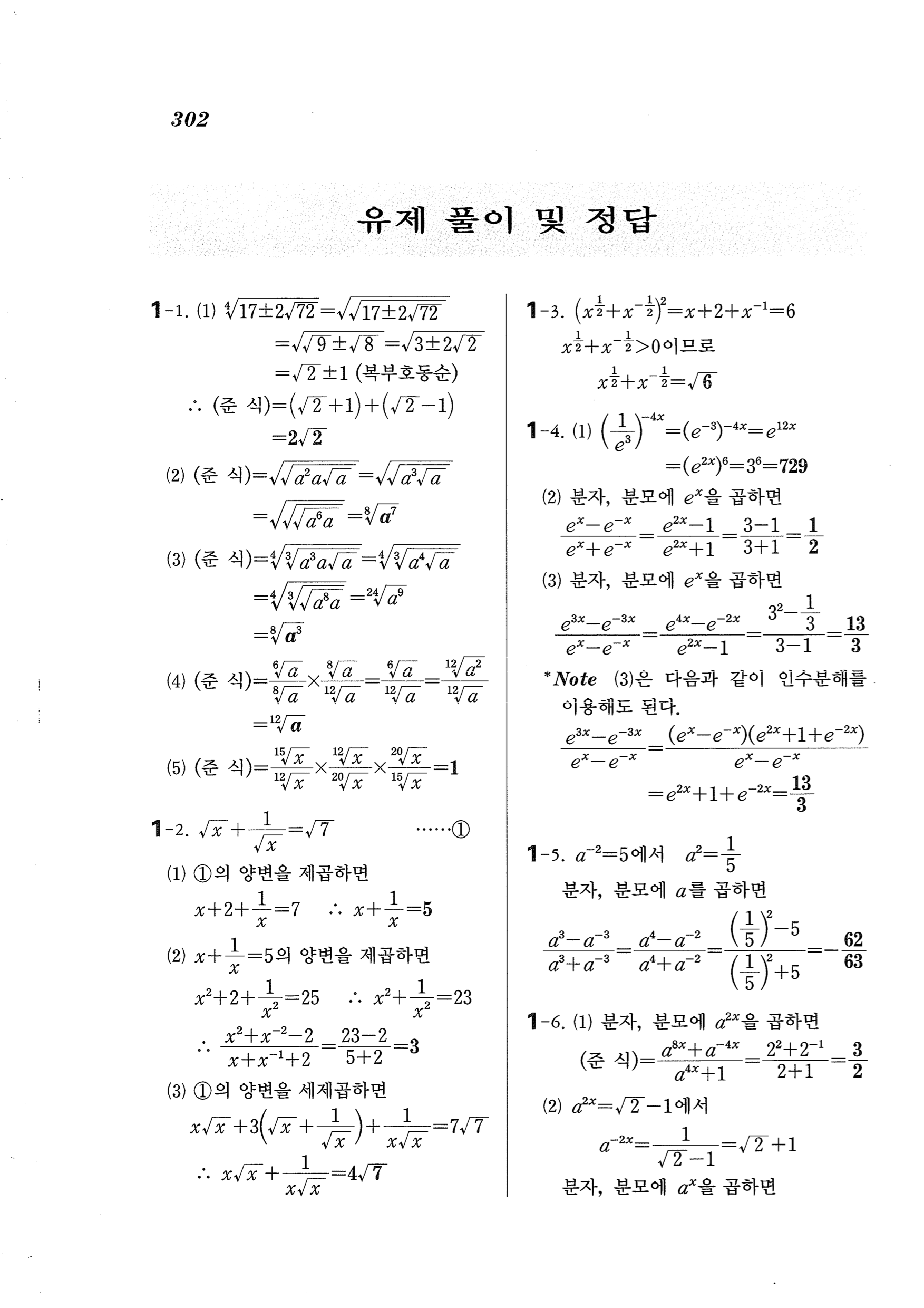 수학의정석(실력) 수학1 답지 해설 바로보는 사진답지 빠른답지 모바일최적화