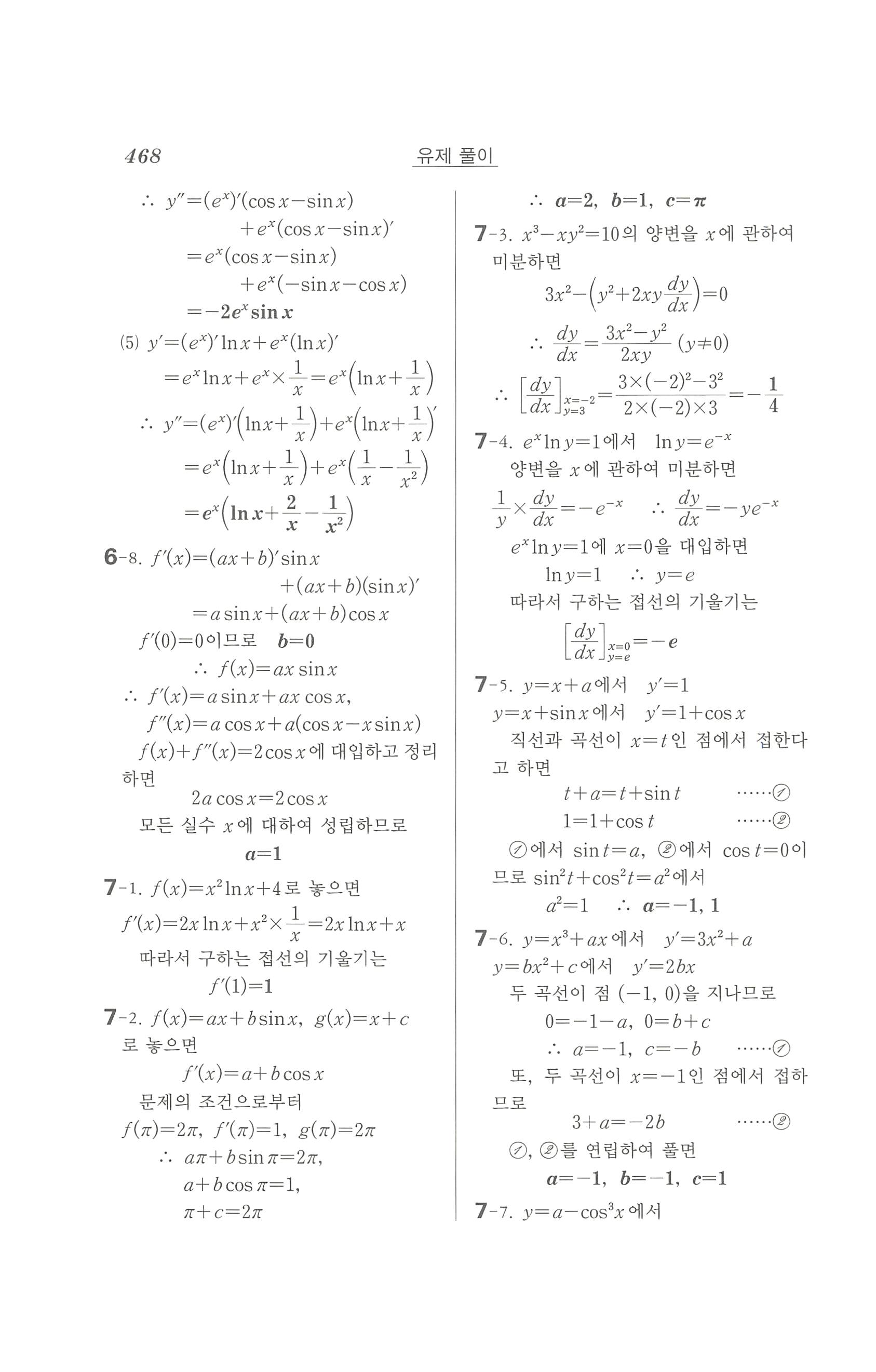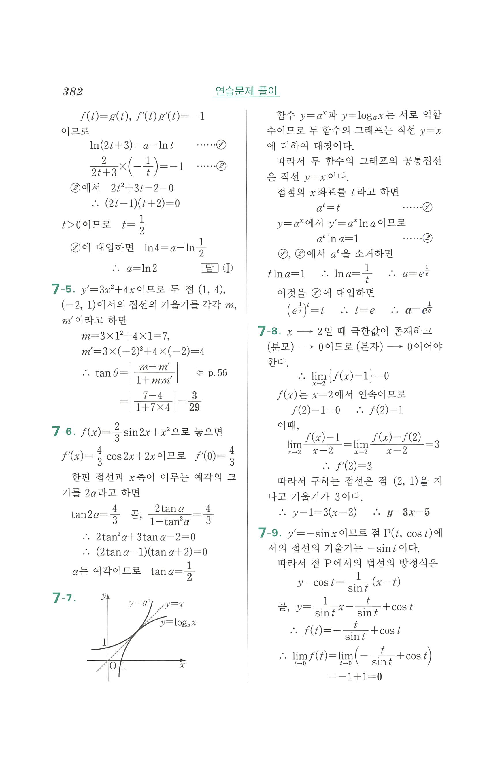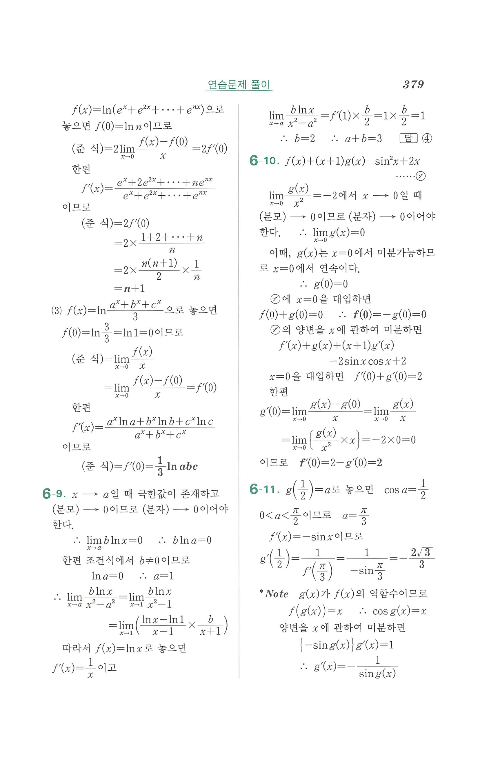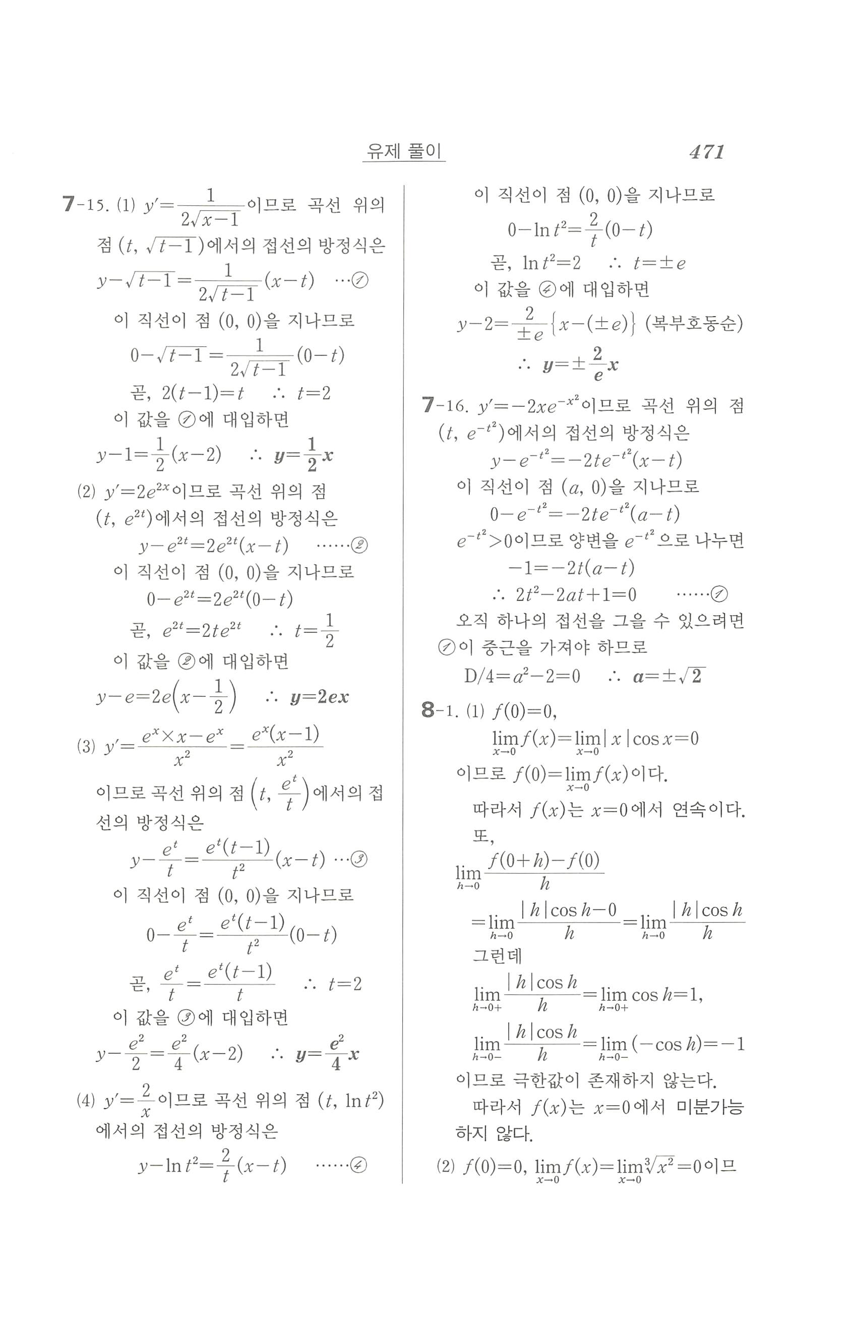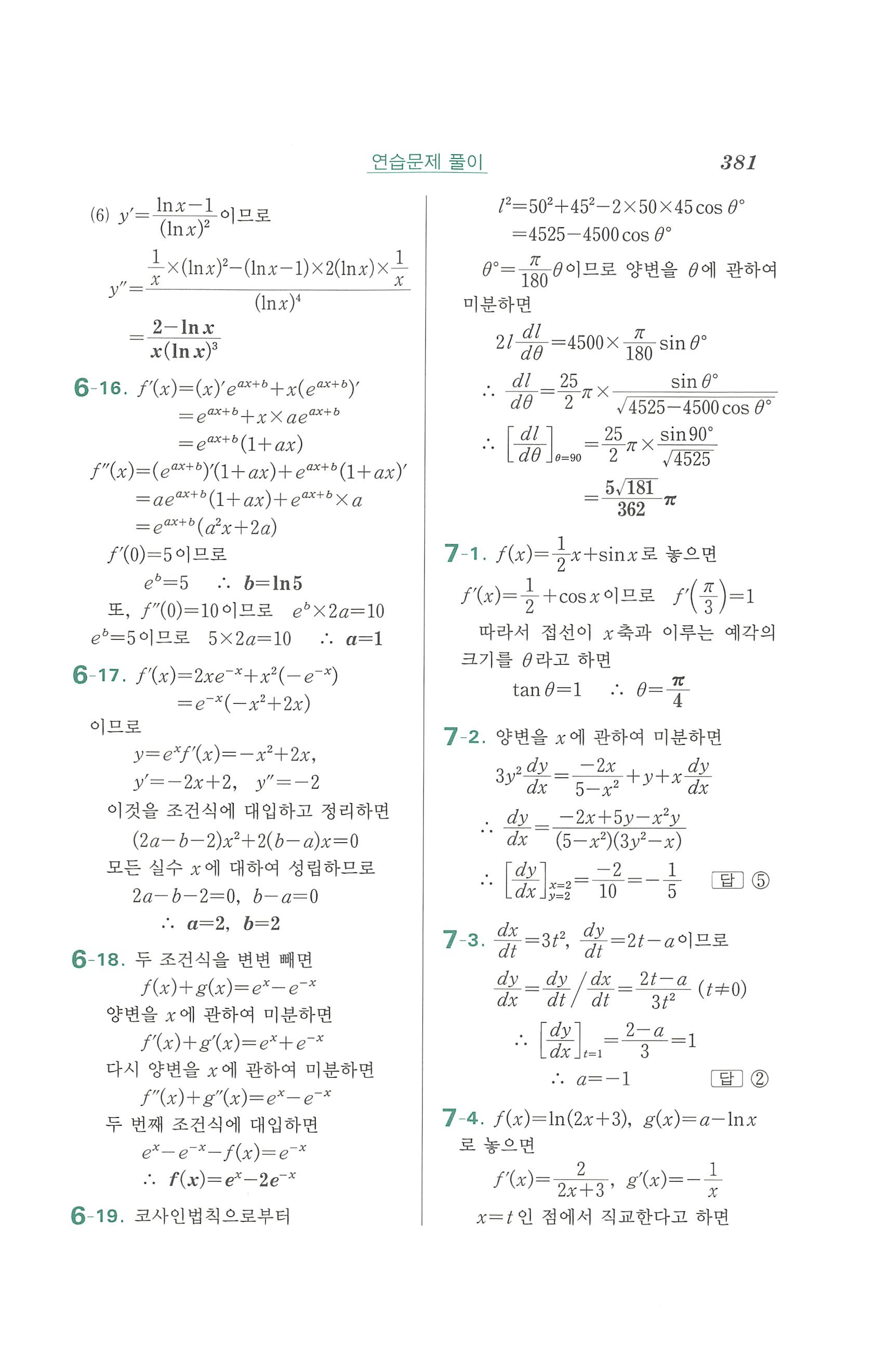 수학의정석(기본) 미적분 답지 해설 바로보는 사진답지 빠른답지 모바일최적화