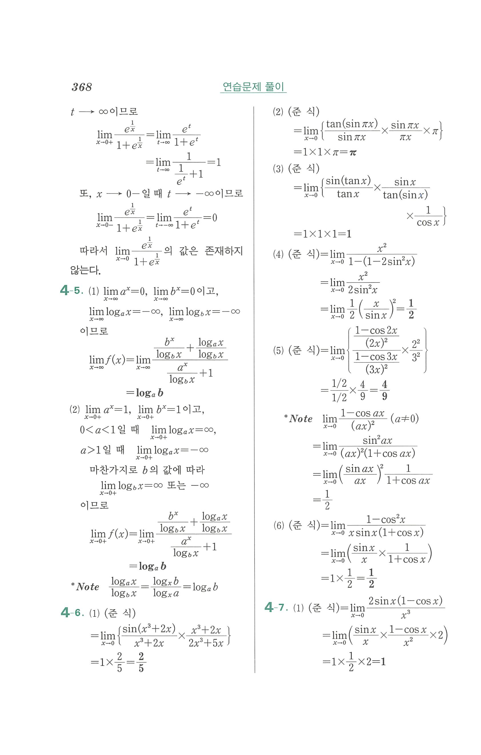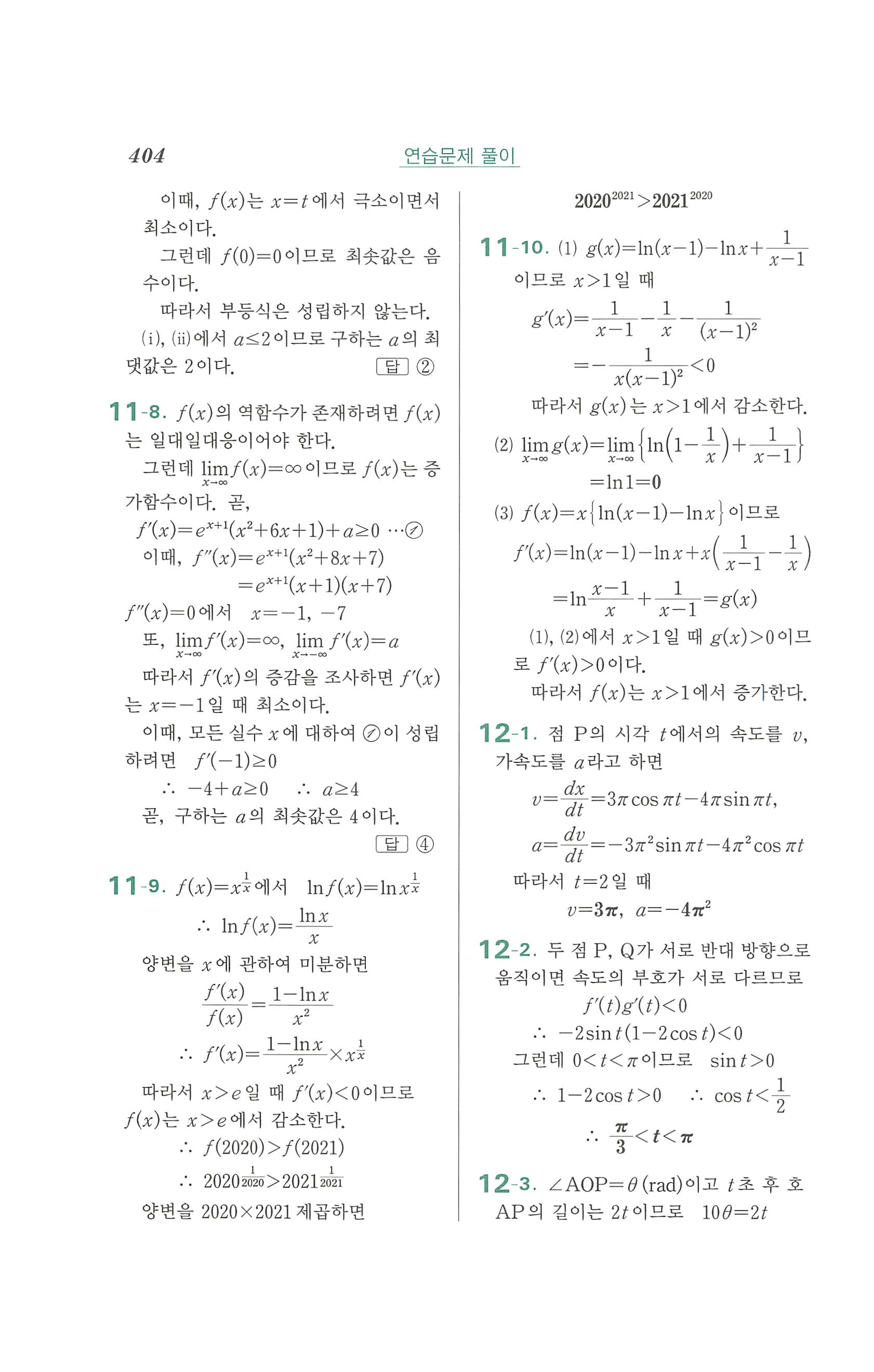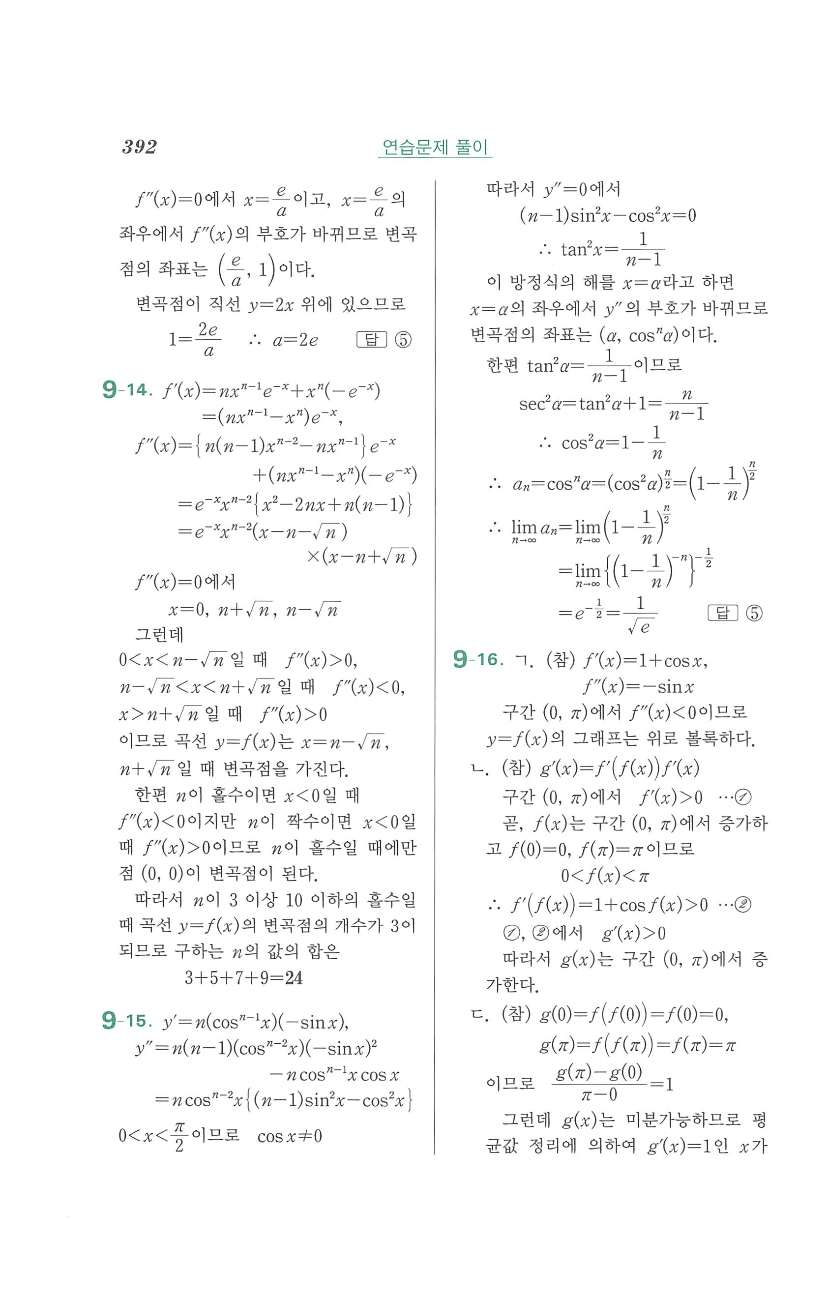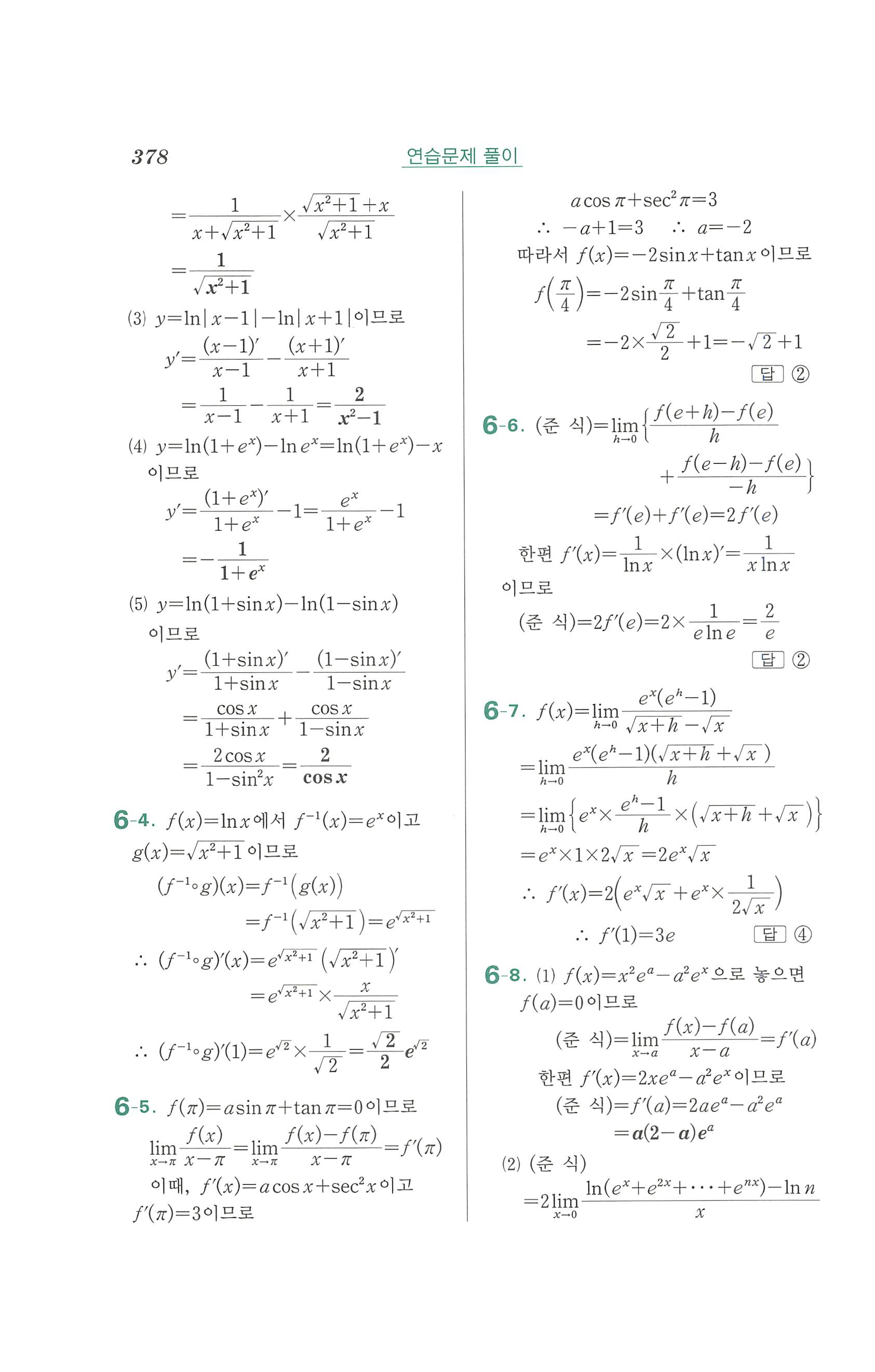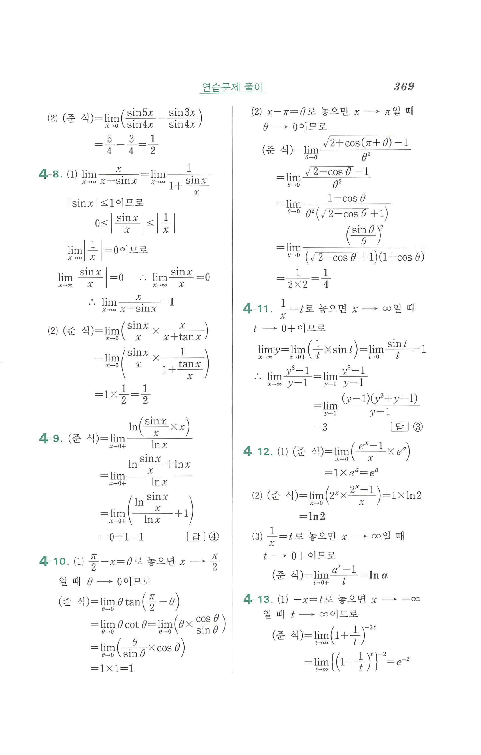 수학의정석(기본) 미적분 답지 해설 바로보는 사진답지 빠른답지 모바일최적화