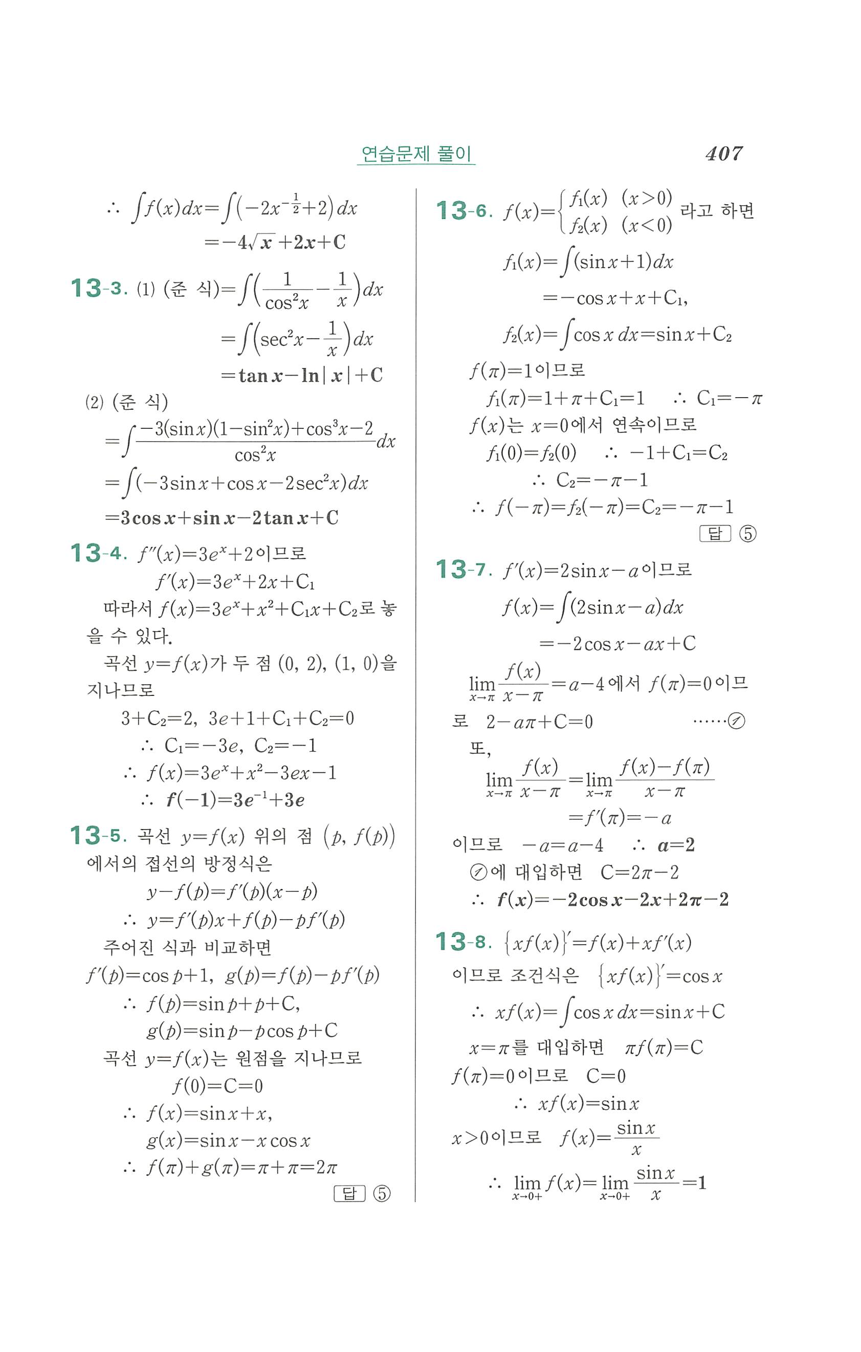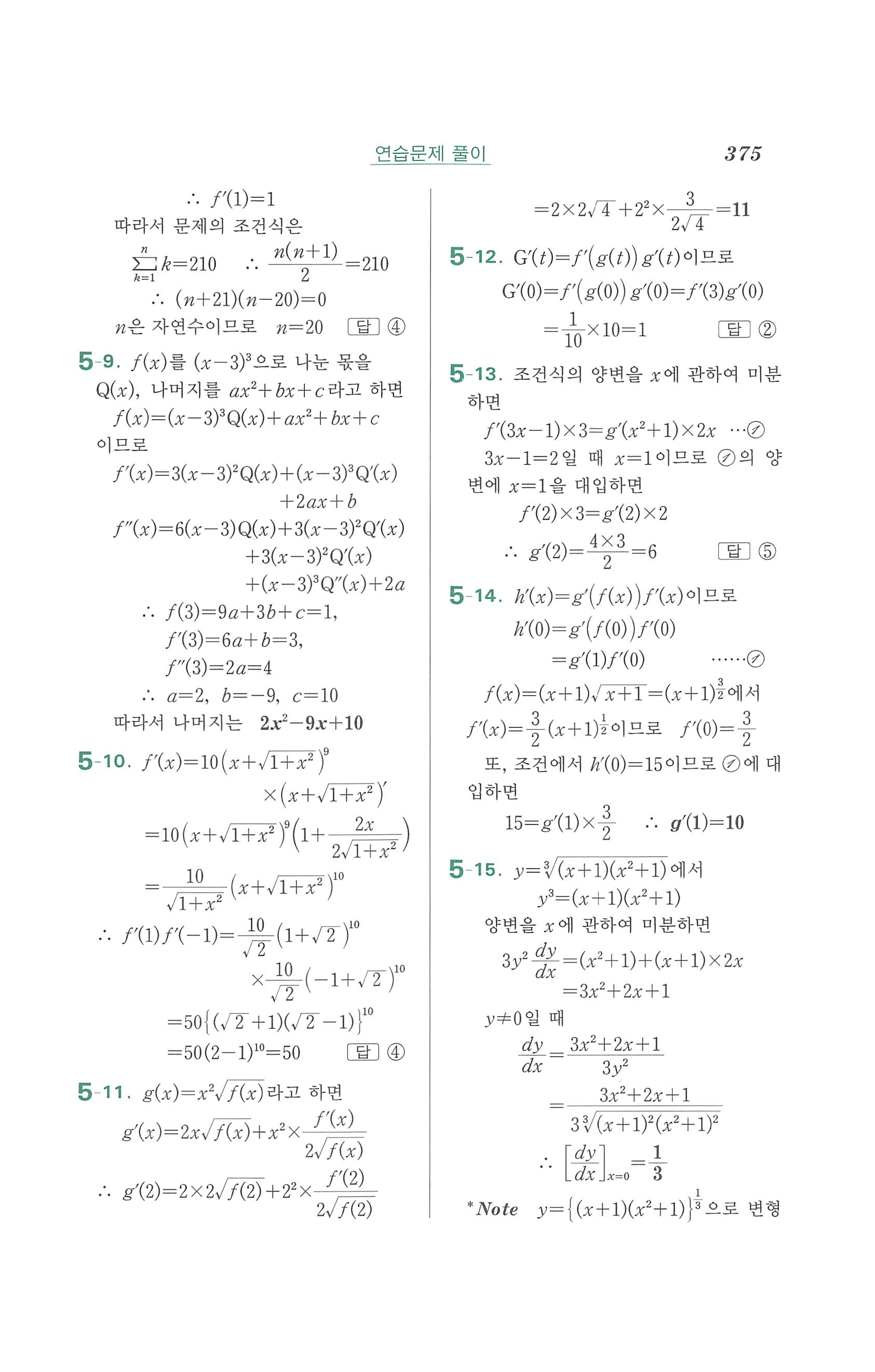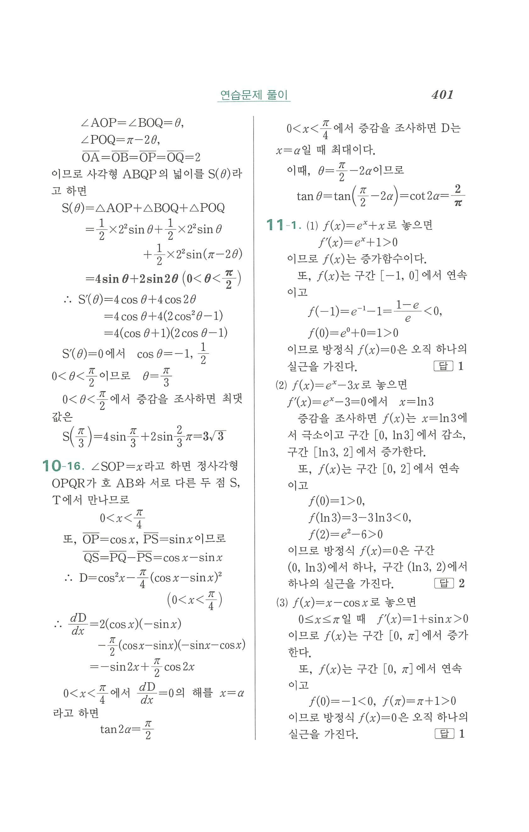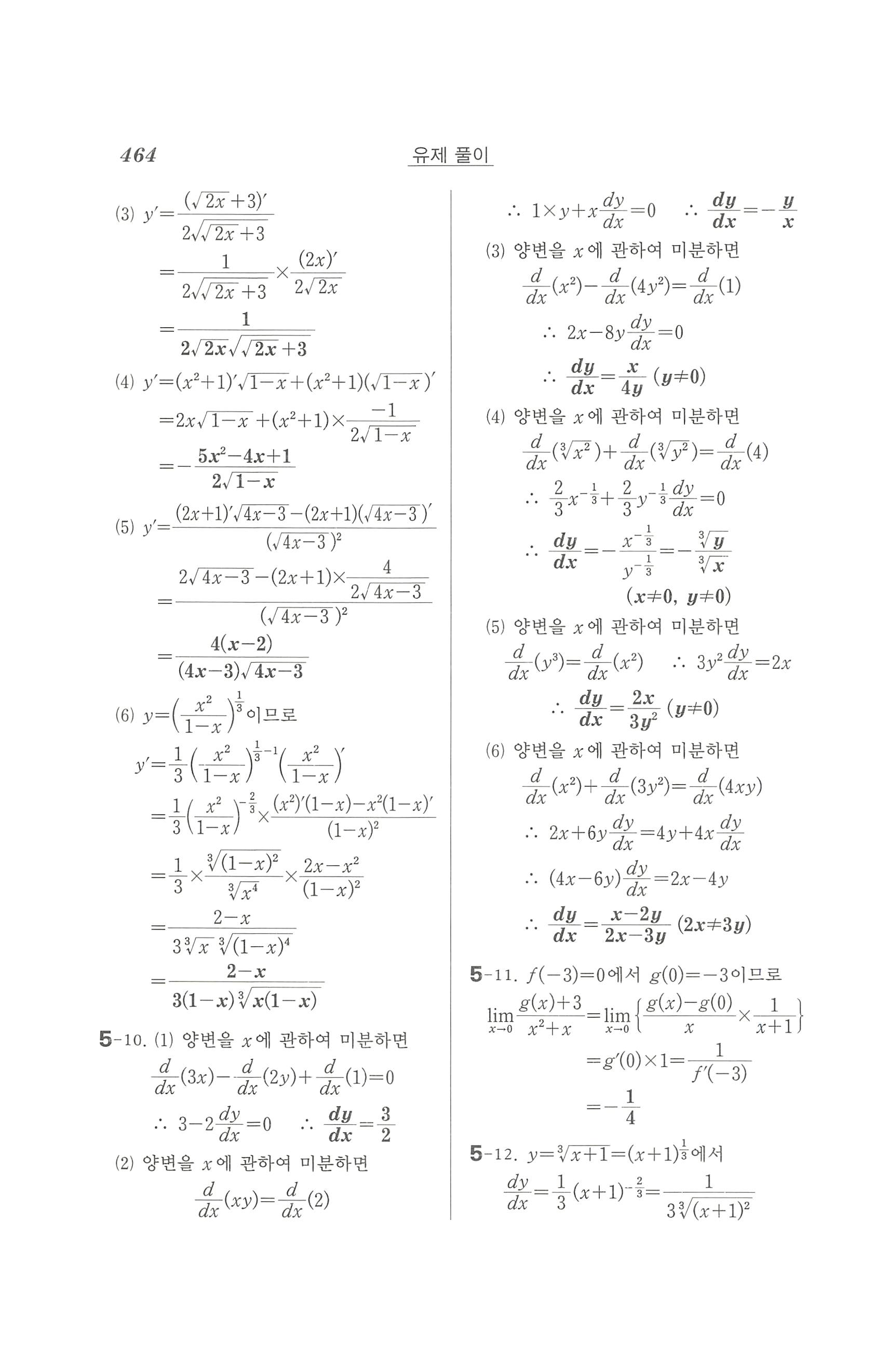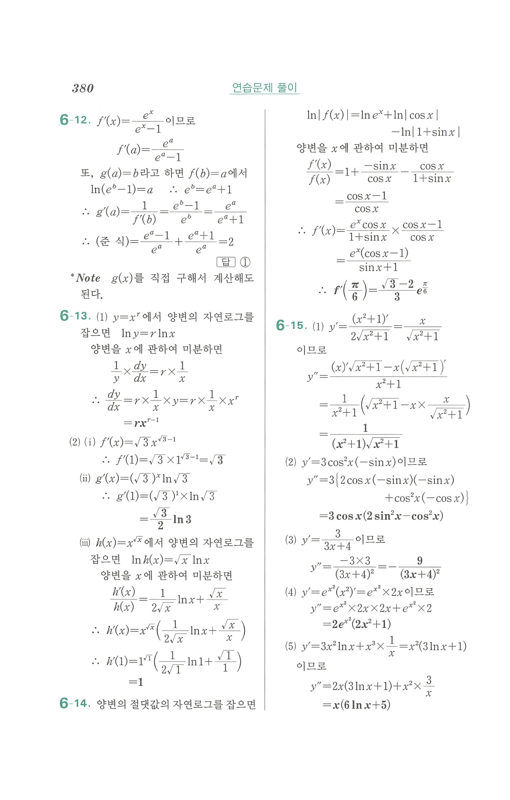 수학의정석(기본) 미적분 답지 해설 바로보는 사진답지 빠른답지 모바일최적화