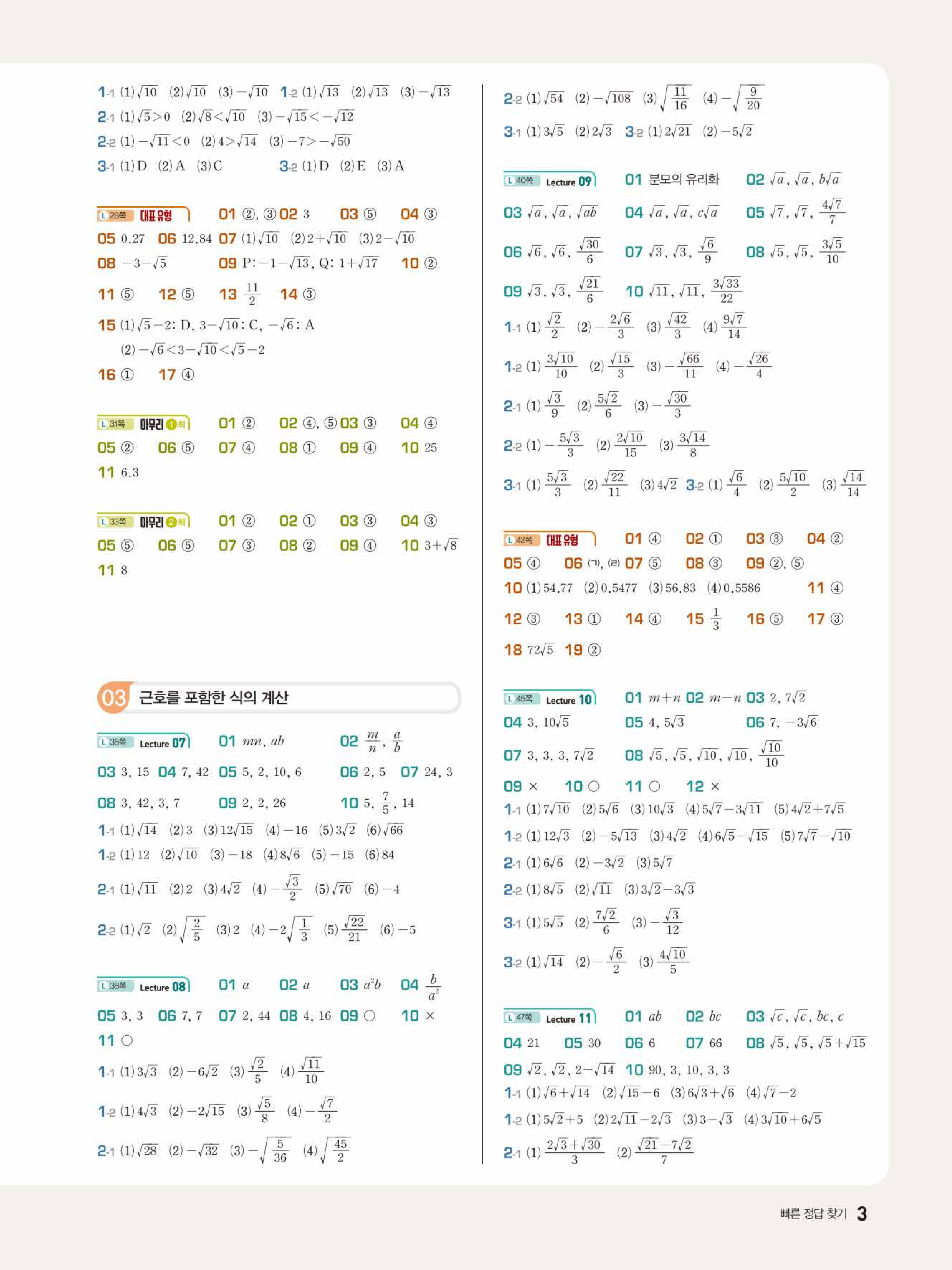 | 개념쎈 중3-1 답지 | https://mathuncle.tistory.com/193 |