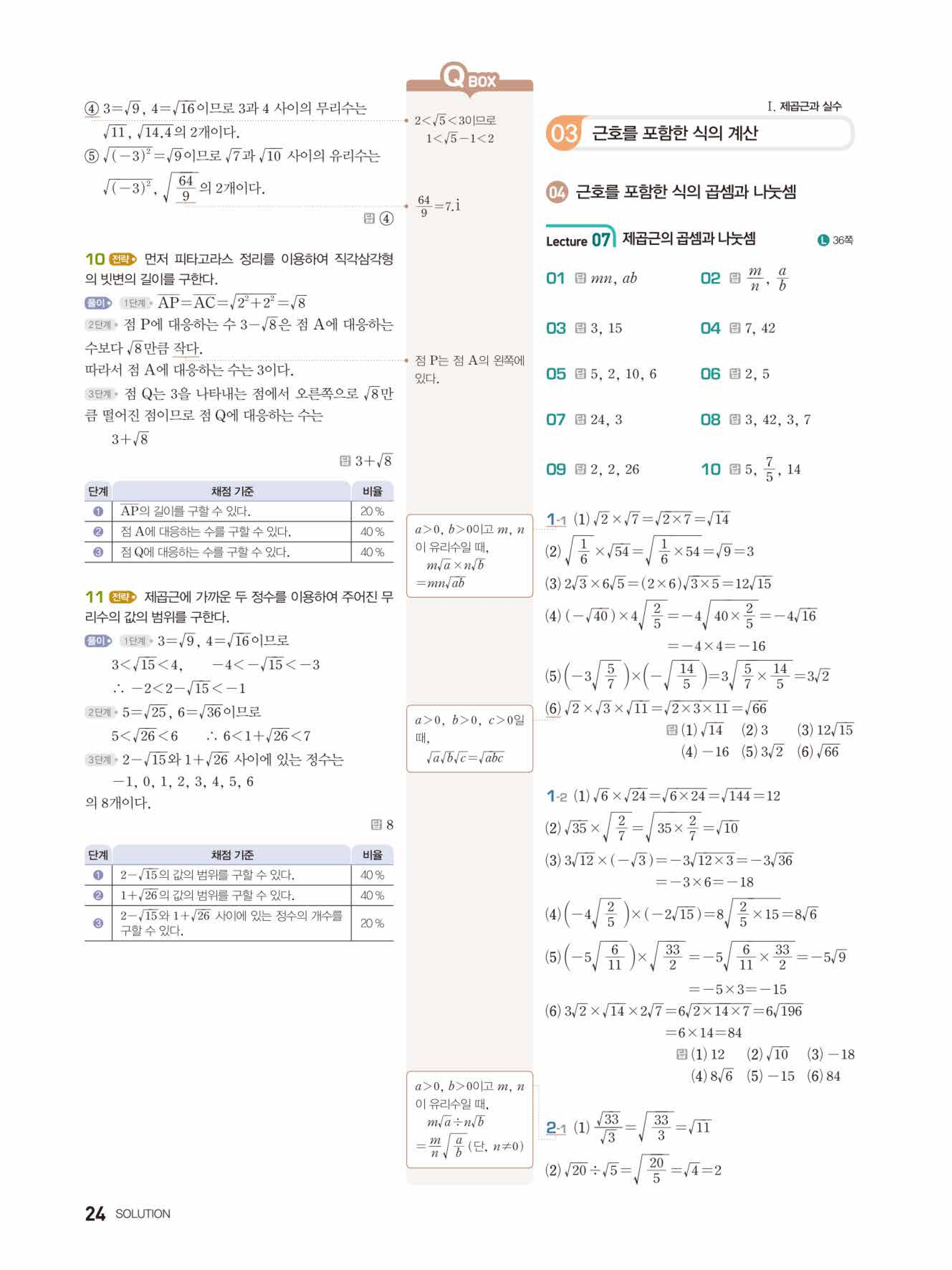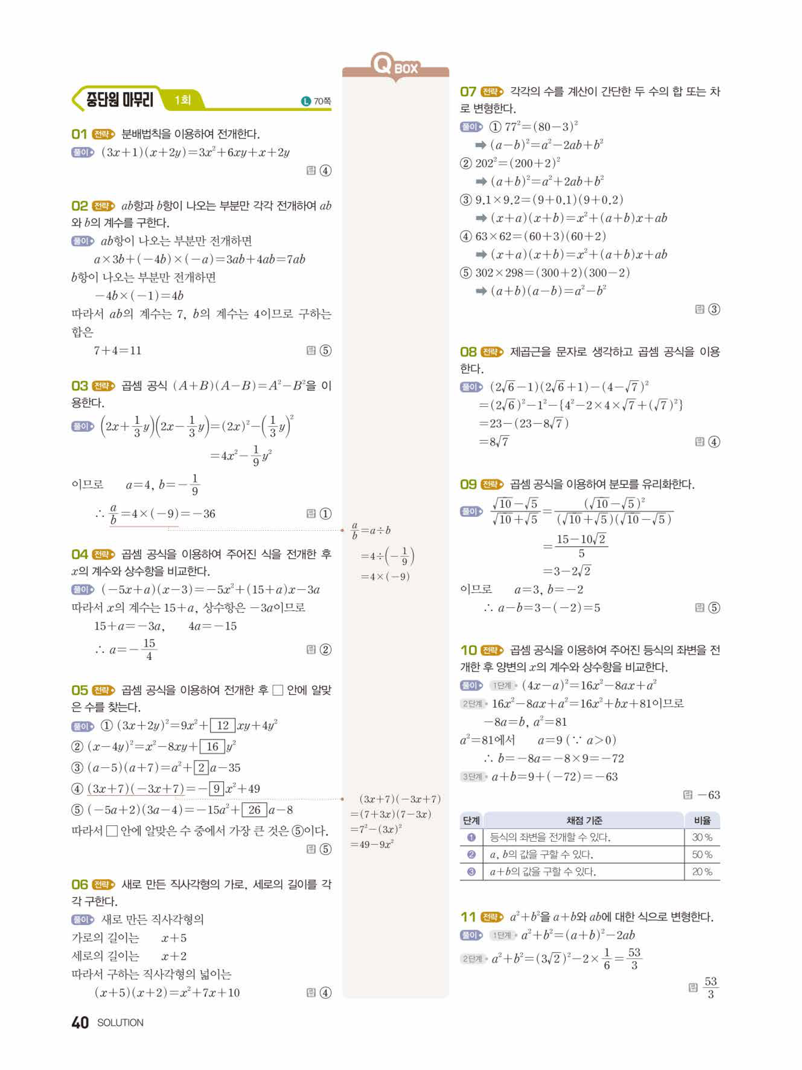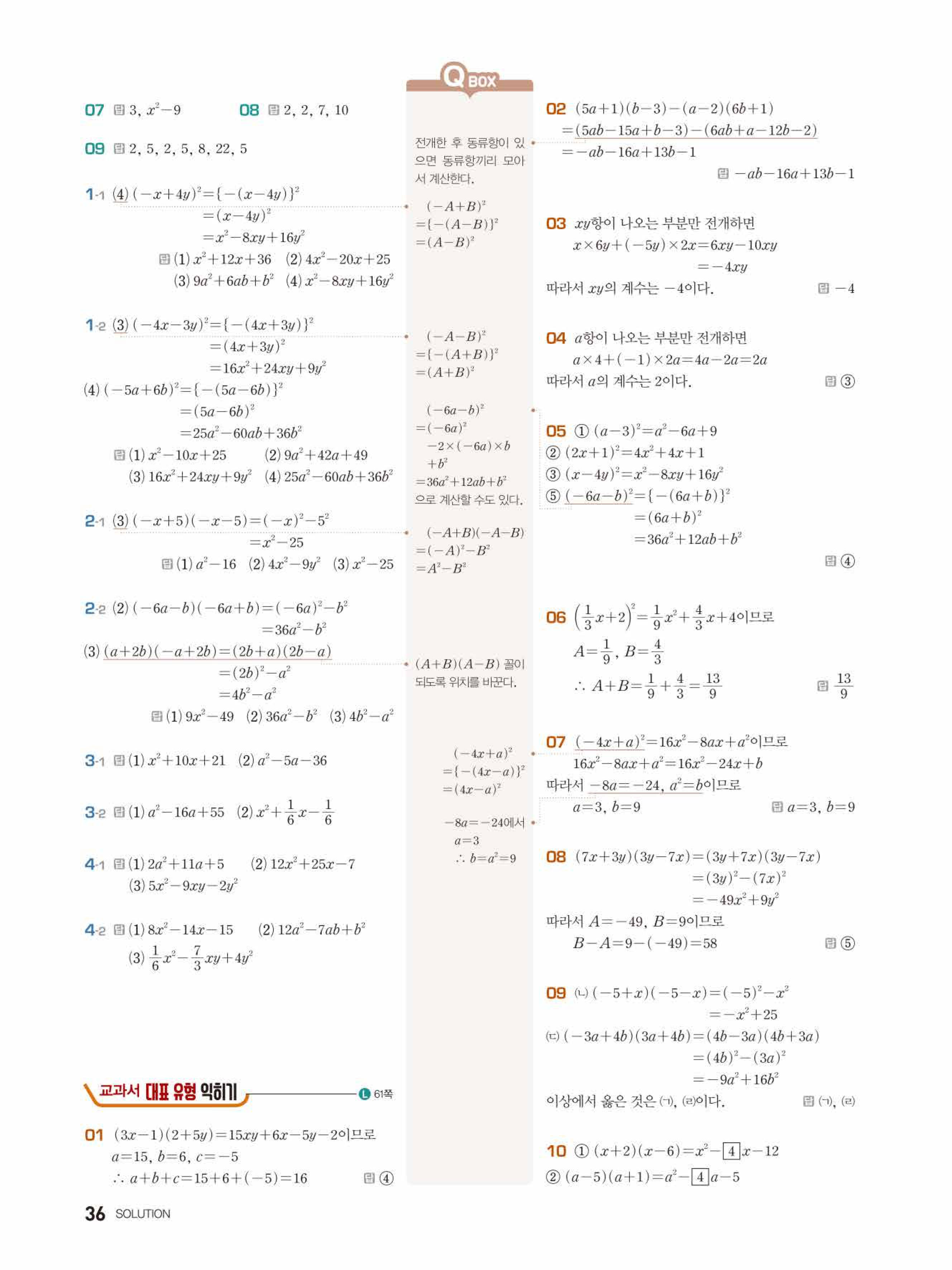 | 천재교육 이준열 중3 수학교과서 답지 | |