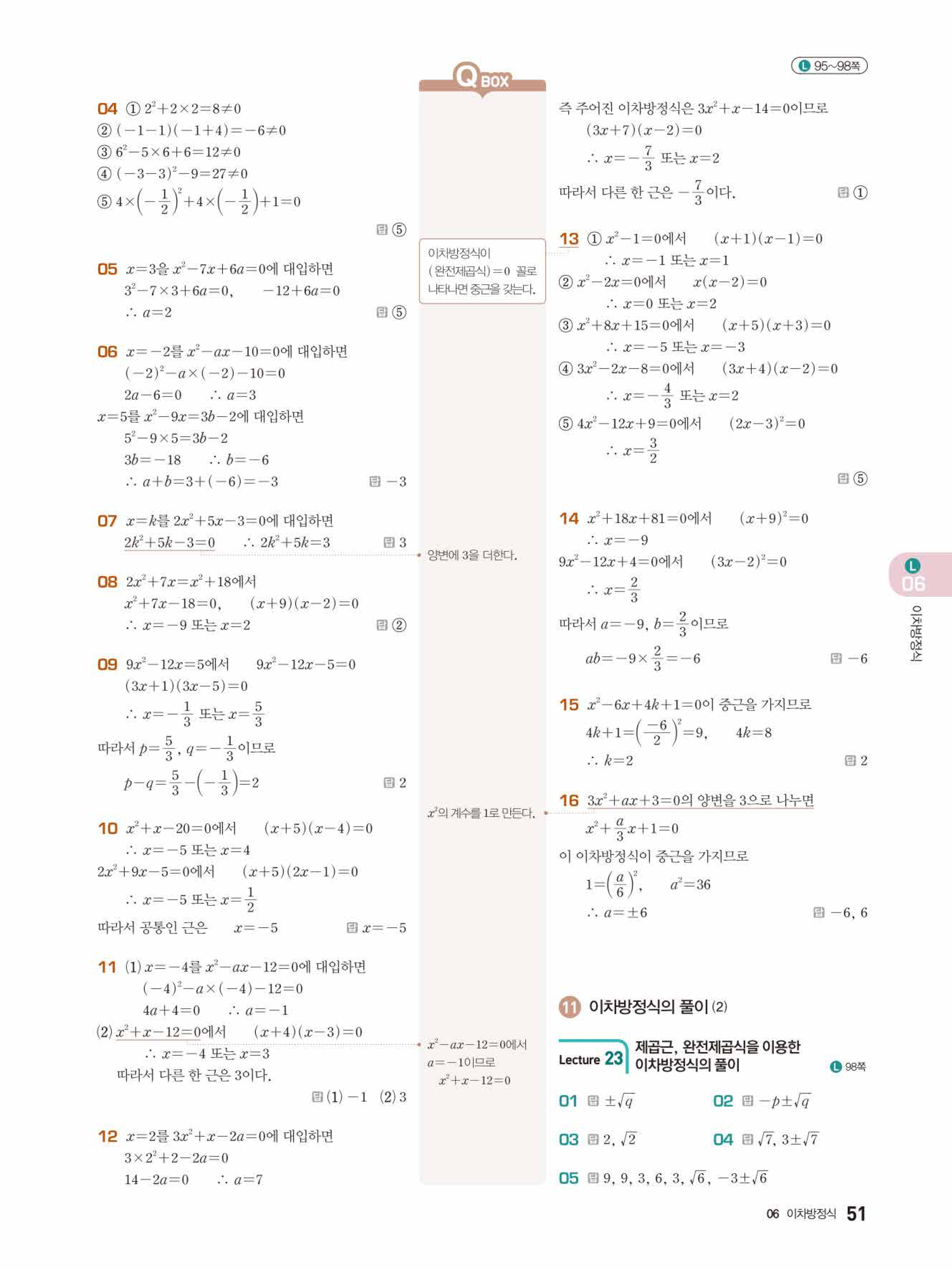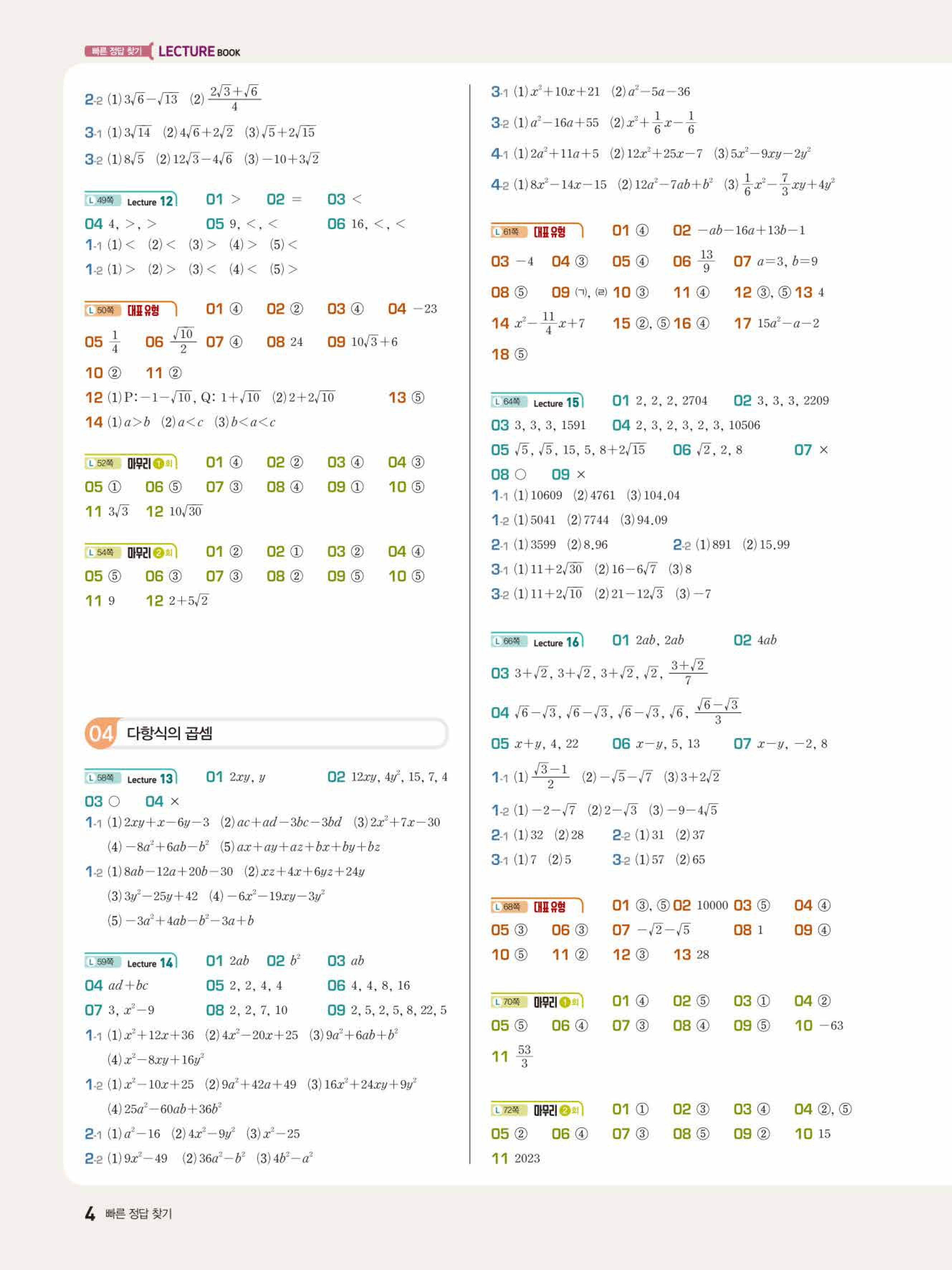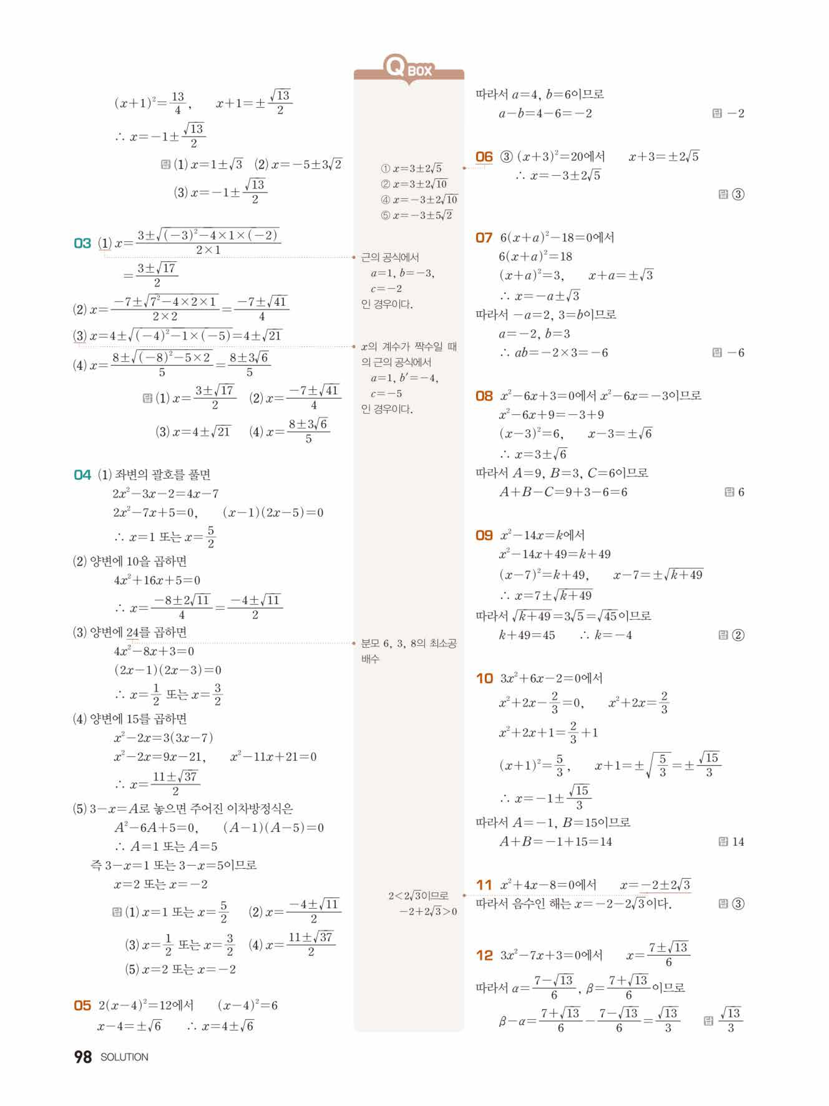 | 천재교육 이준열 중3 수학교과서 답지 | |