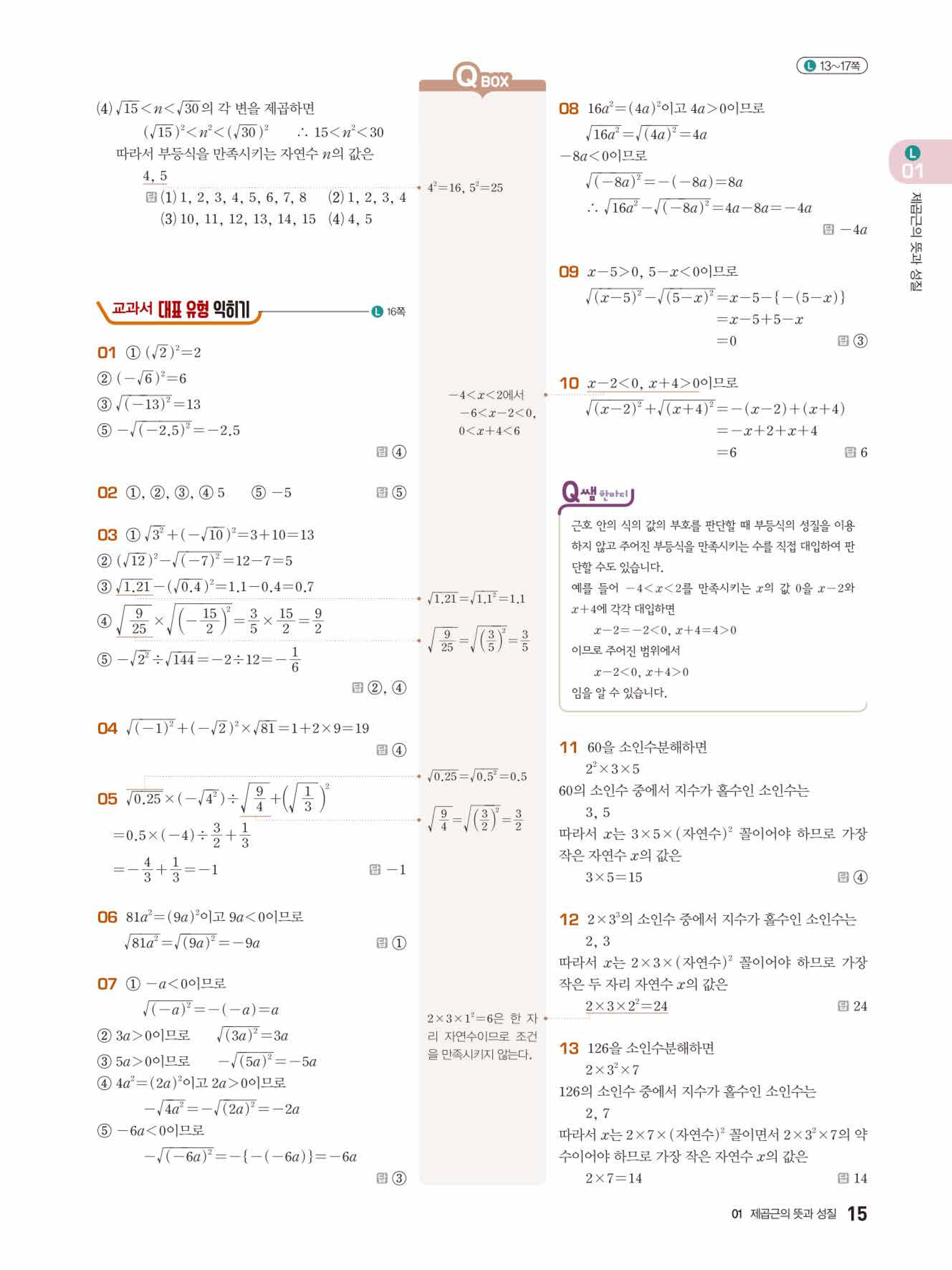 | 천재교육 류희찬 중3 수학교과서 답지 | |