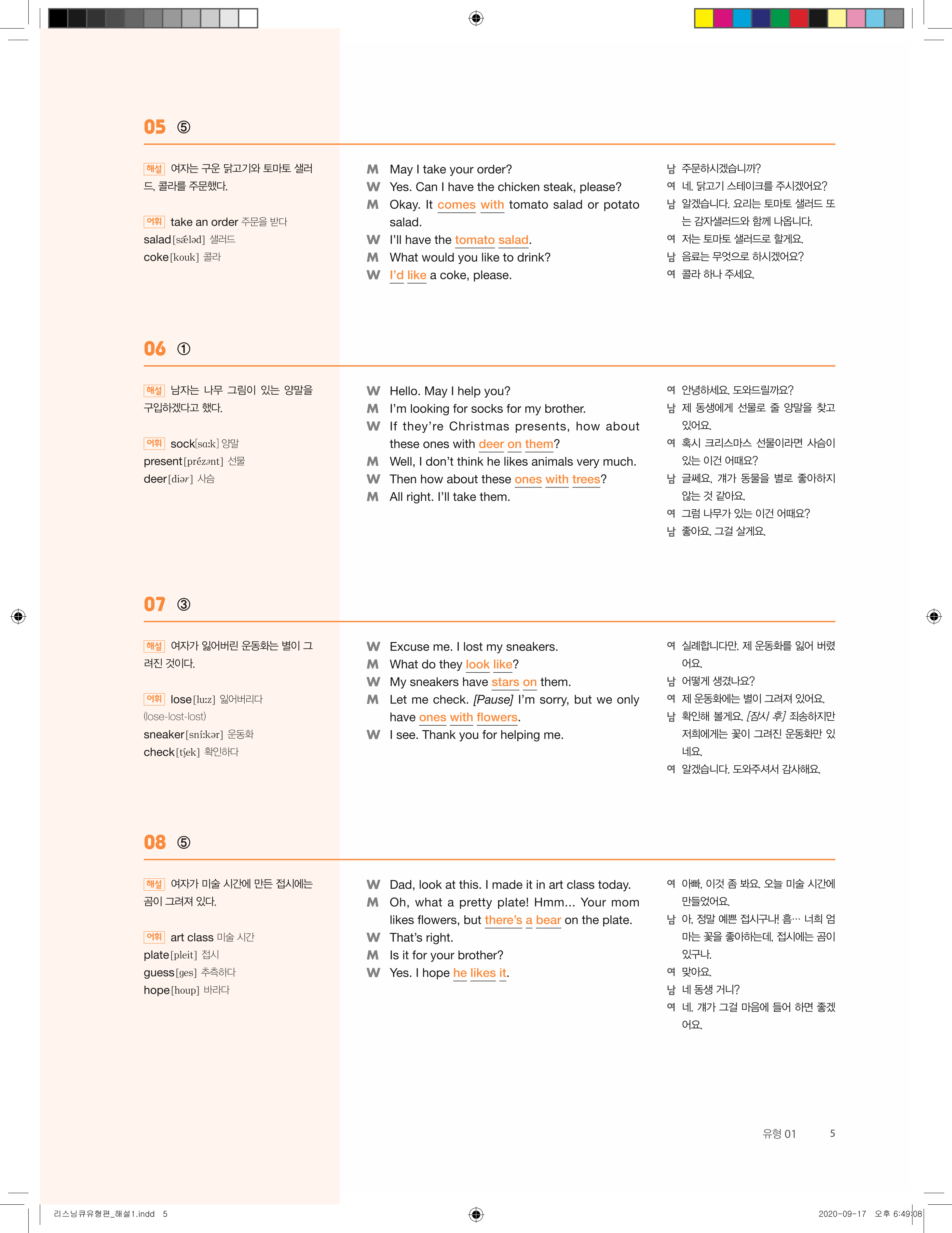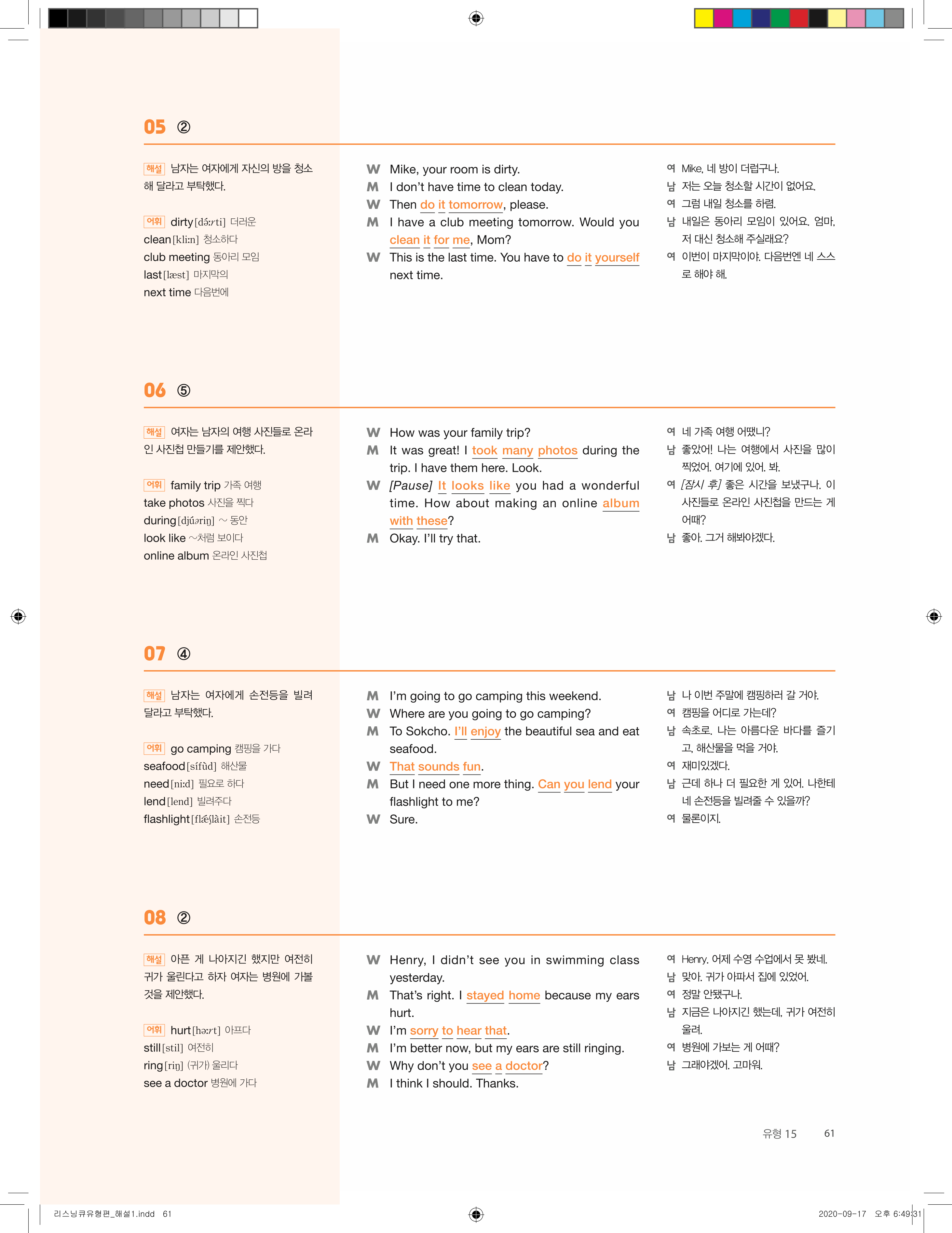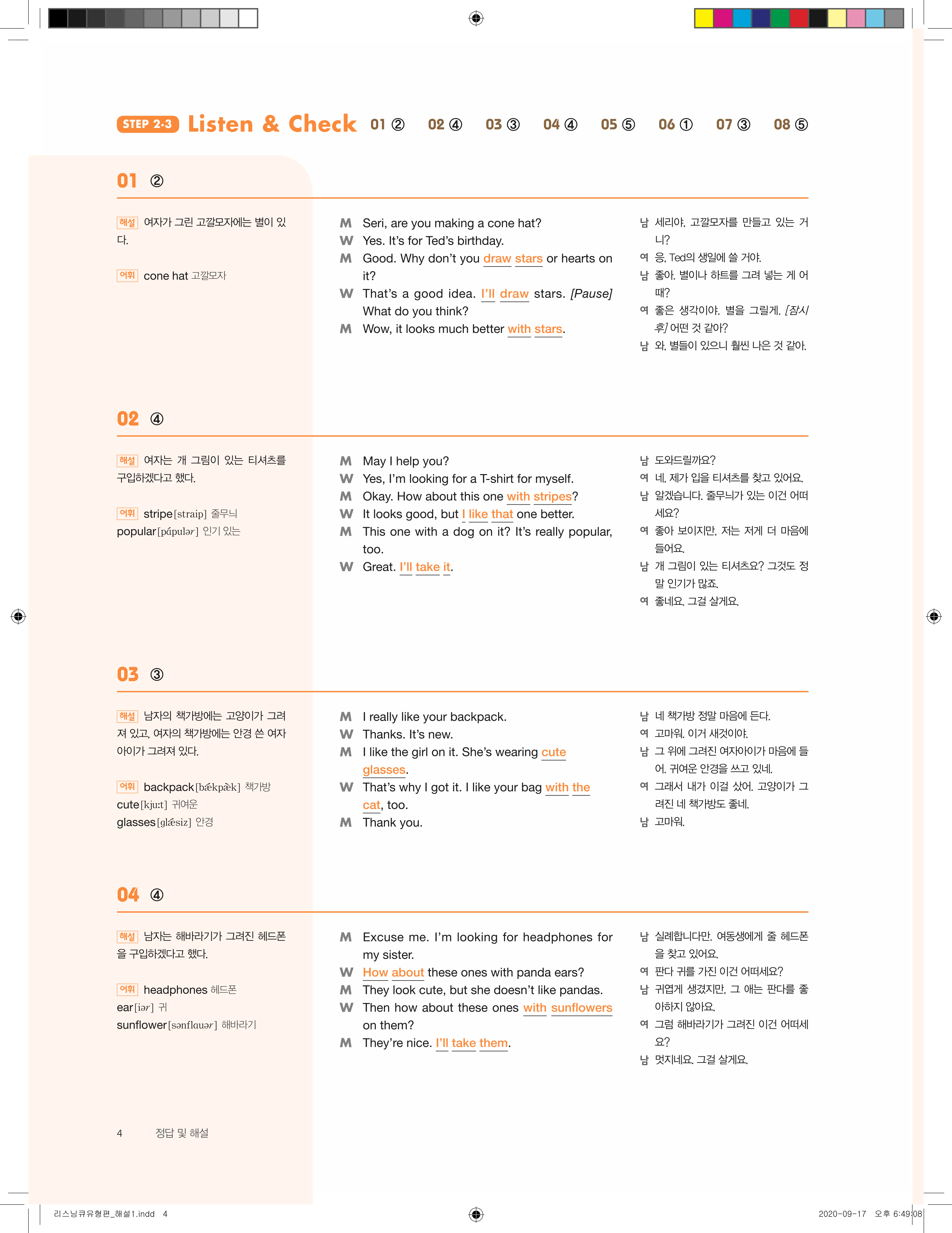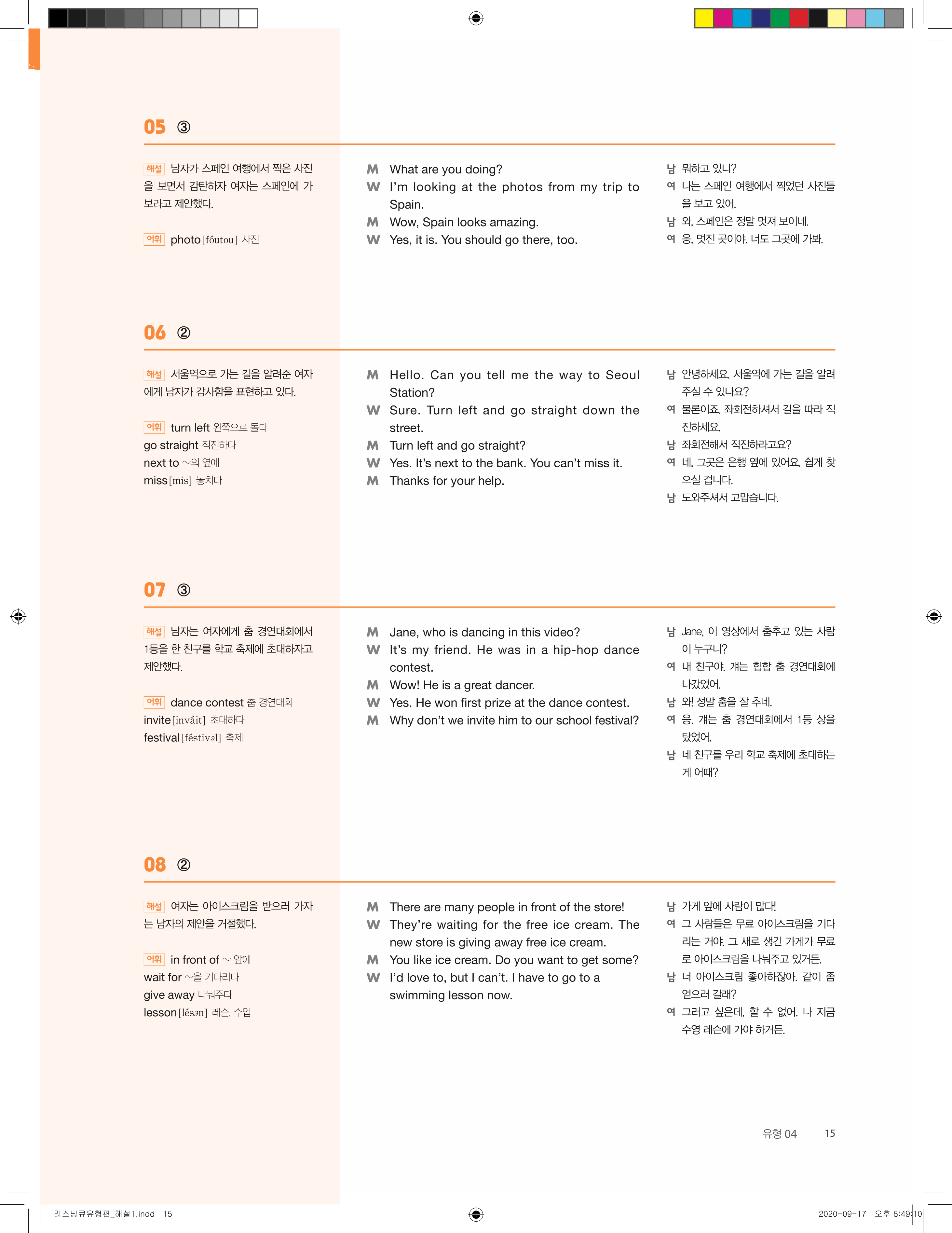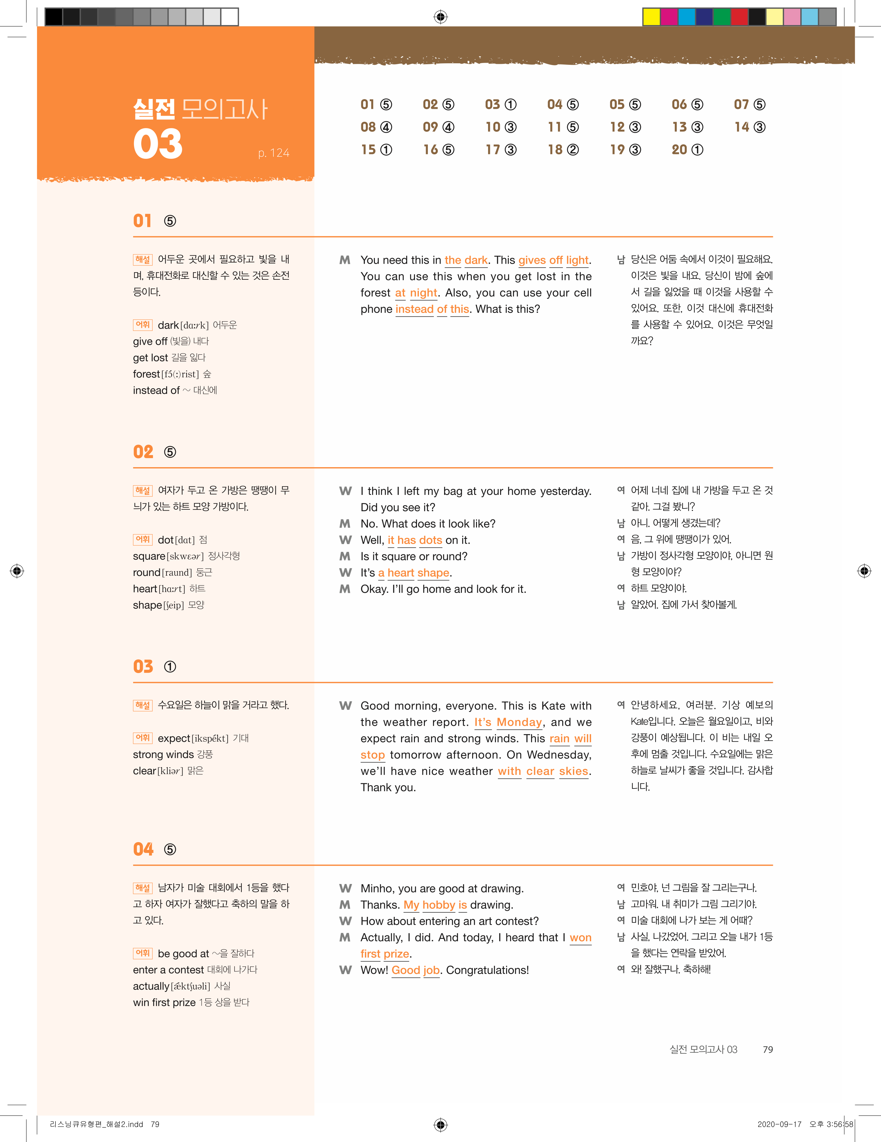 세듀 리스닝큐 중학영어듣기 모의고사 유형편 답지 빠른답지 다운없이 바로보는 사진답지 모바일최적화