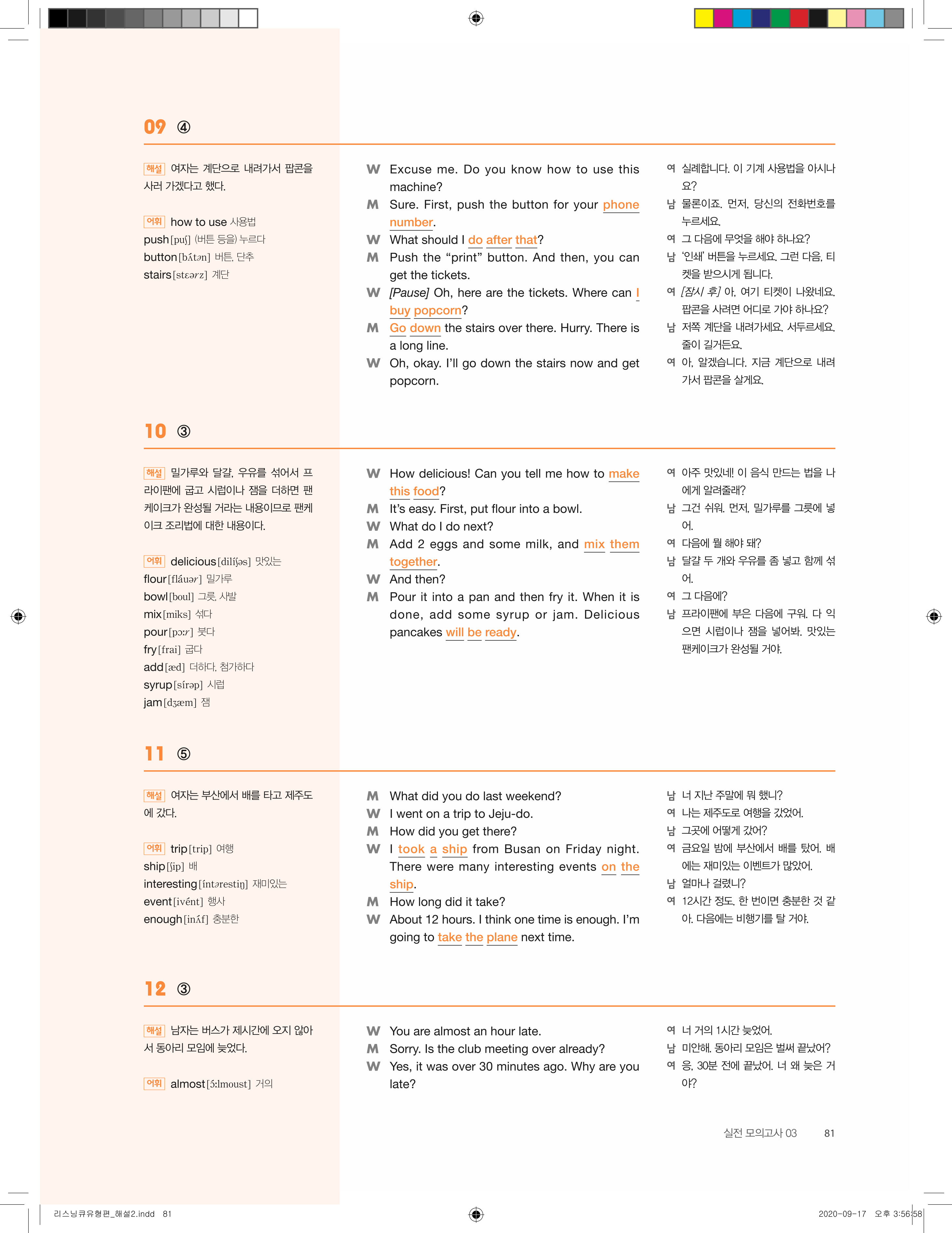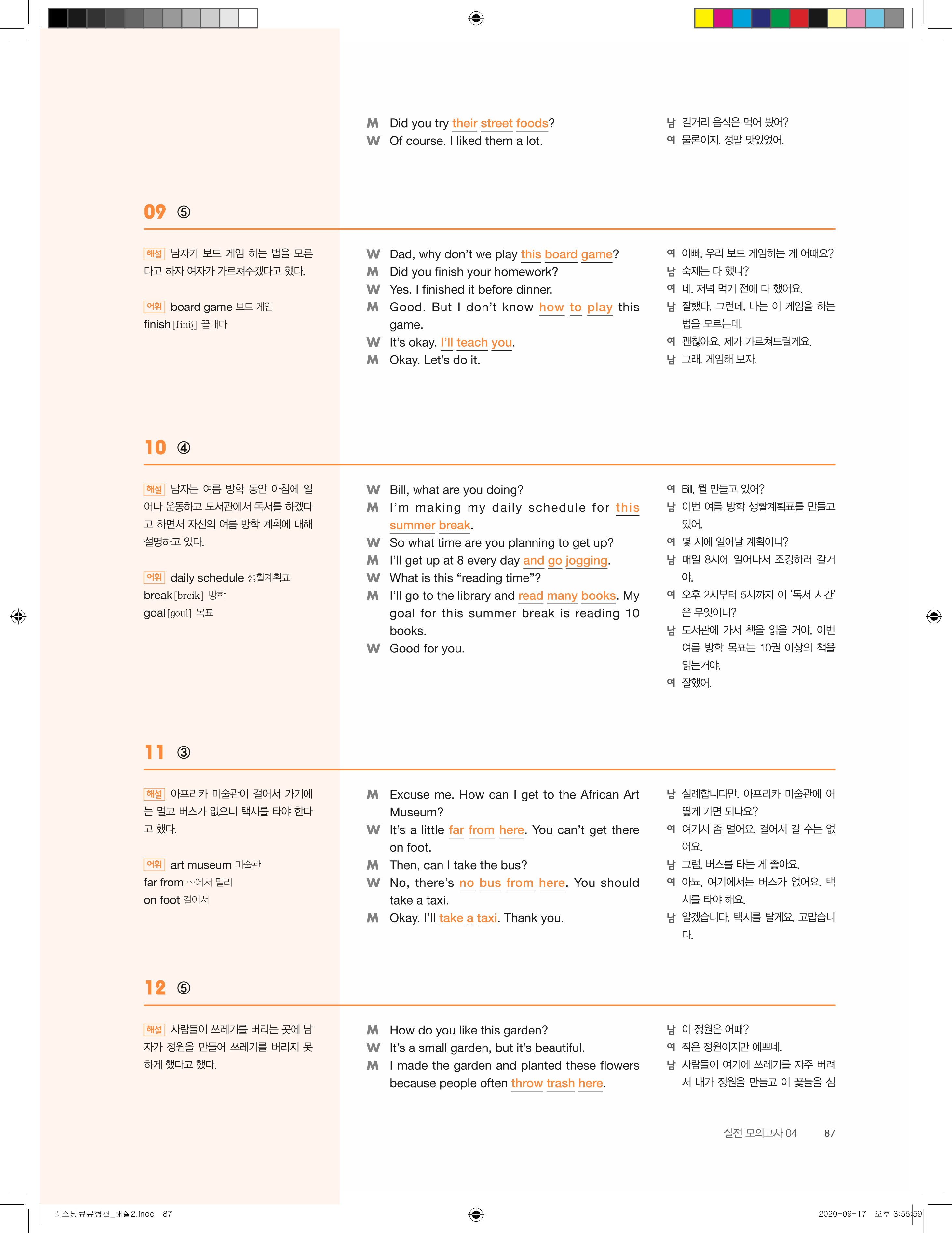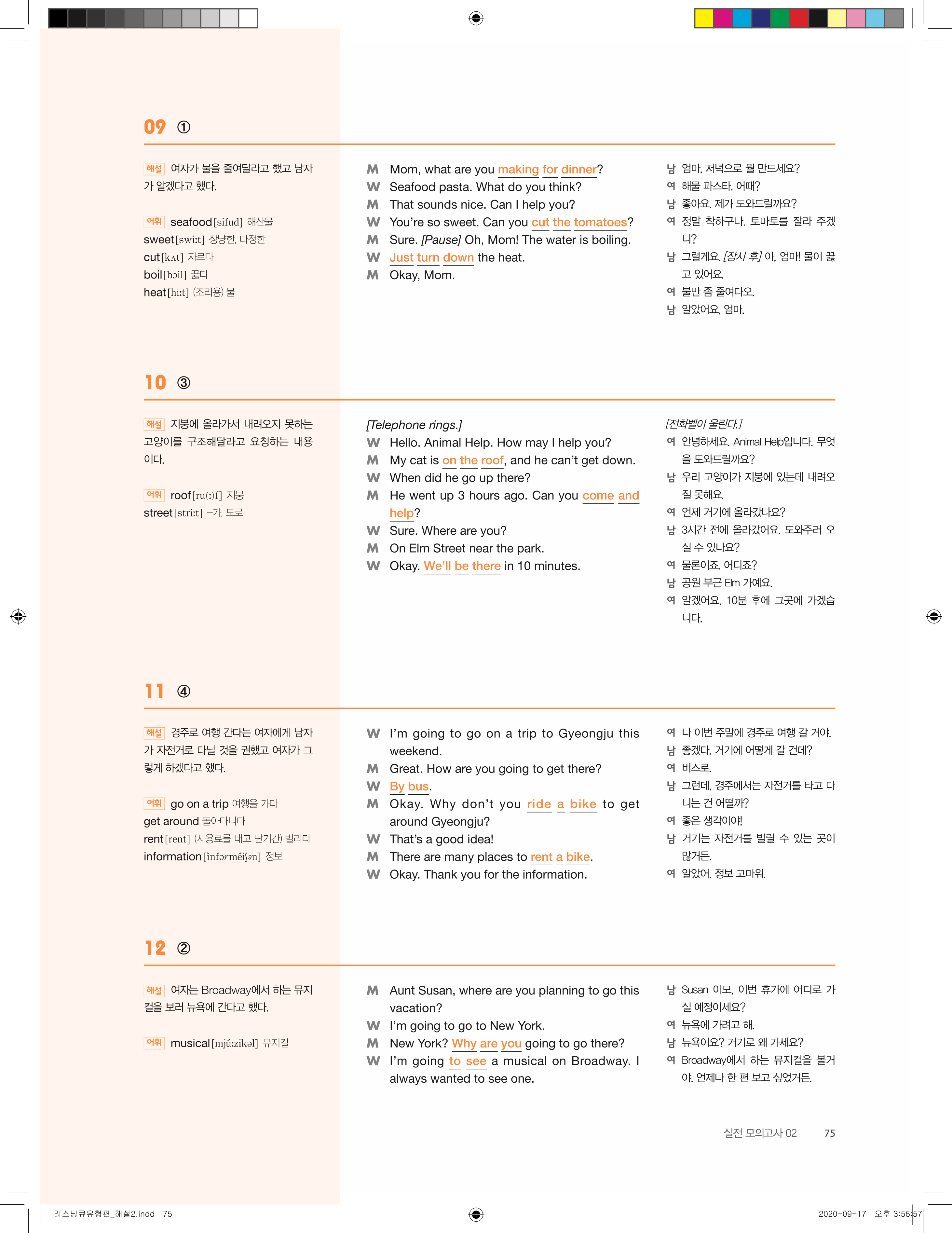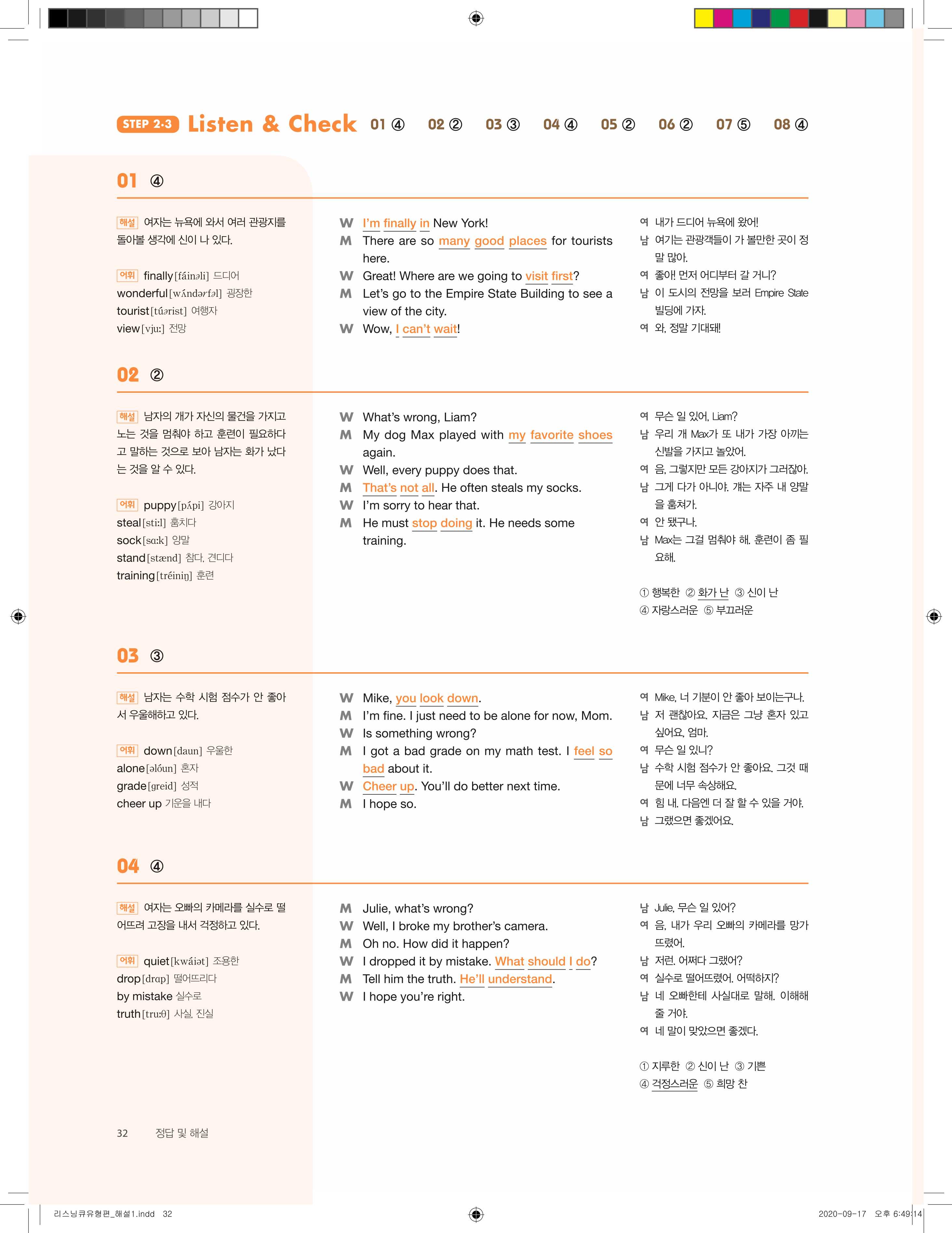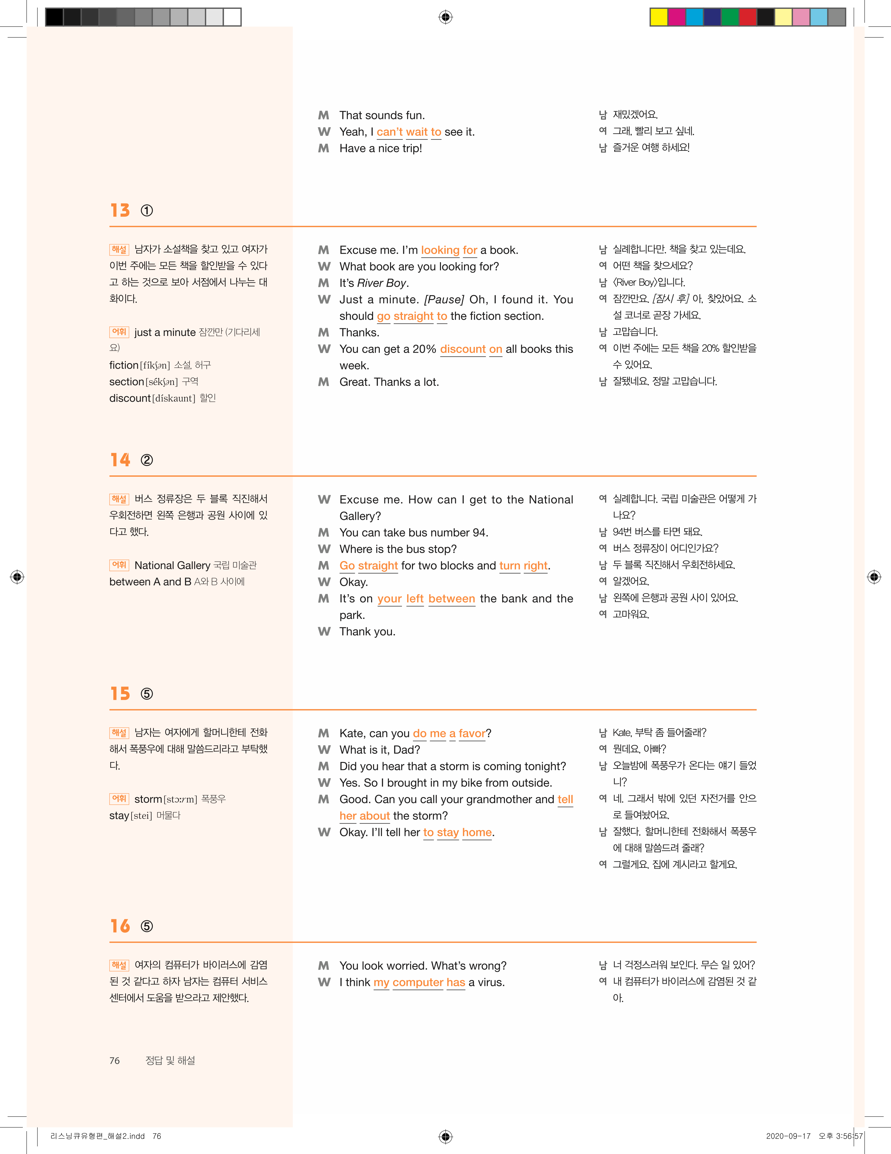 세듀 리스닝큐 중학영어듣기 모의고사 유형편 답지 빠른답지 다운없이 바로보는 사진답지 모바일최적화