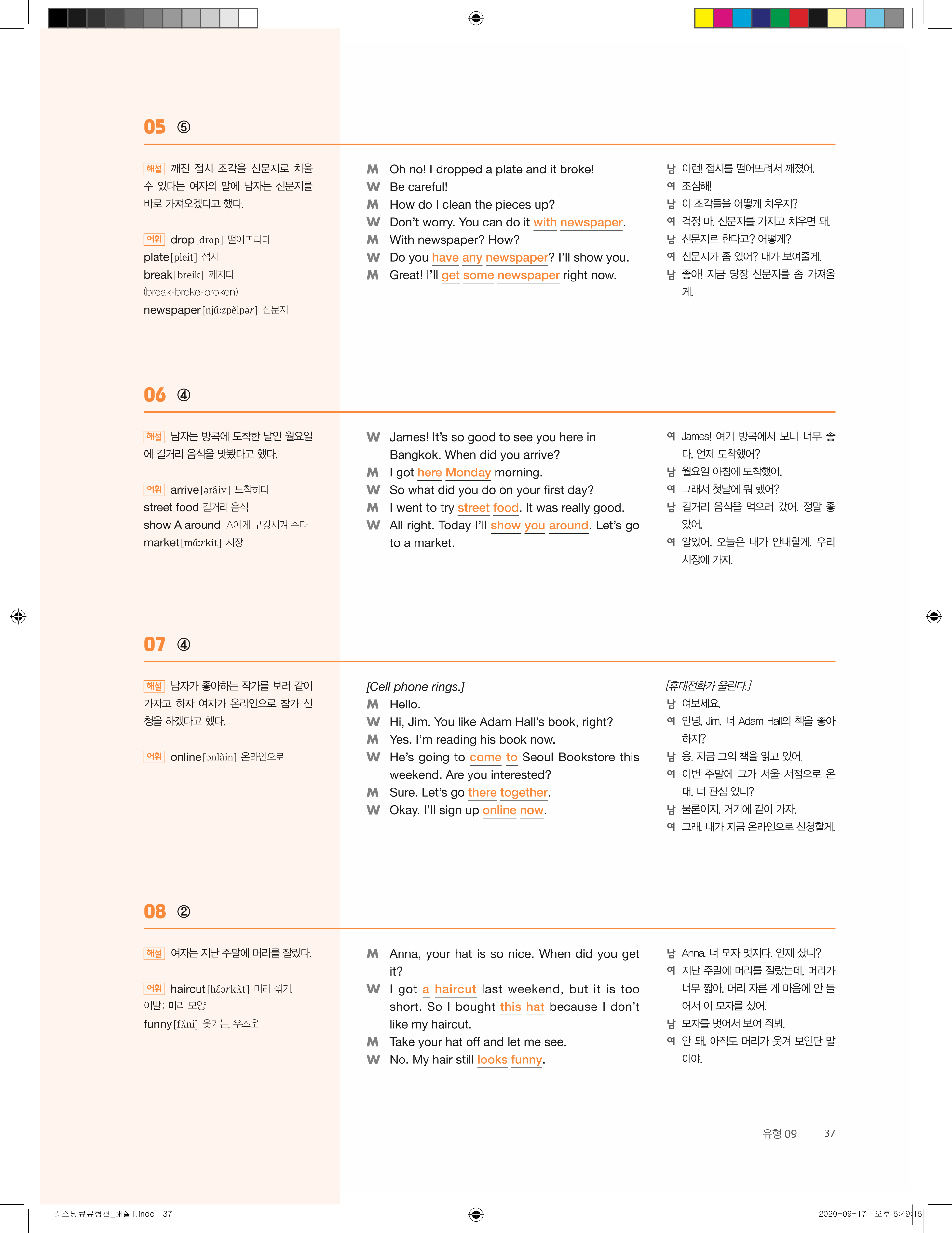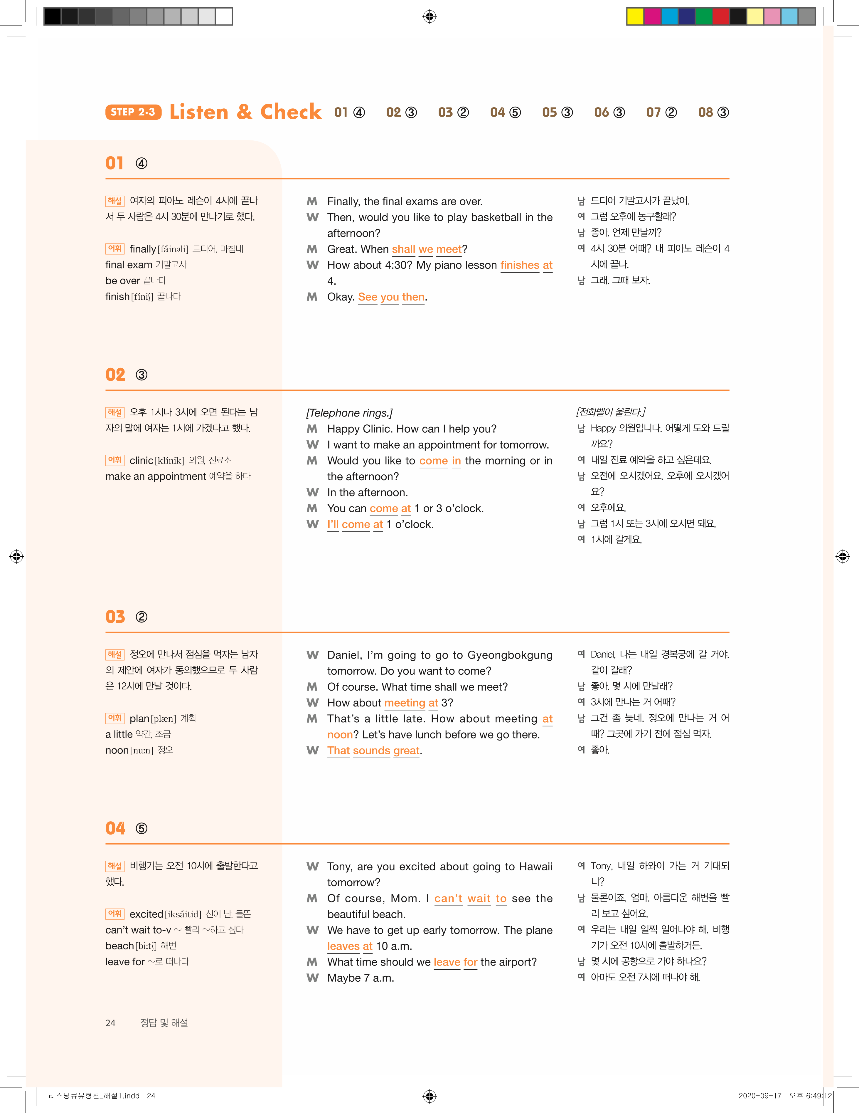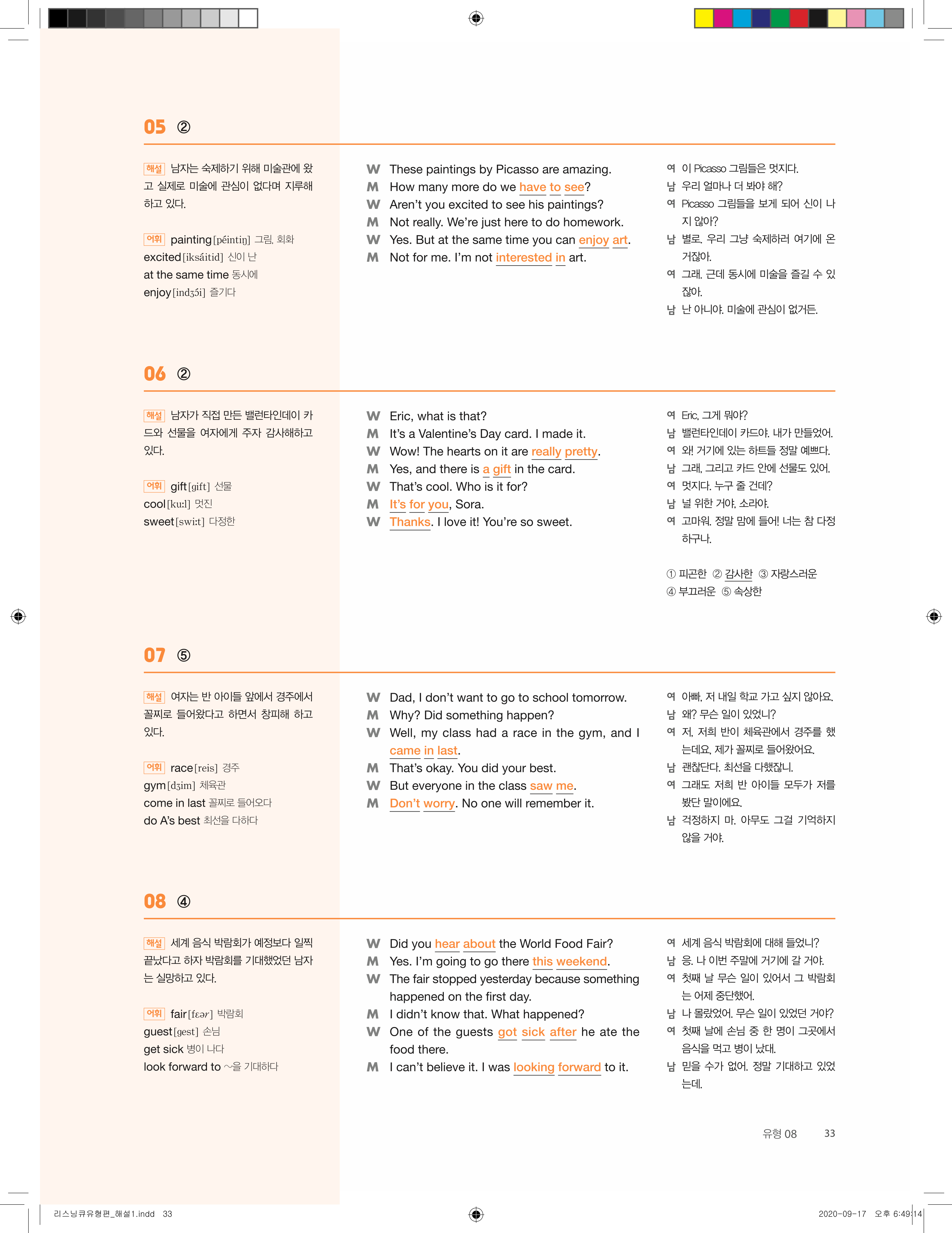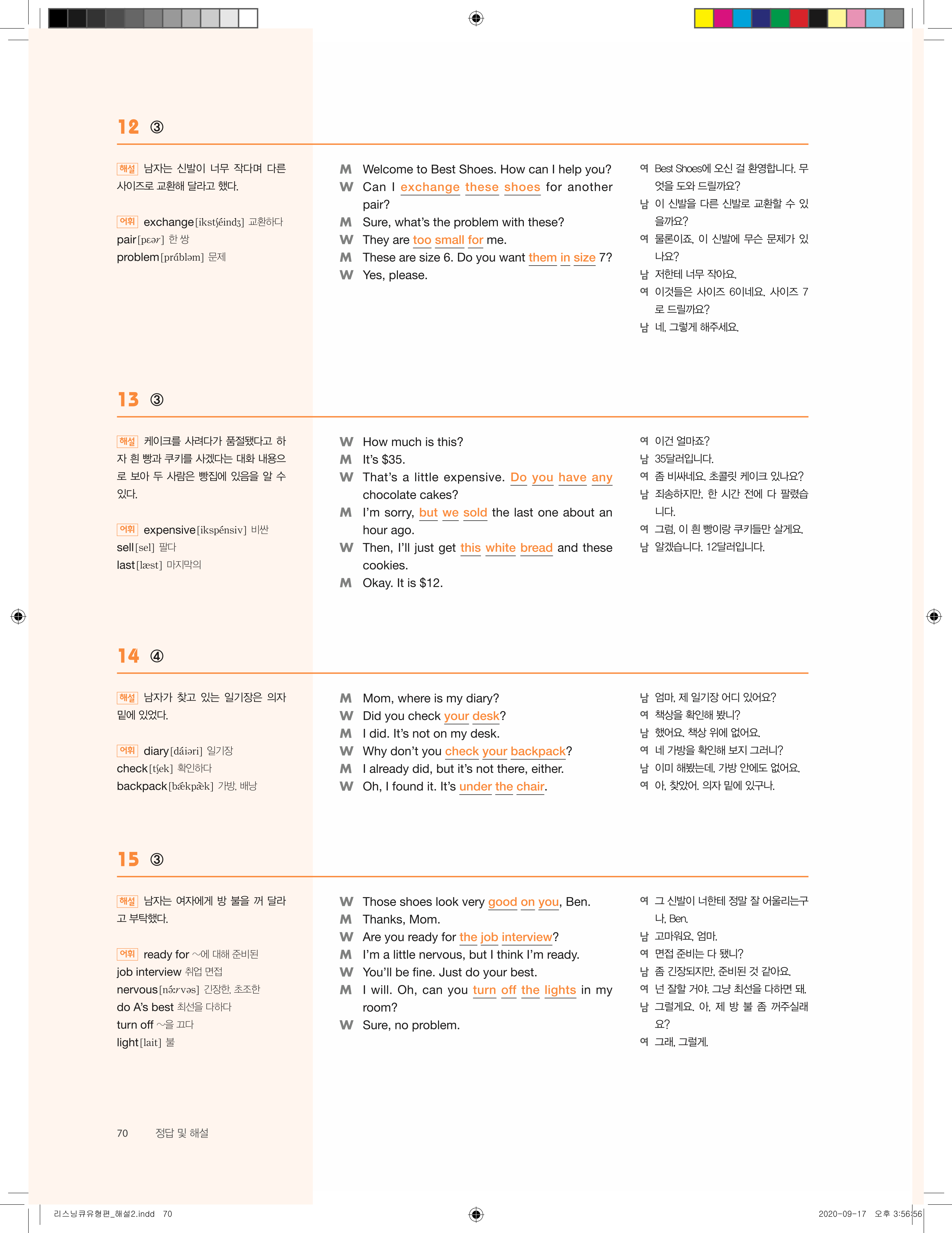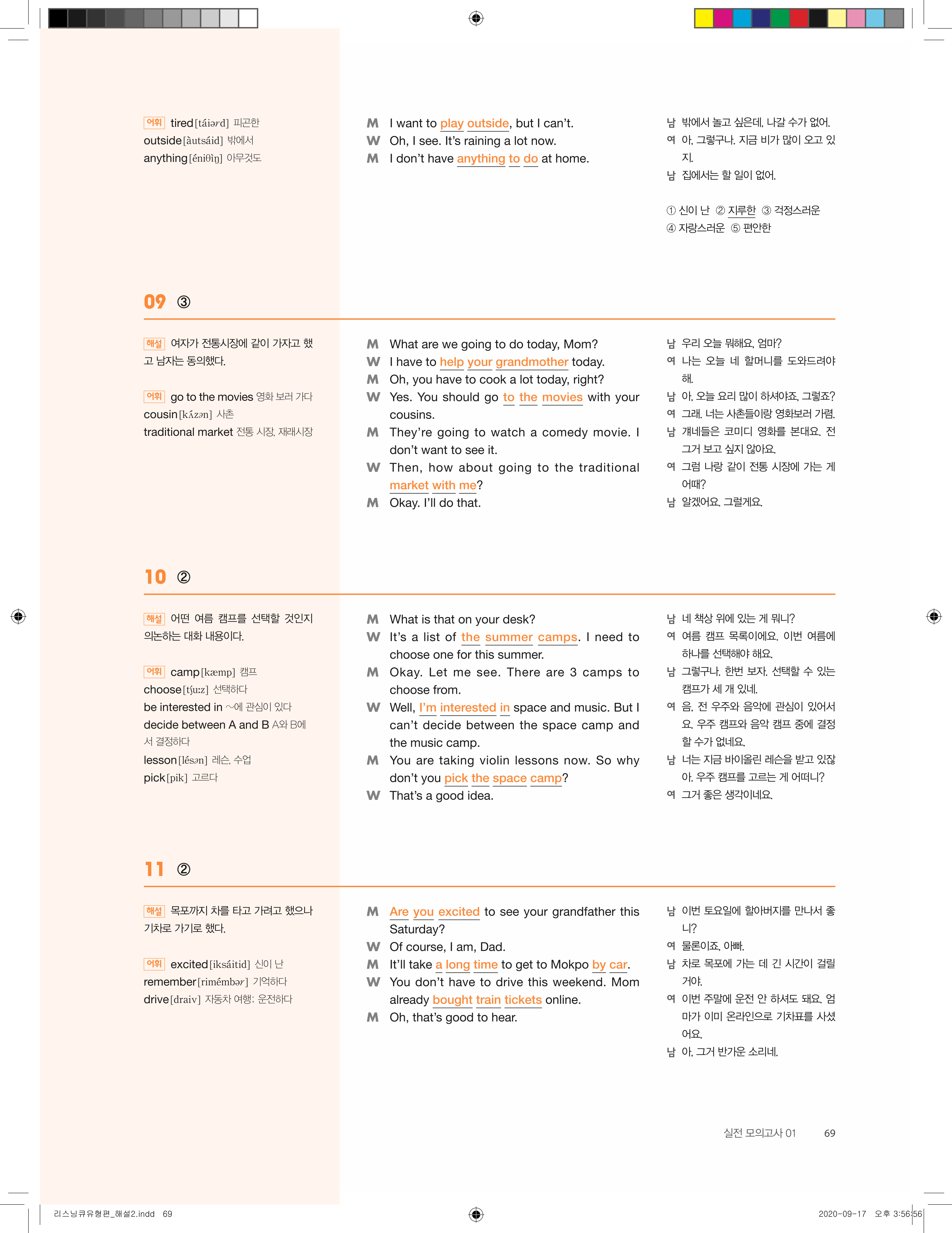 세듀 리스닝큐 중학영어듣기 모의고사 유형편 답지 빠른답지 다운없이 바로보는 사진답지 모바일최적화