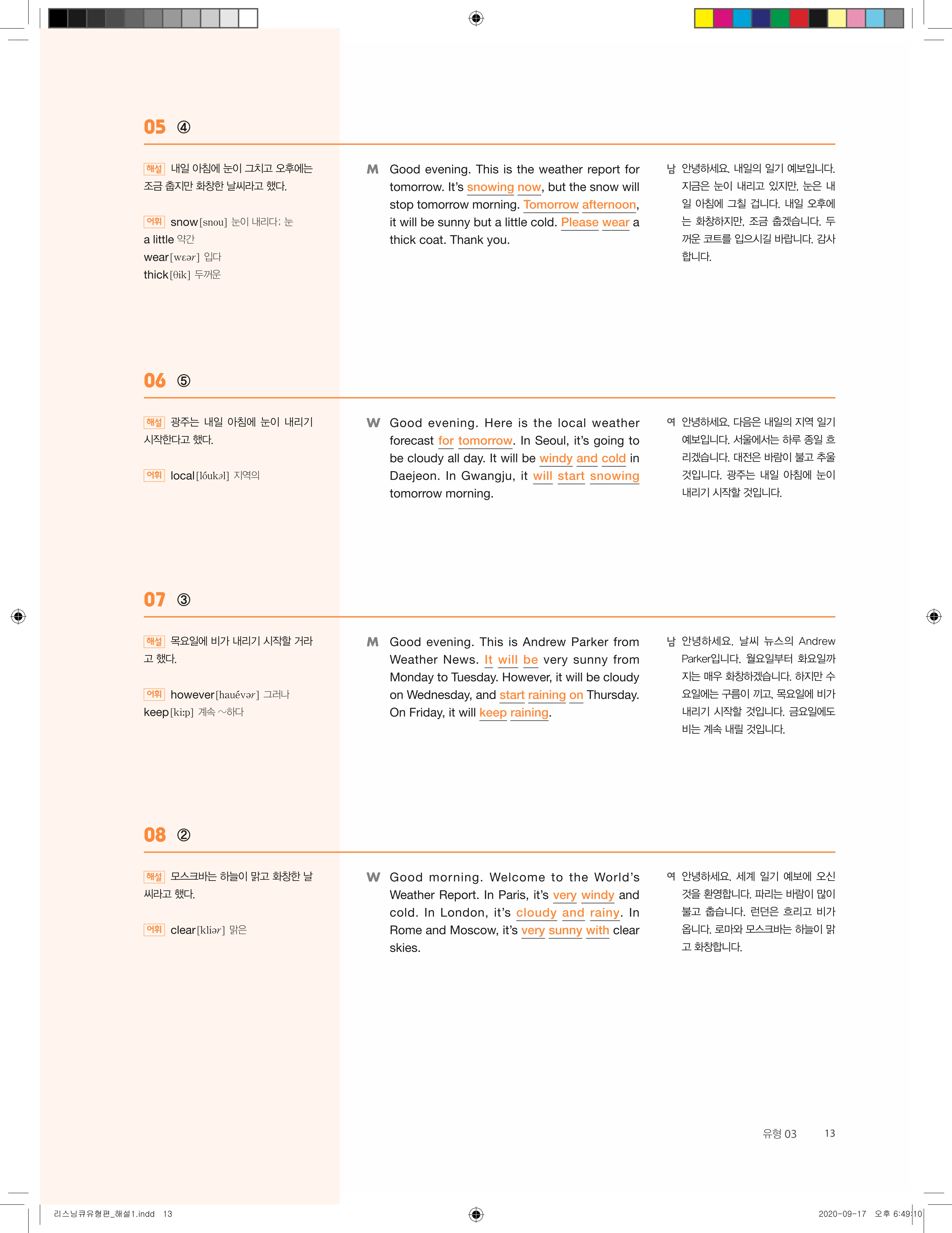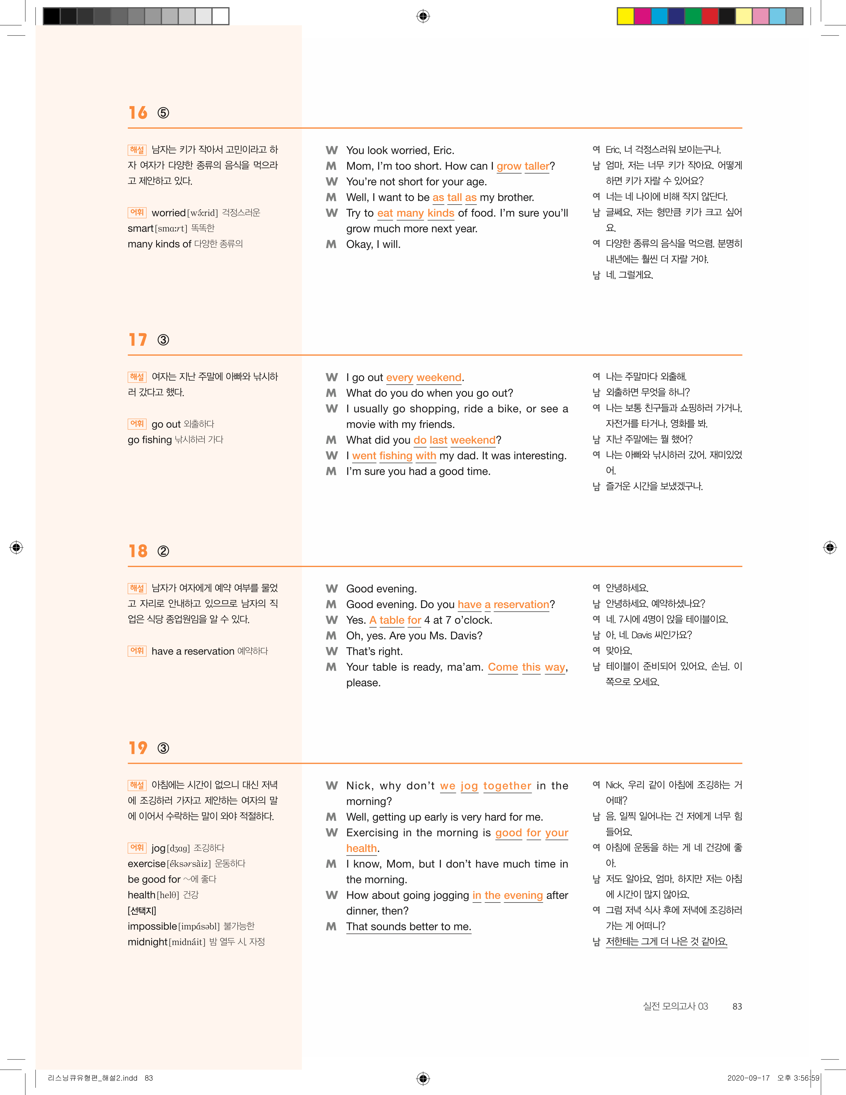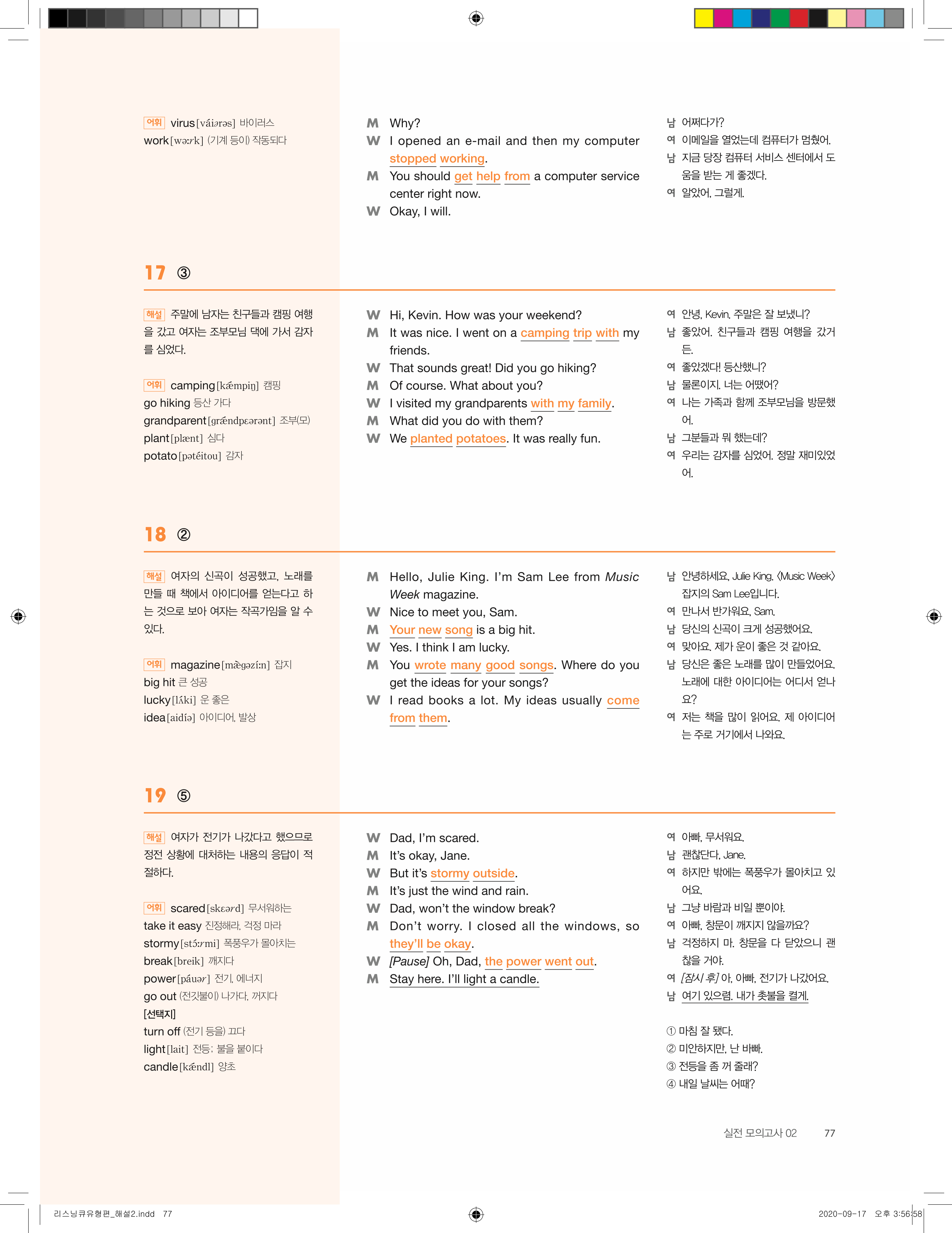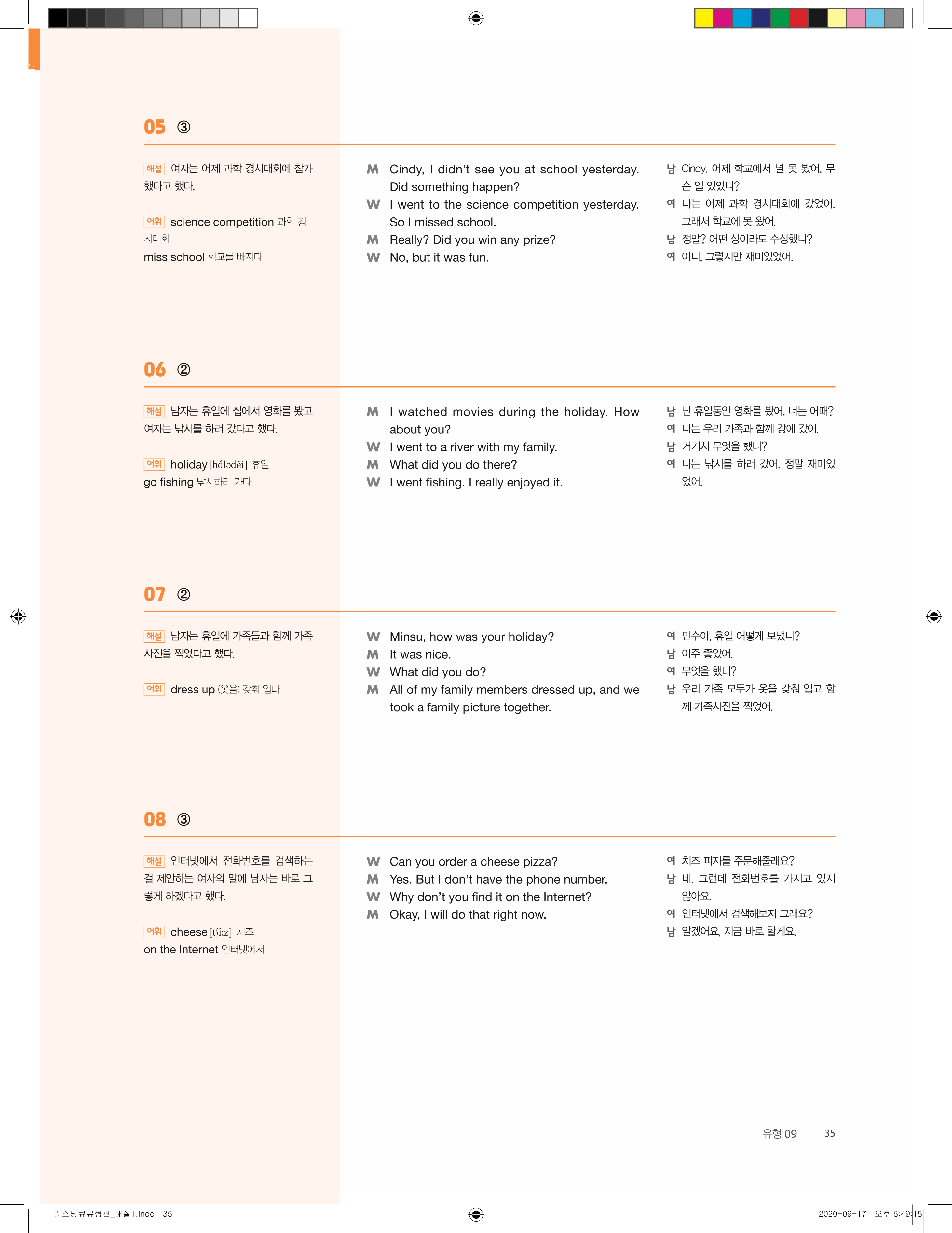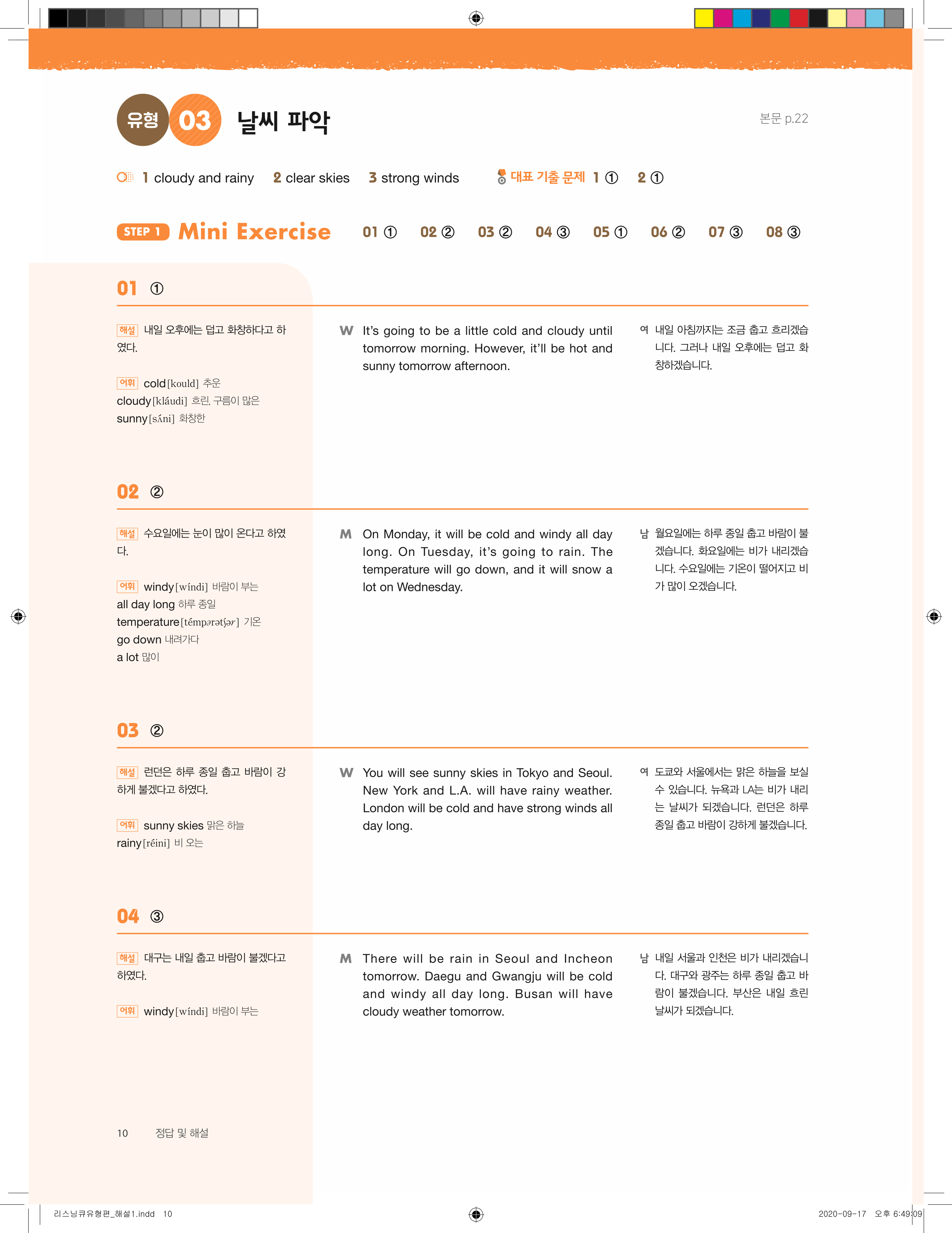 세듀 리스닝큐 중학영어듣기 모의고사 유형편 답지 빠른답지 다운없이 바로보는 사진답지 모바일최적화