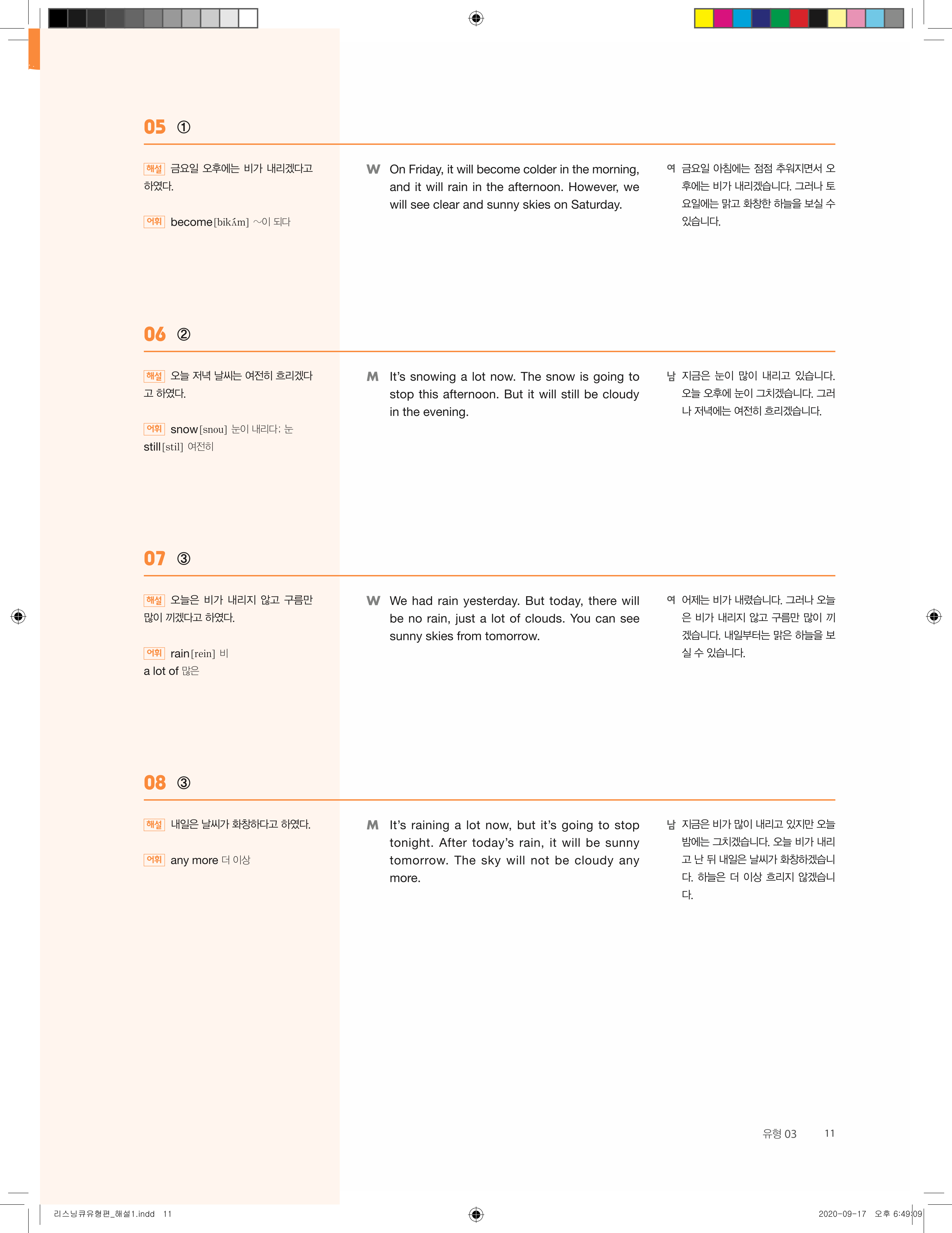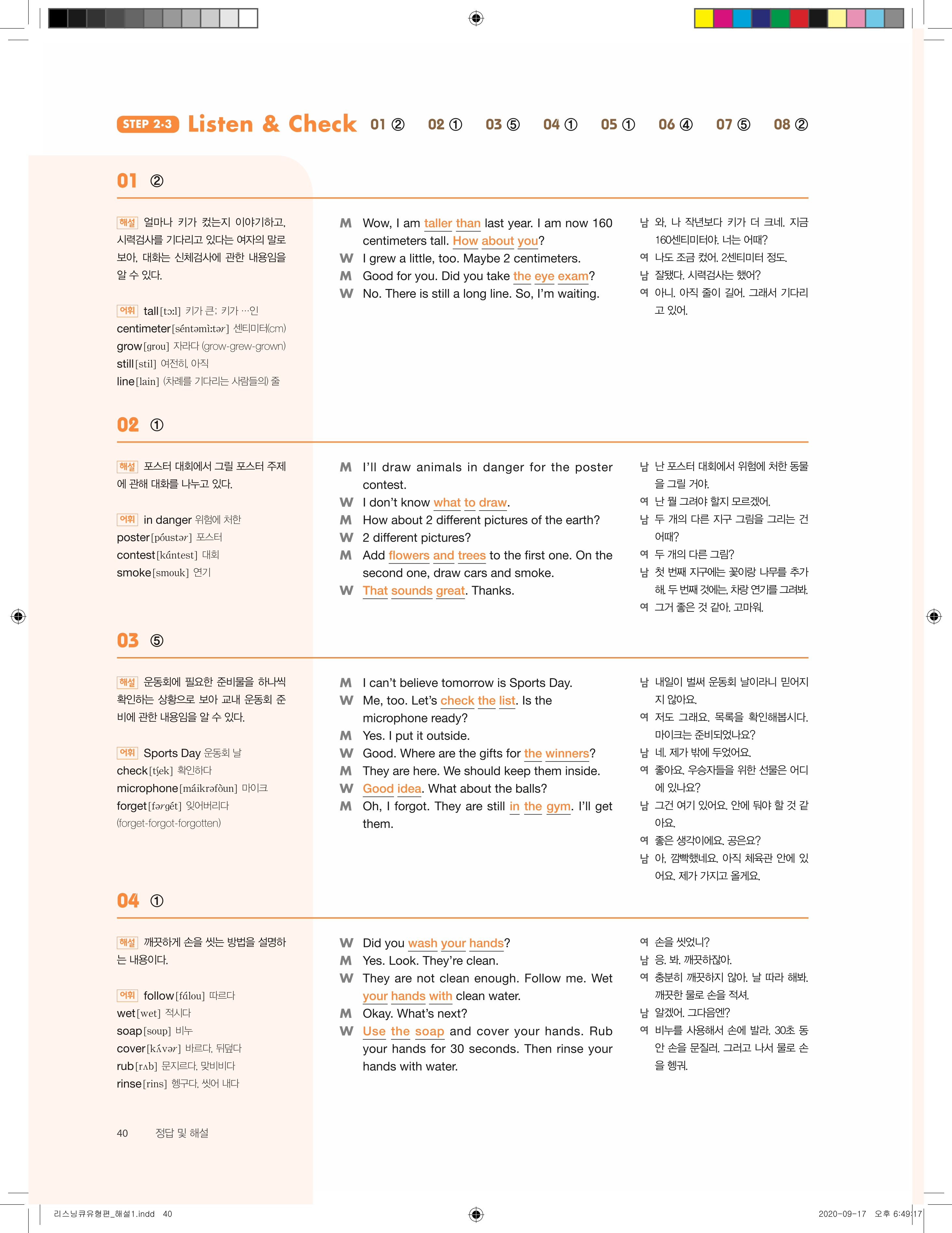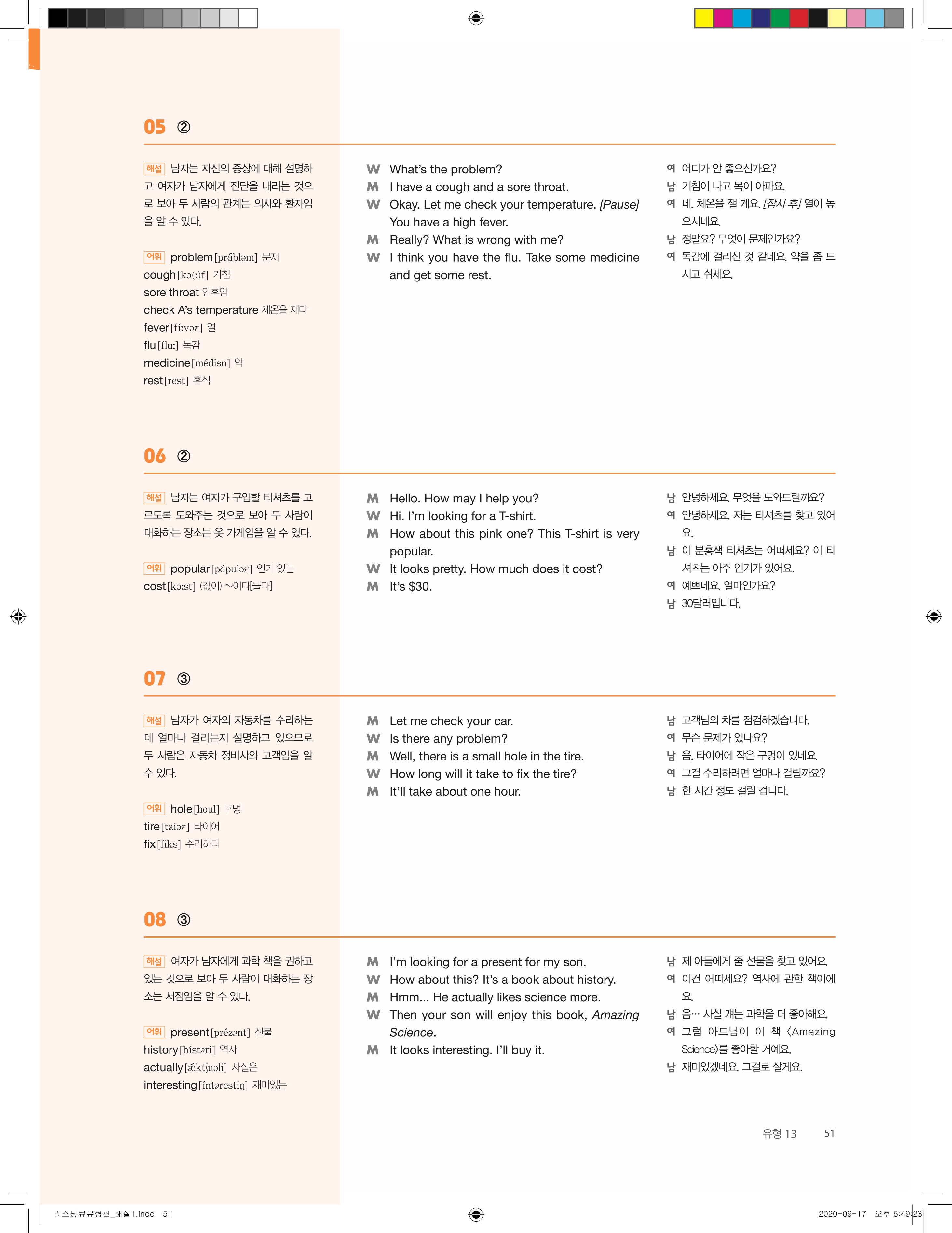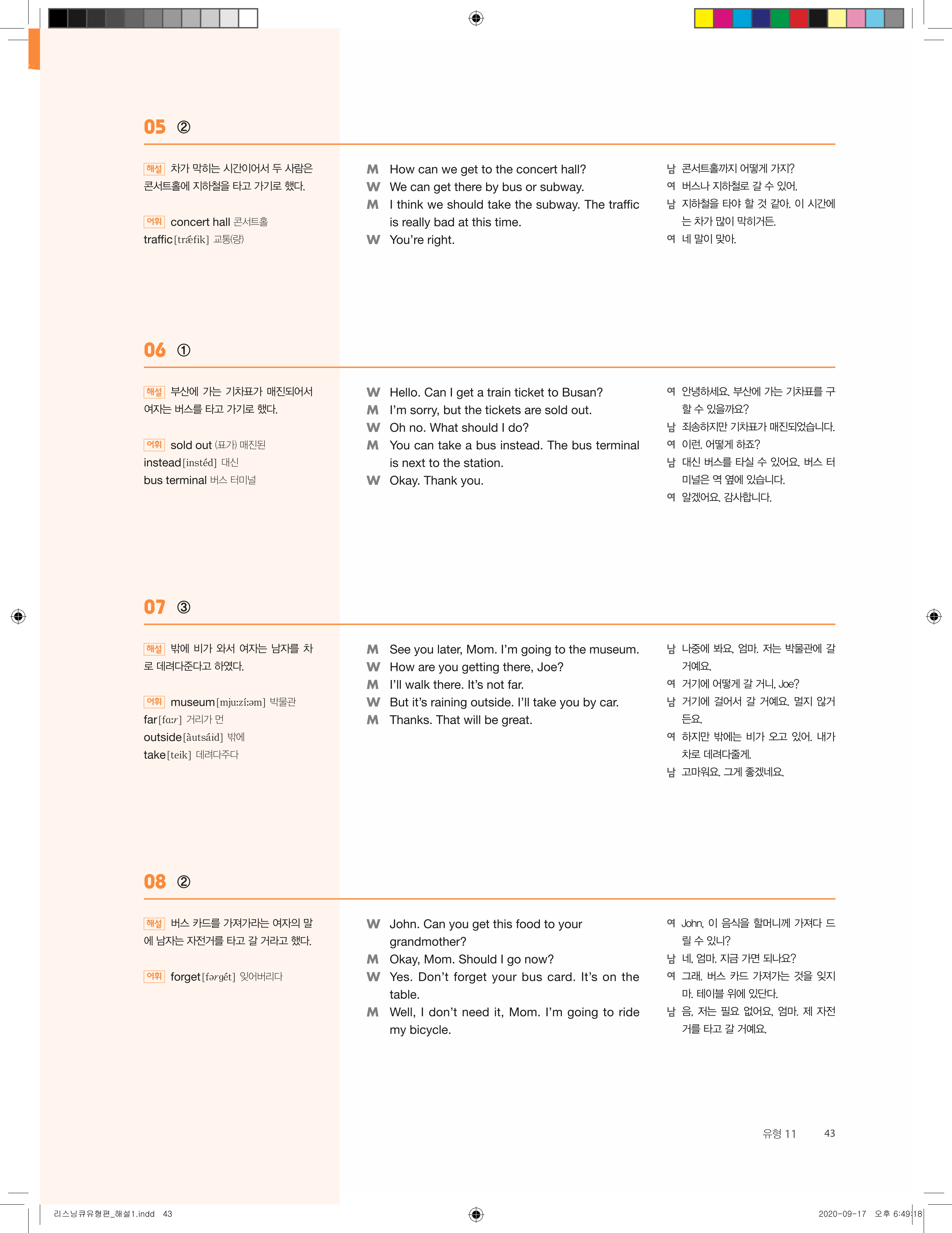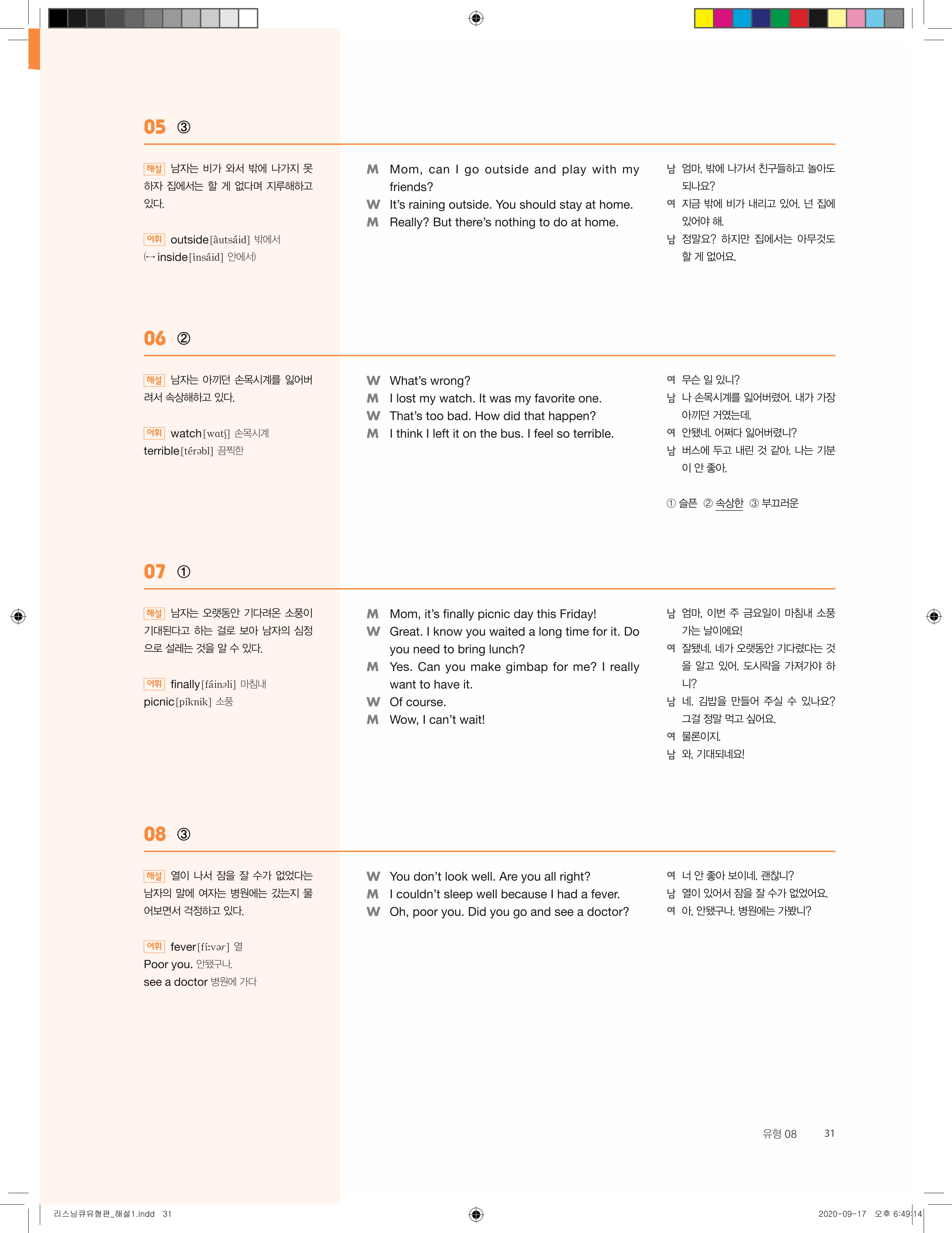 세듀 리스닝큐 중학영어듣기 모의고사 유형편 답지 빠른답지 다운없이 바로보는 사진답지 모바일최적화