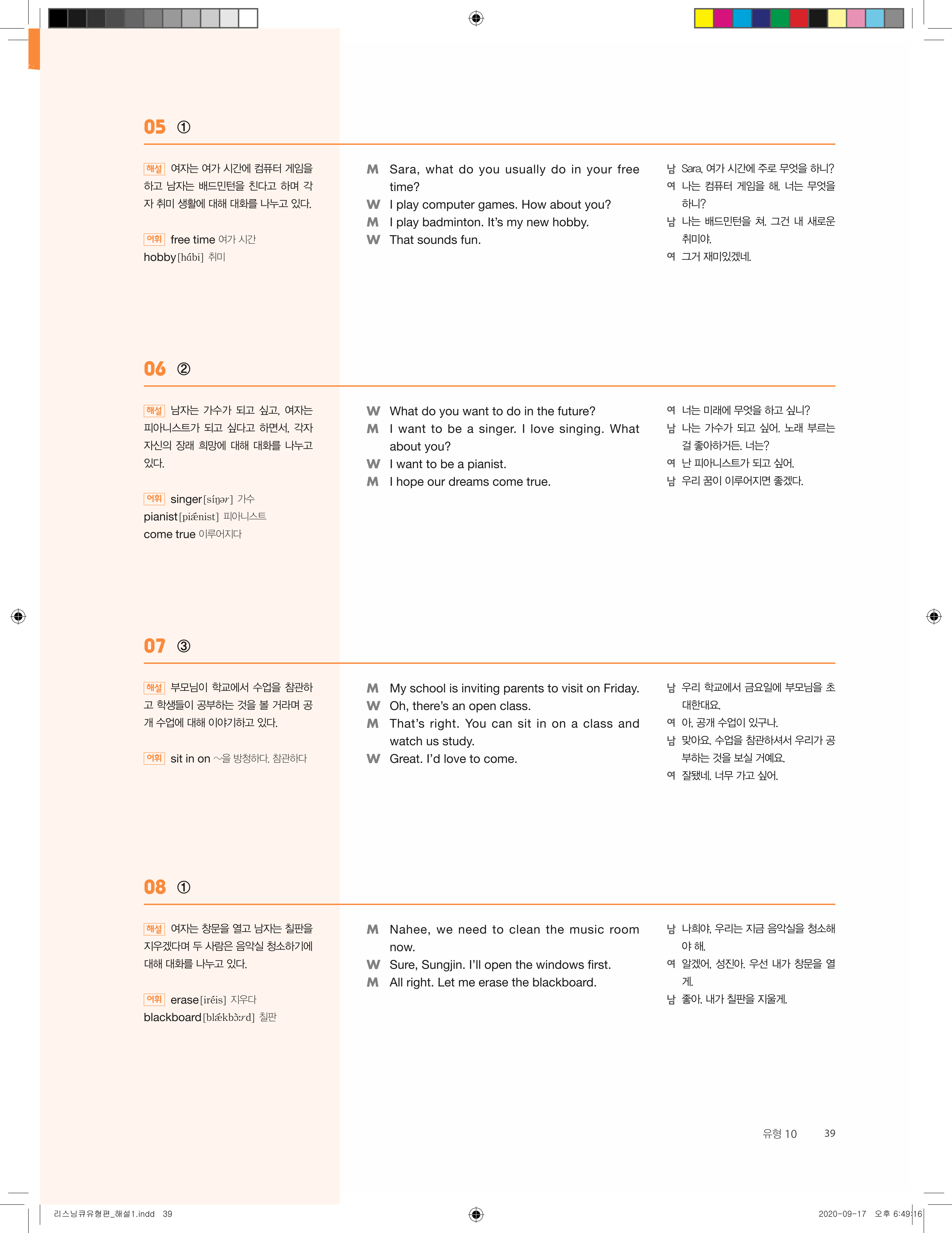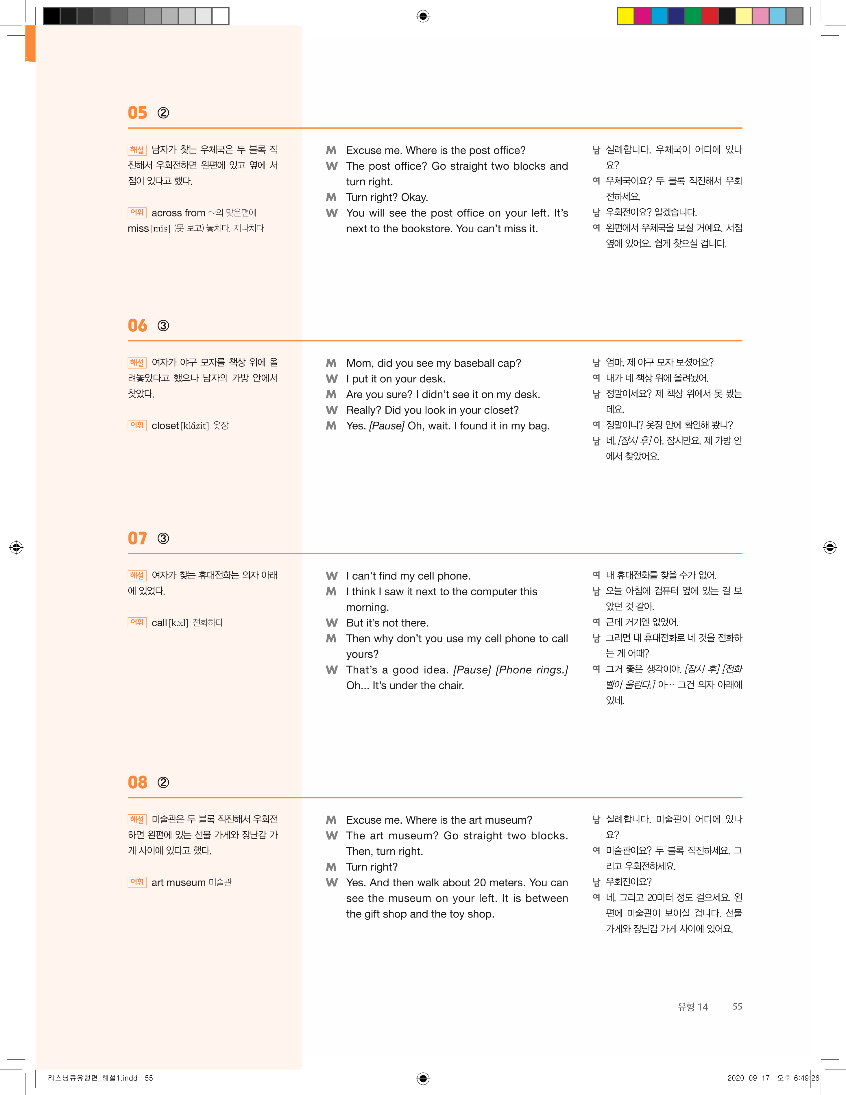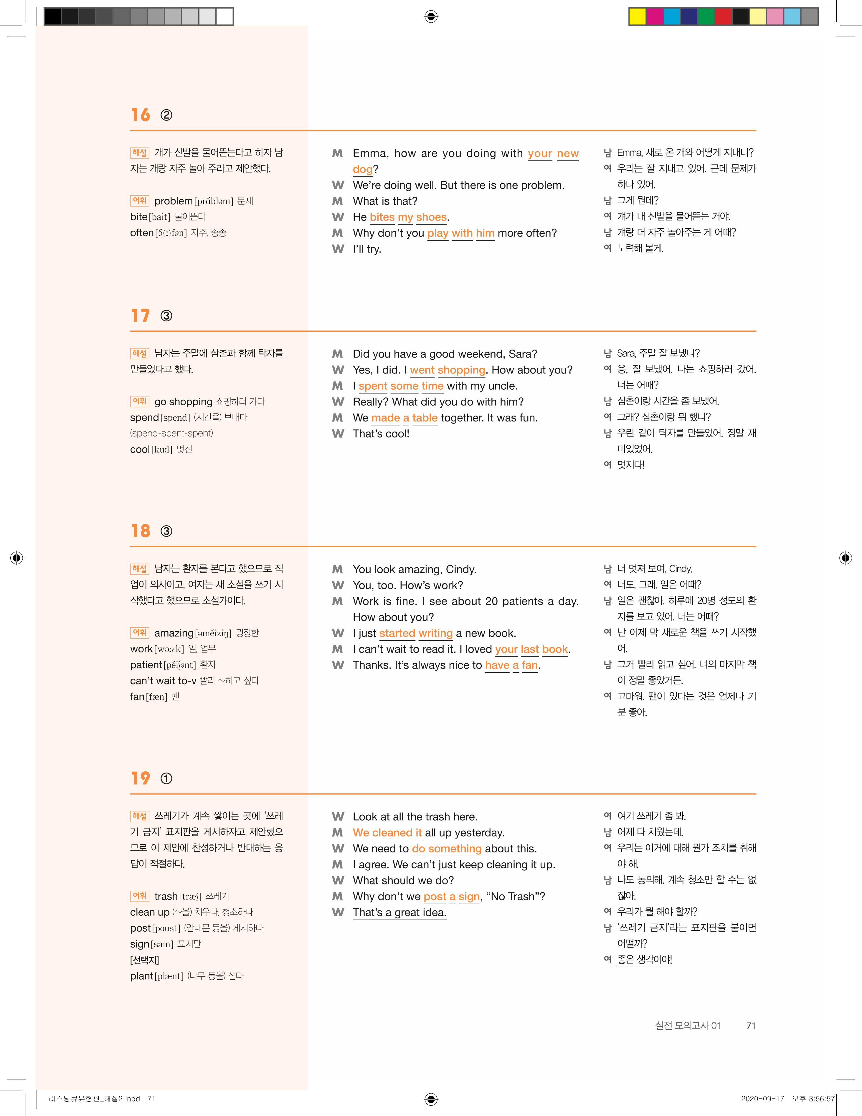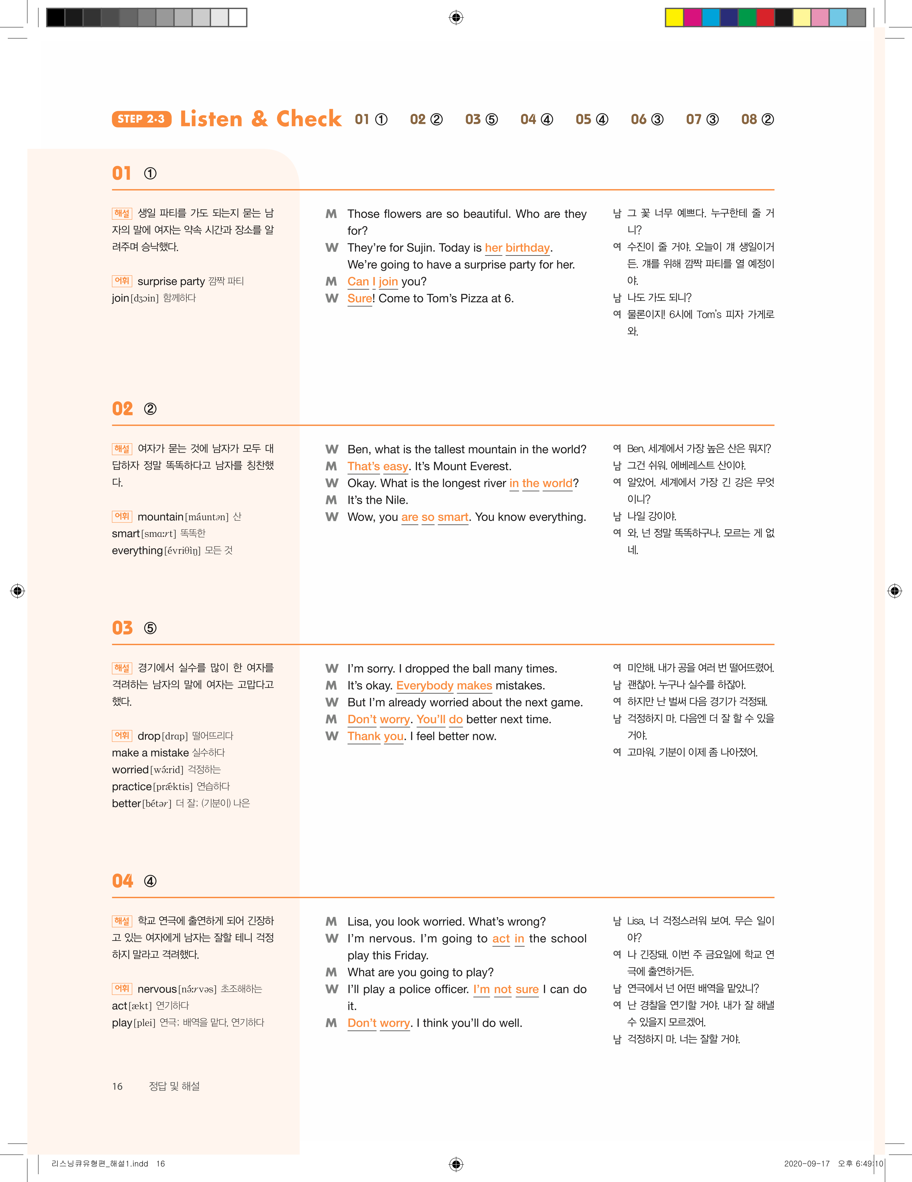 세듀 리스닝큐 중학영어듣기 모의고사 유형편 답지 빠른답지 다운없이 바로보는 사진답지 모바일최적화