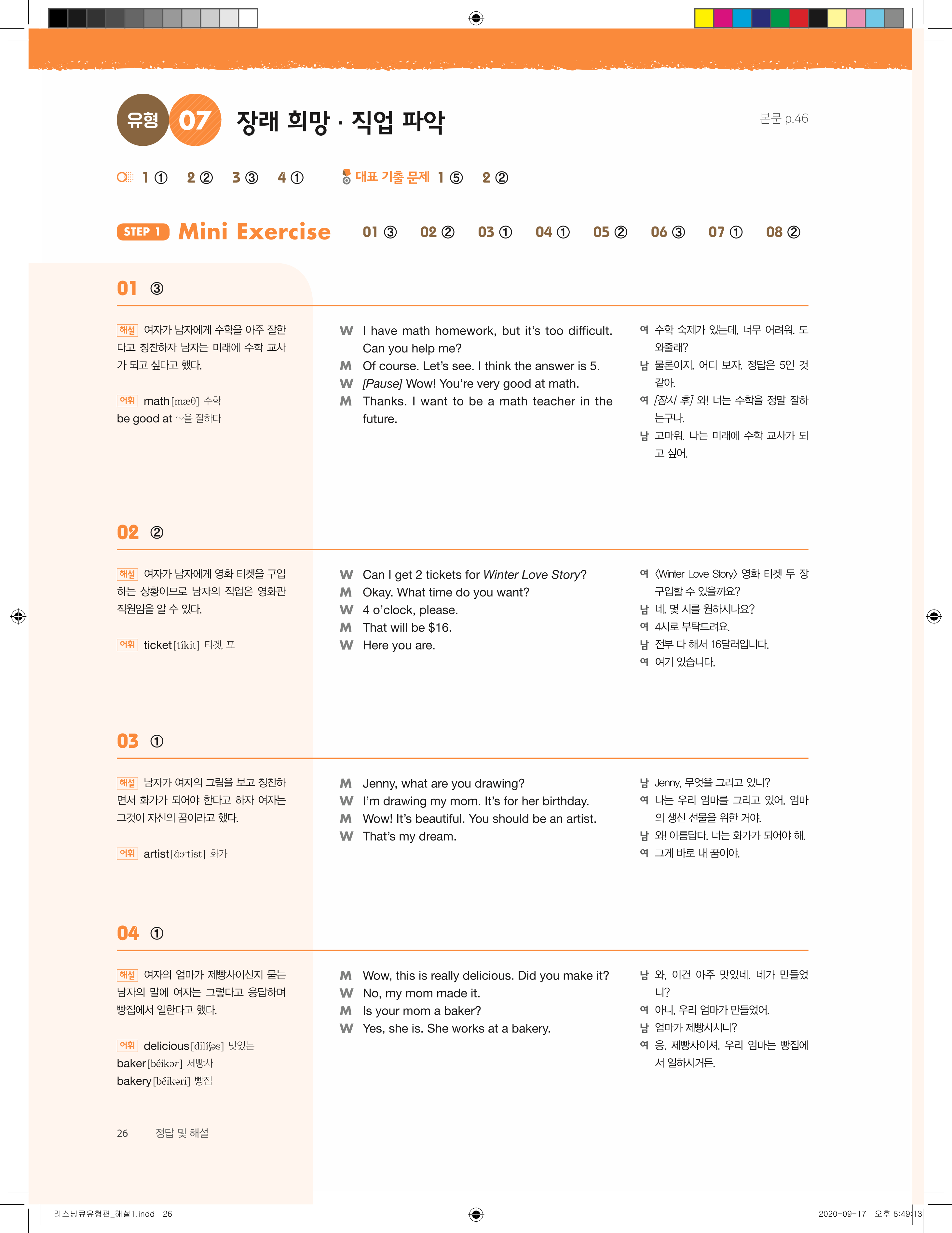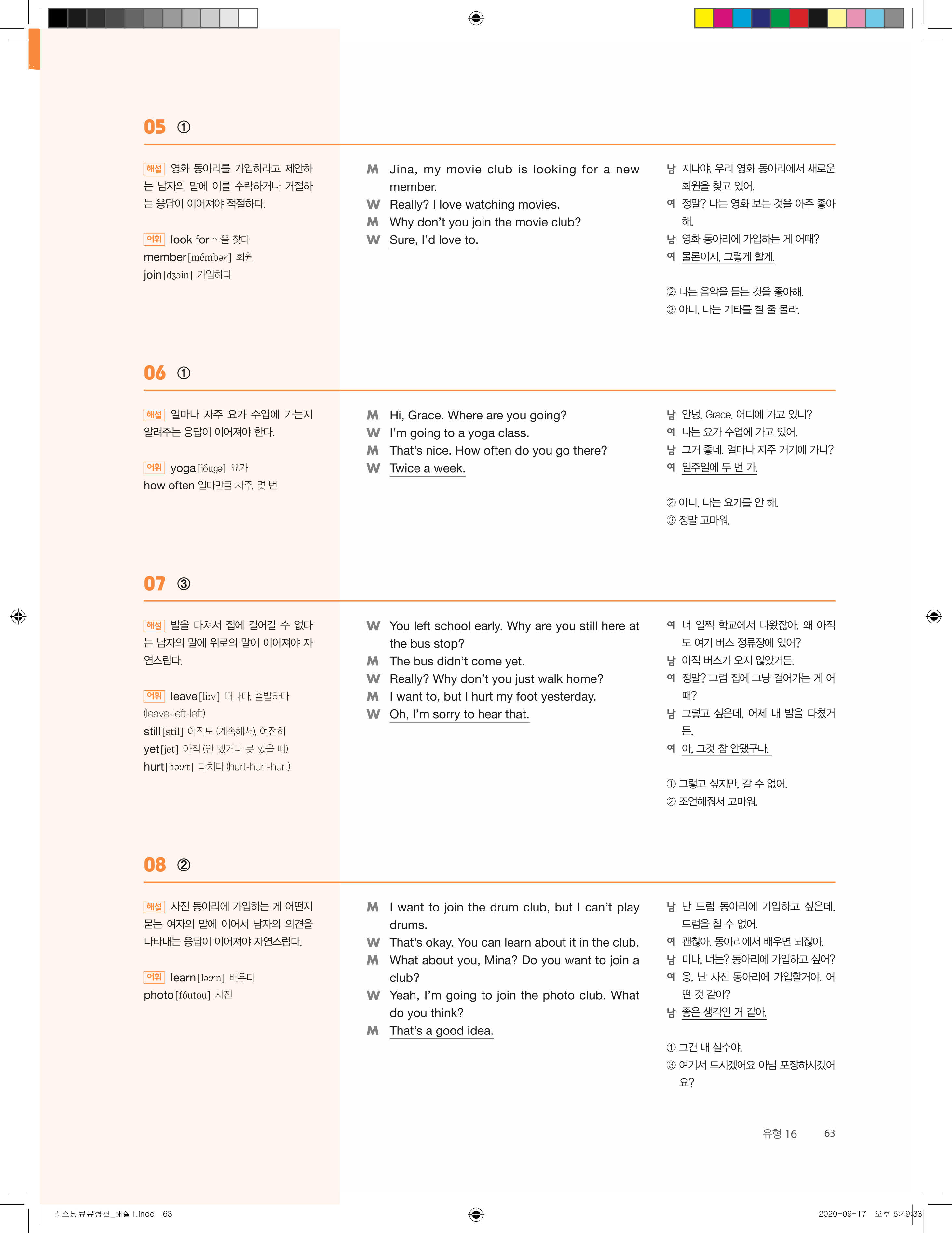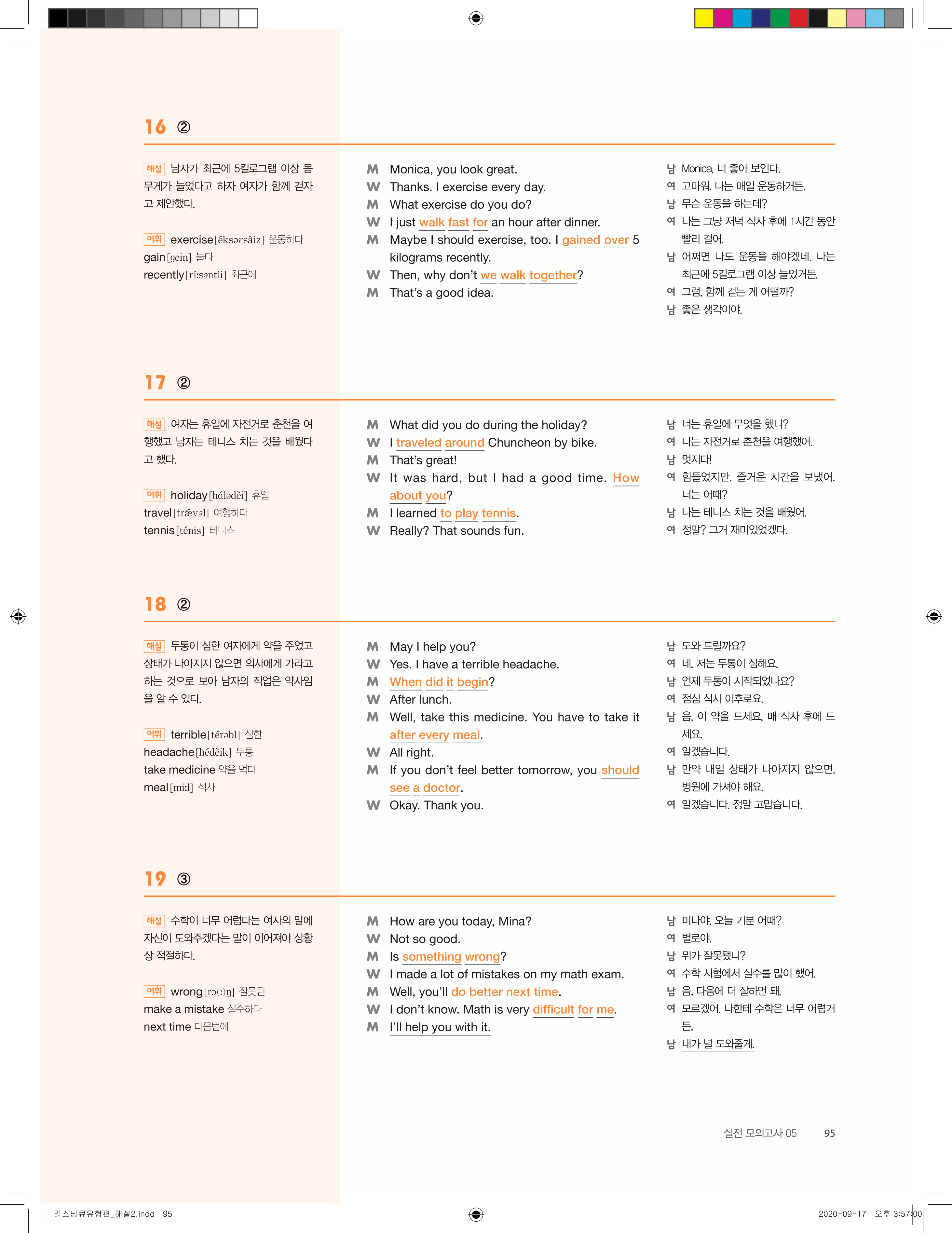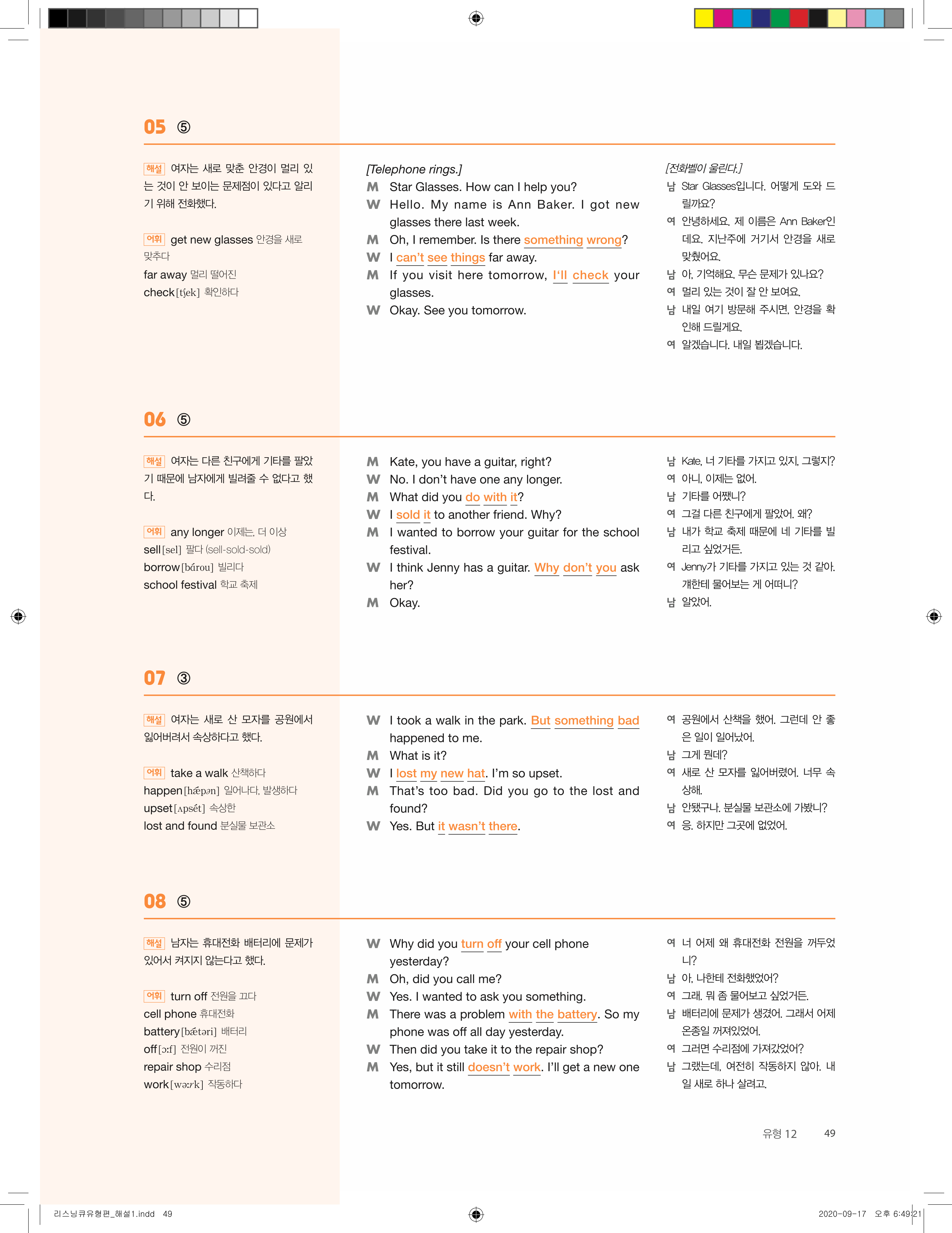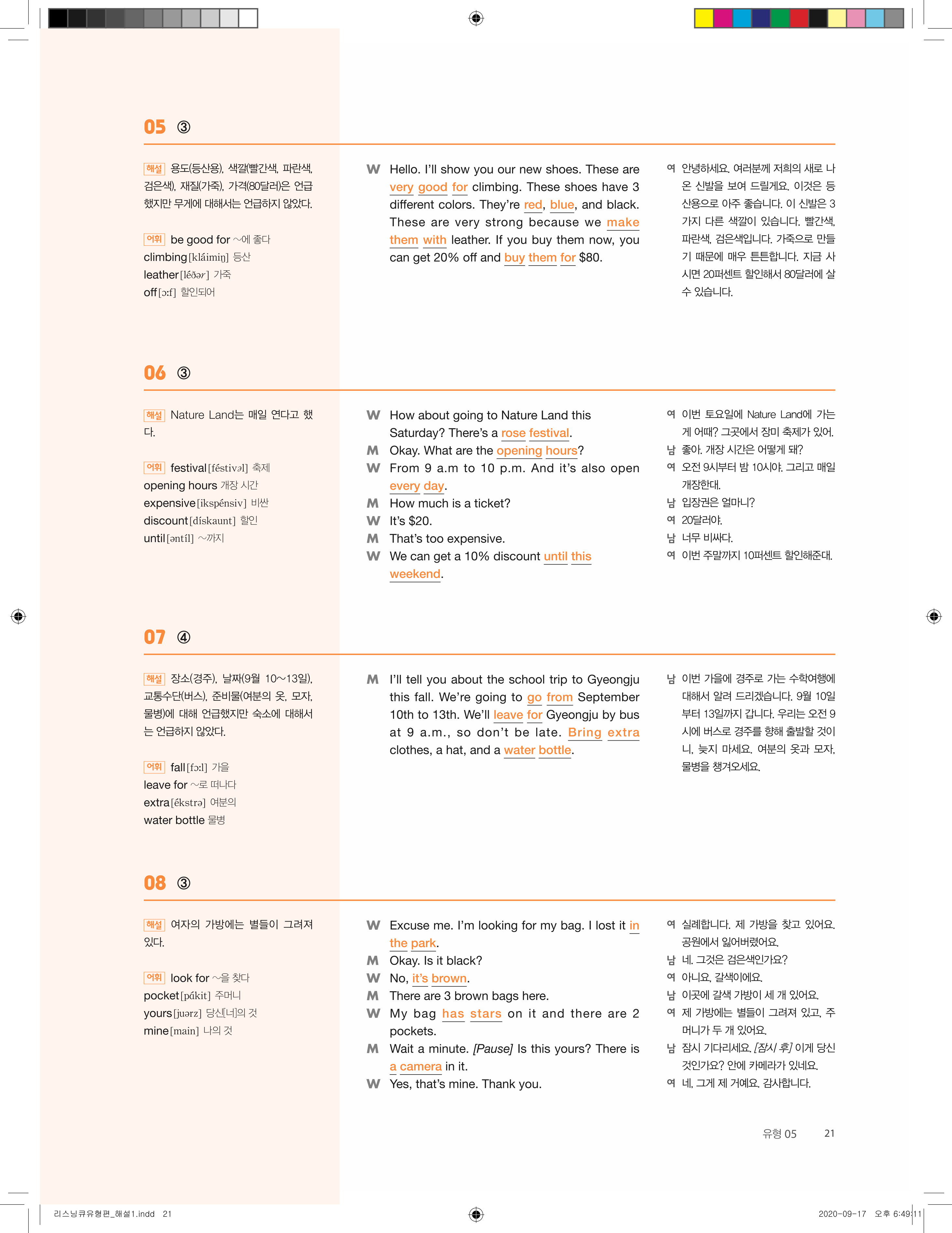 세듀 리스닝큐 중학영어듣기 모의고사 유형편 답지 빠른답지 다운없이 바로보는 사진답지 모바일최적화