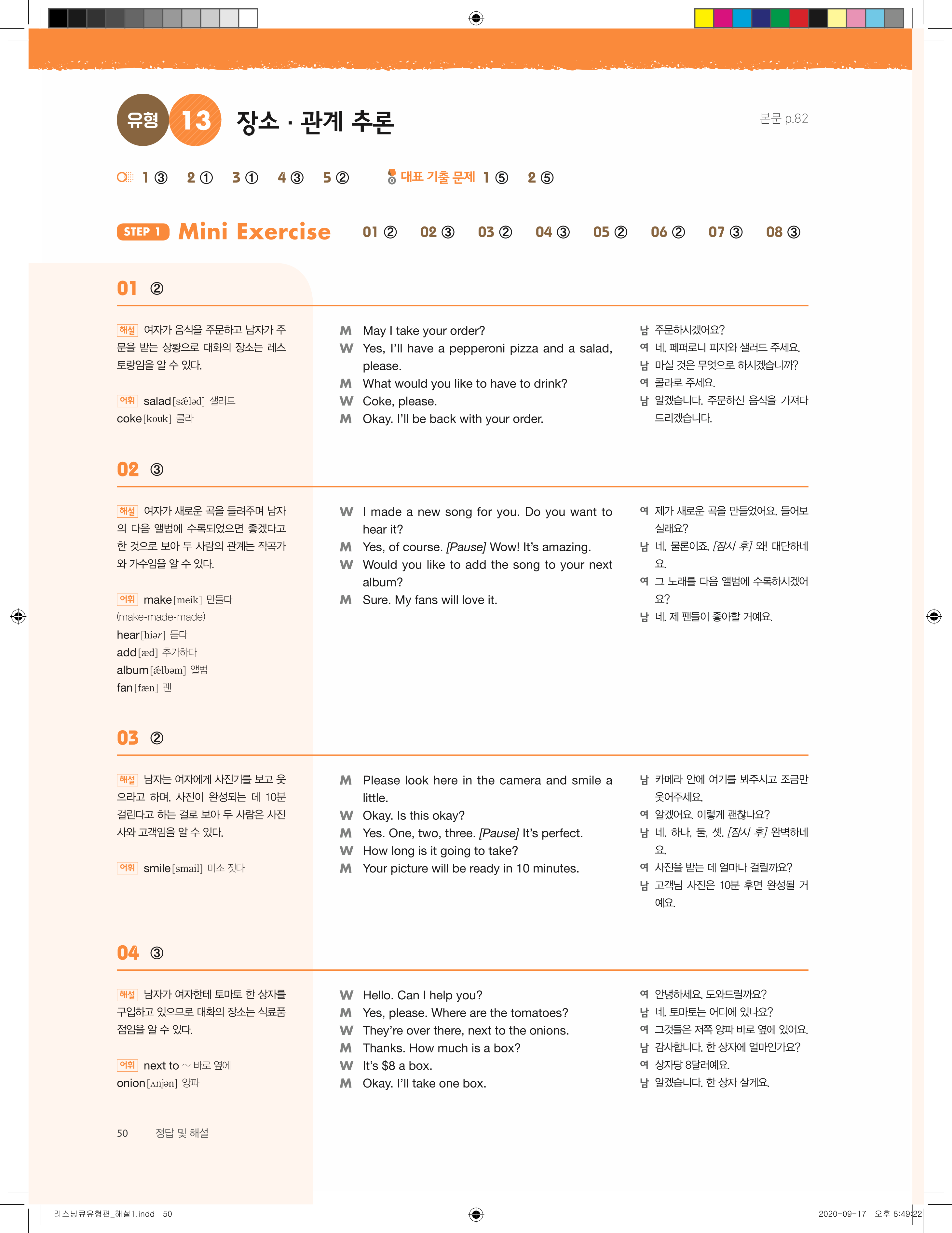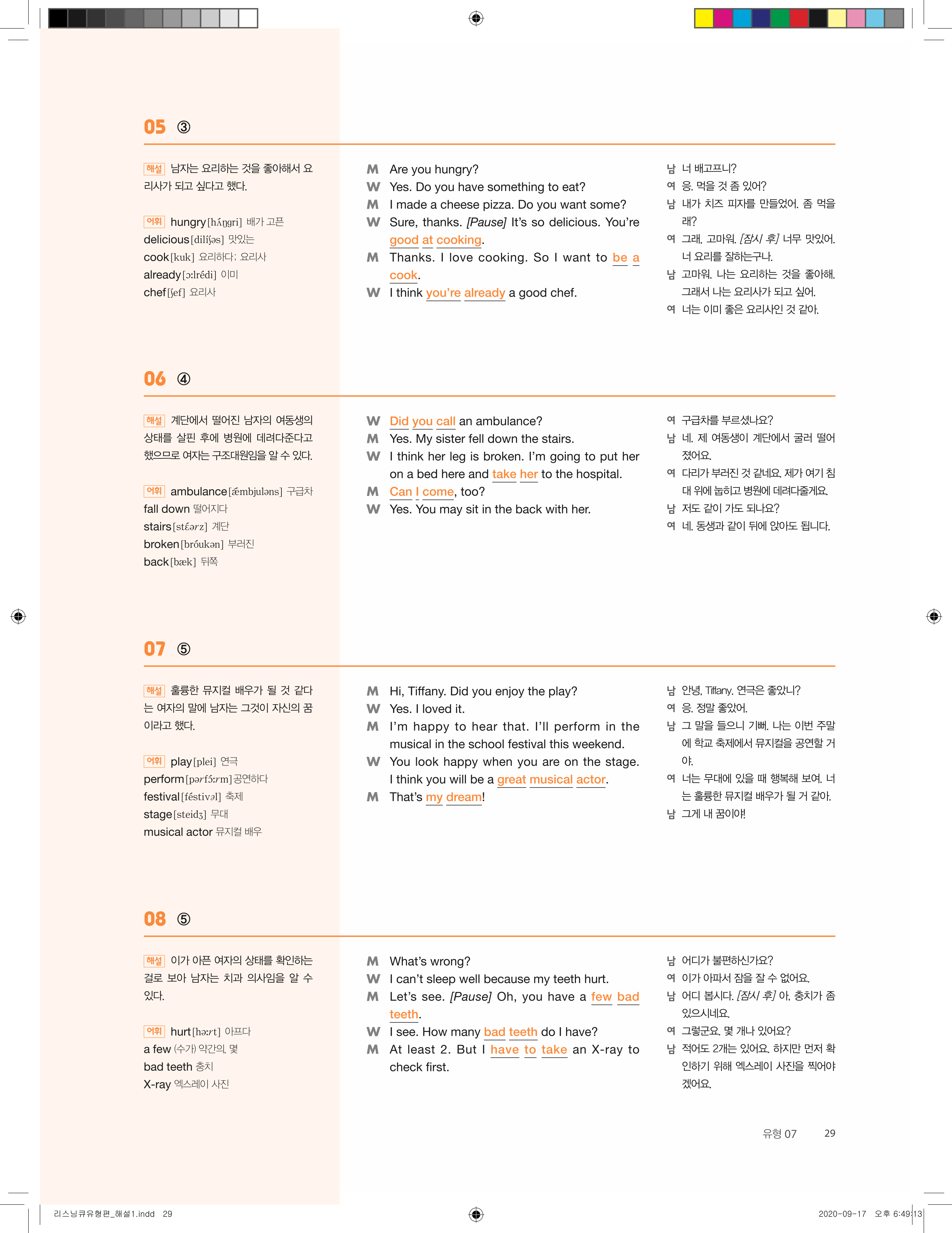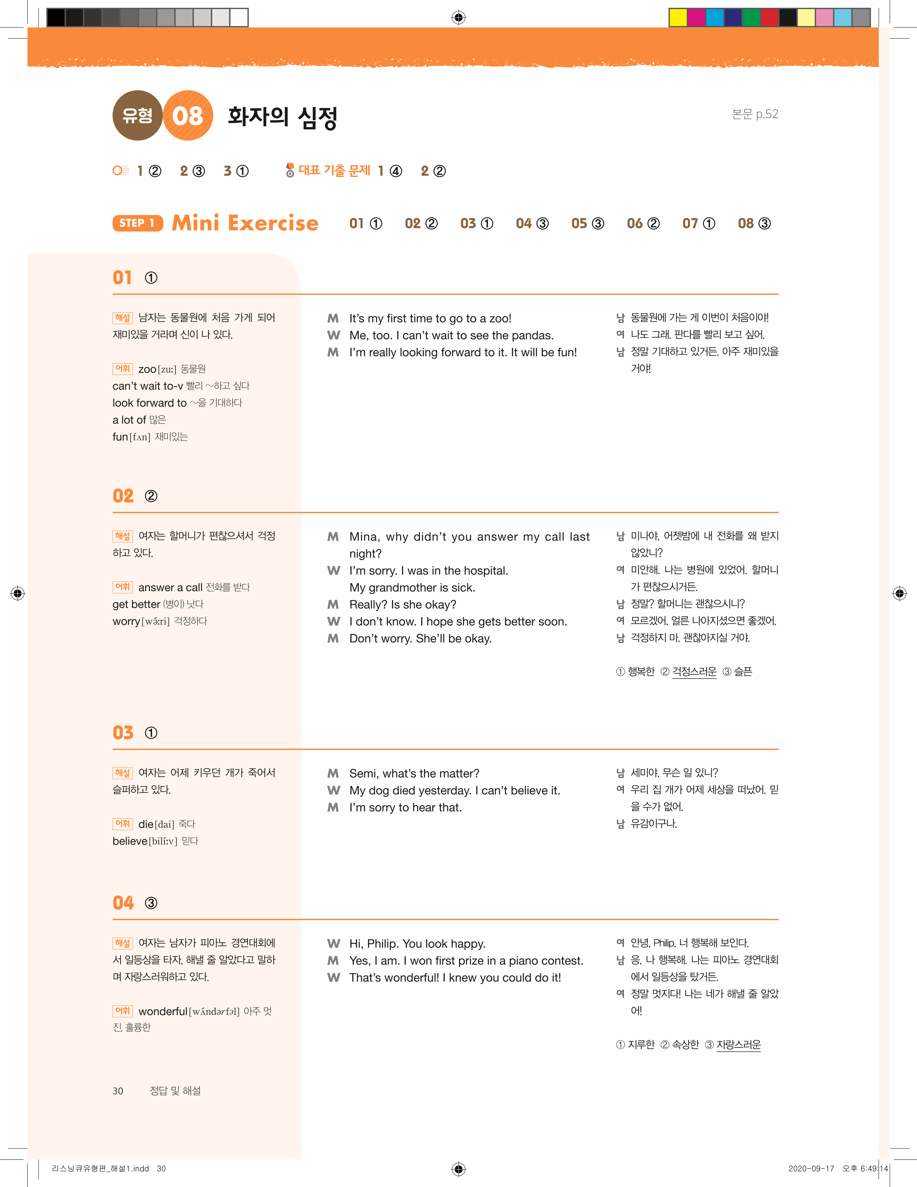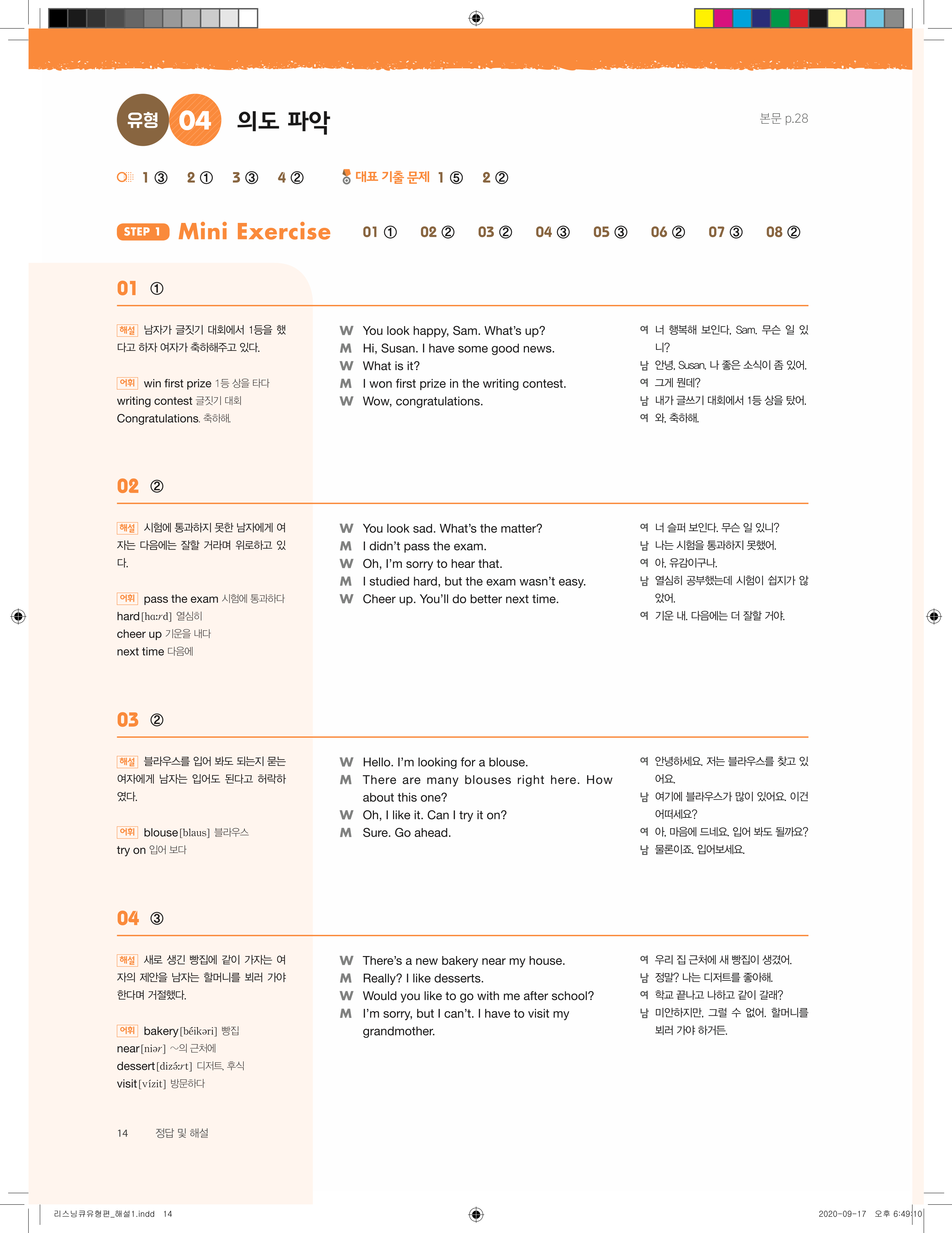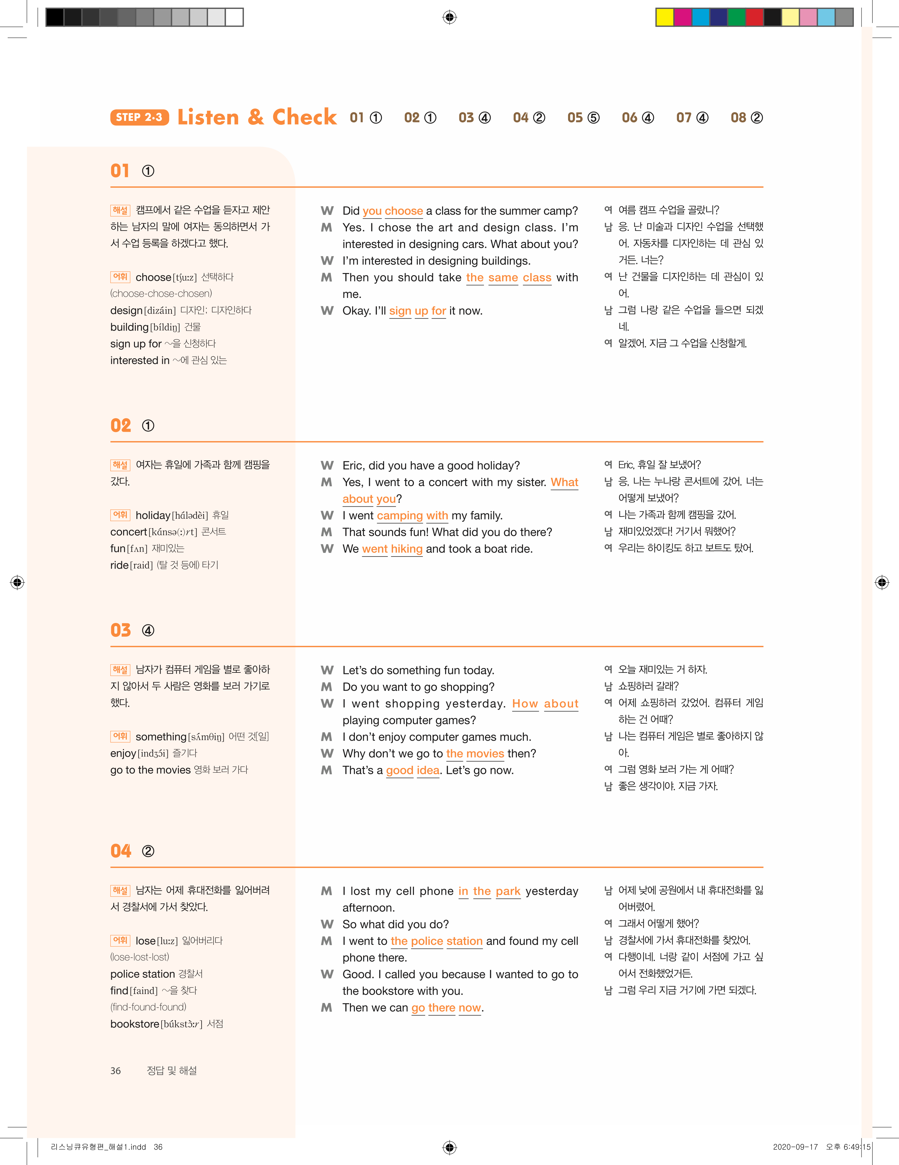 세듀 리스닝큐 중학영어듣기 모의고사 유형편 답지 빠른답지 다운없이 바로보는 사진답지 모바일최적화
