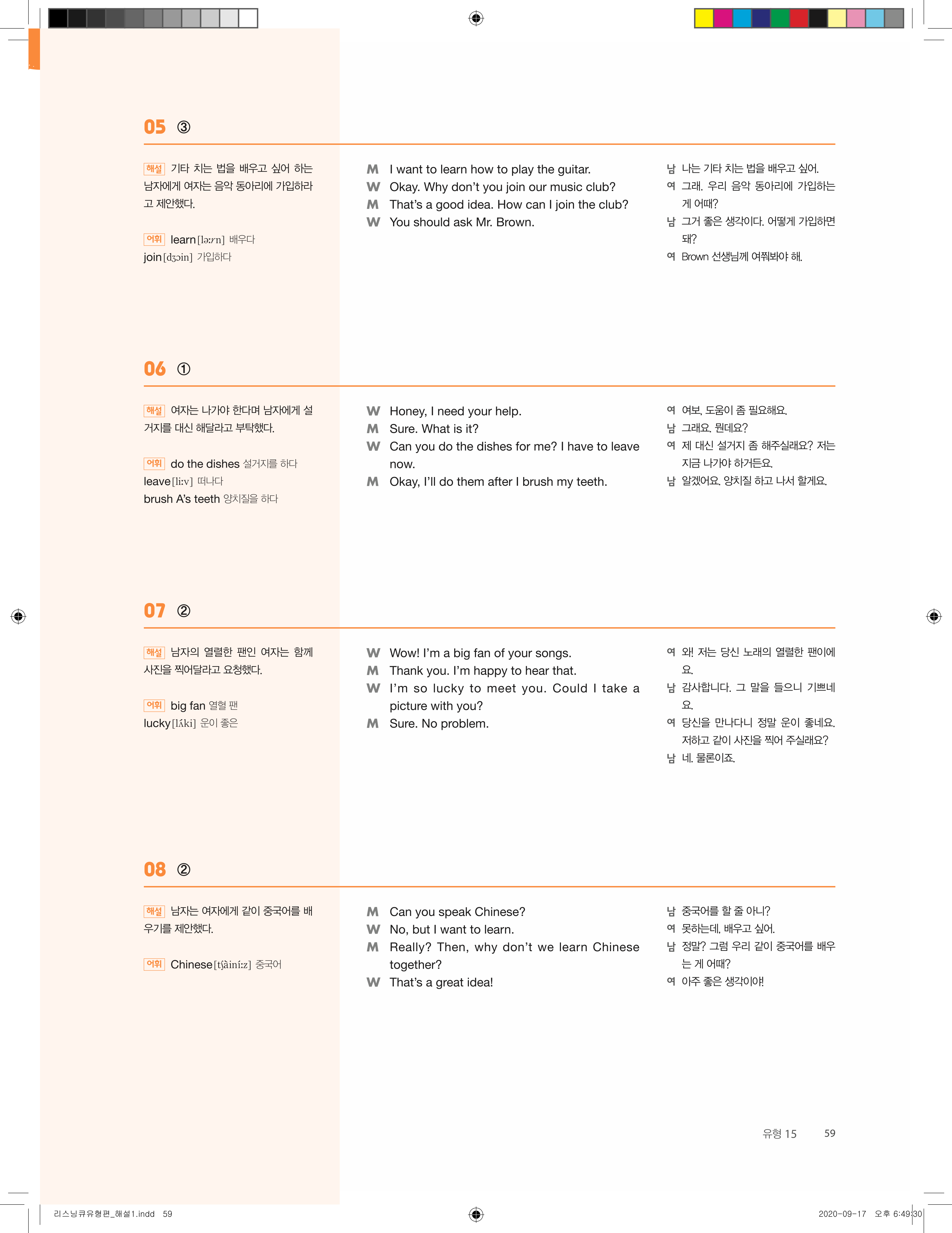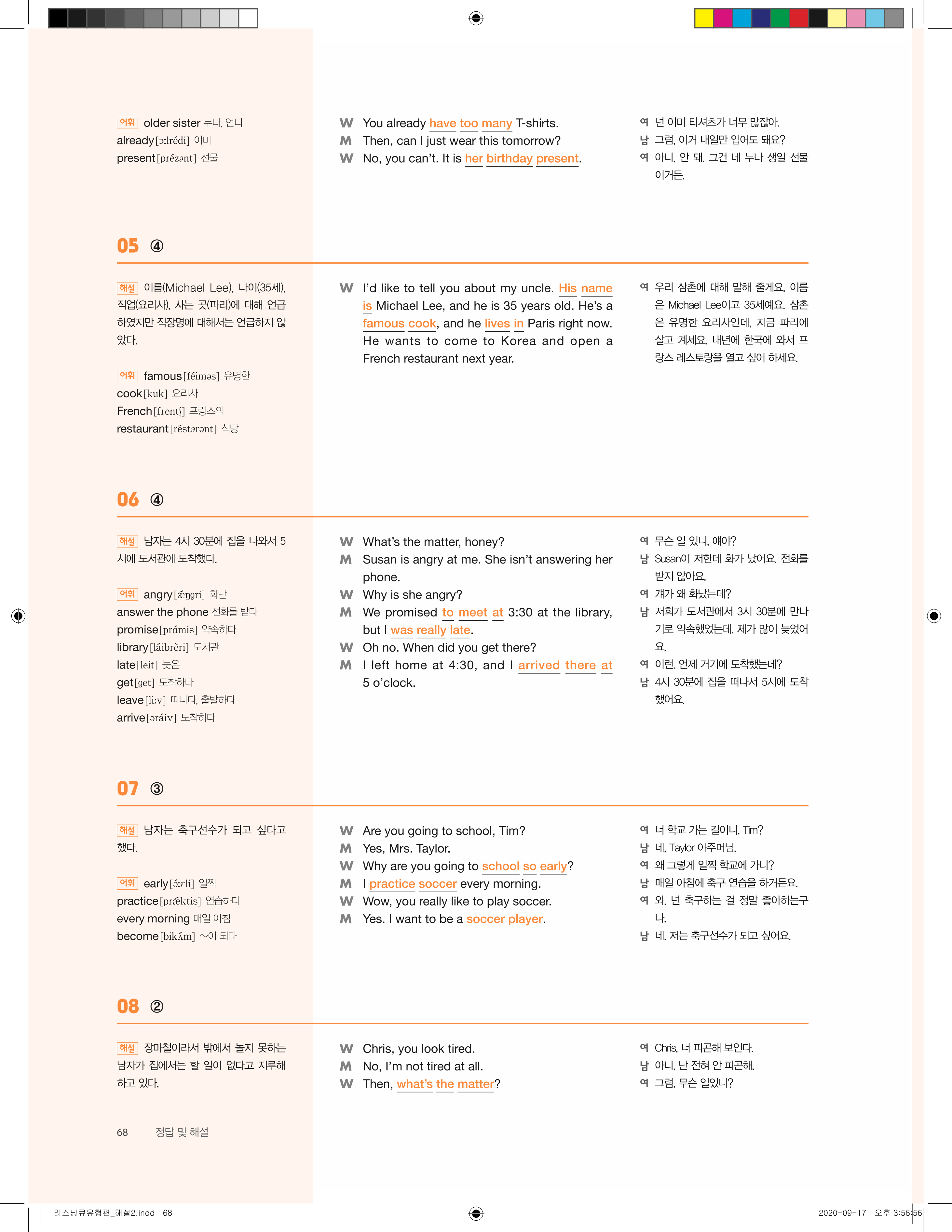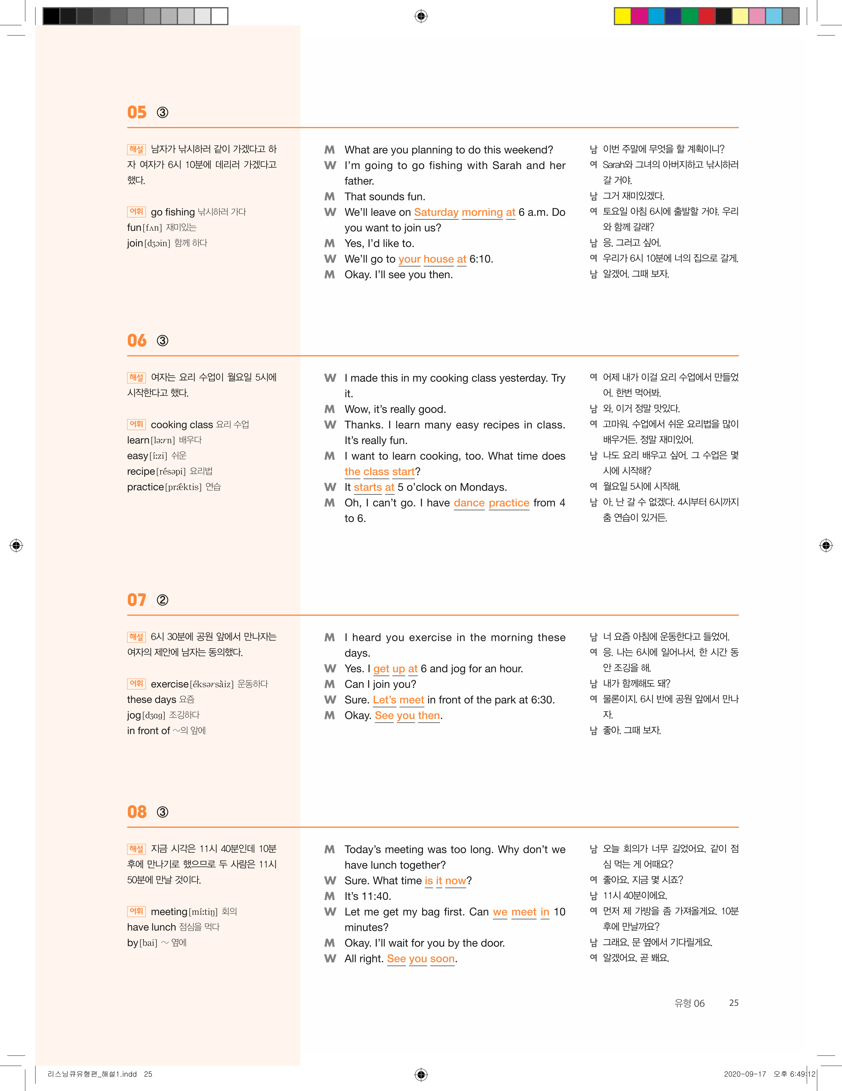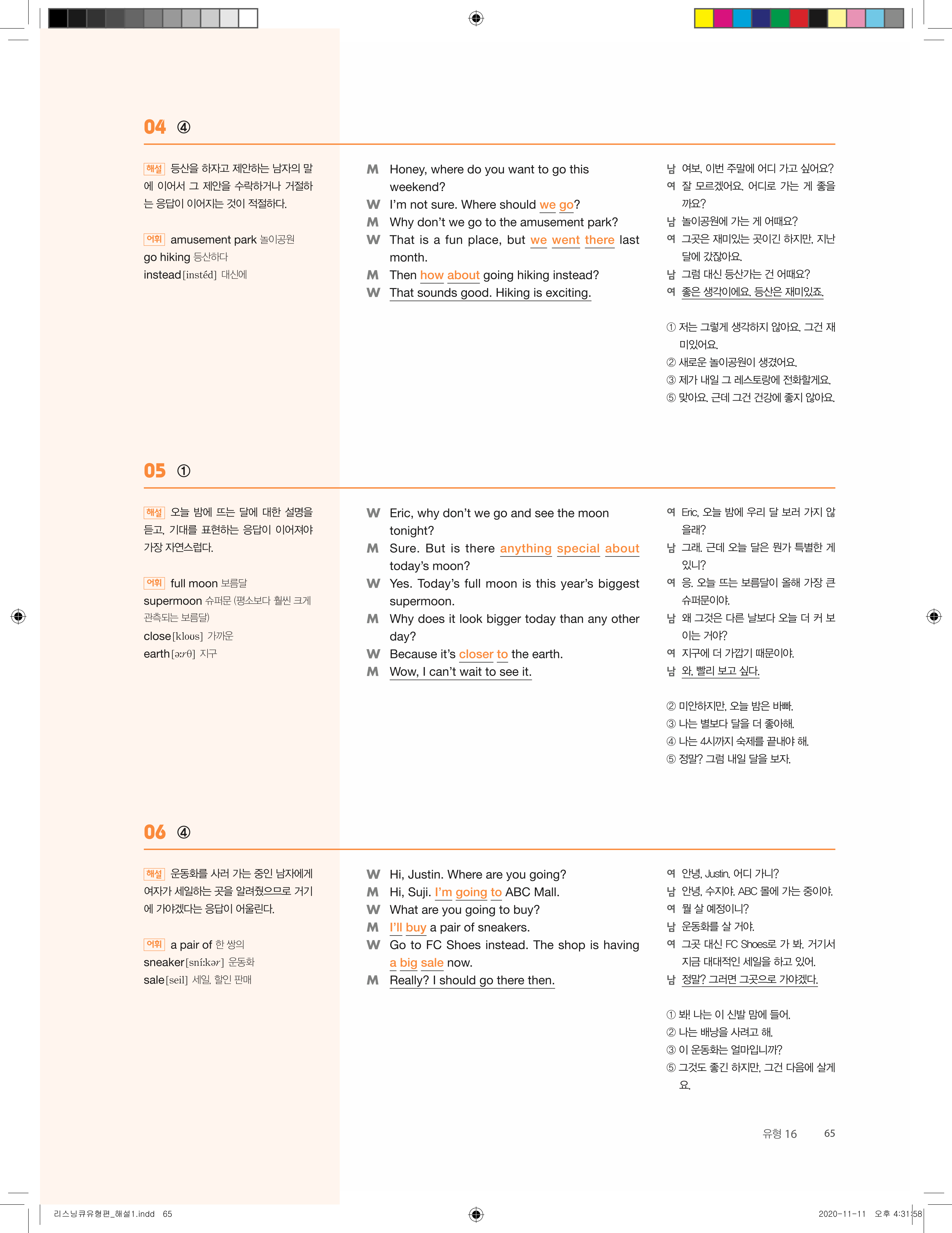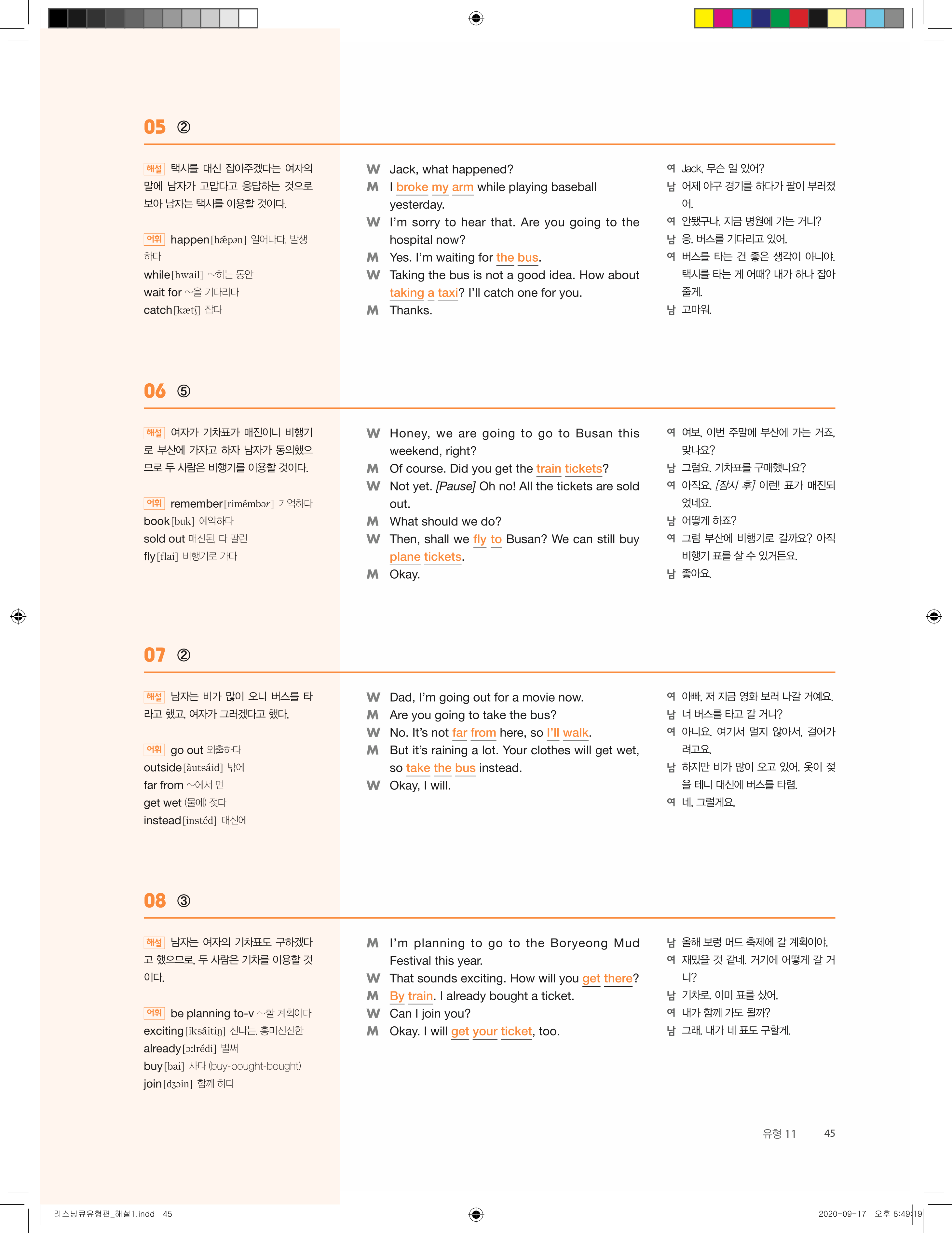 세듀 리스닝큐 중학영어듣기 모의고사 유형편 답지 빠른답지 다운없이 바로보는 사진답지 모바일최적화