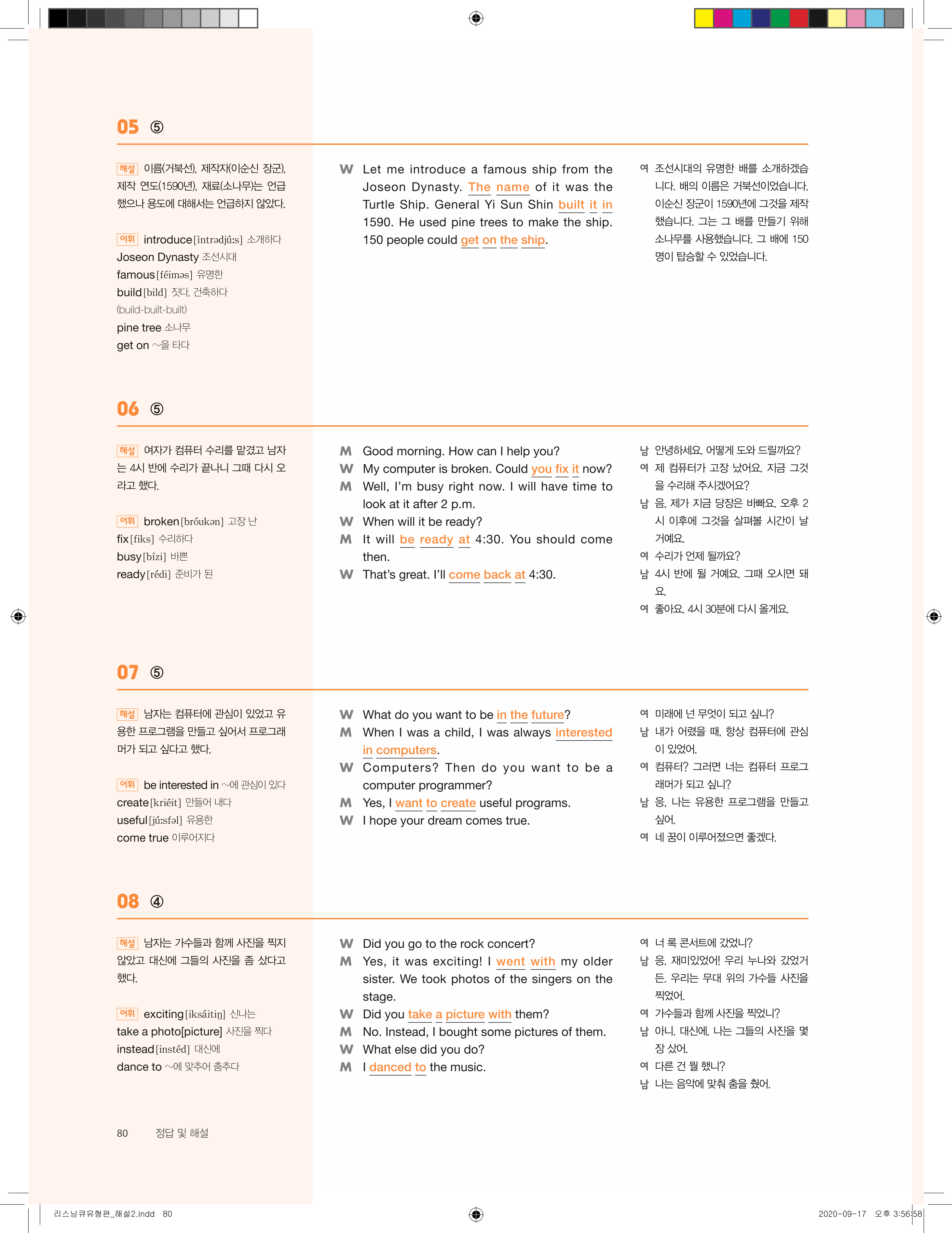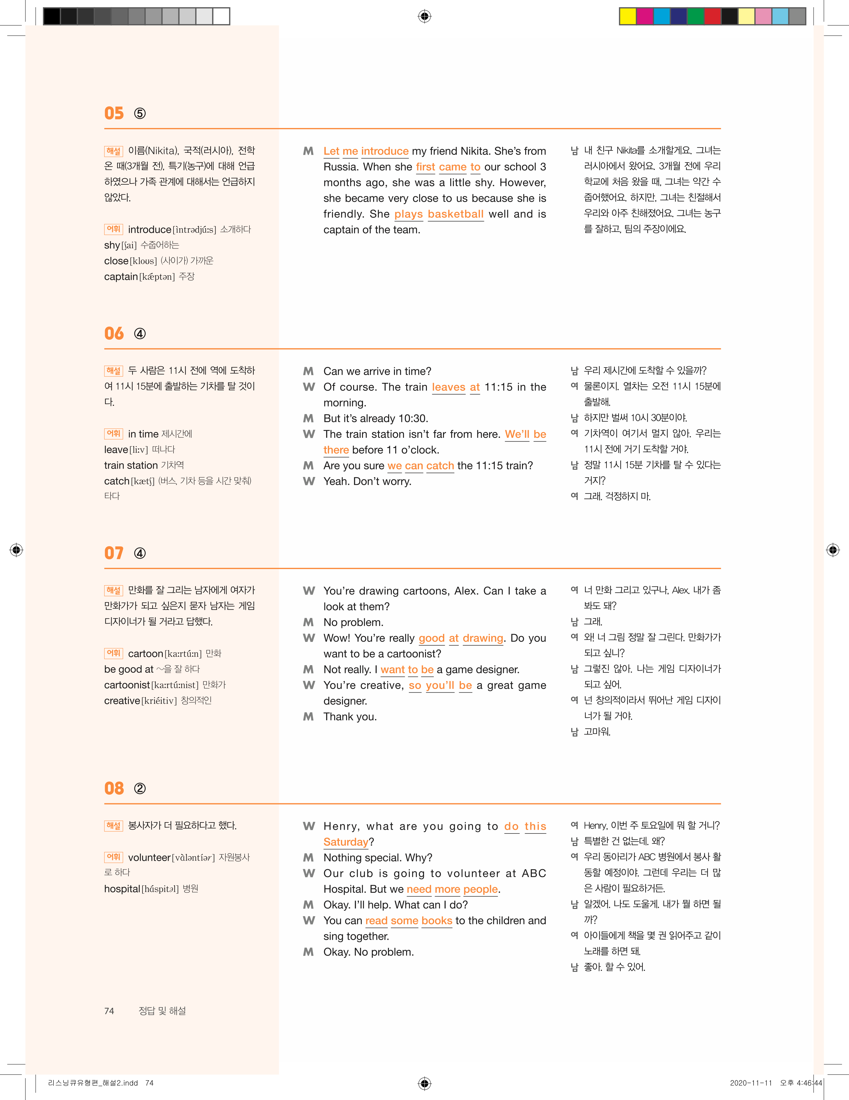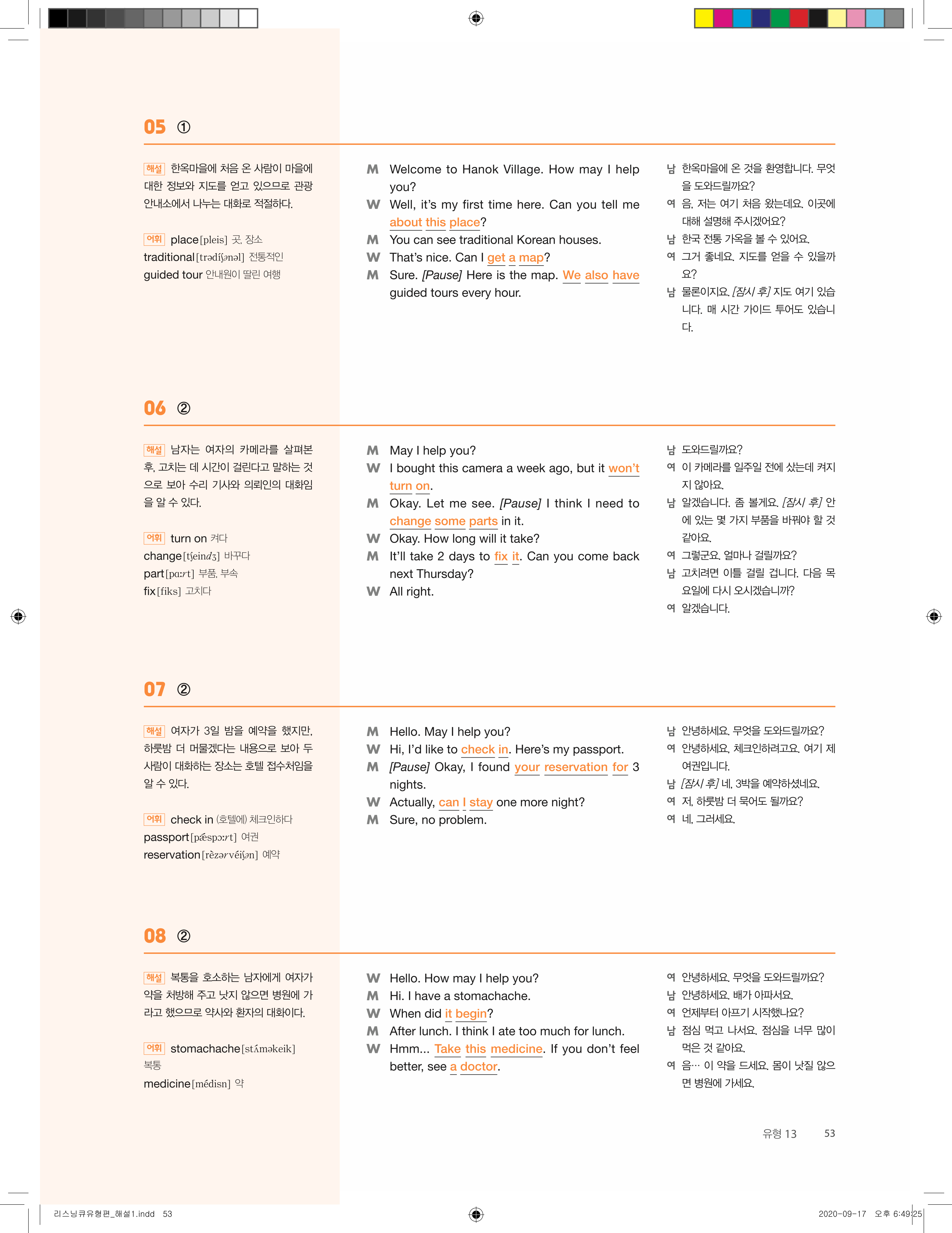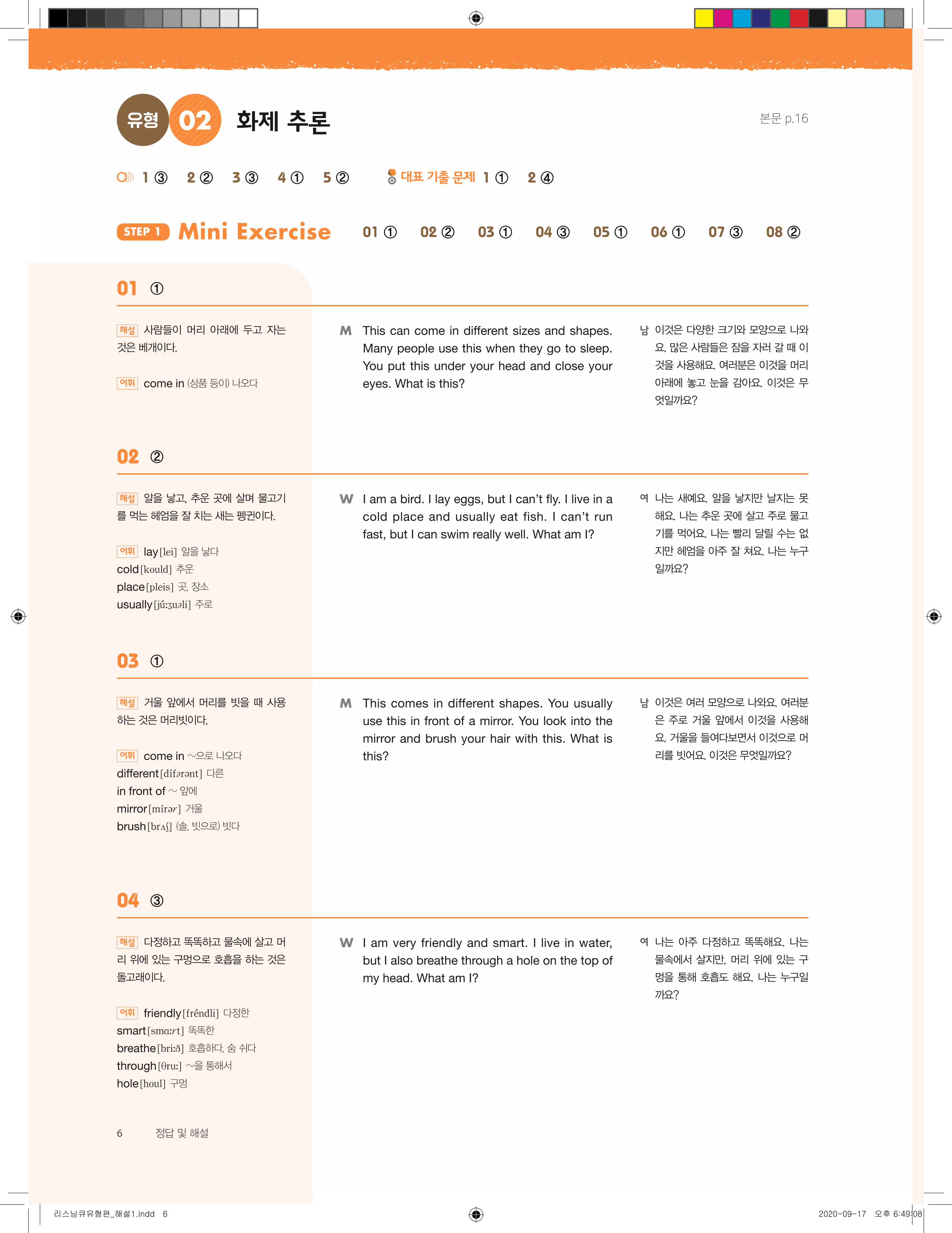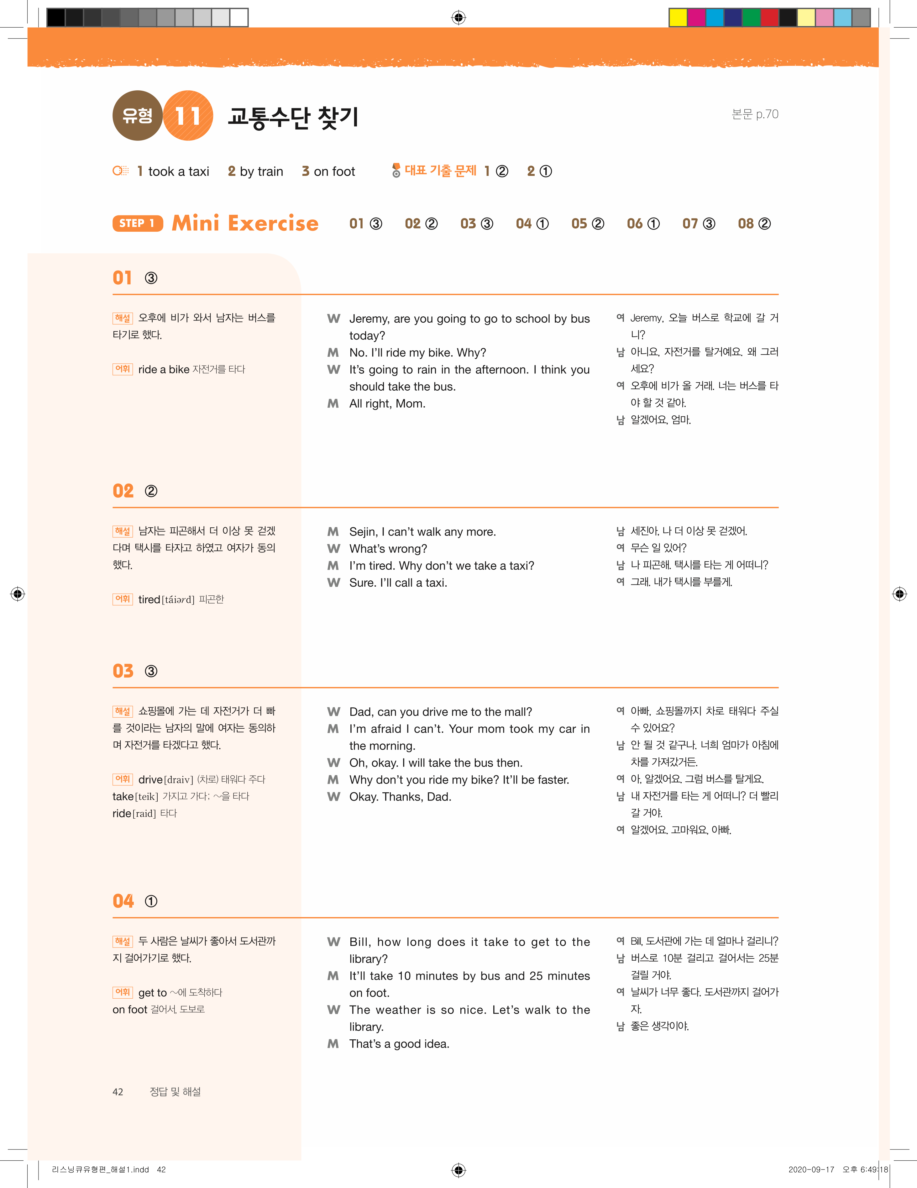 세듀 리스닝큐 중학영어듣기 모의고사 유형편 답지 빠른답지 다운없이 바로보는 사진답지 모바일최적화