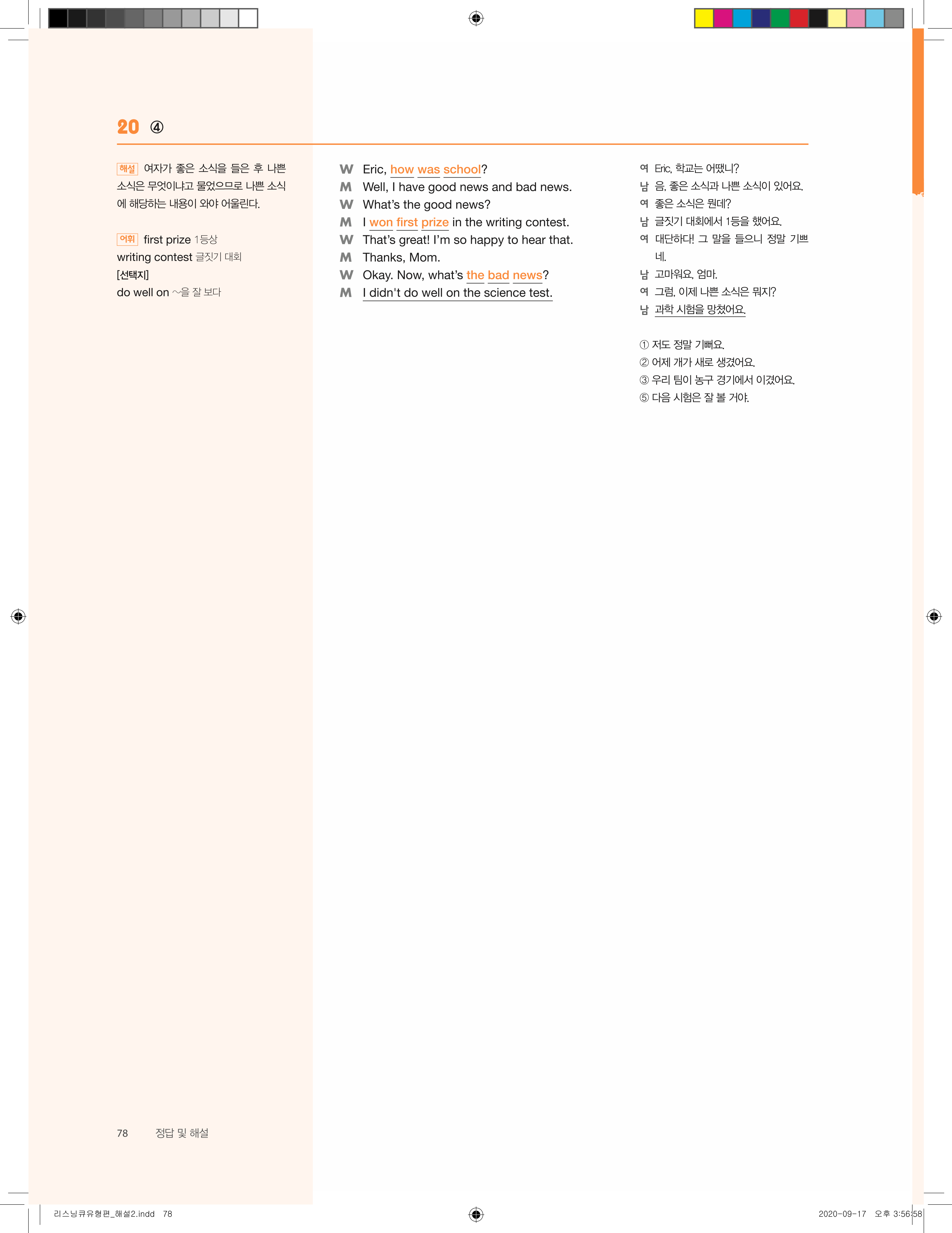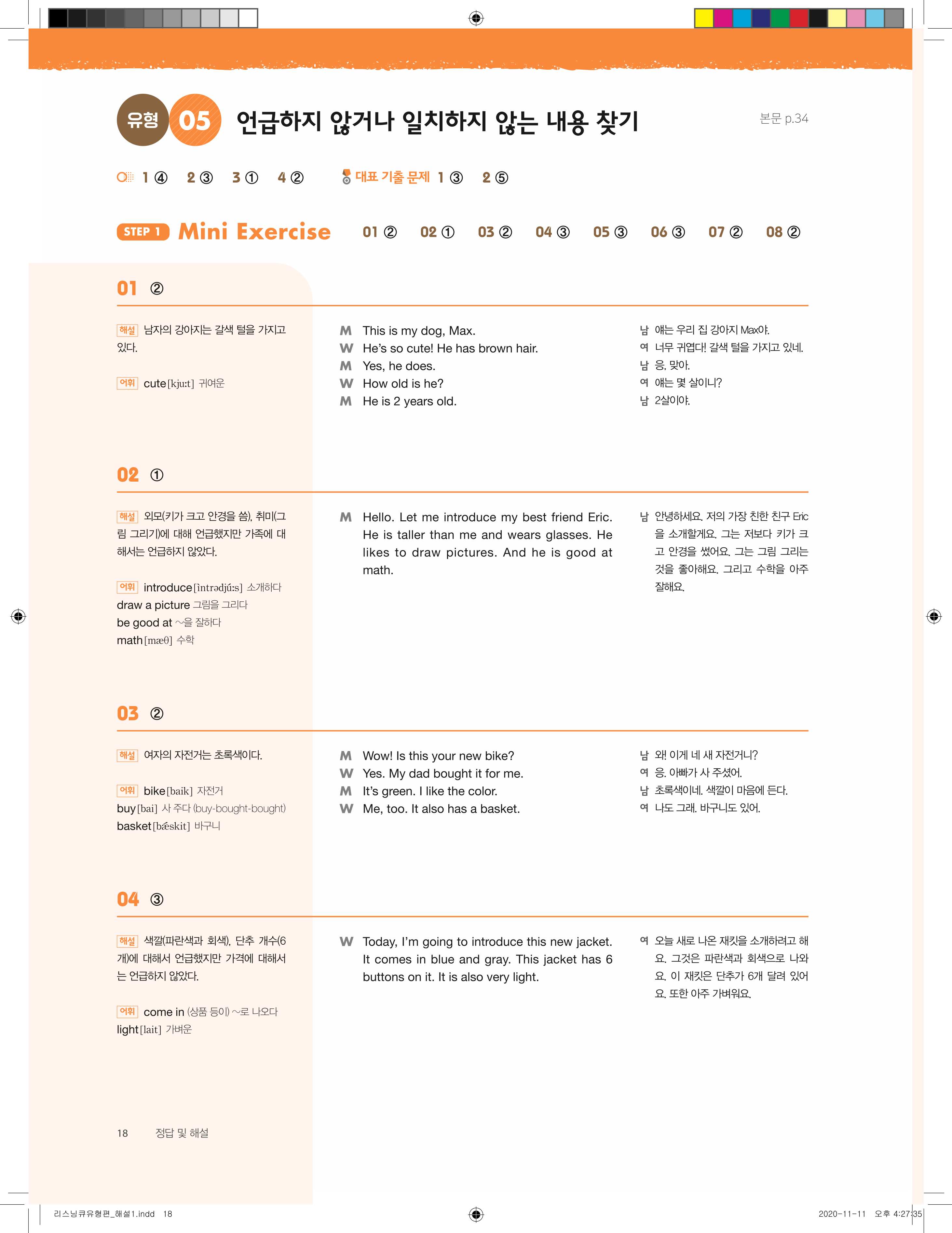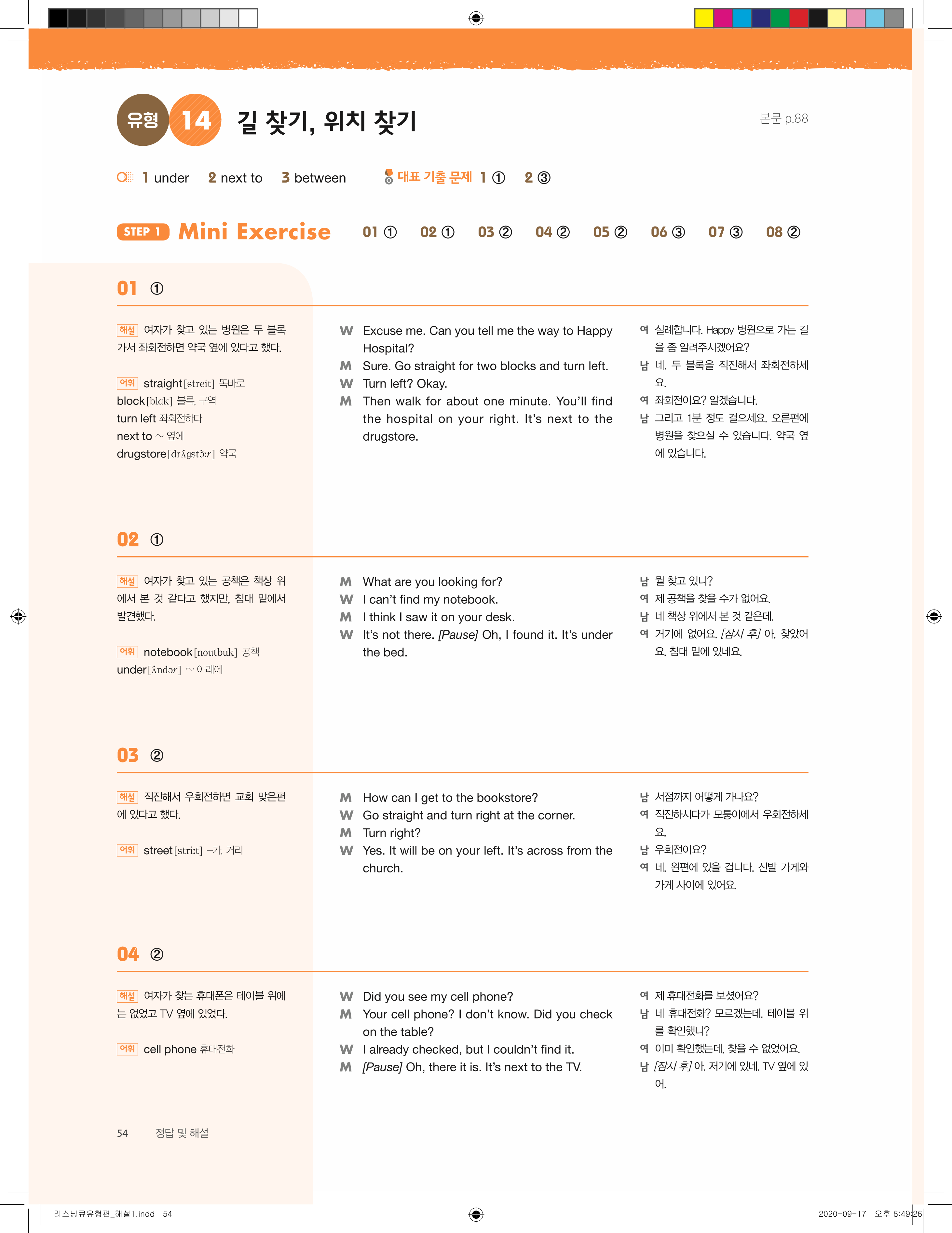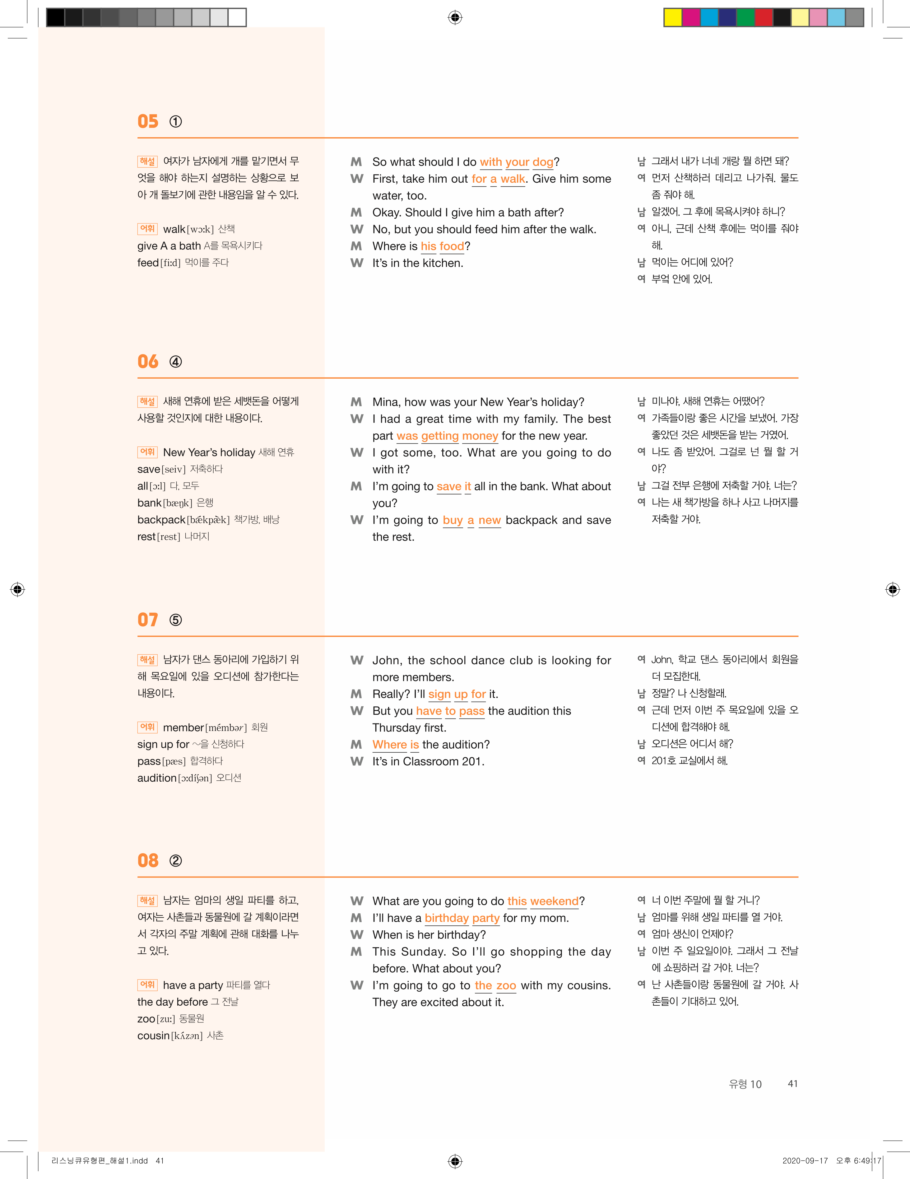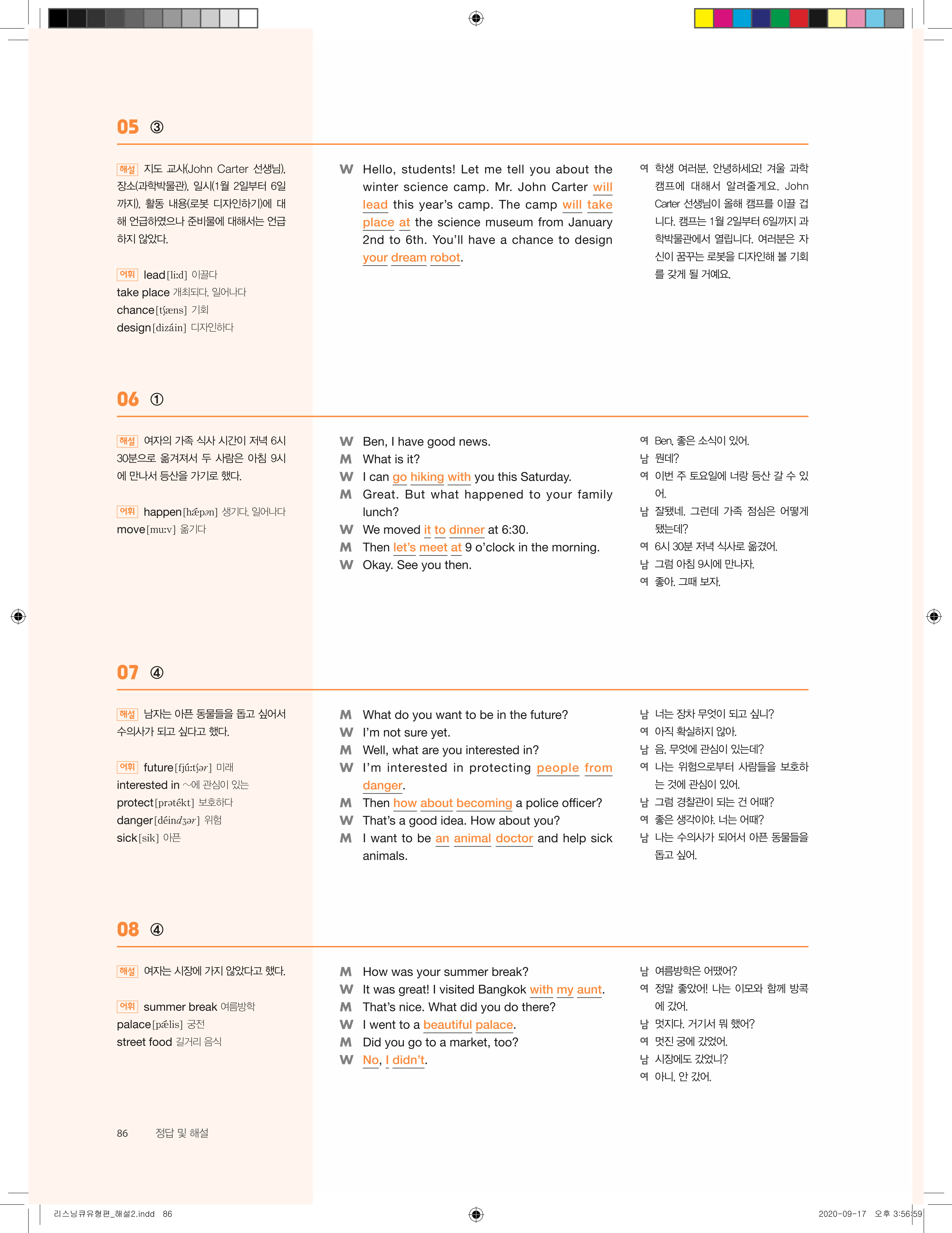 세듀 리스닝큐 중학영어듣기 모의고사 유형편 답지 빠른답지 다운없이 바로보는 사진답지 모바일최적화