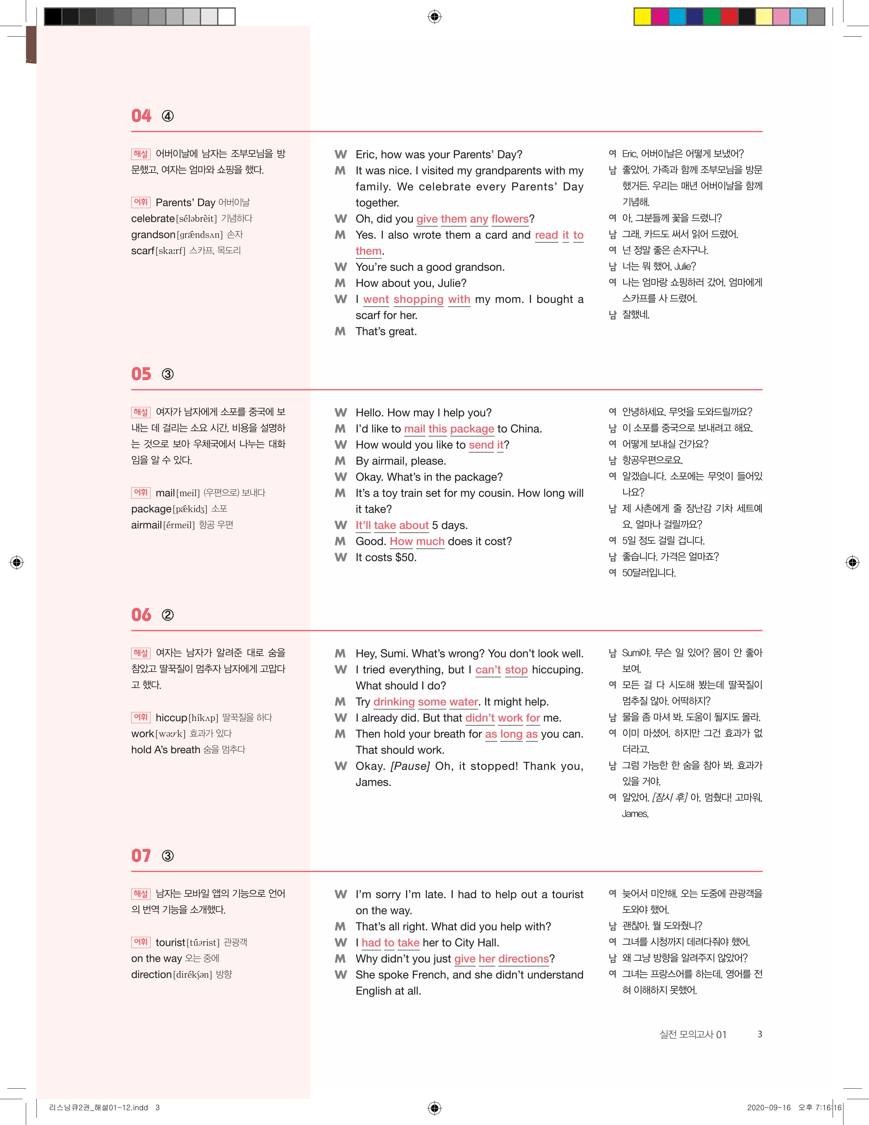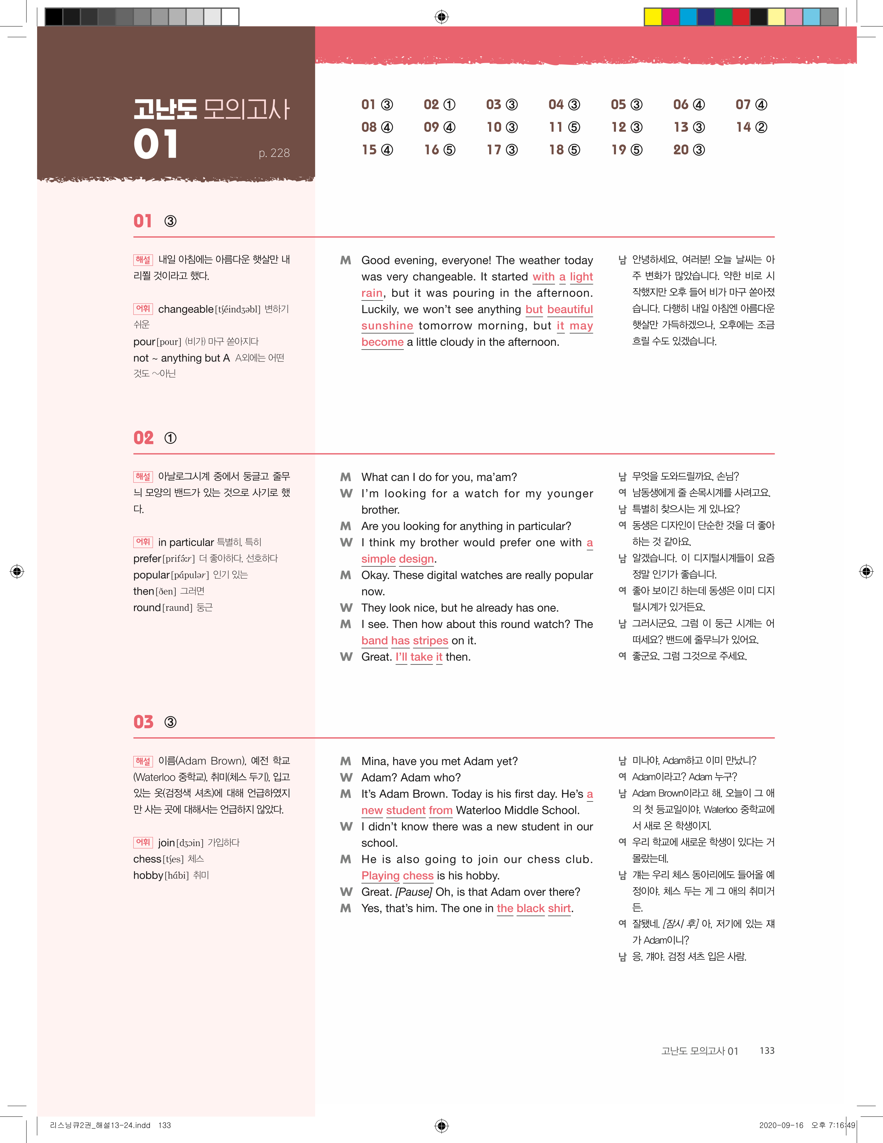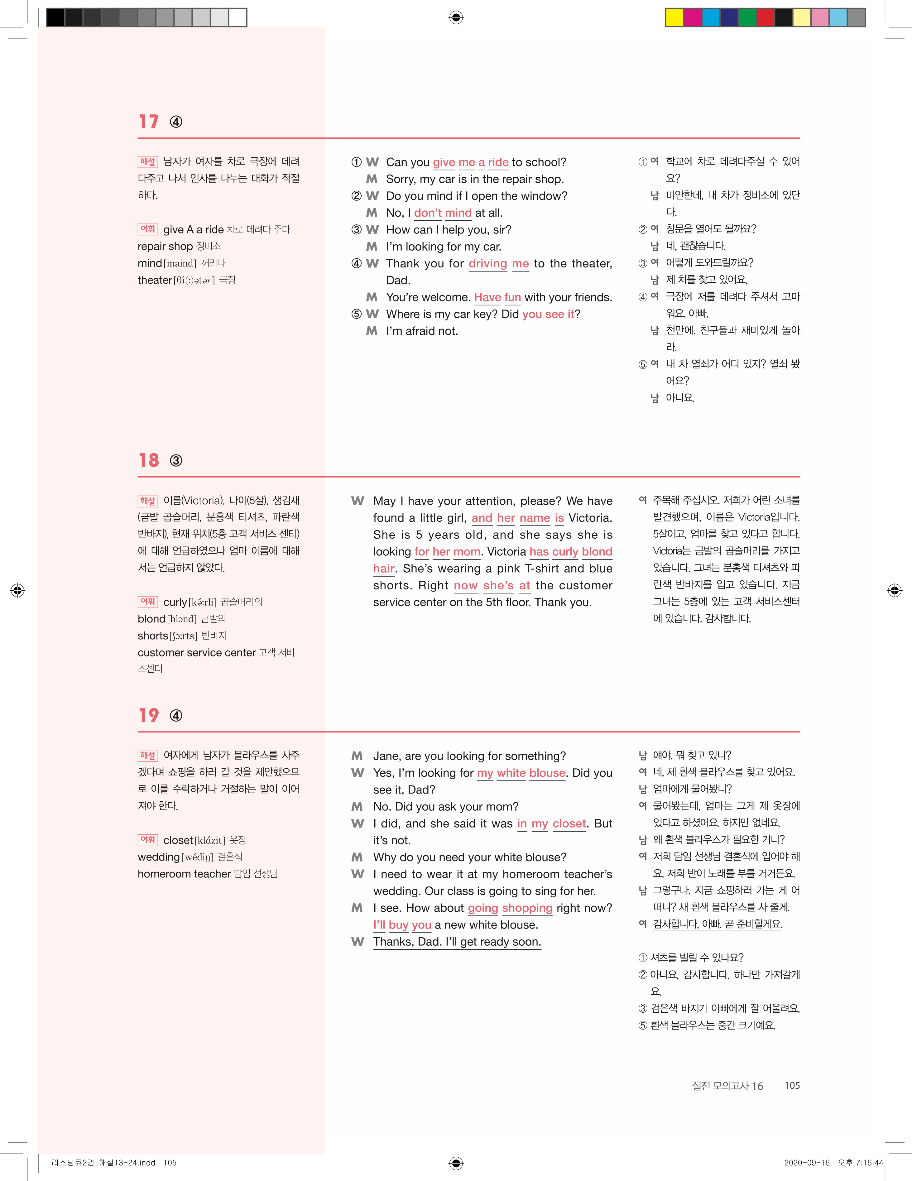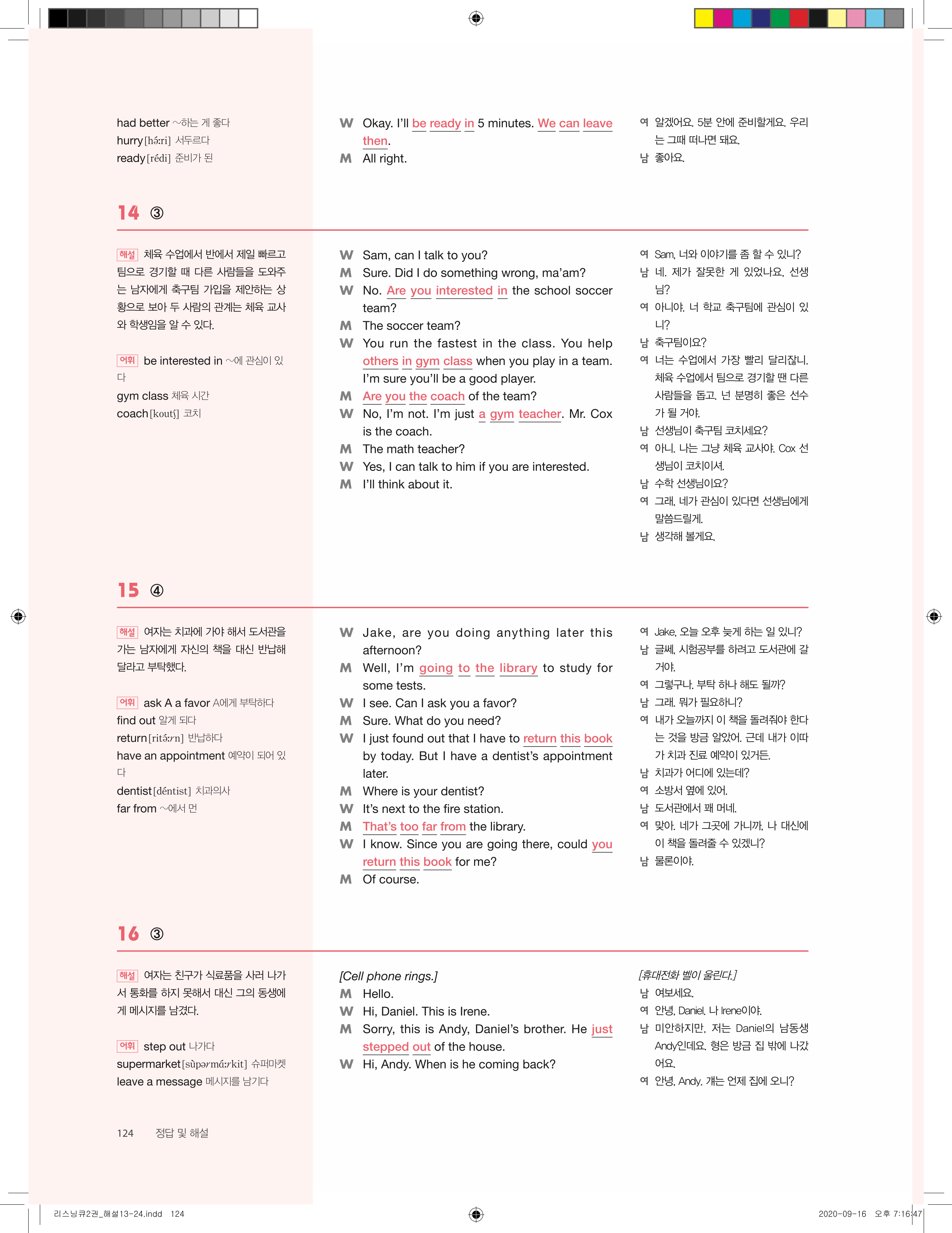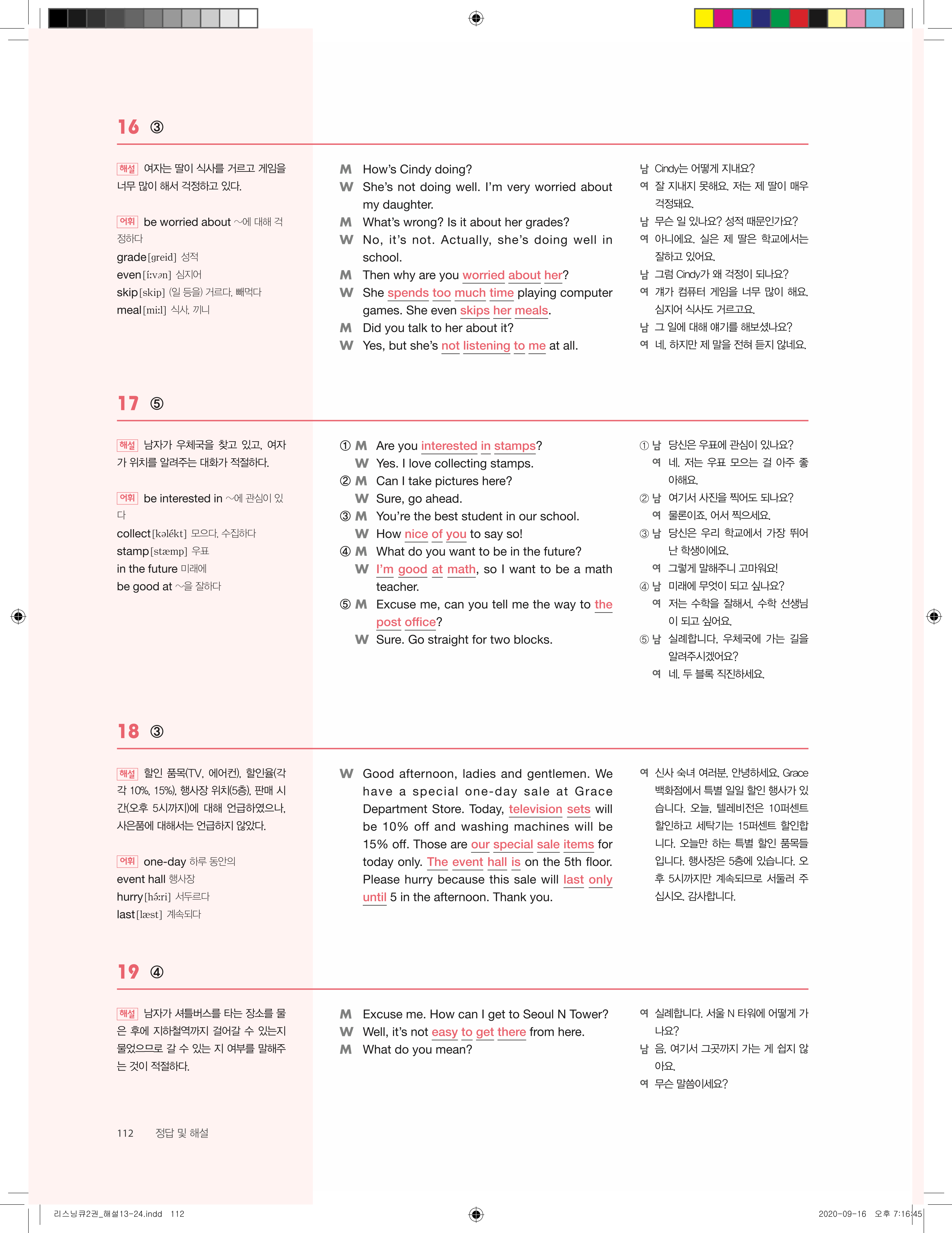 세듀 리스닝큐 중학영어듣기 모의고사24회 레벨2 답지 빠른답지 다운없이 바로보는 사진답지 모바일최적화