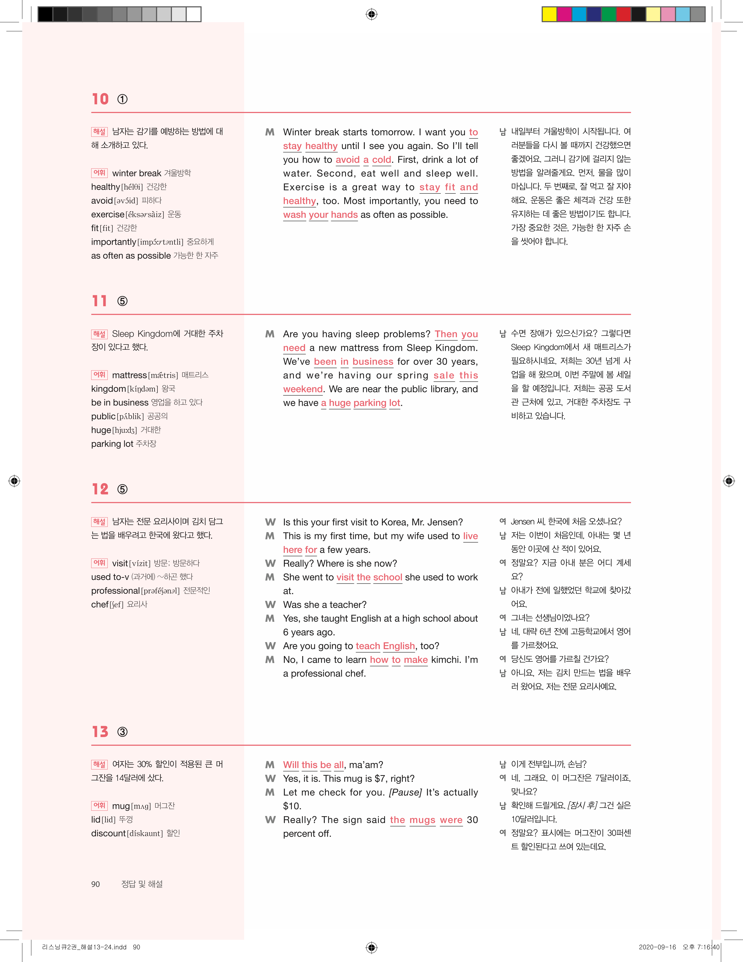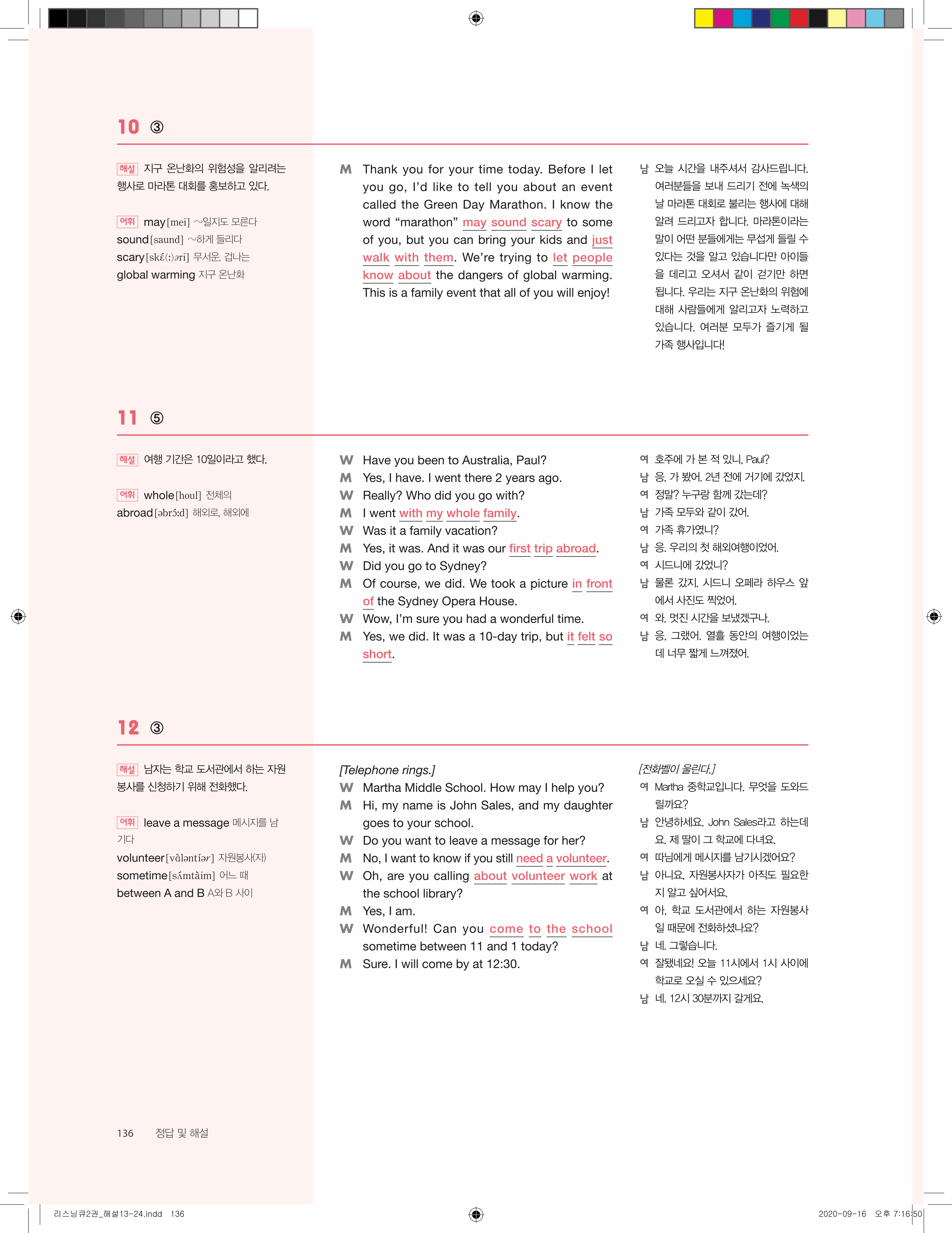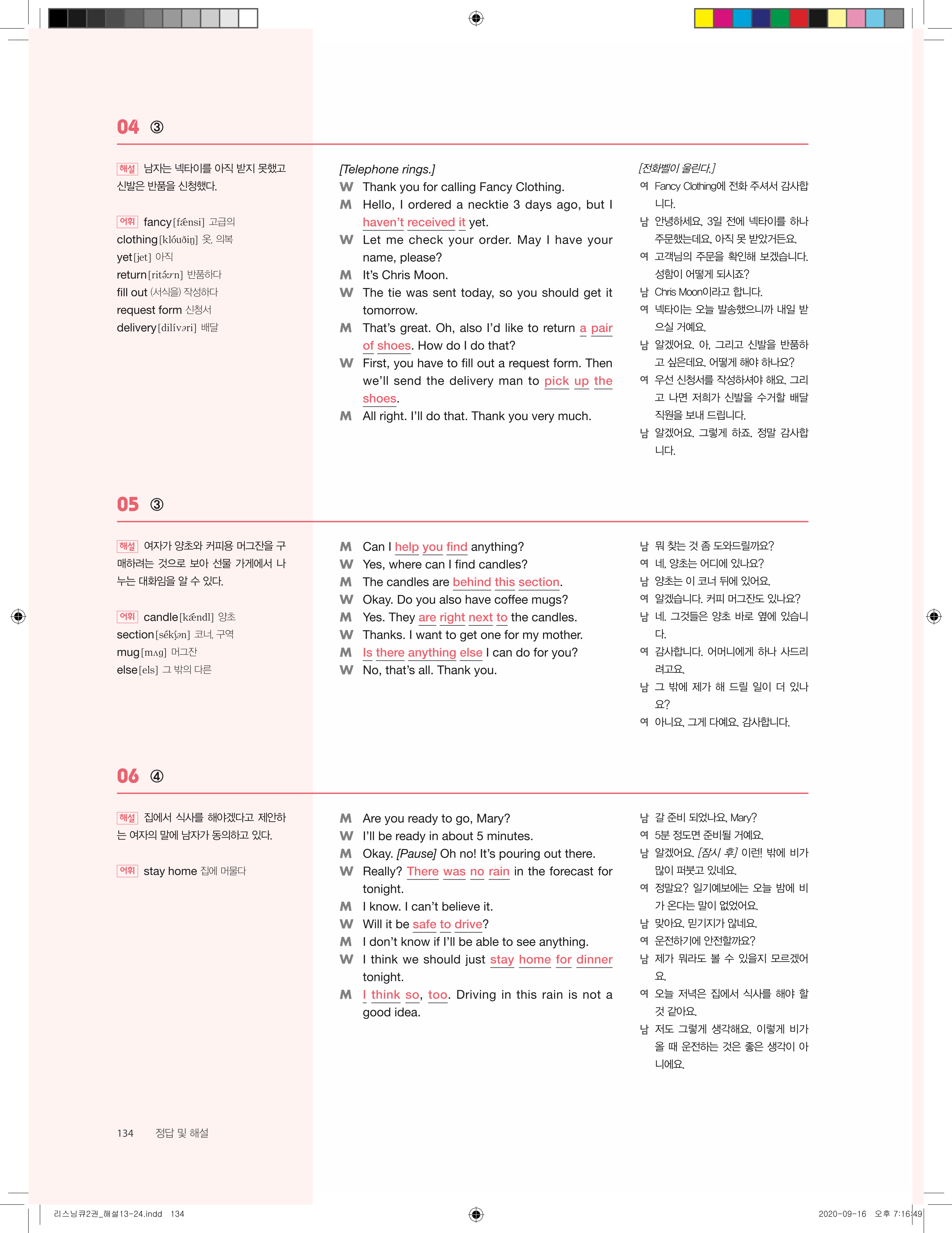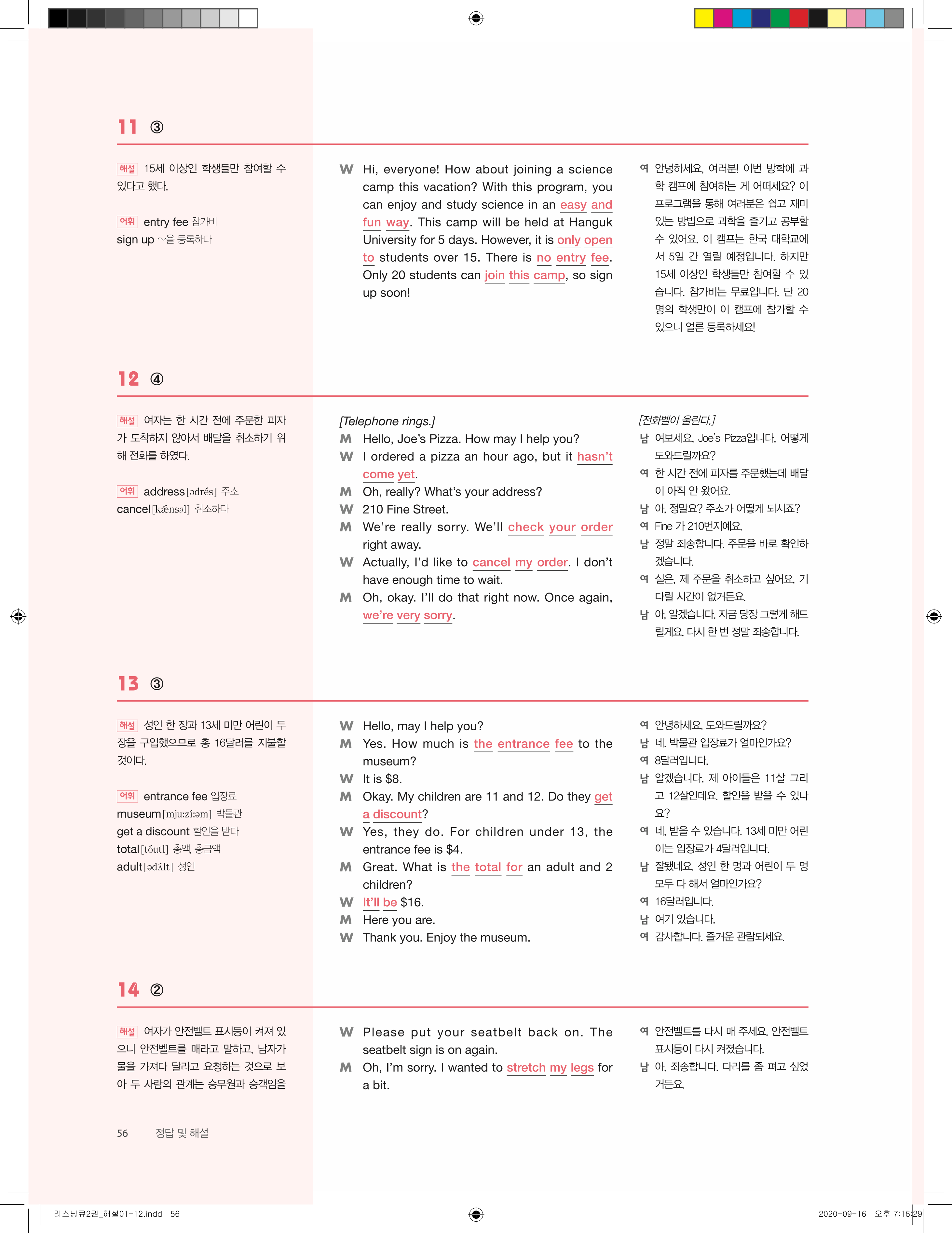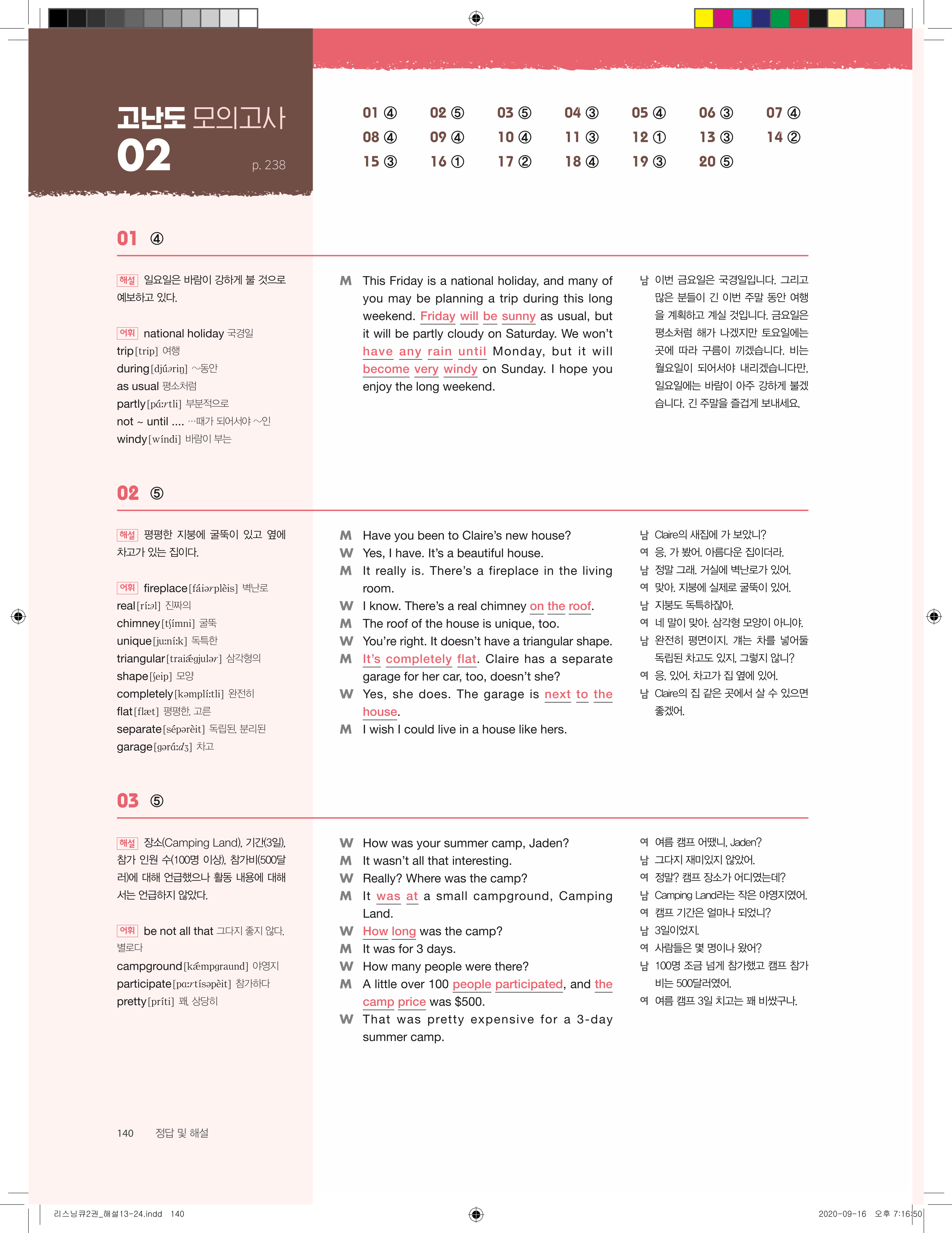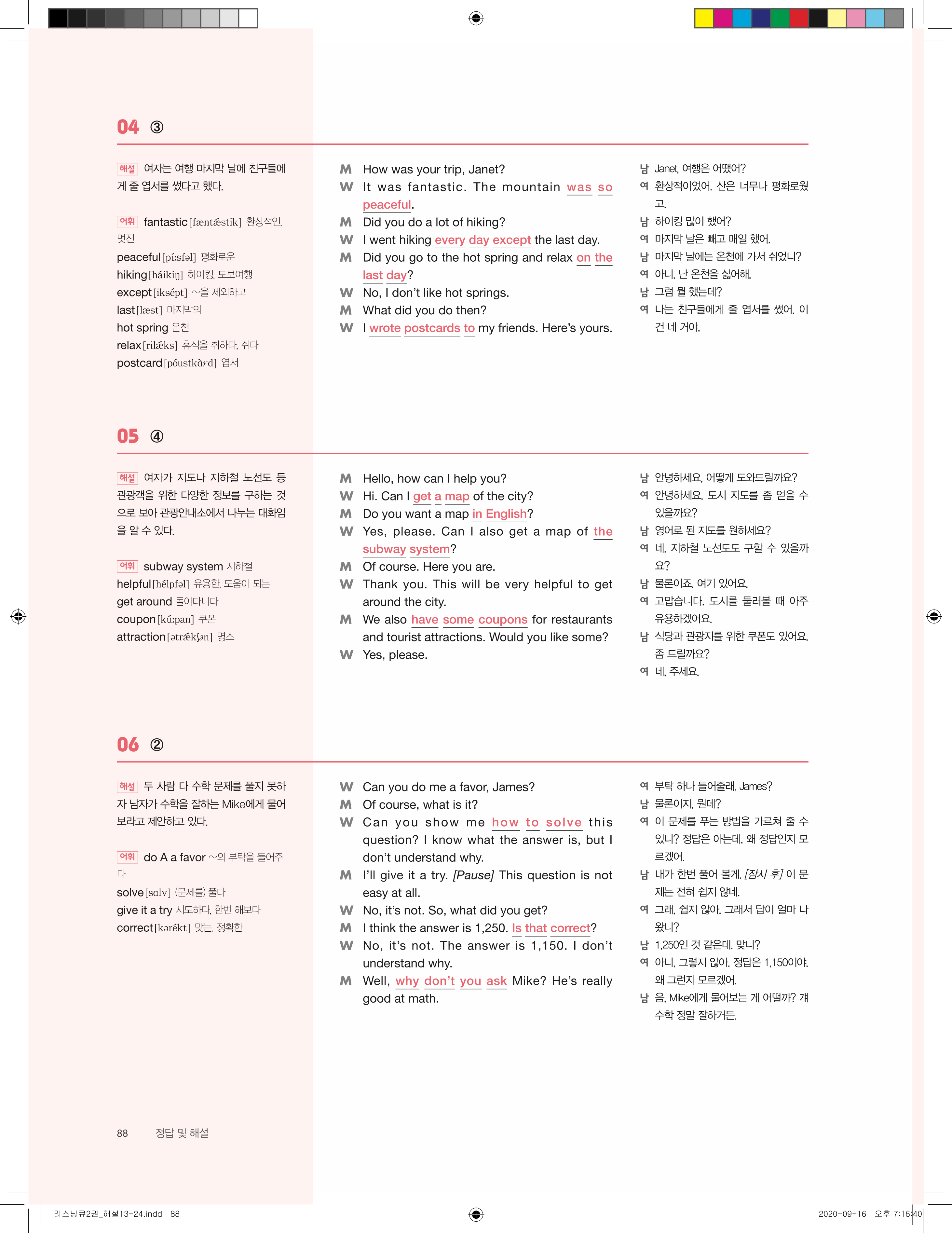 세듀 리스닝큐 중학영어듣기 모의고사24회 레벨2 답지 빠른답지 다운없이 바로보는 사진답지 모바일최적화