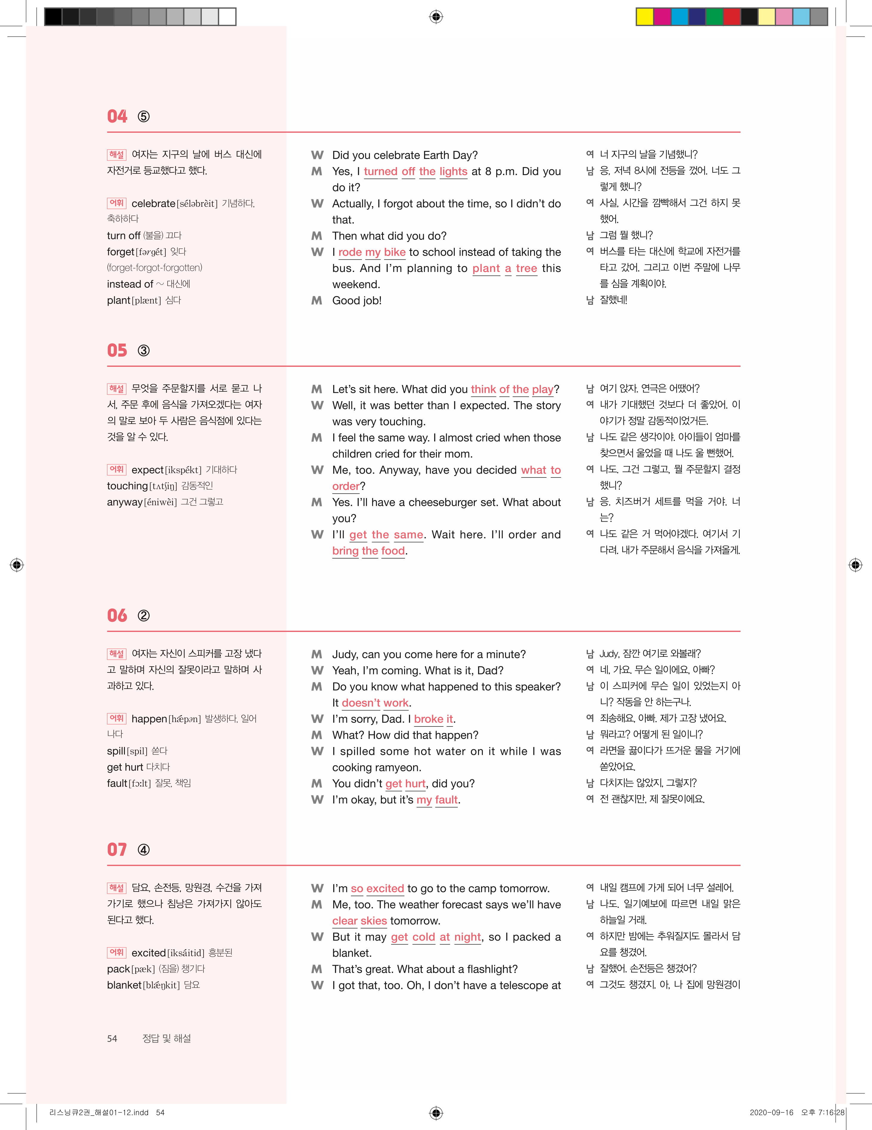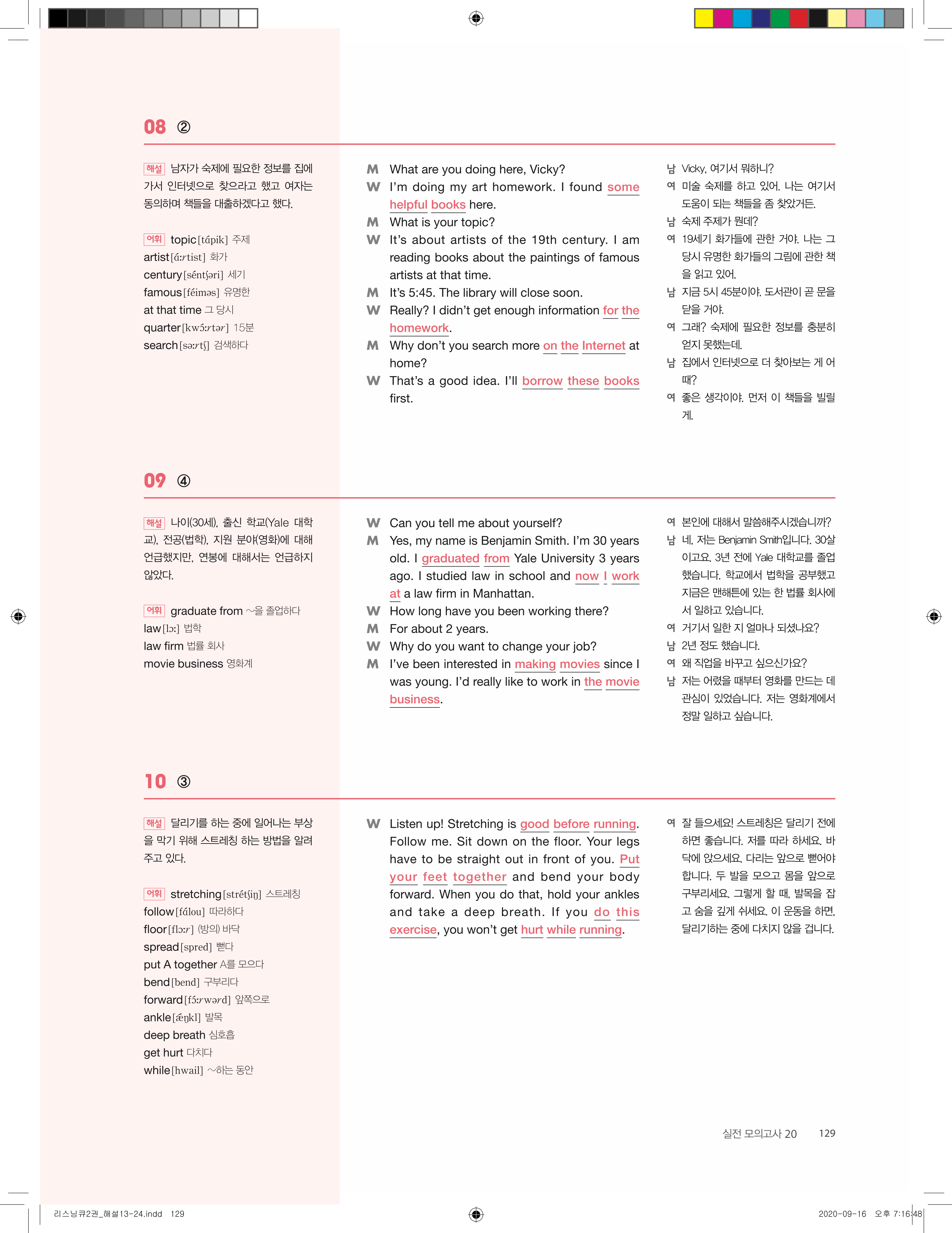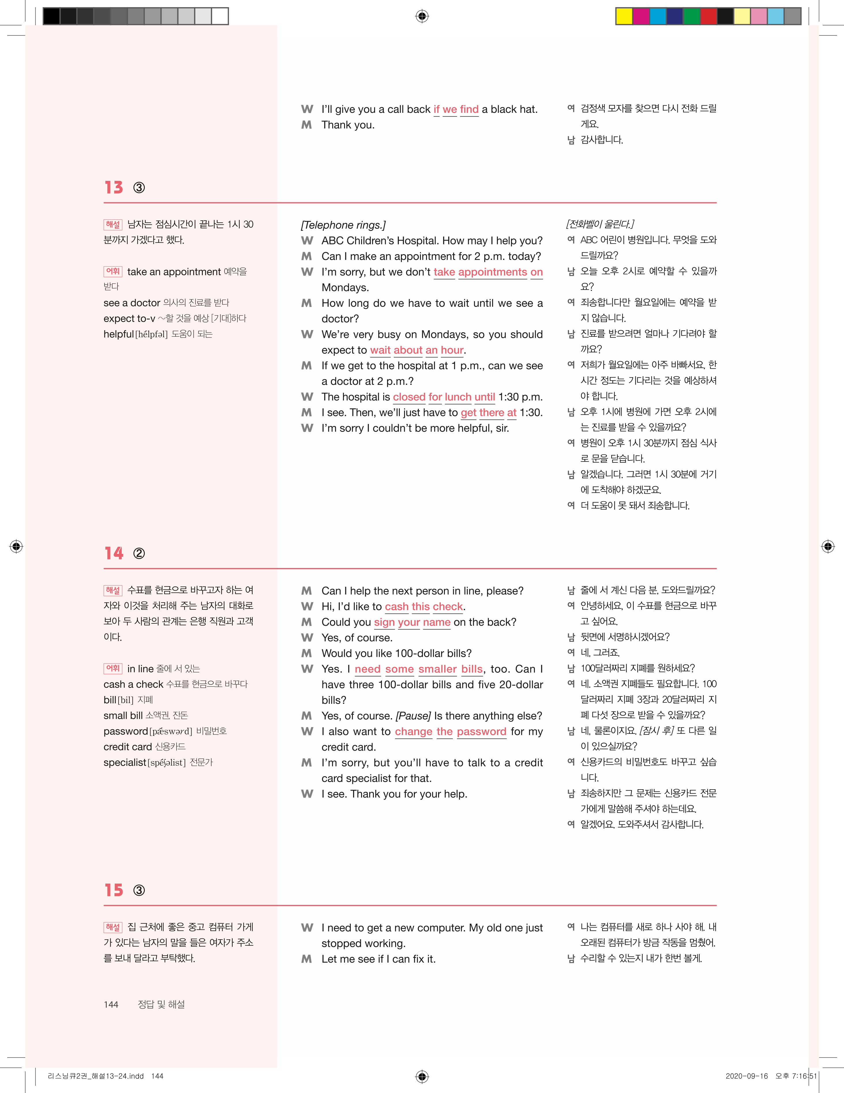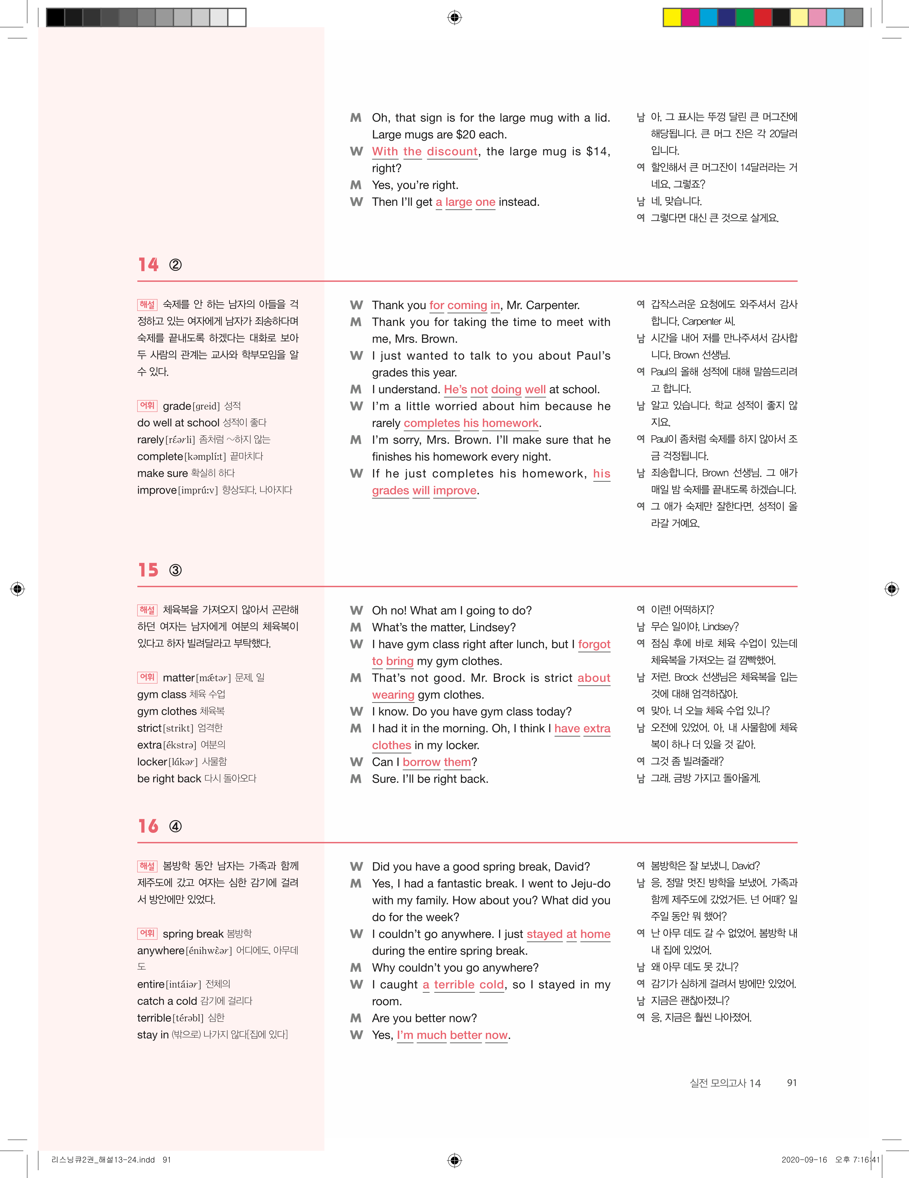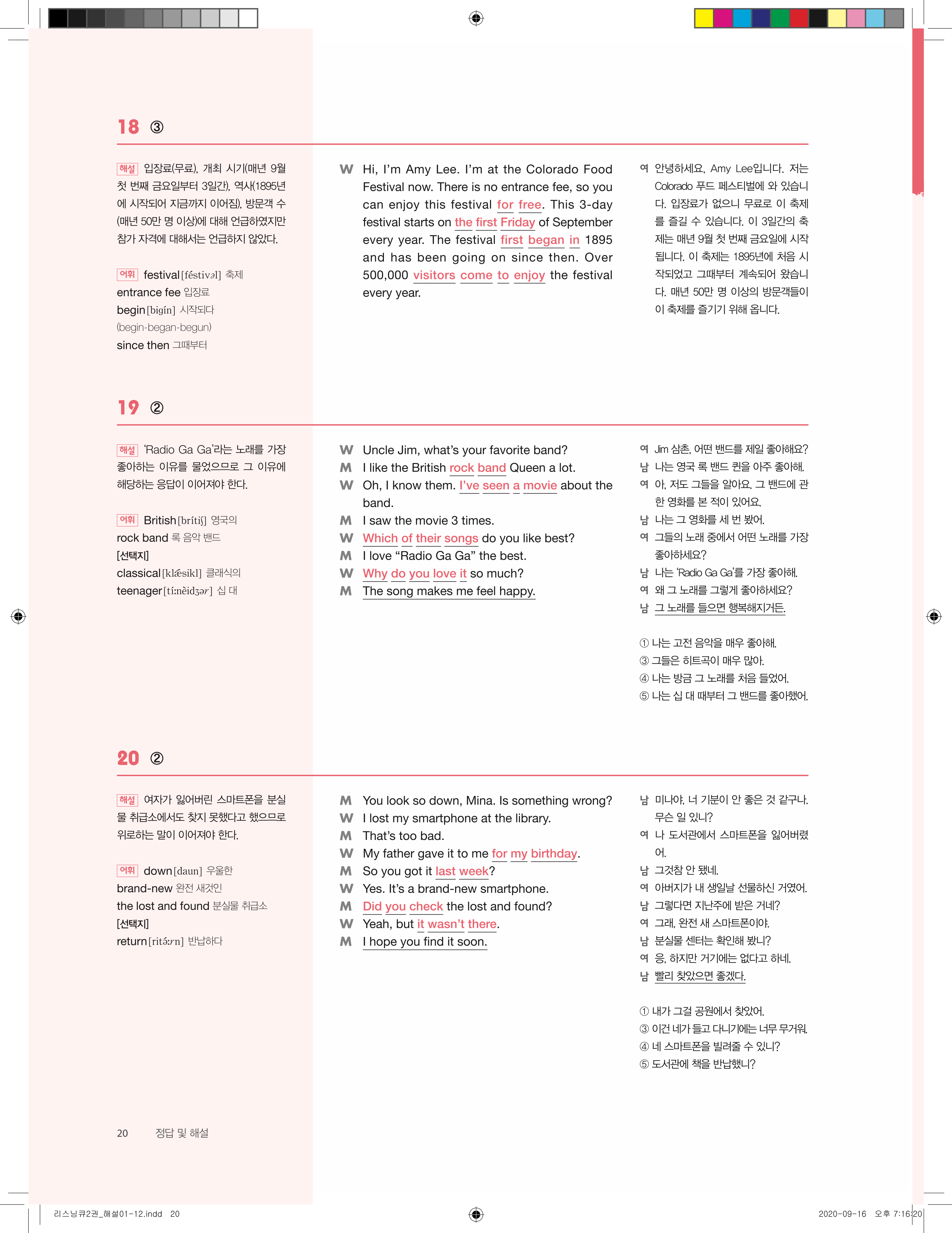 세듀 리스닝큐 중학영어듣기 모의고사24회 레벨2 답지 빠른답지 다운없이 바로보는 사진답지 모바일최적화