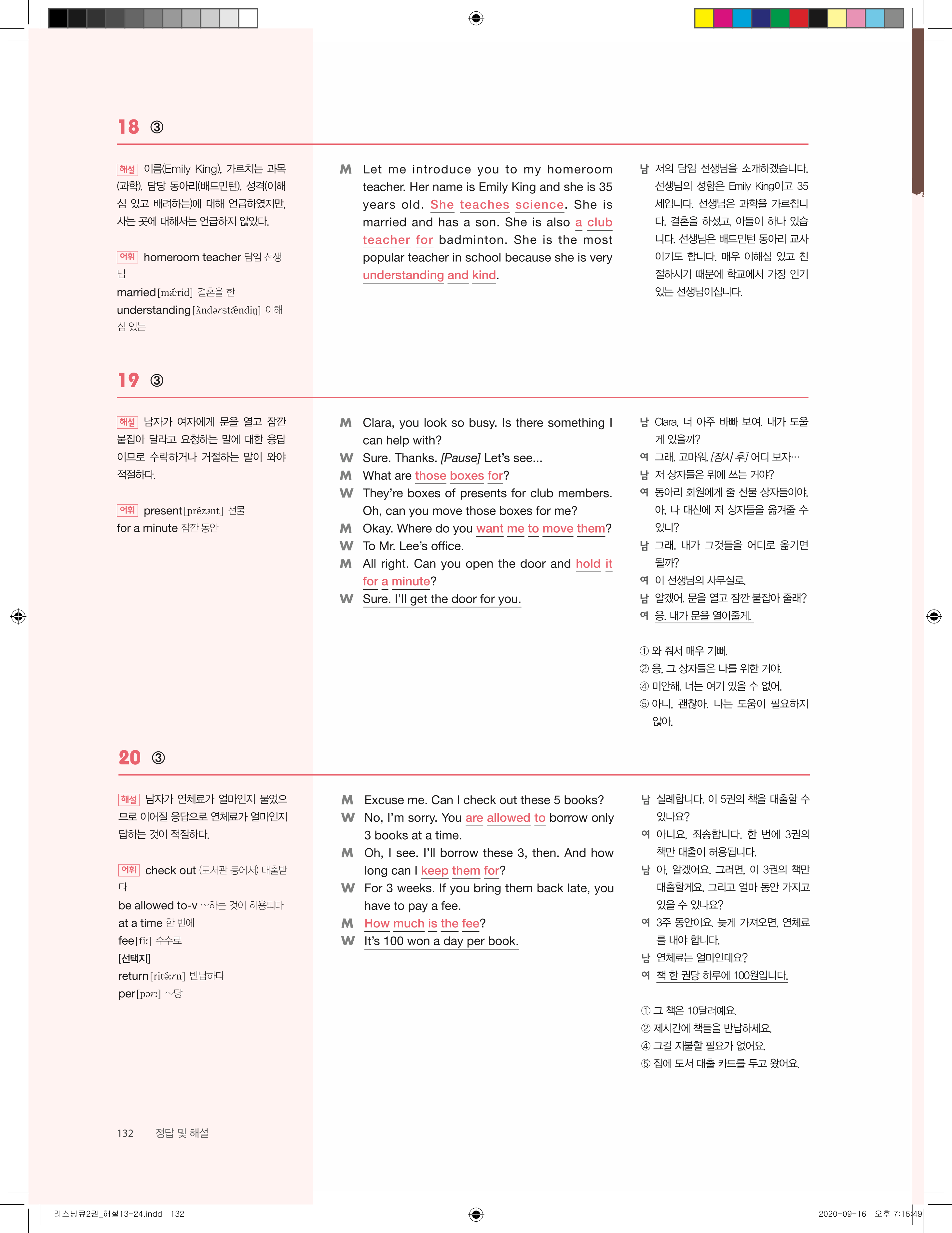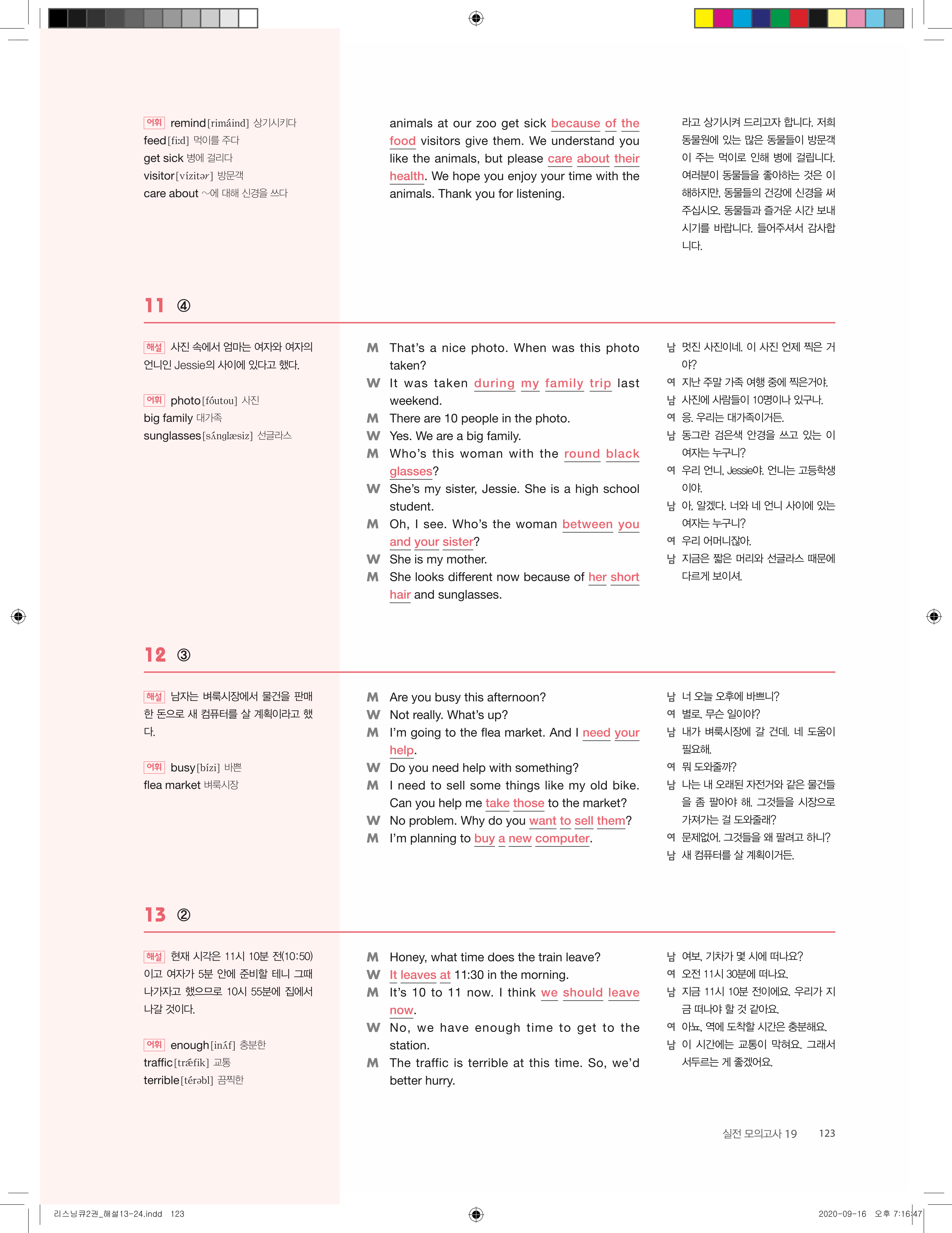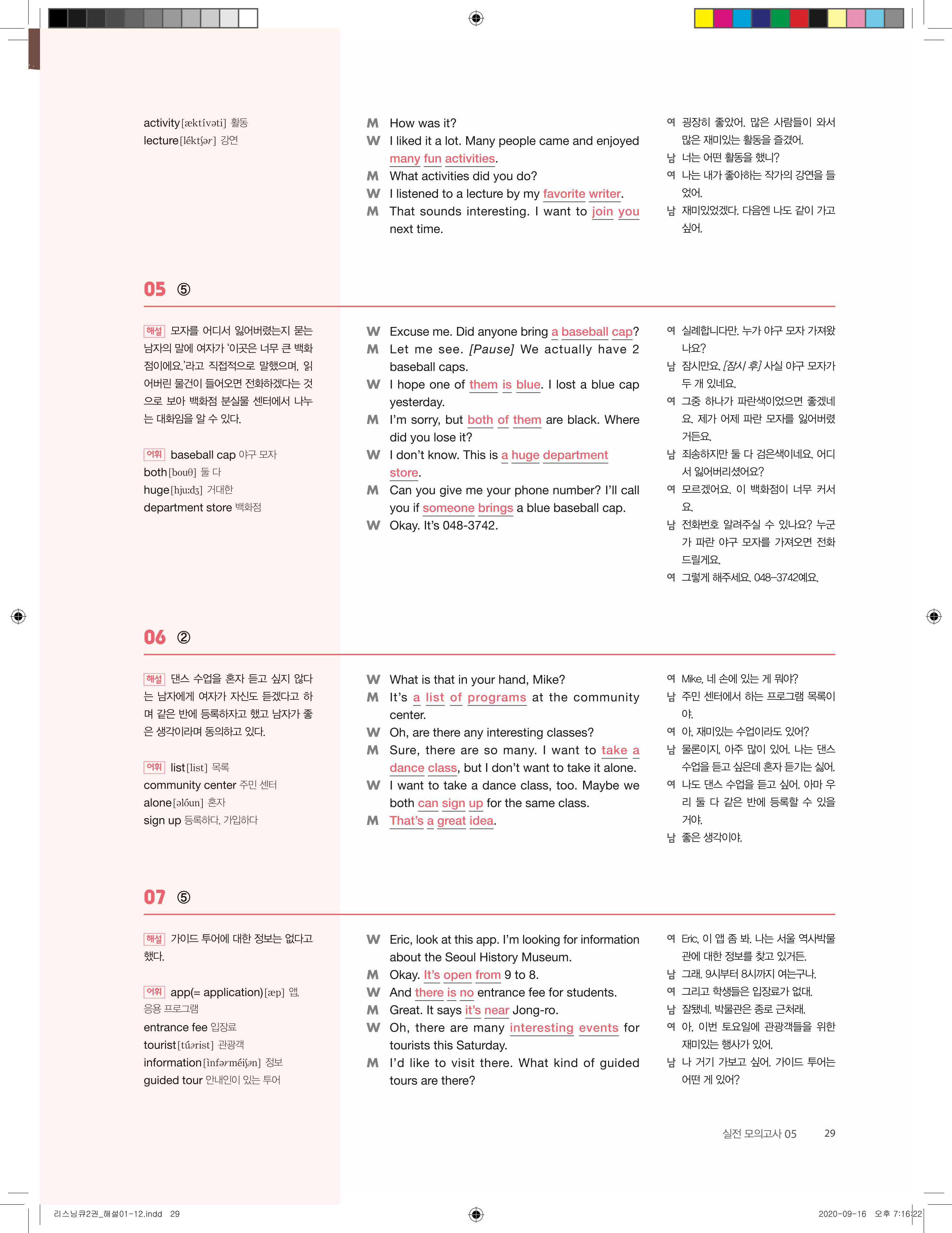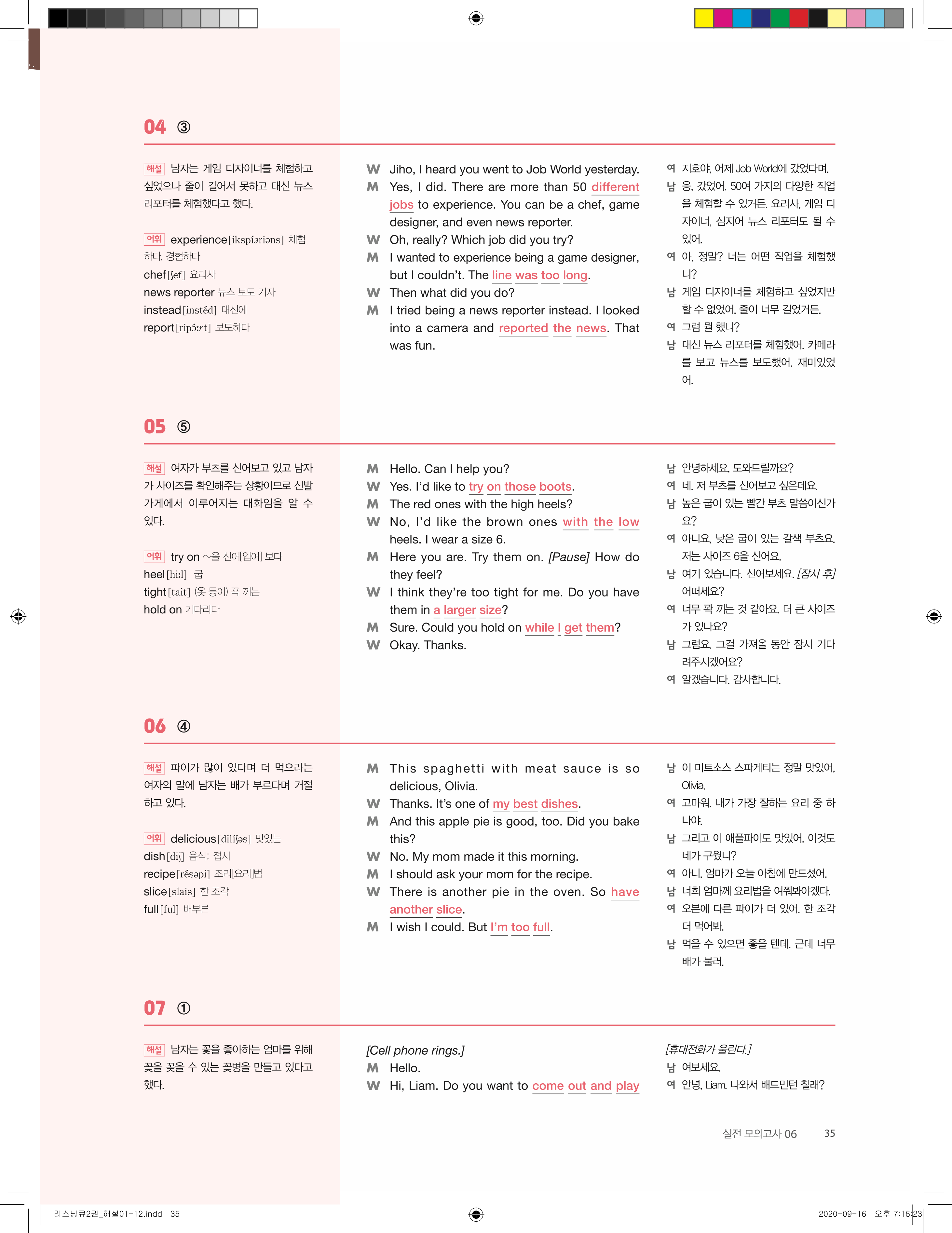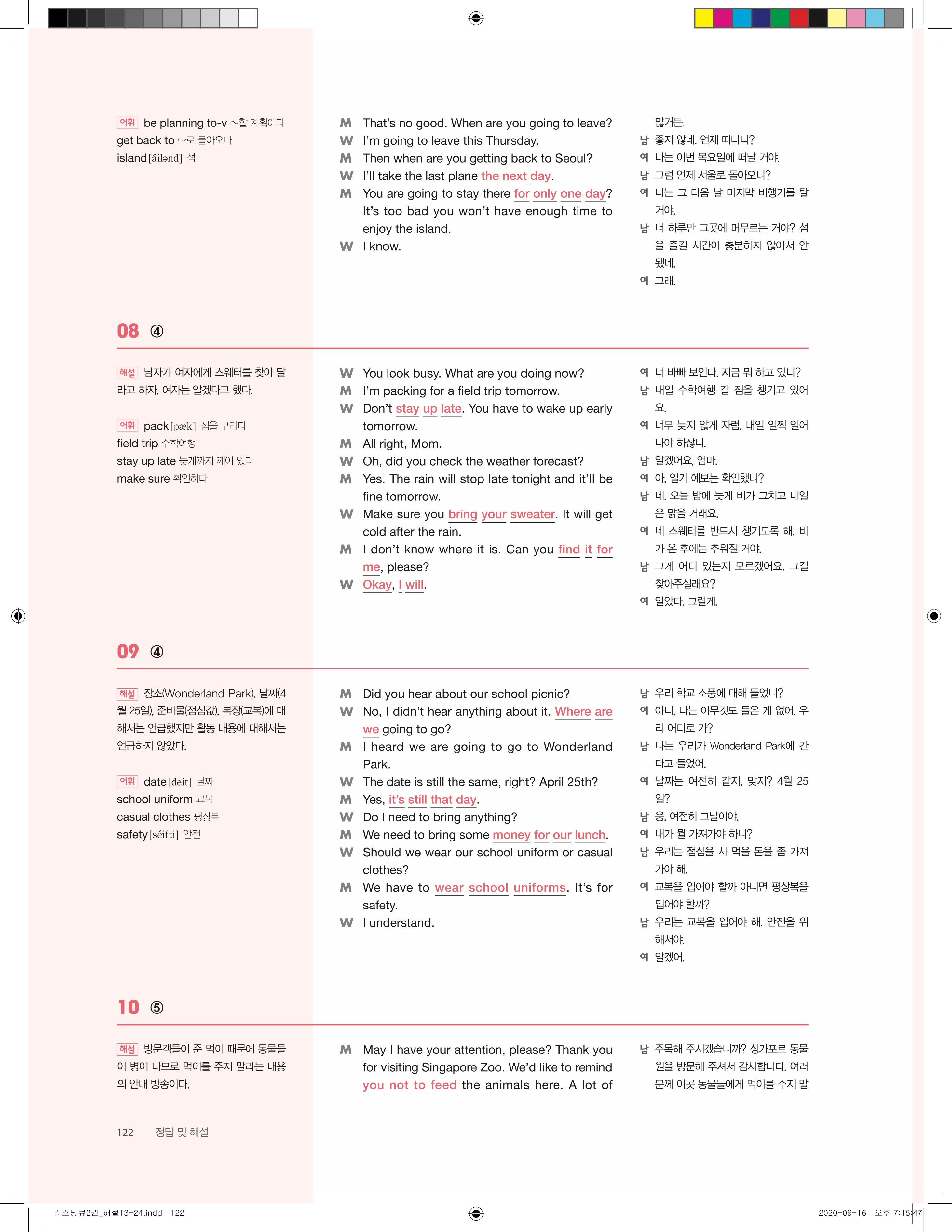 세듀 리스닝큐 중학영어듣기 모의고사24회 레벨2 답지 빠른답지 다운없이 바로보는 사진답지 모바일최적화