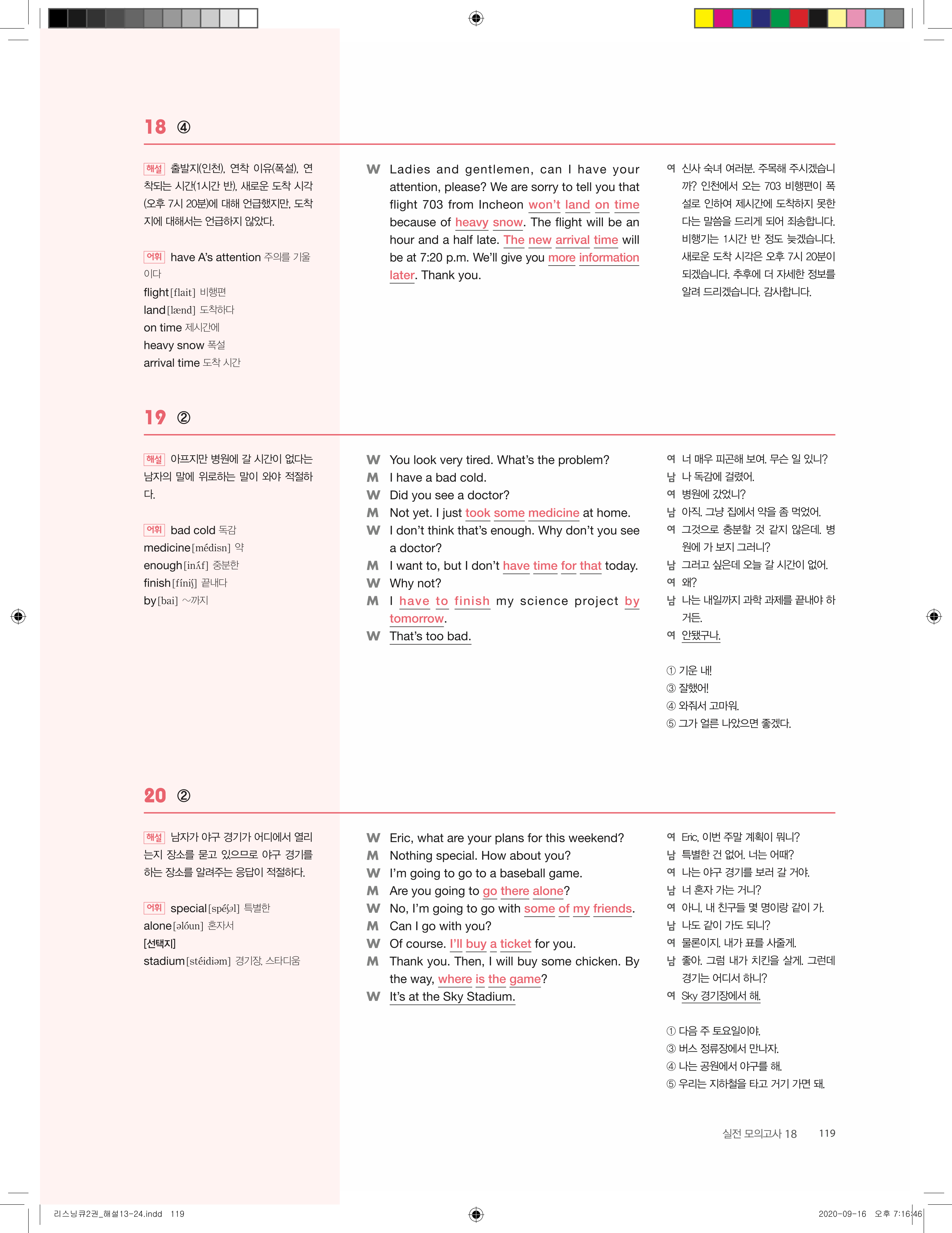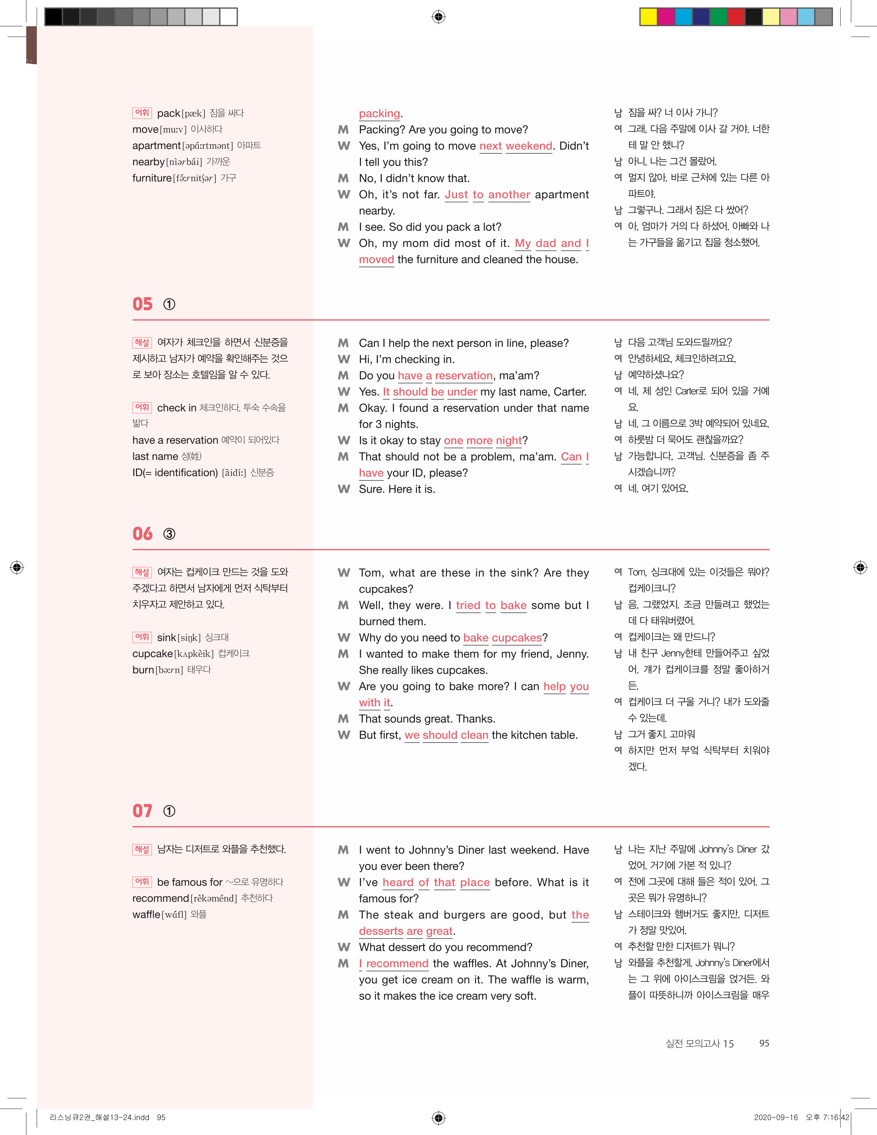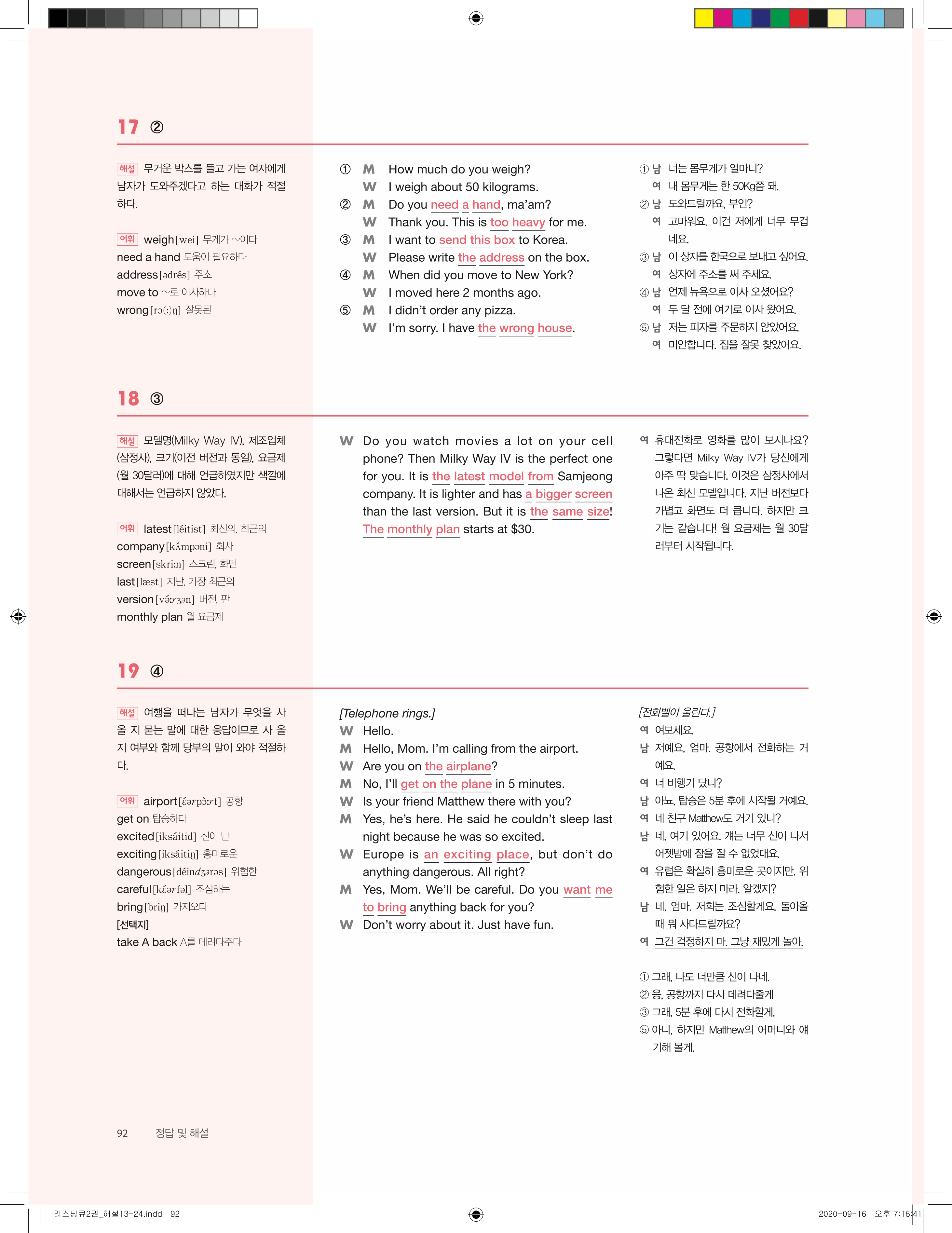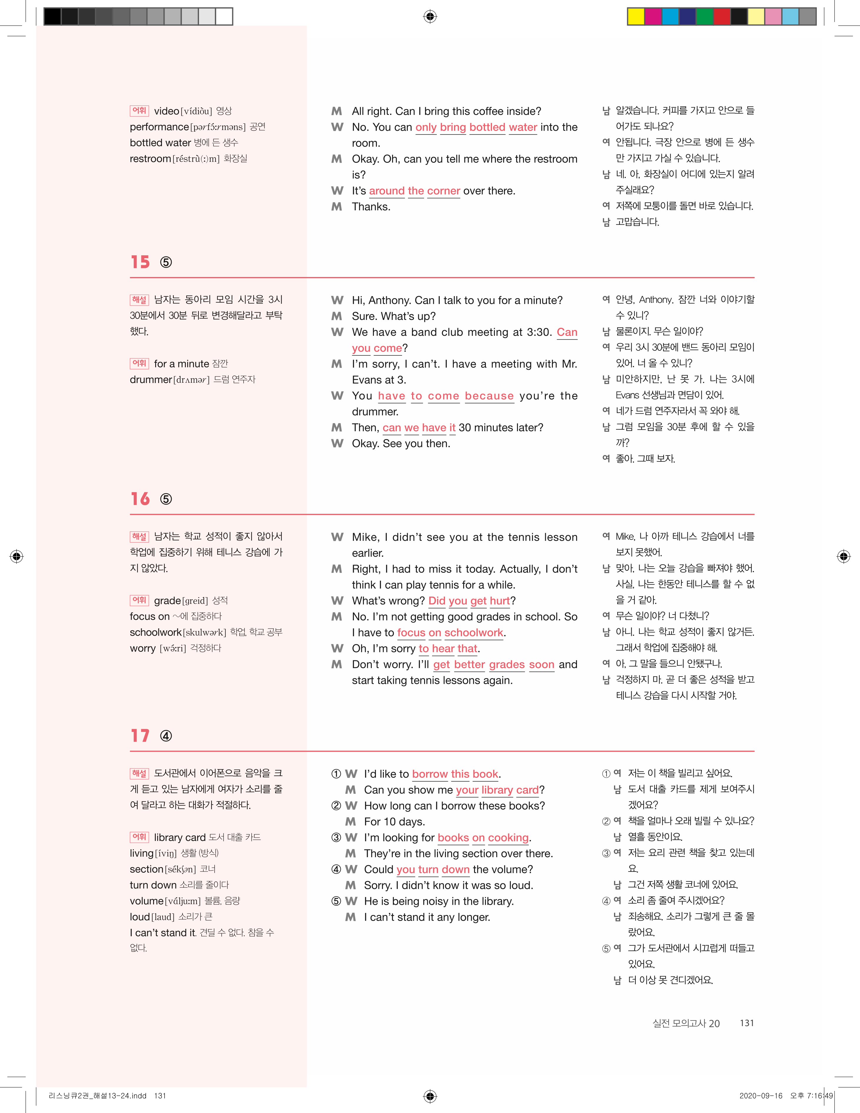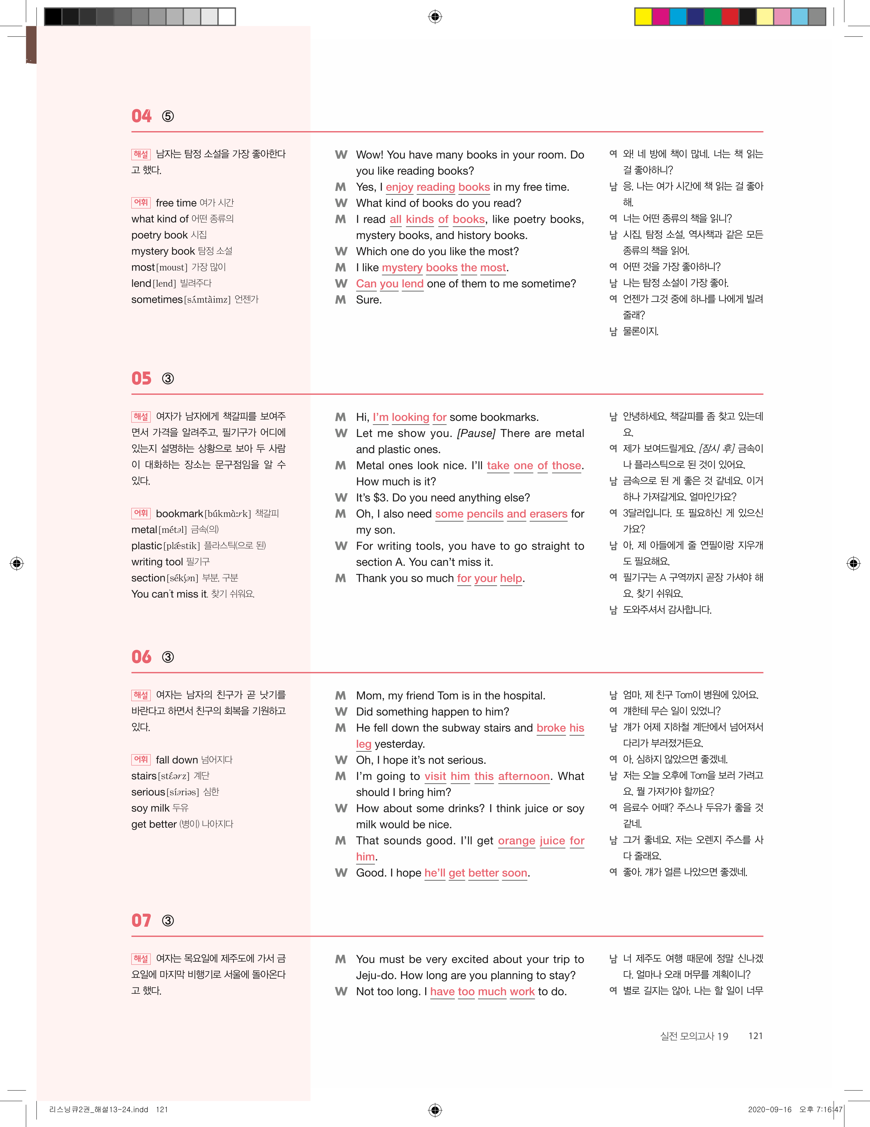 세듀 리스닝큐 중학영어듣기 모의고사24회 레벨2 답지 빠른답지 다운없이 바로보는 사진답지 모바일최적화