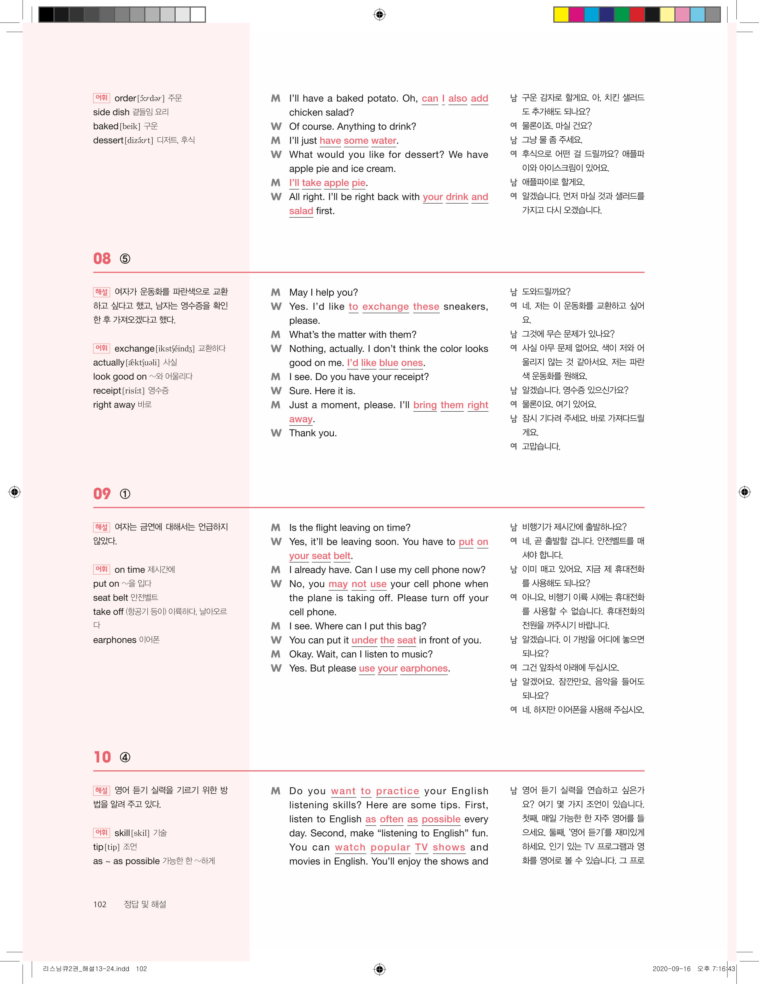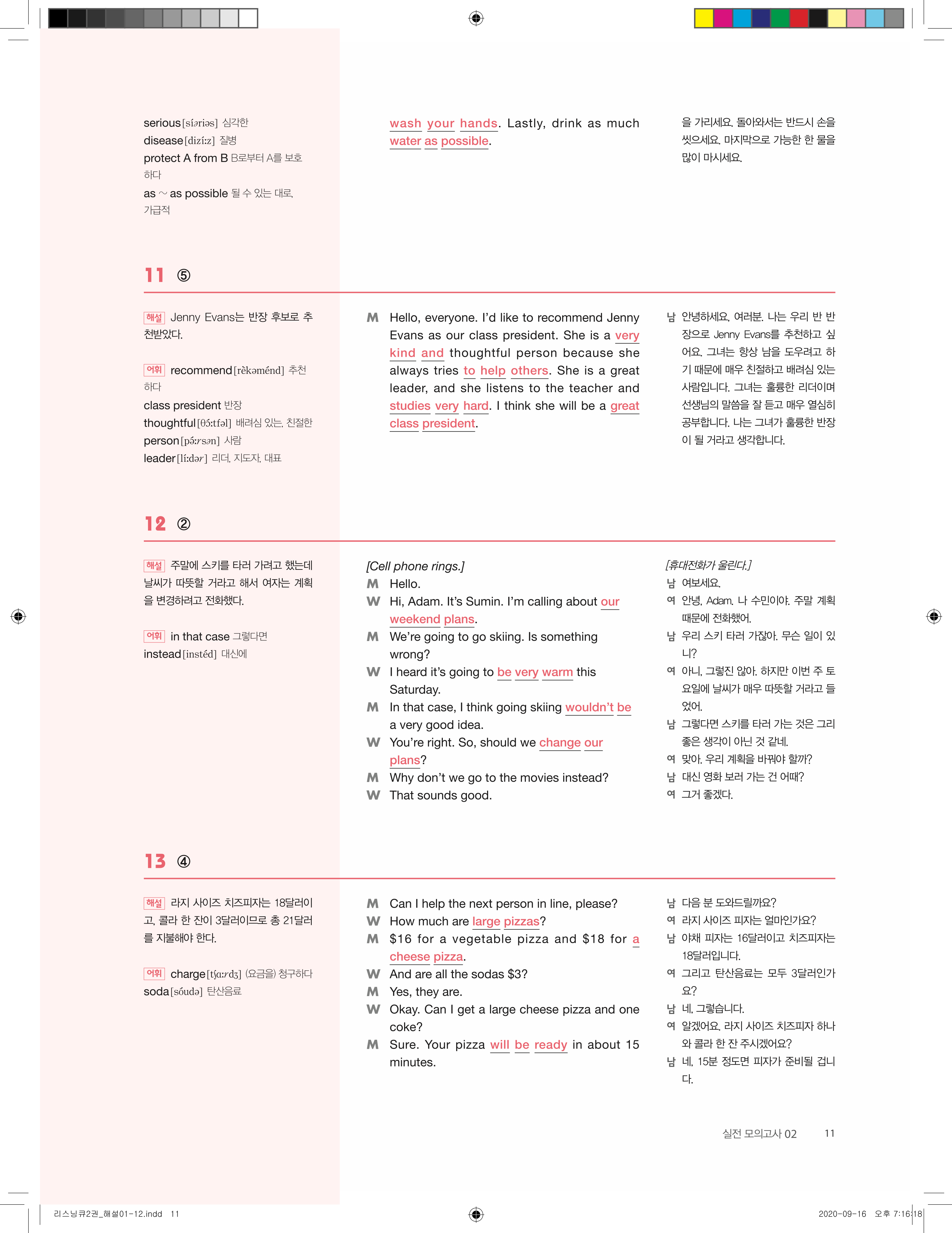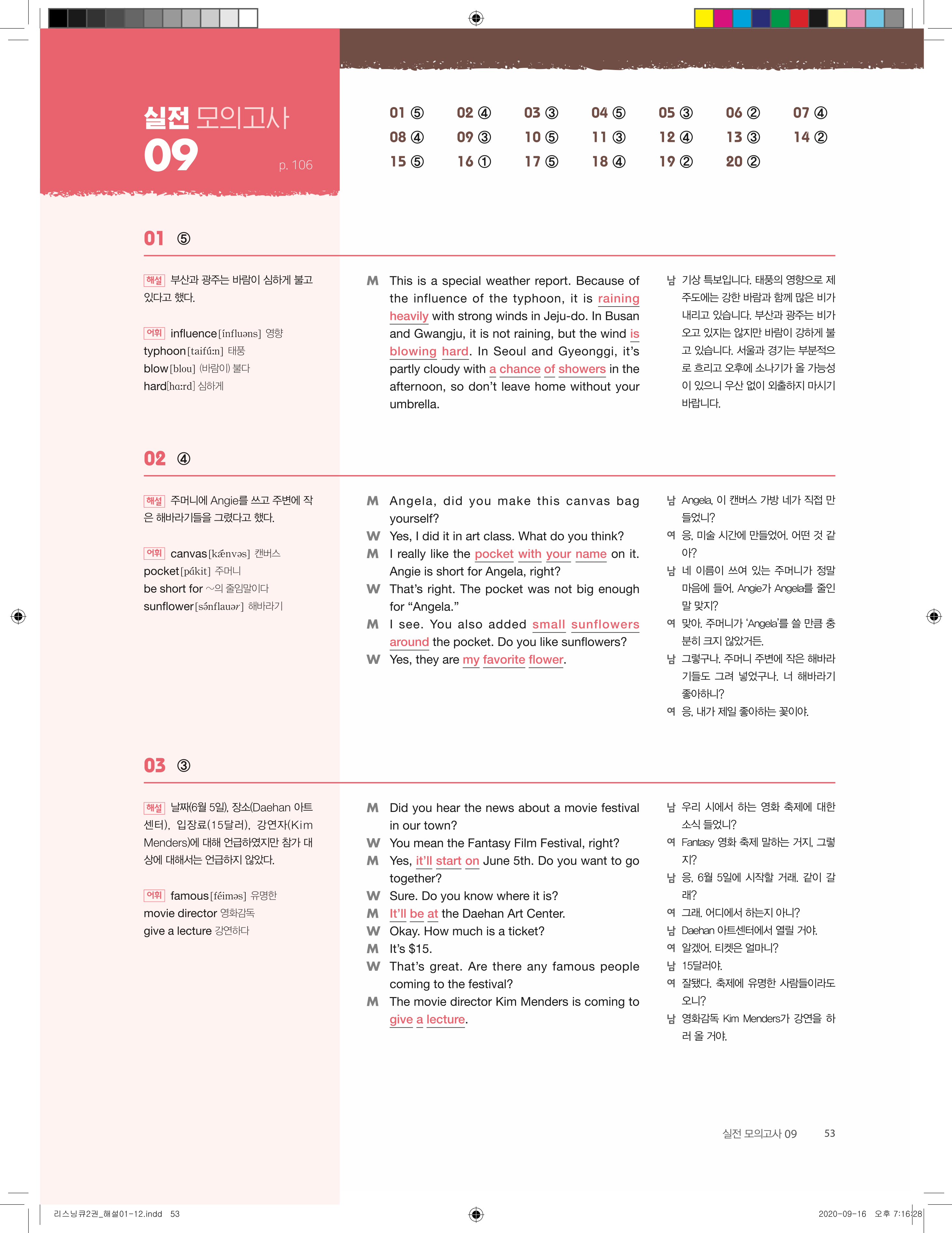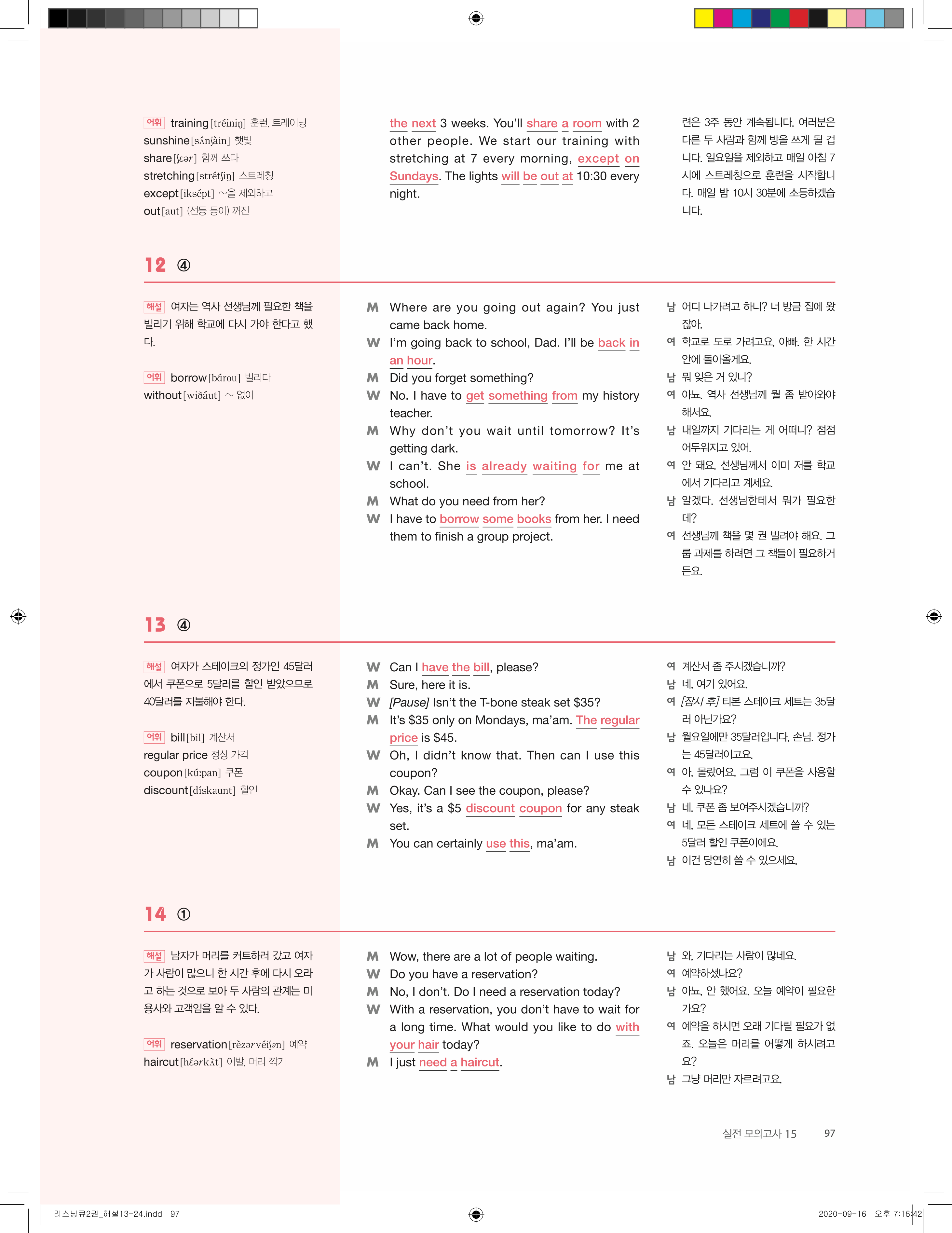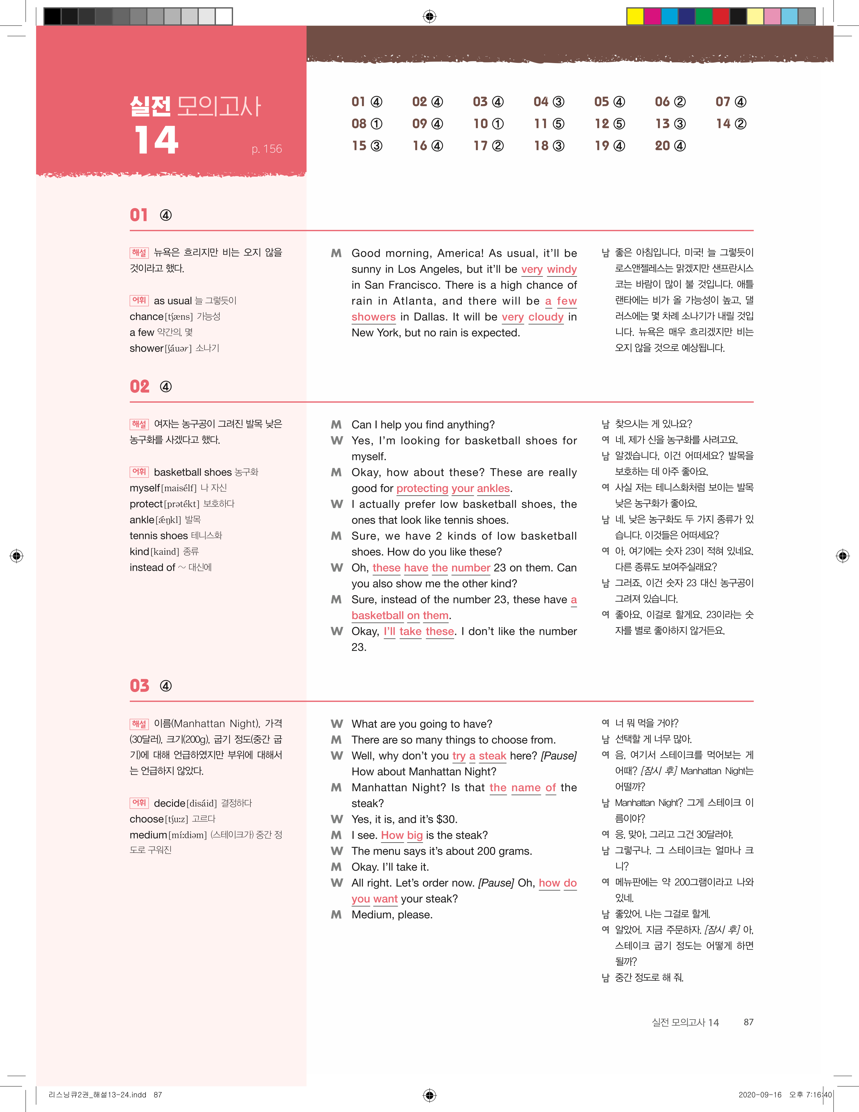 세듀 리스닝큐 중학영어듣기 모의고사24회 레벨2 답지 빠른답지 다운없이 바로보는 사진답지 모바일최적화