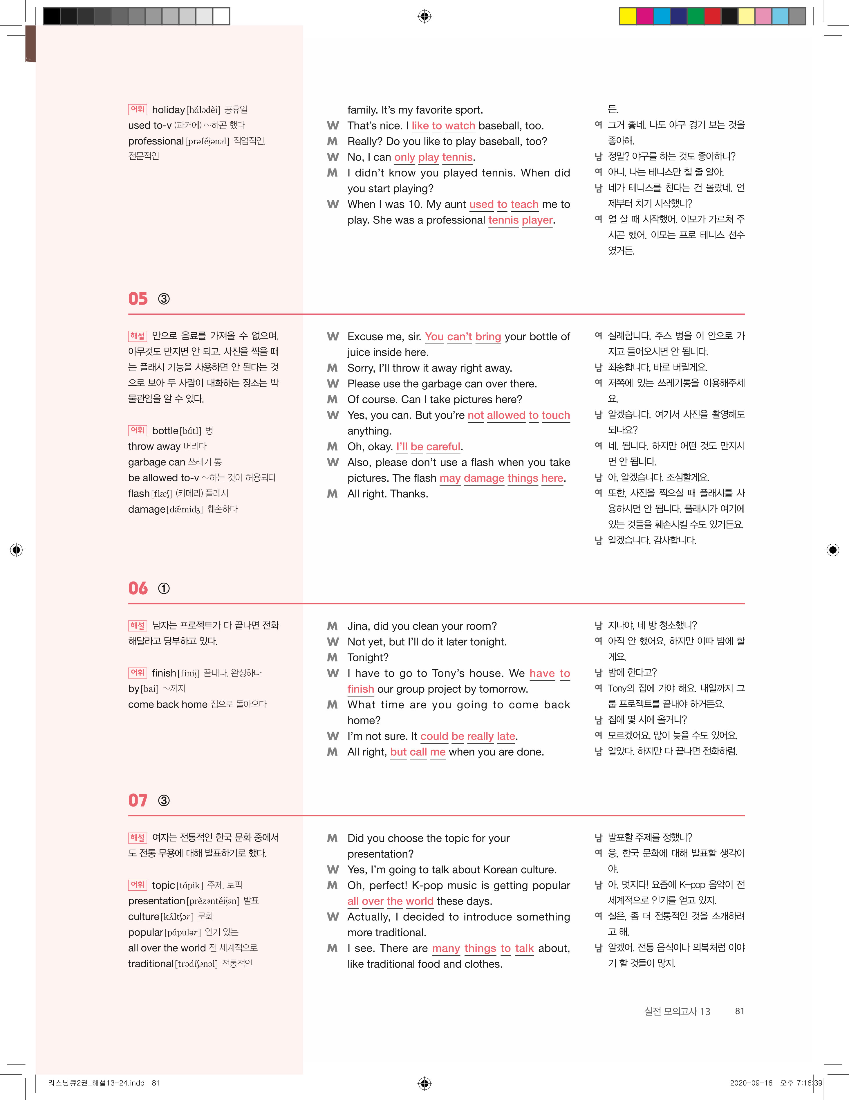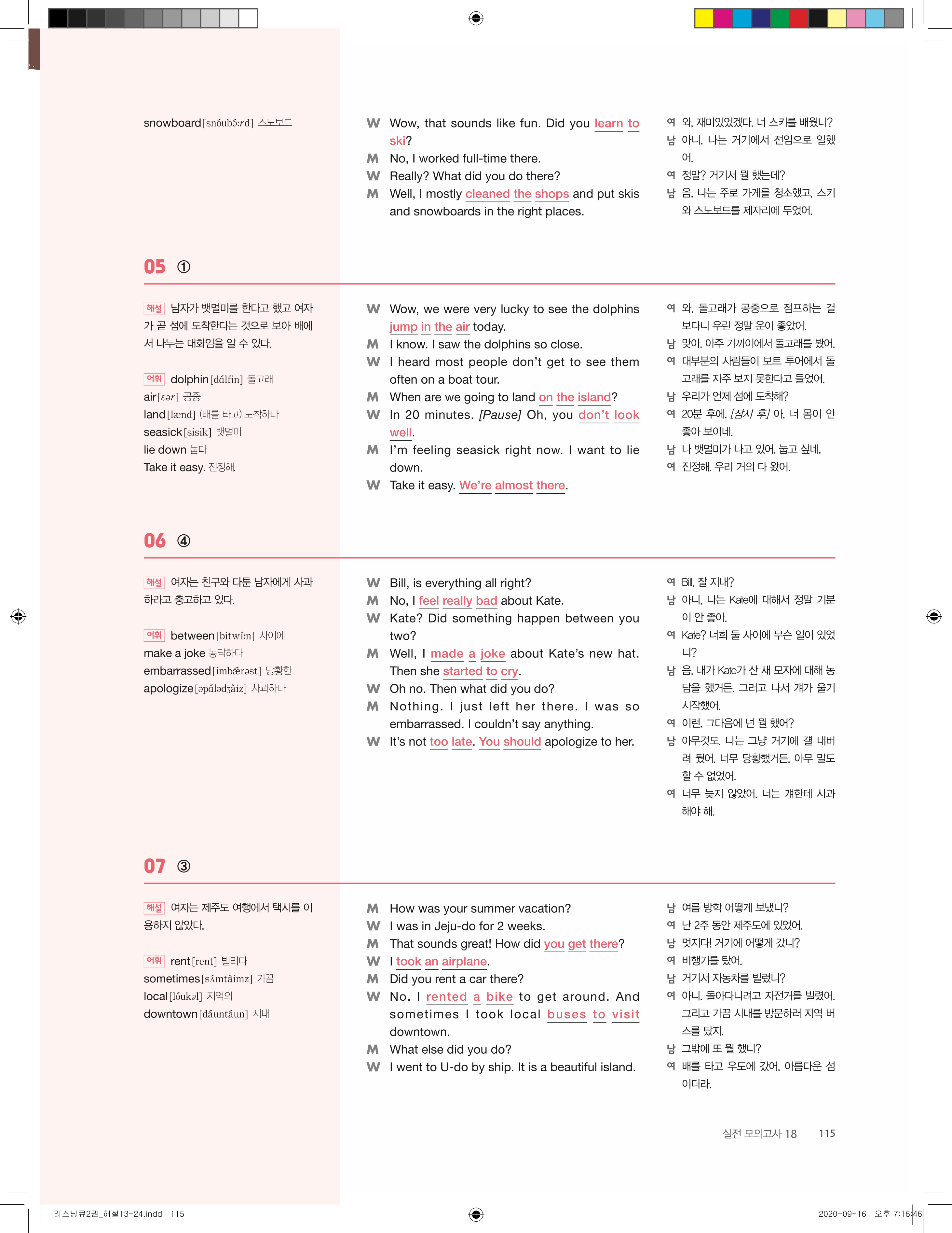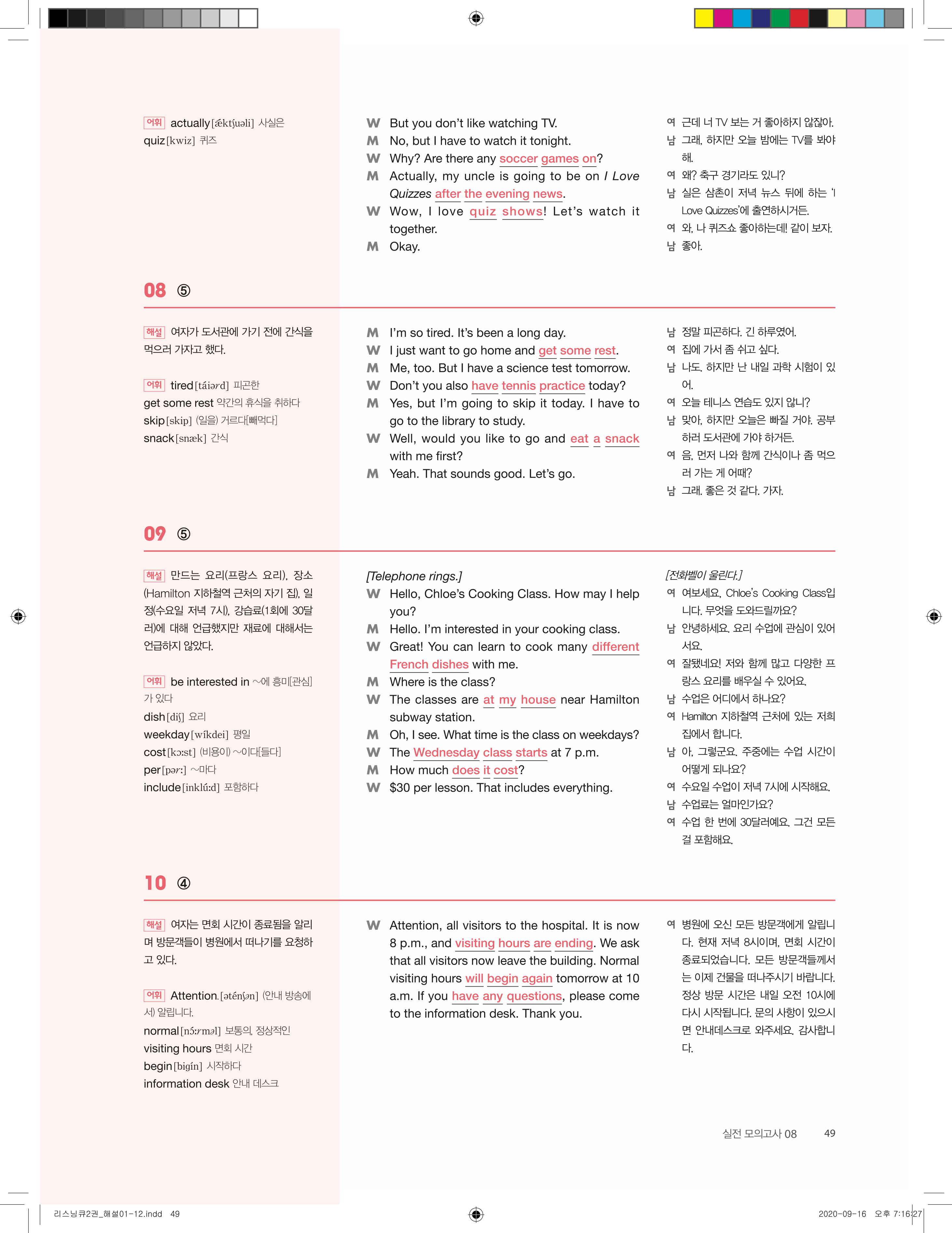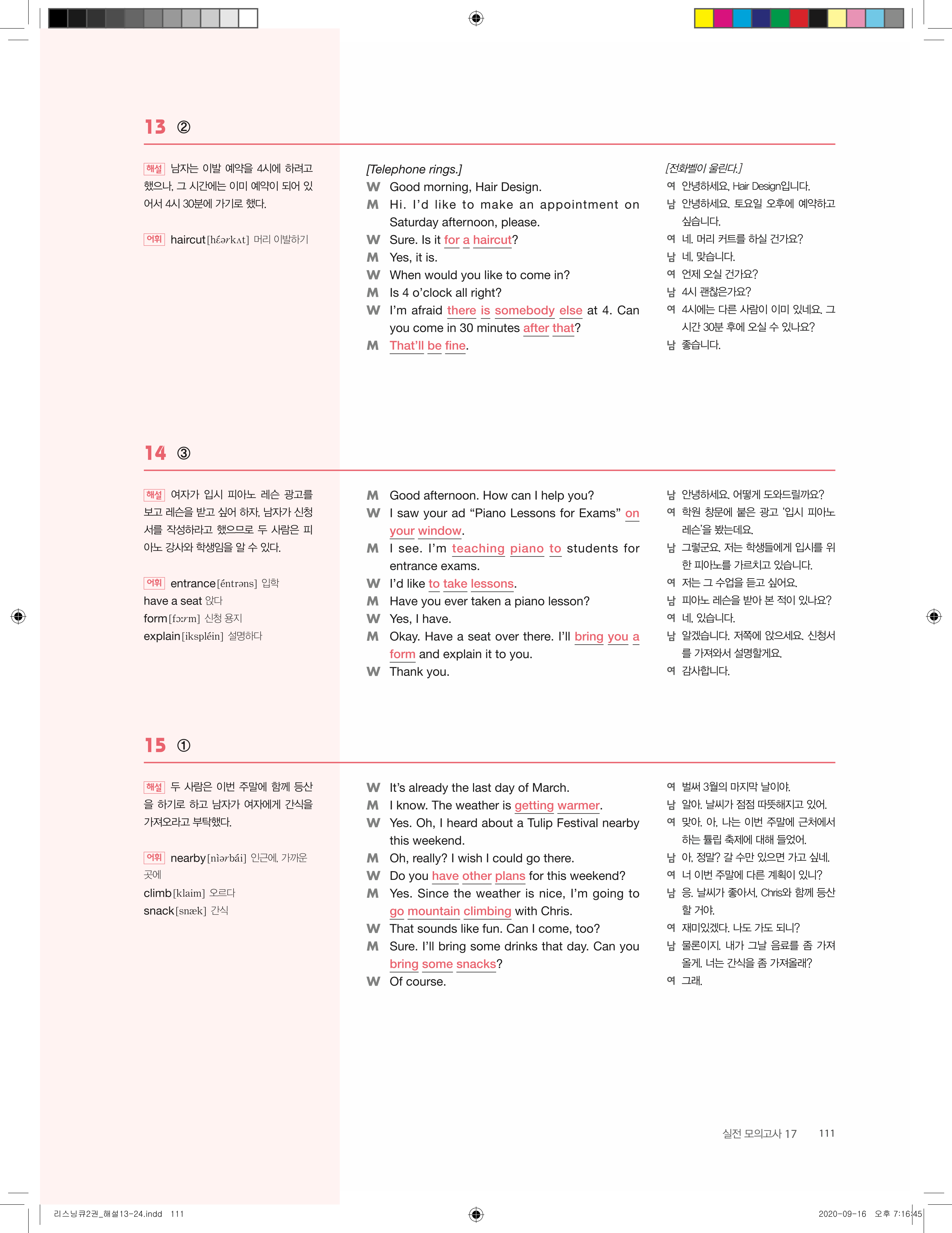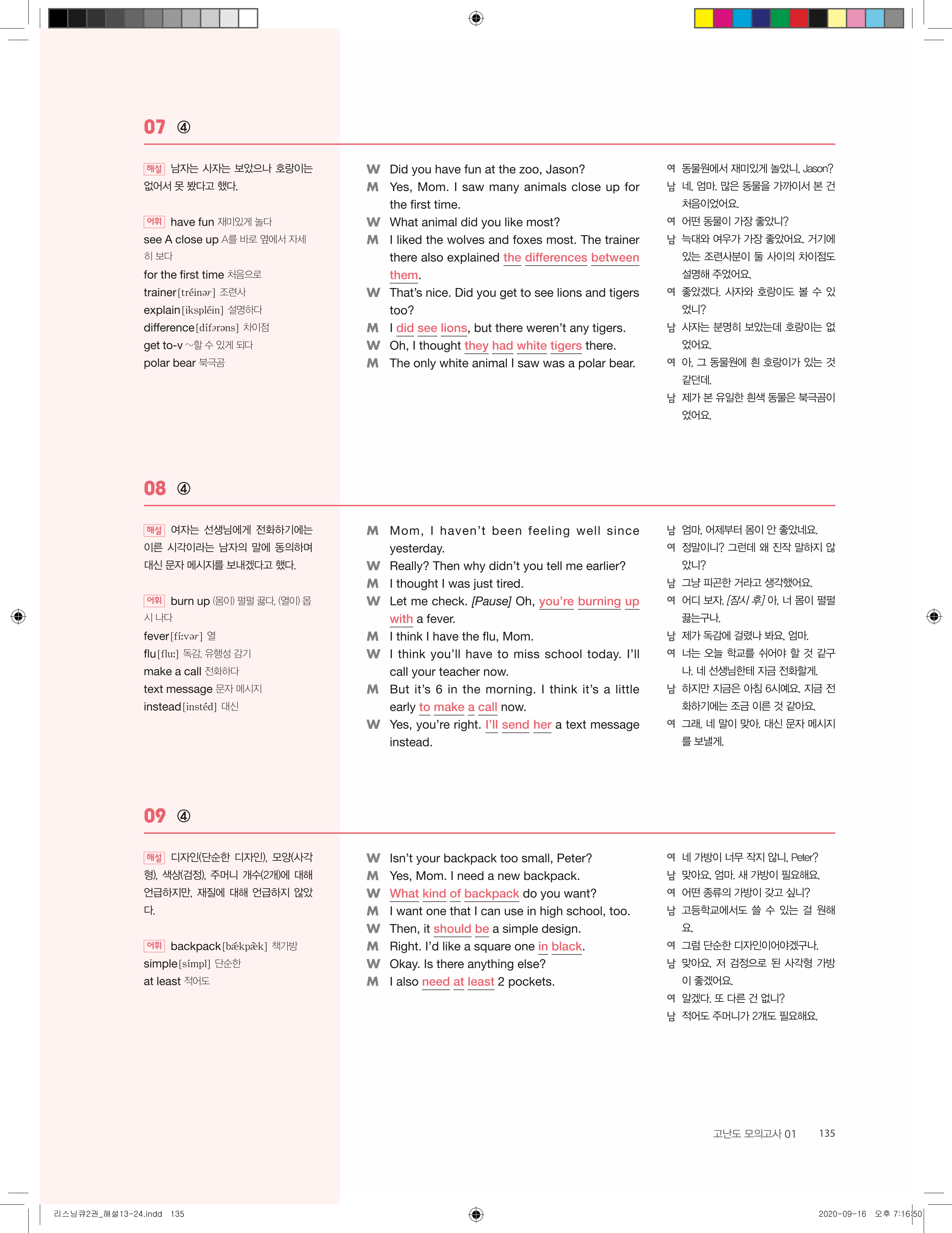 세듀 리스닝큐 중학영어듣기 모의고사24회 레벨2 답지 빠른답지 다운없이 바로보는 사진답지 모바일최적화