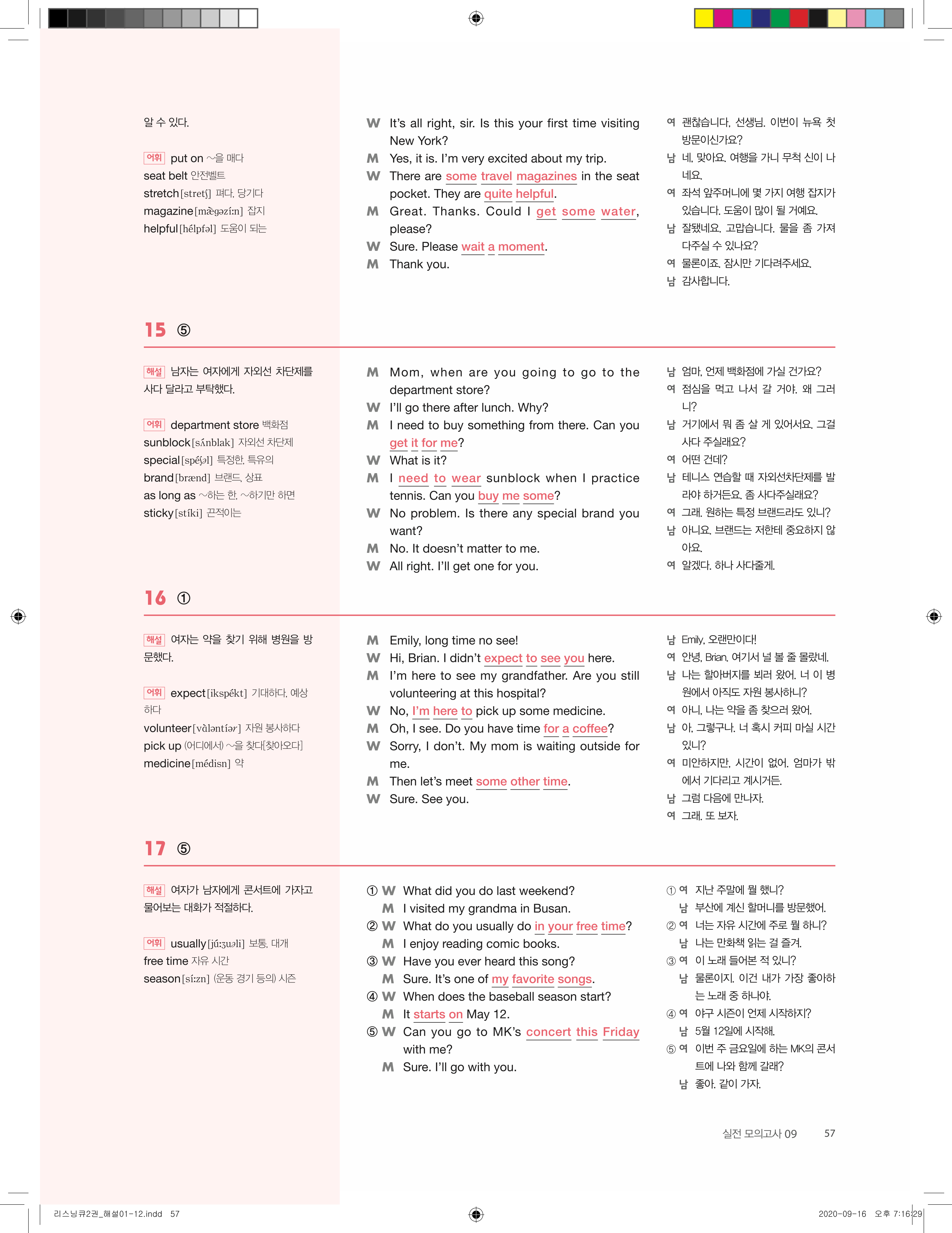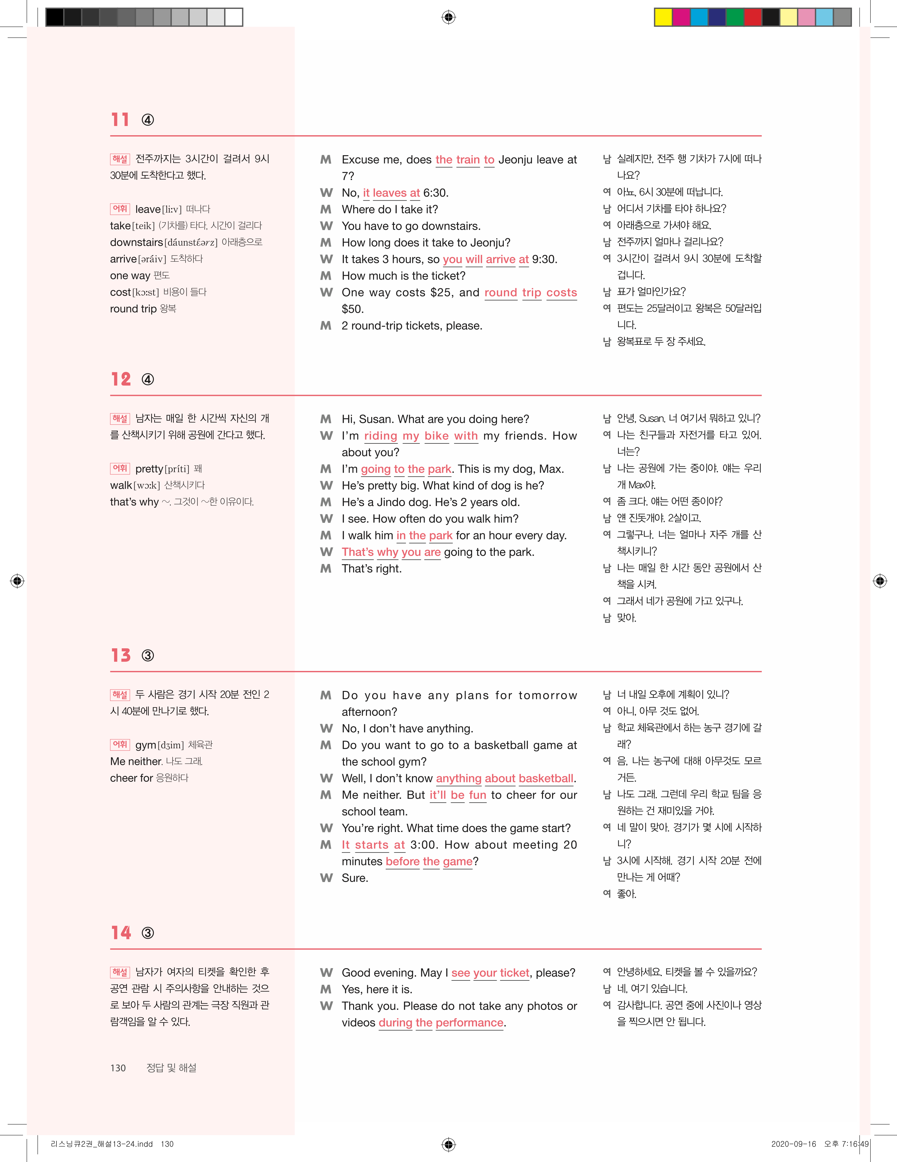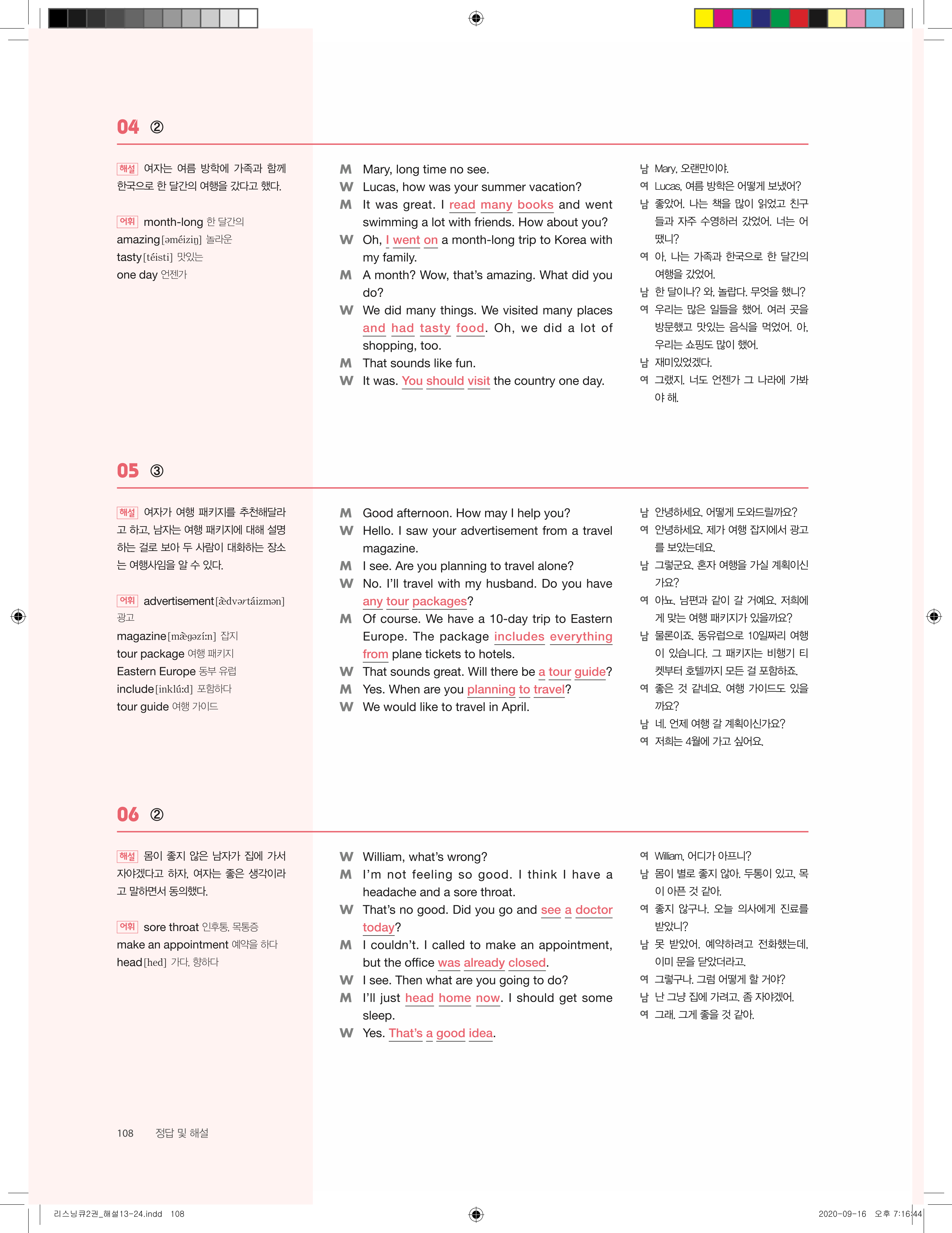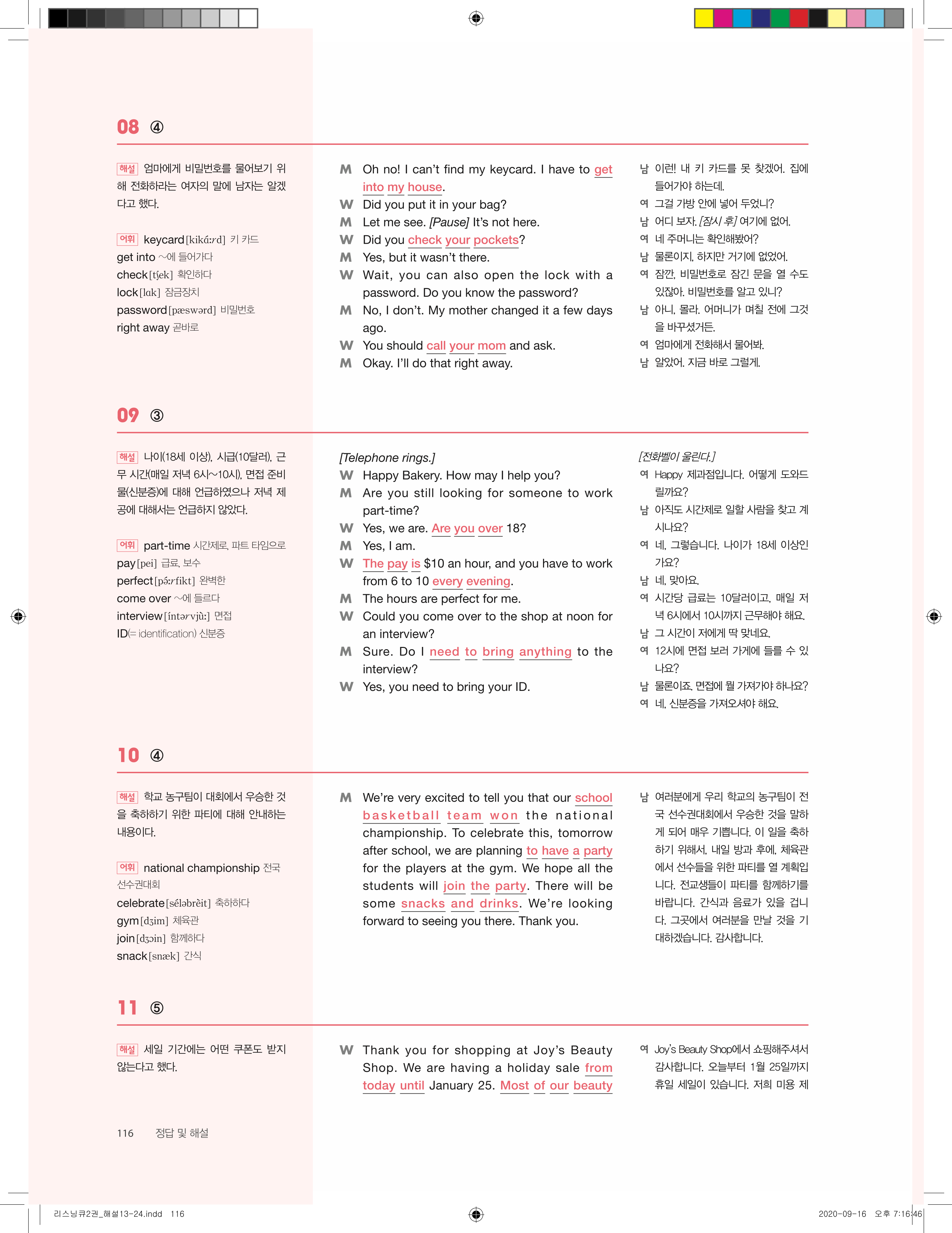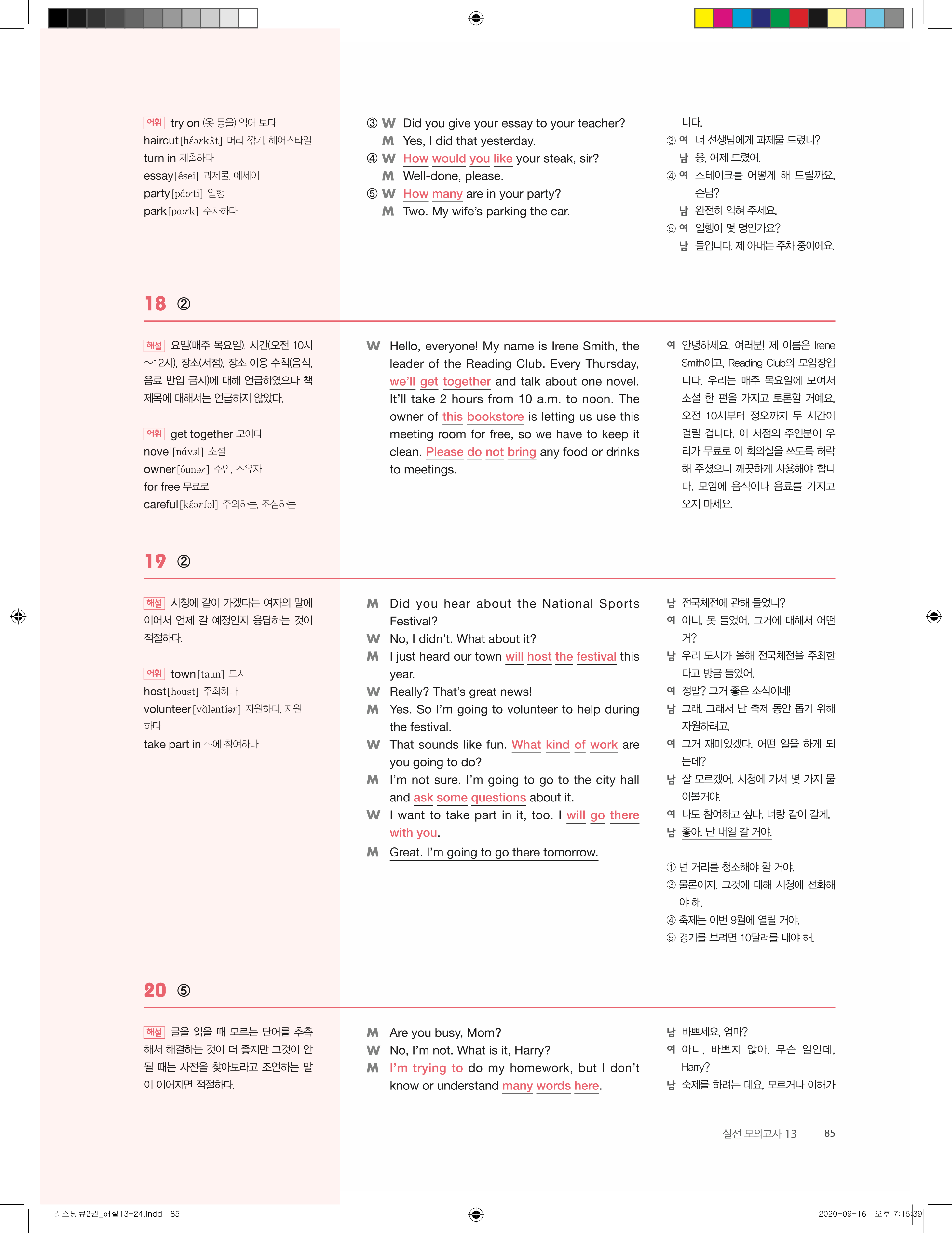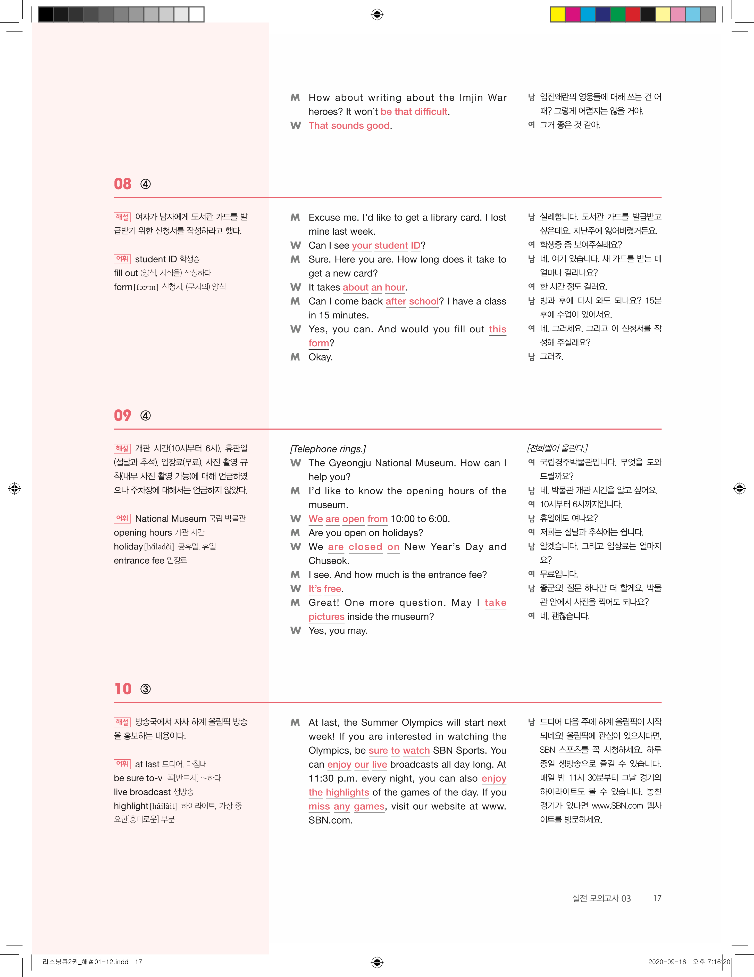 세듀 리스닝큐 중학영어듣기 모의고사24회 레벨2 답지 빠른답지 다운없이 바로보는 사진답지 모바일최적화
