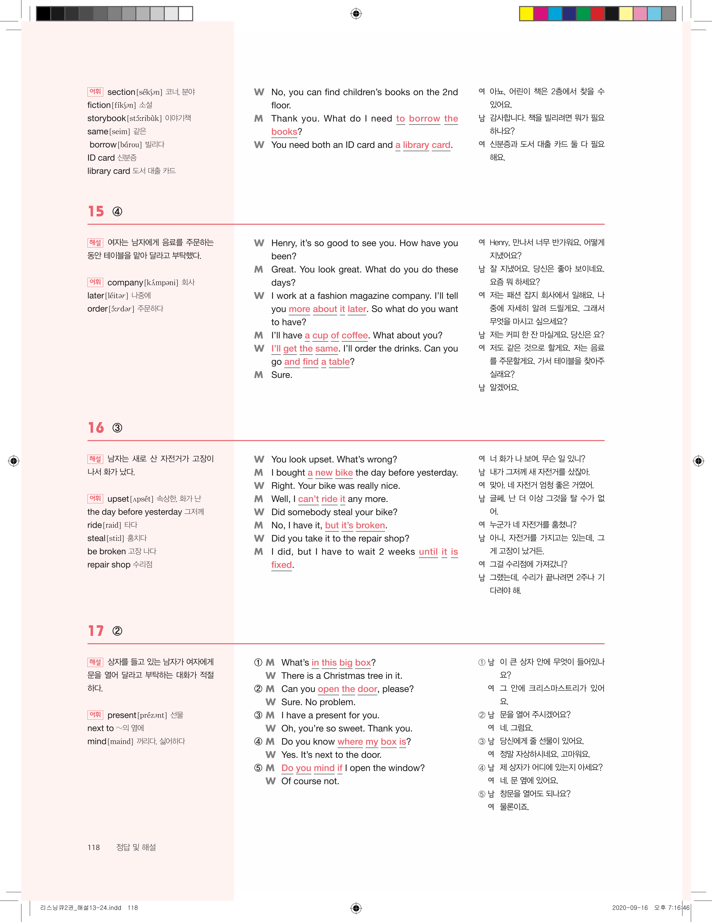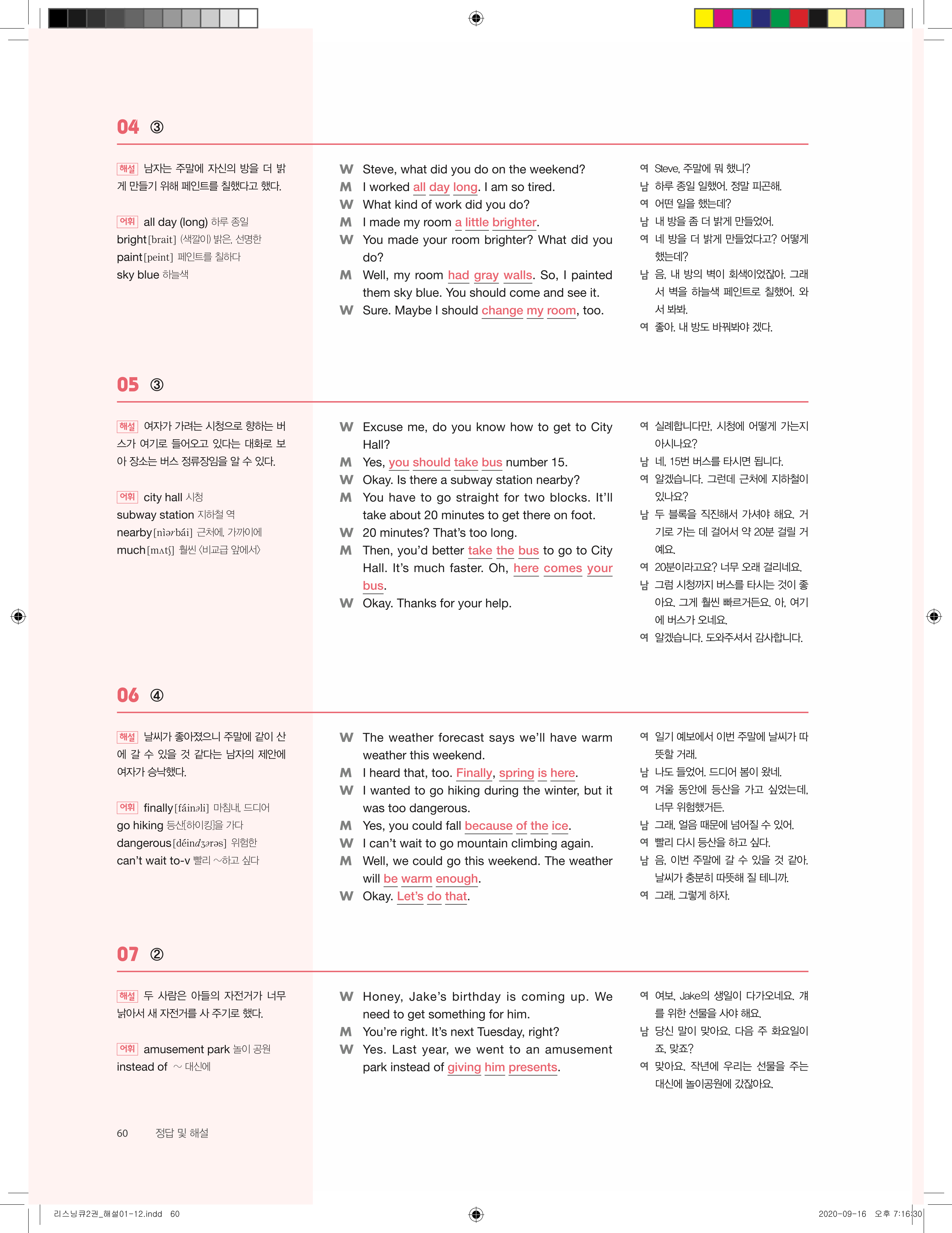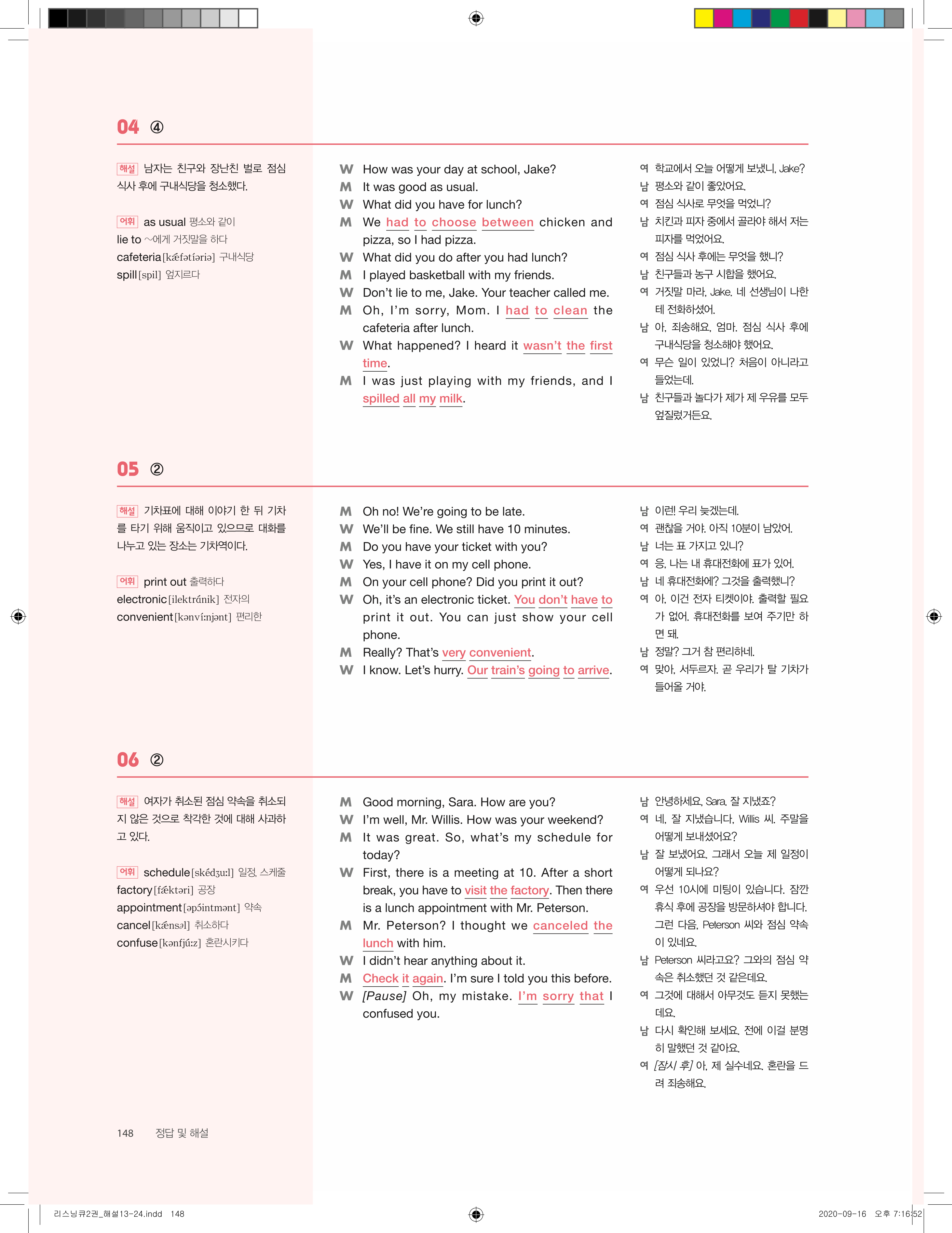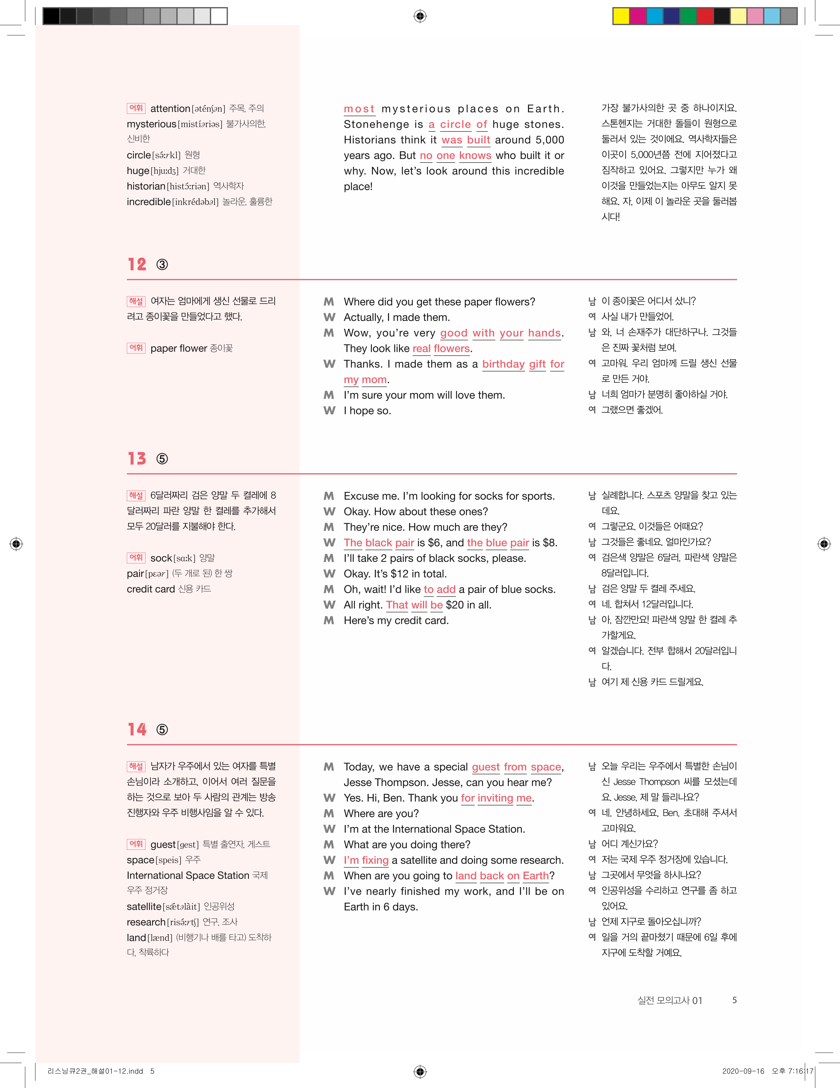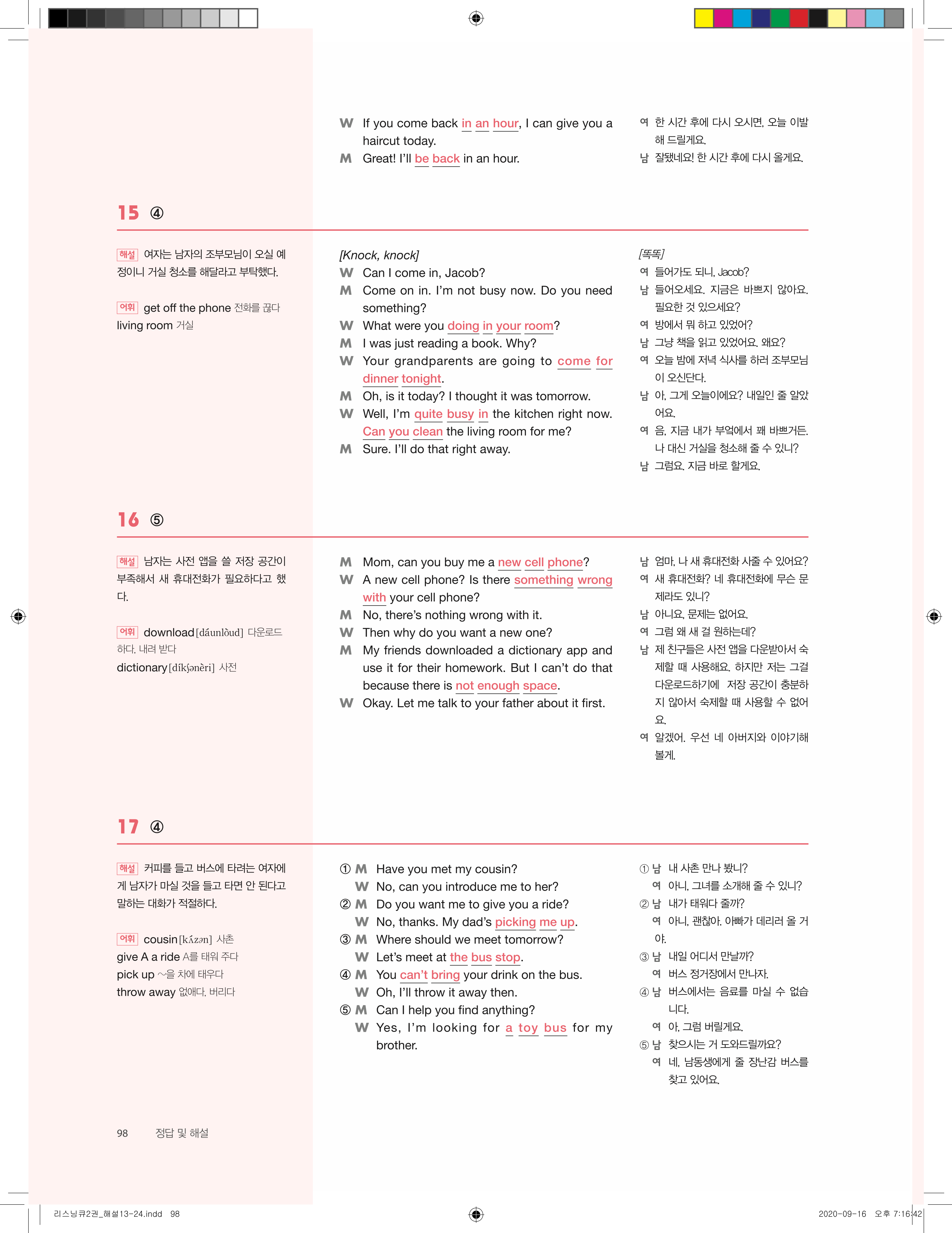세듀 리스닝큐 중학영어듣기 모의고사24회 레벨2 답지 빠른답지 다운없이 바로보는 사진답지 모바일최적화