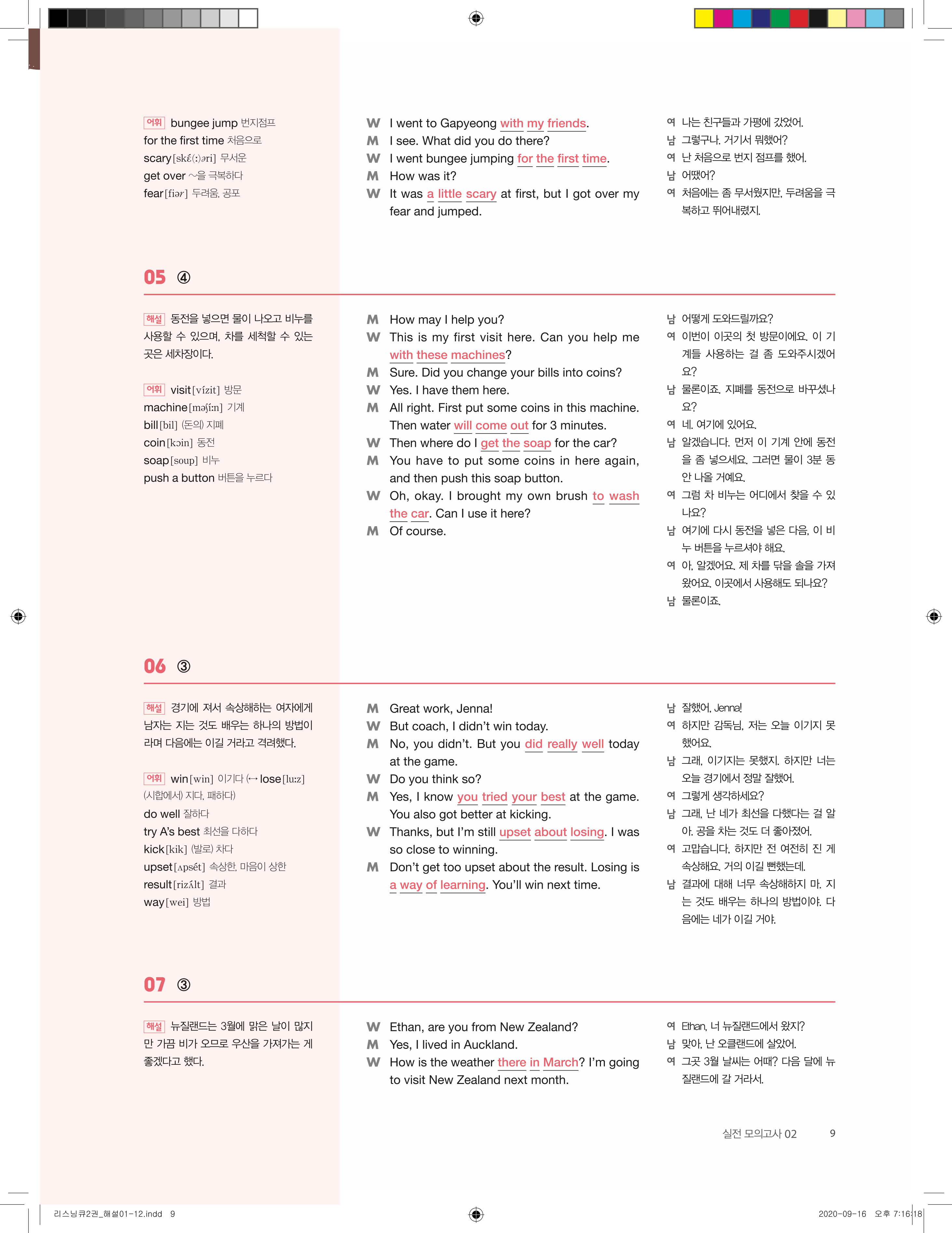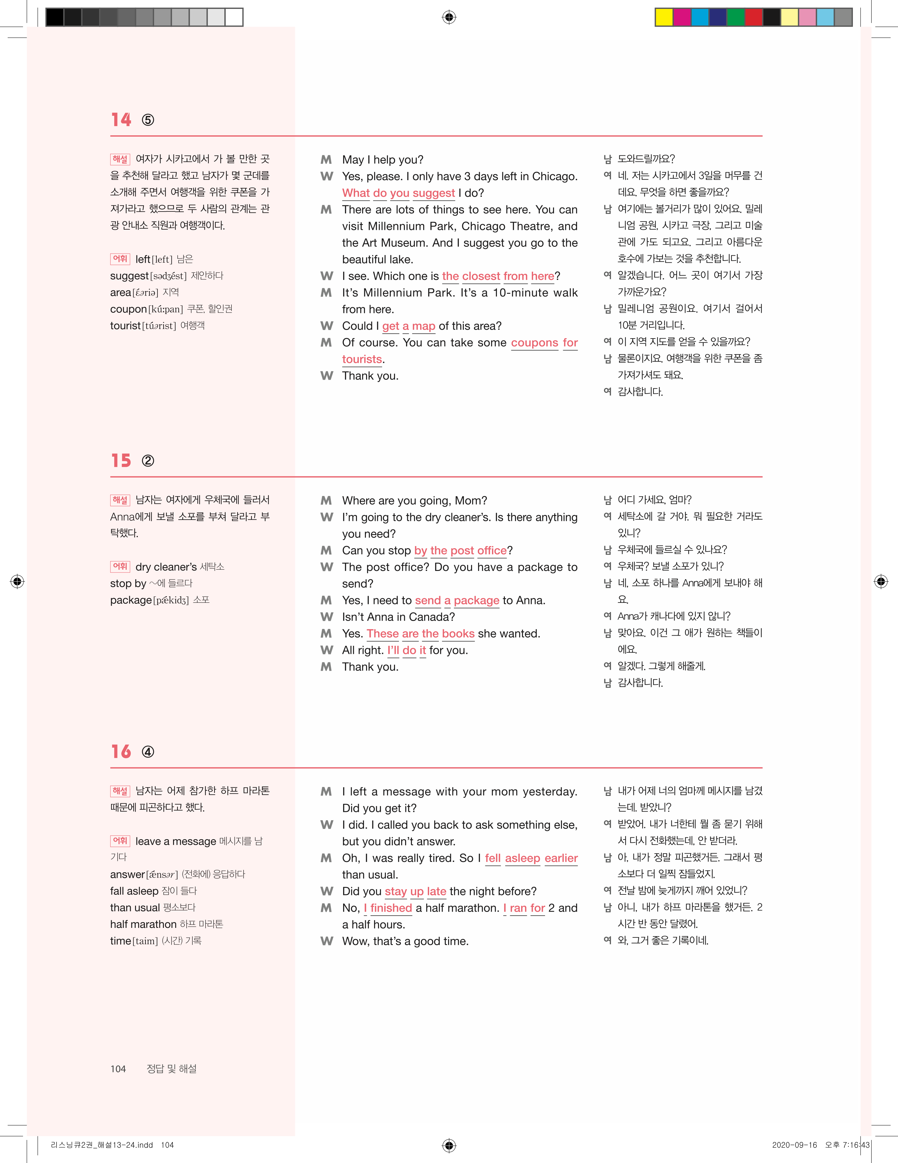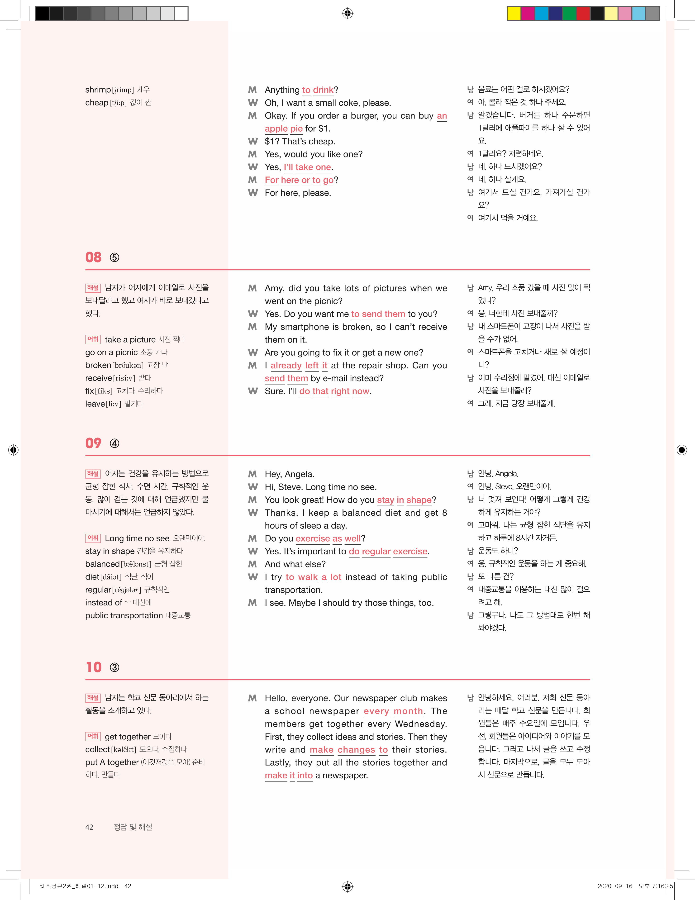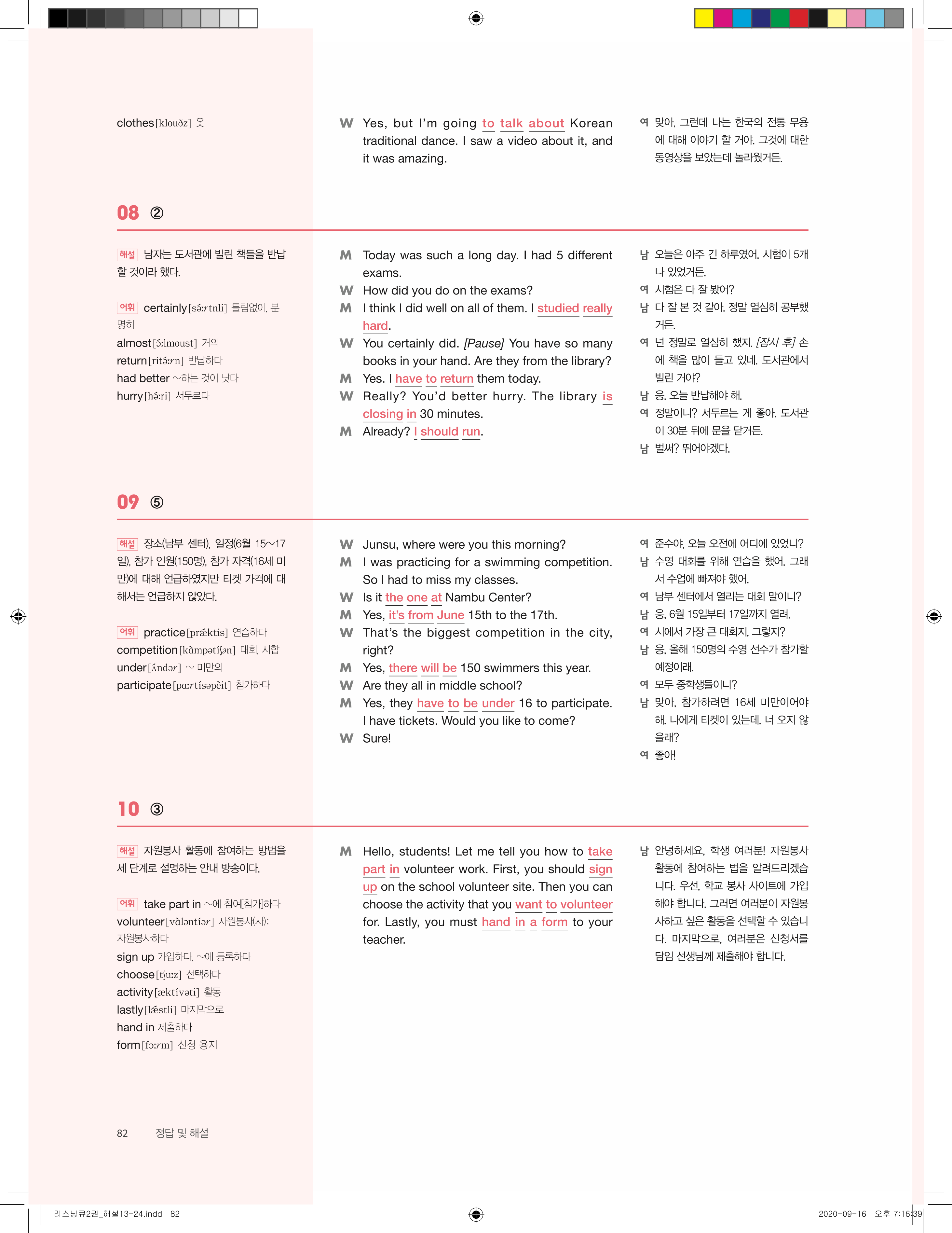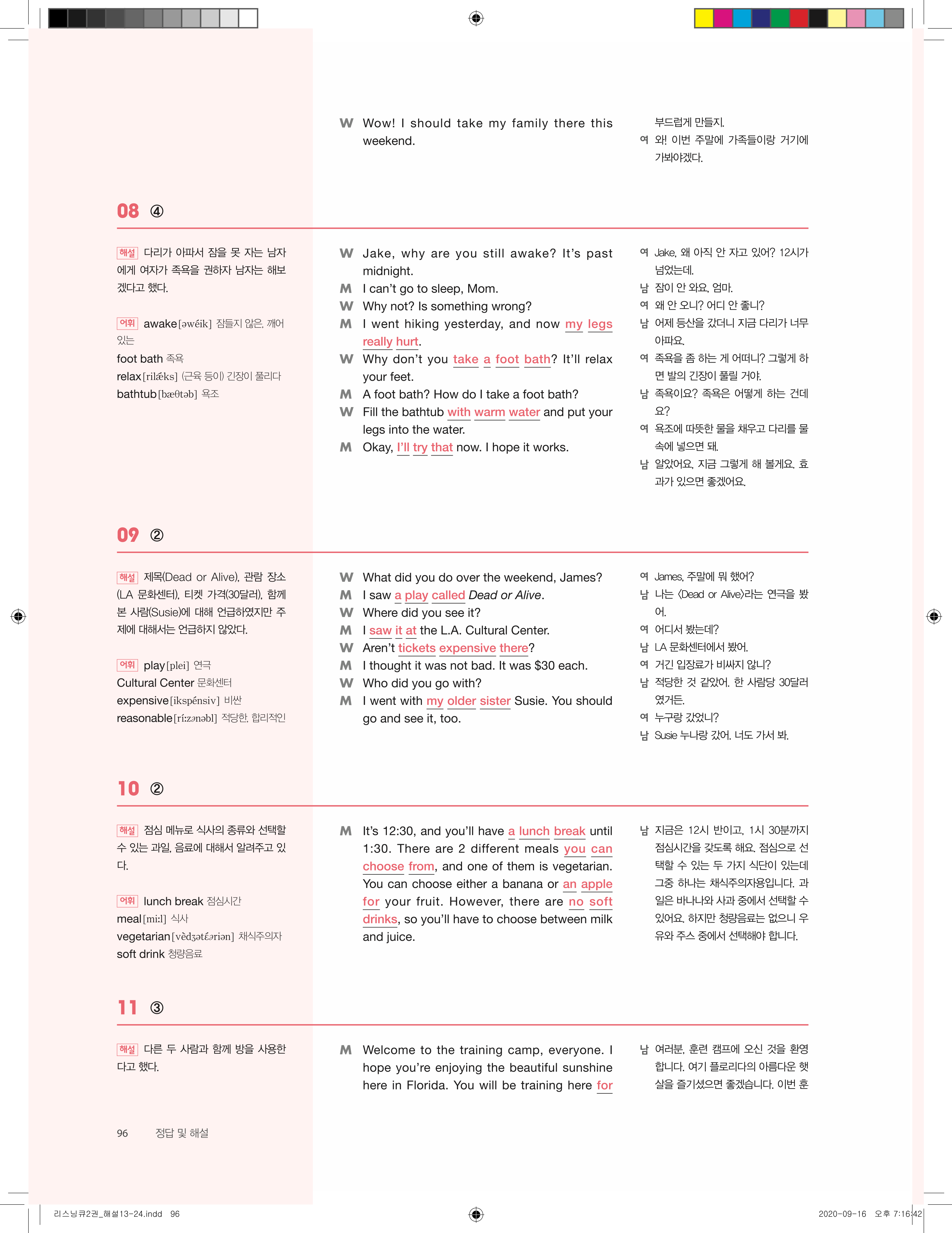 세듀 리스닝큐 중학영어듣기 모의고사24회 레벨2 답지 빠른답지 다운없이 바로보는 사진답지 모바일최적화
