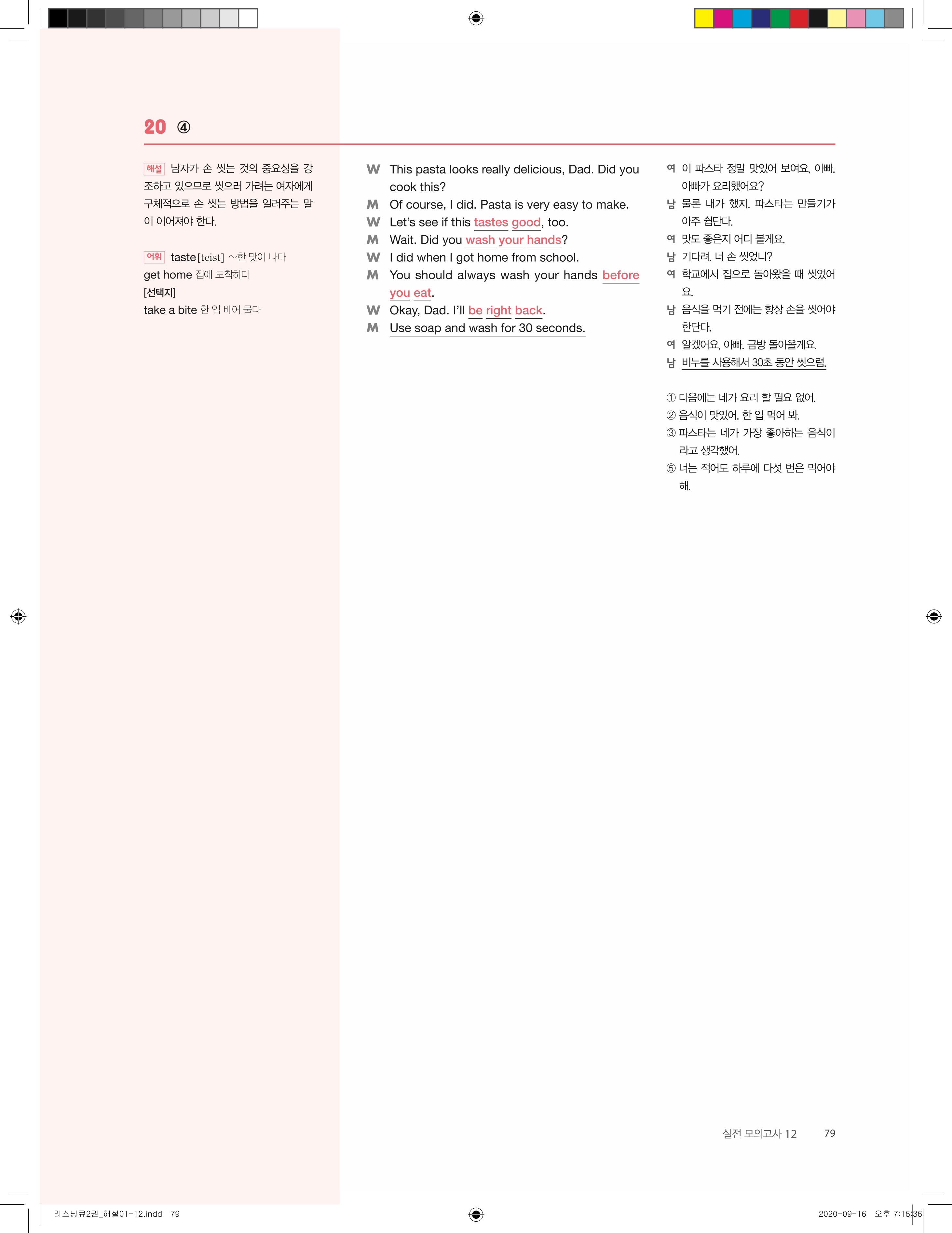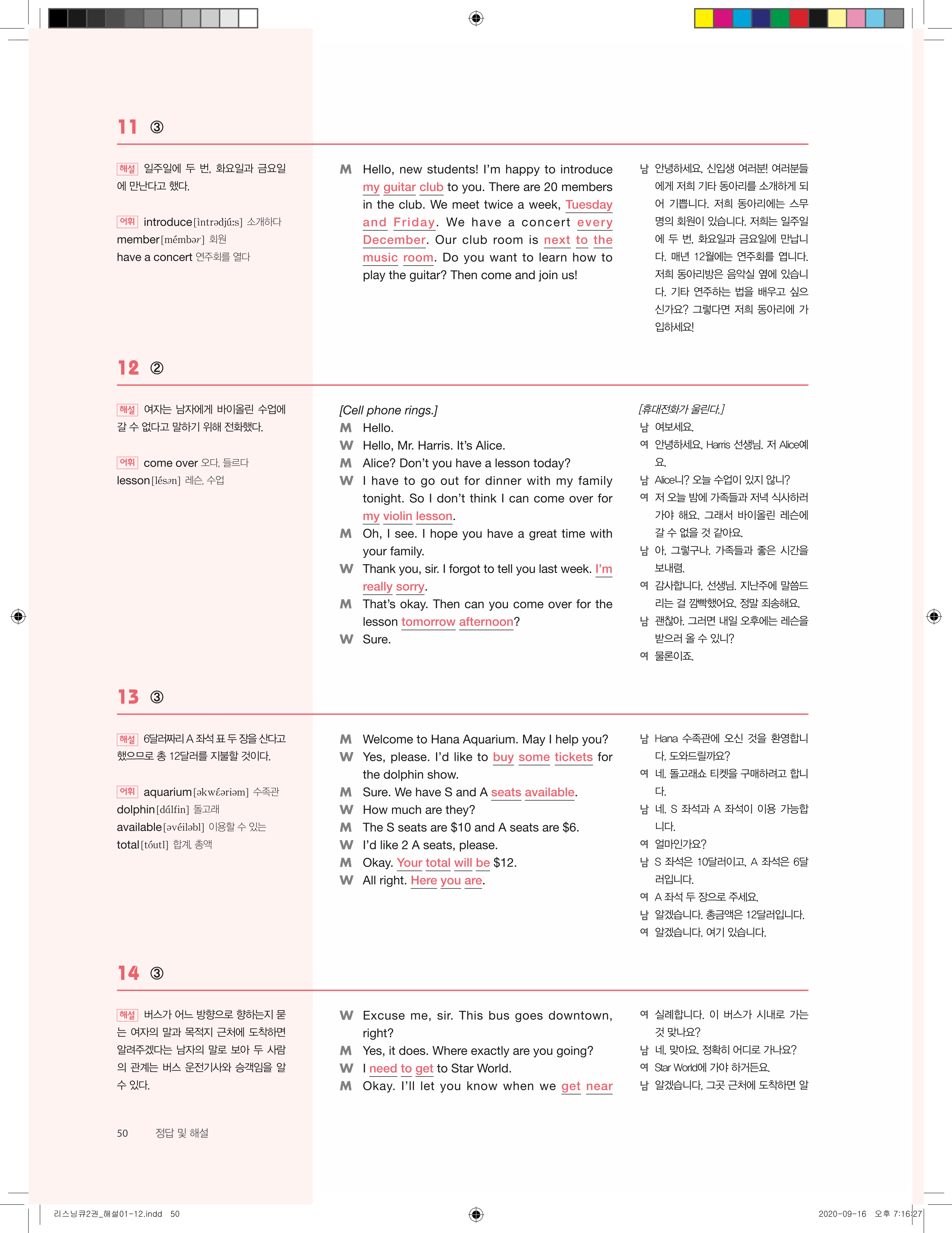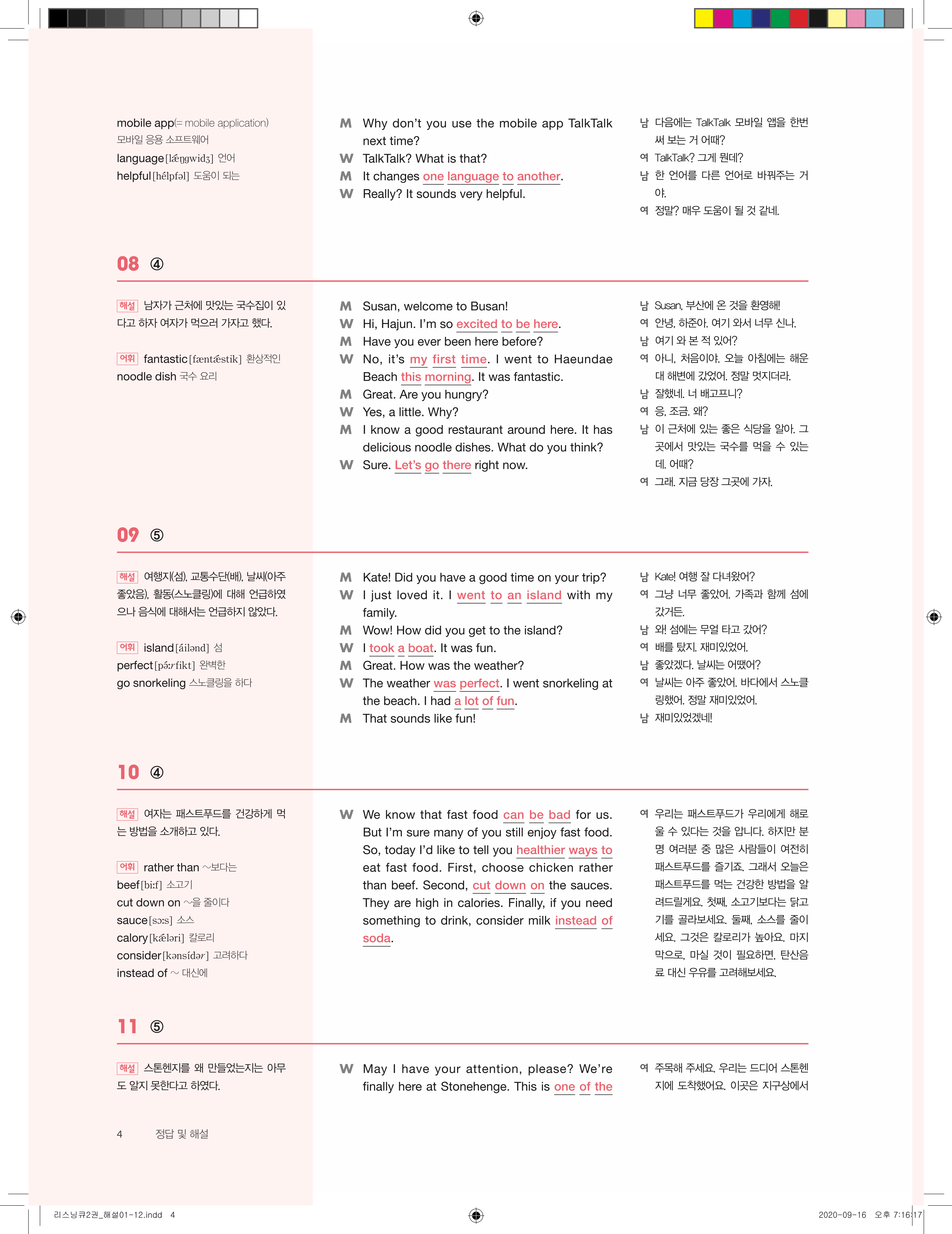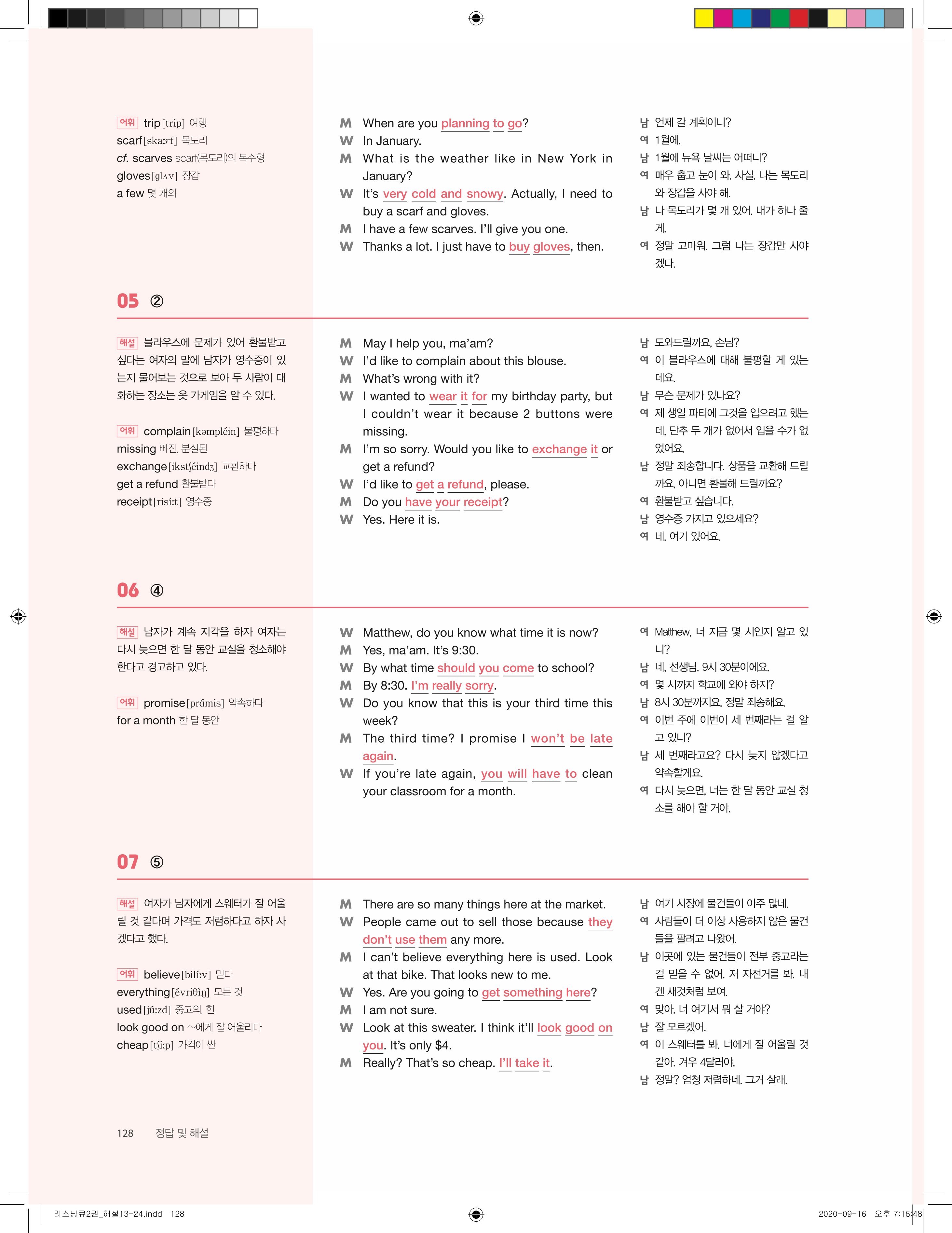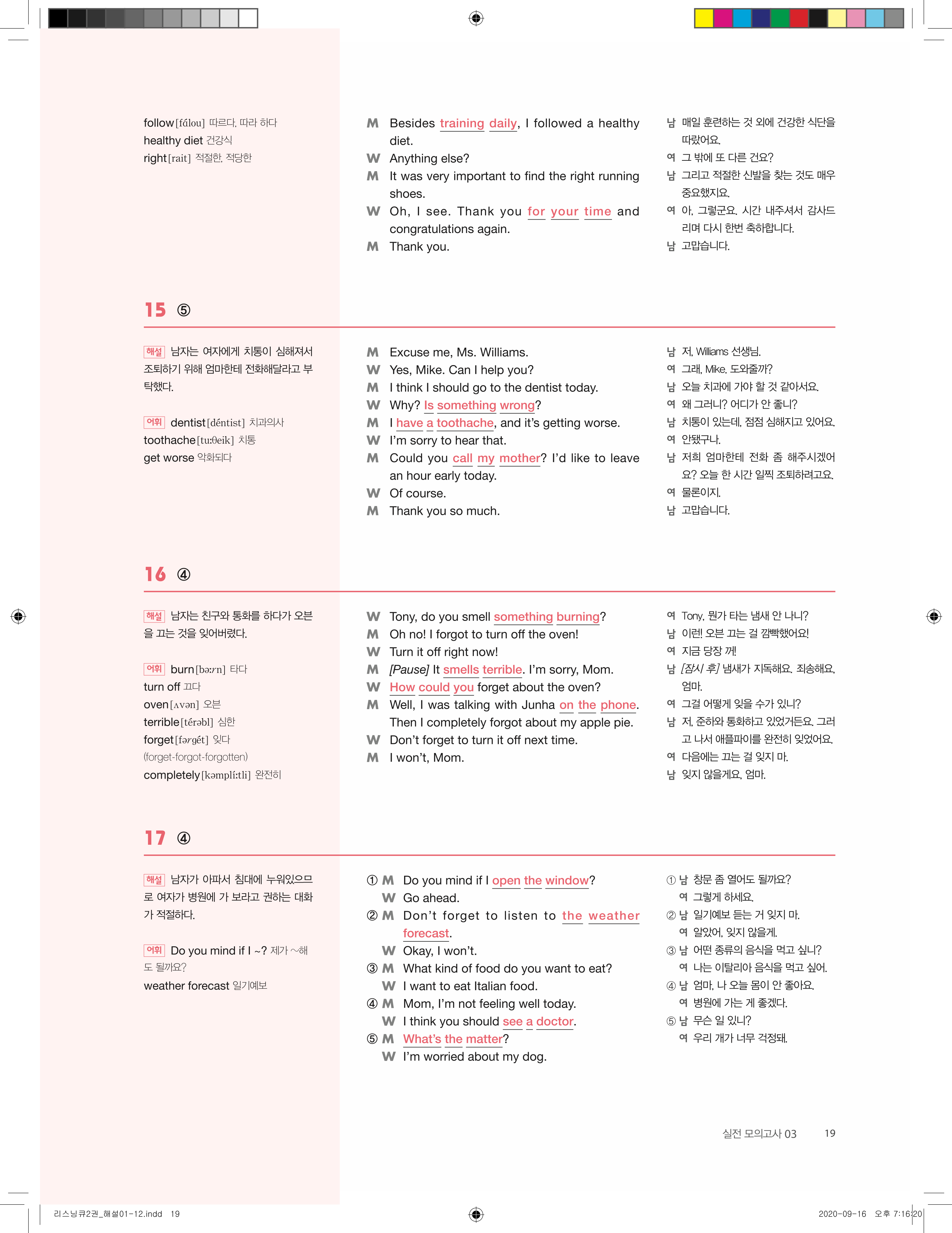 세듀 리스닝큐 중학영어듣기 모의고사24회 레벨2 답지 빠른답지 다운없이 바로보는 사진답지 모바일최적화
