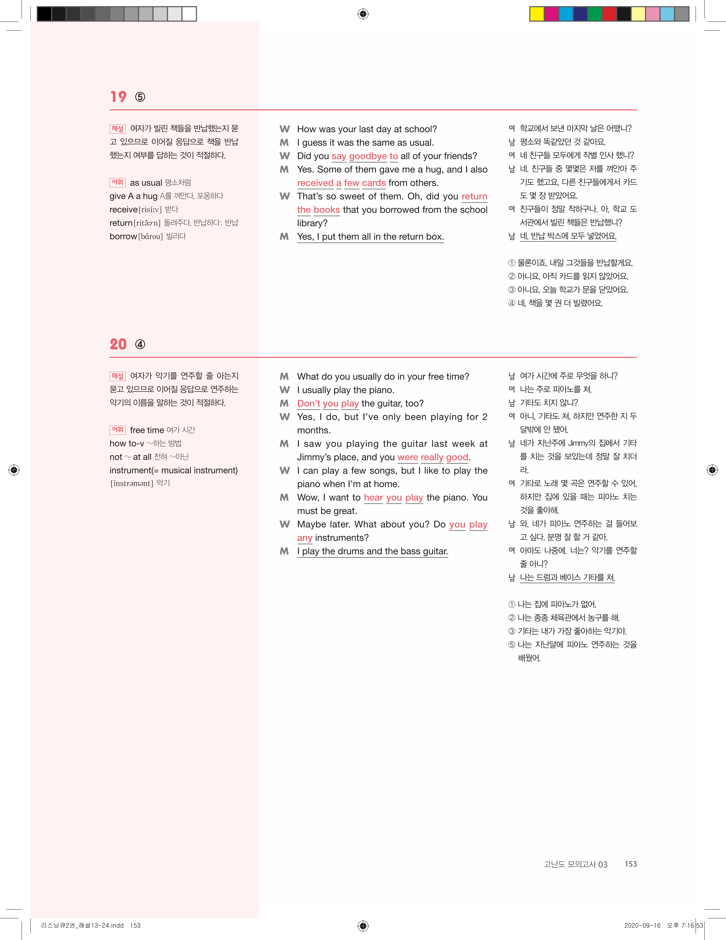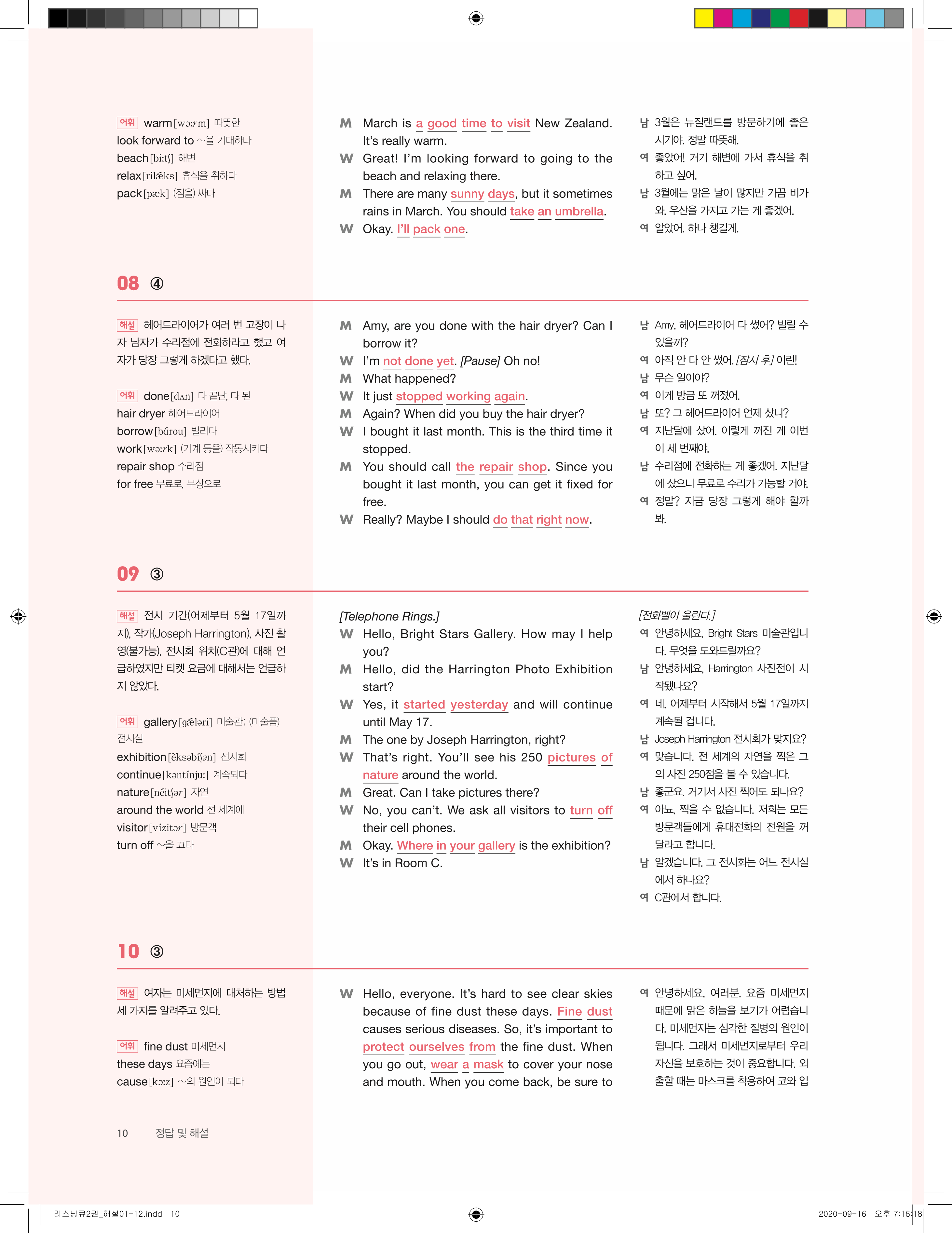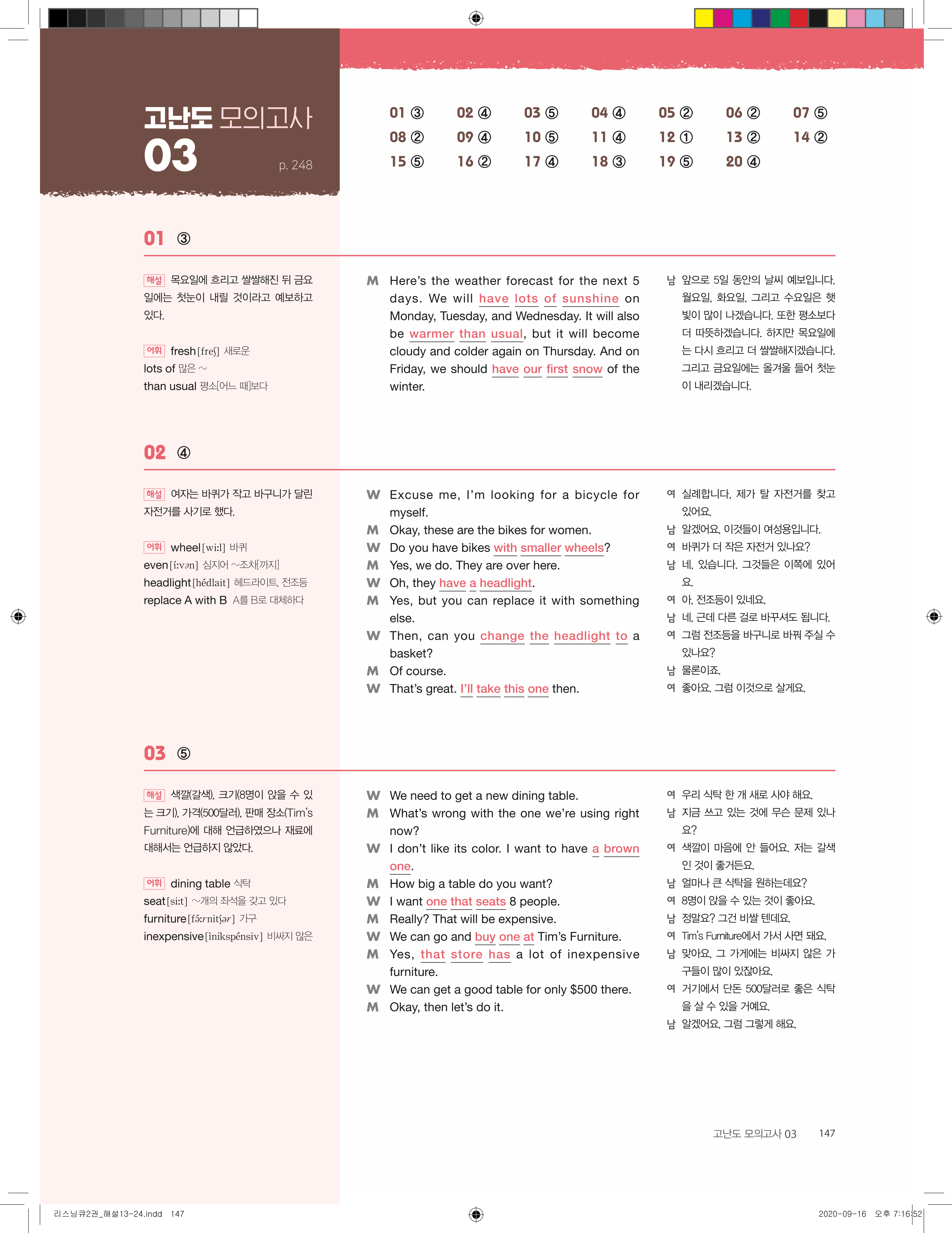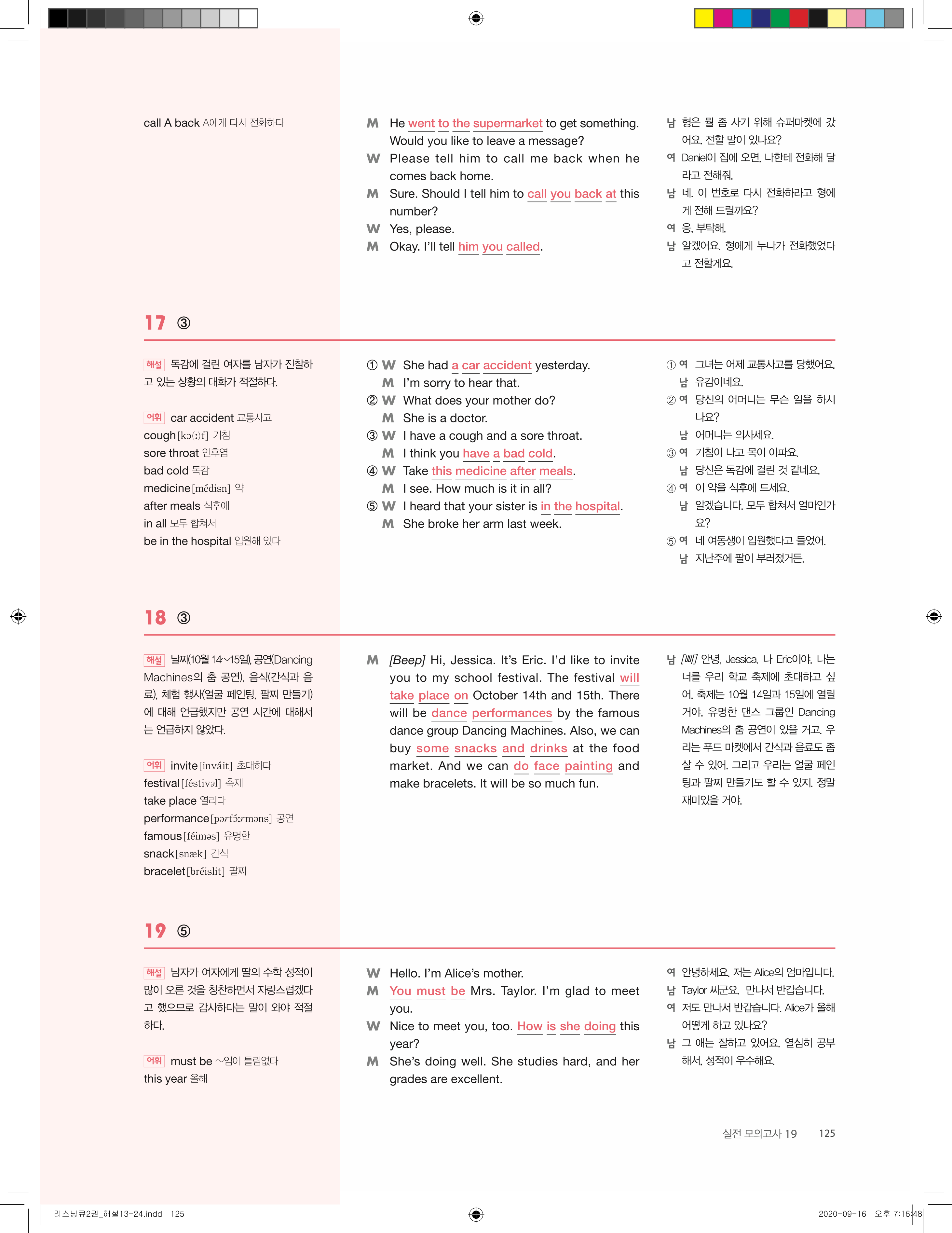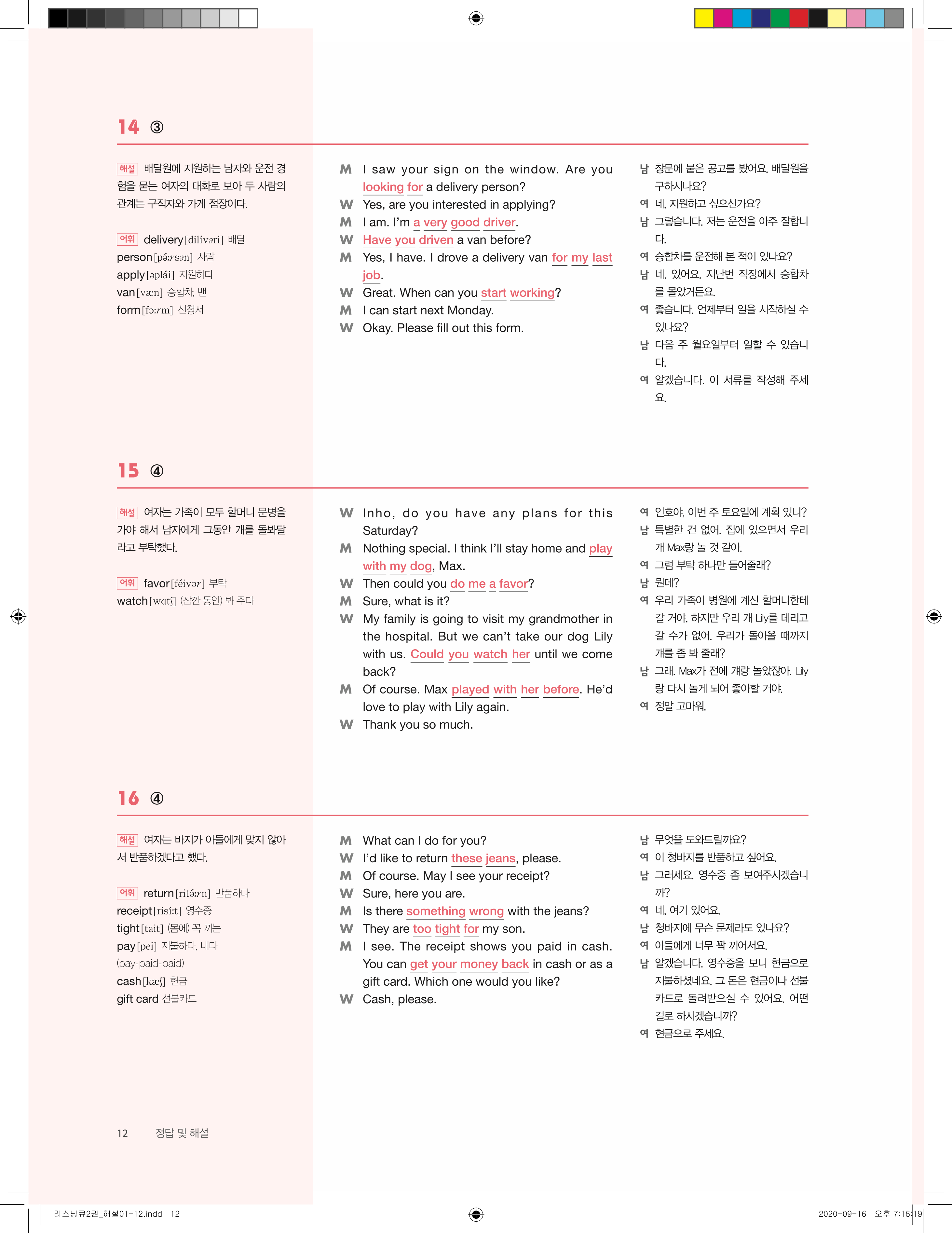 세듀 리스닝큐 중학영어듣기 모의고사24회 레벨2 답지 빠른답지 다운없이 바로보는 사진답지 모바일최적화